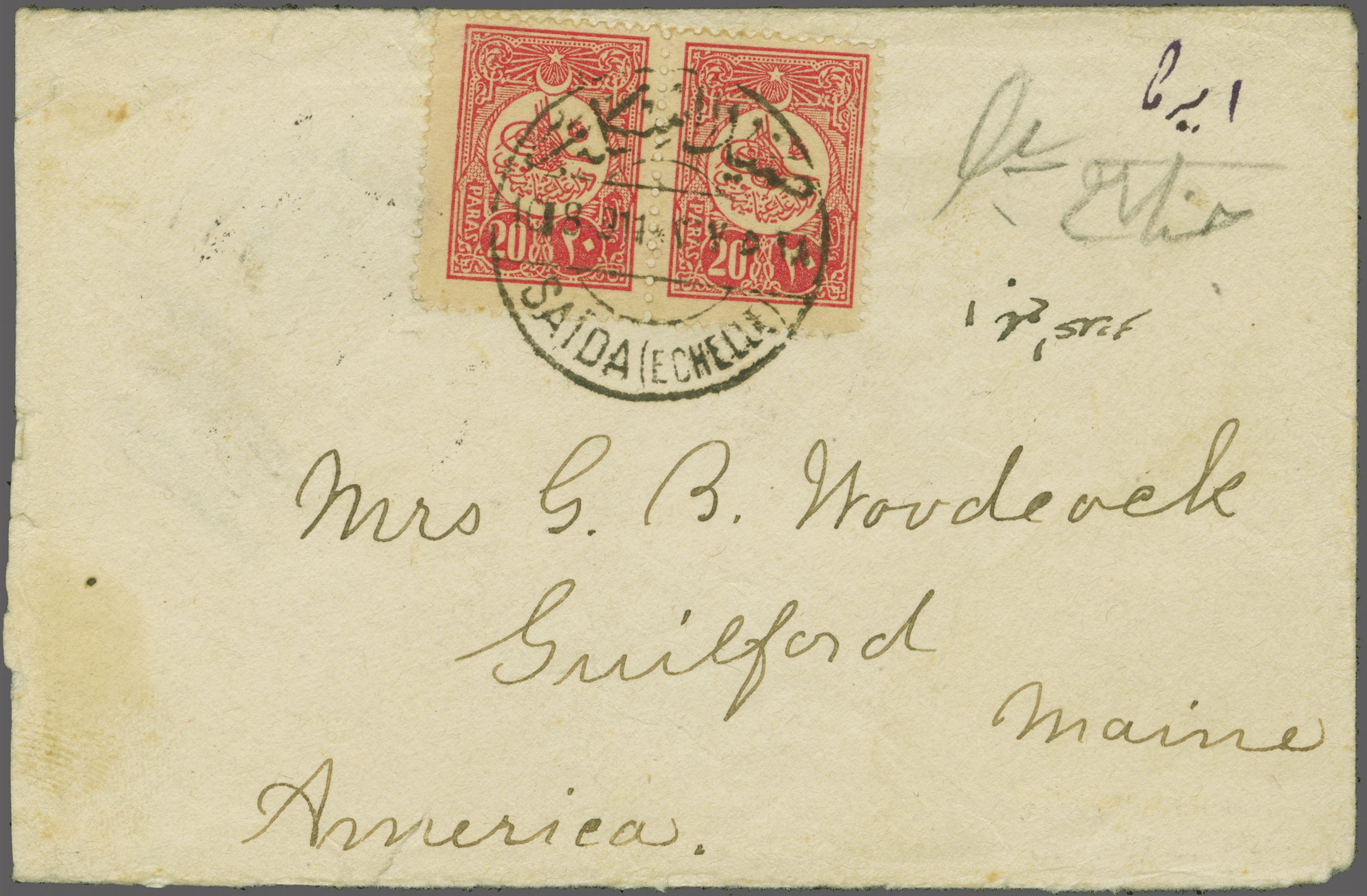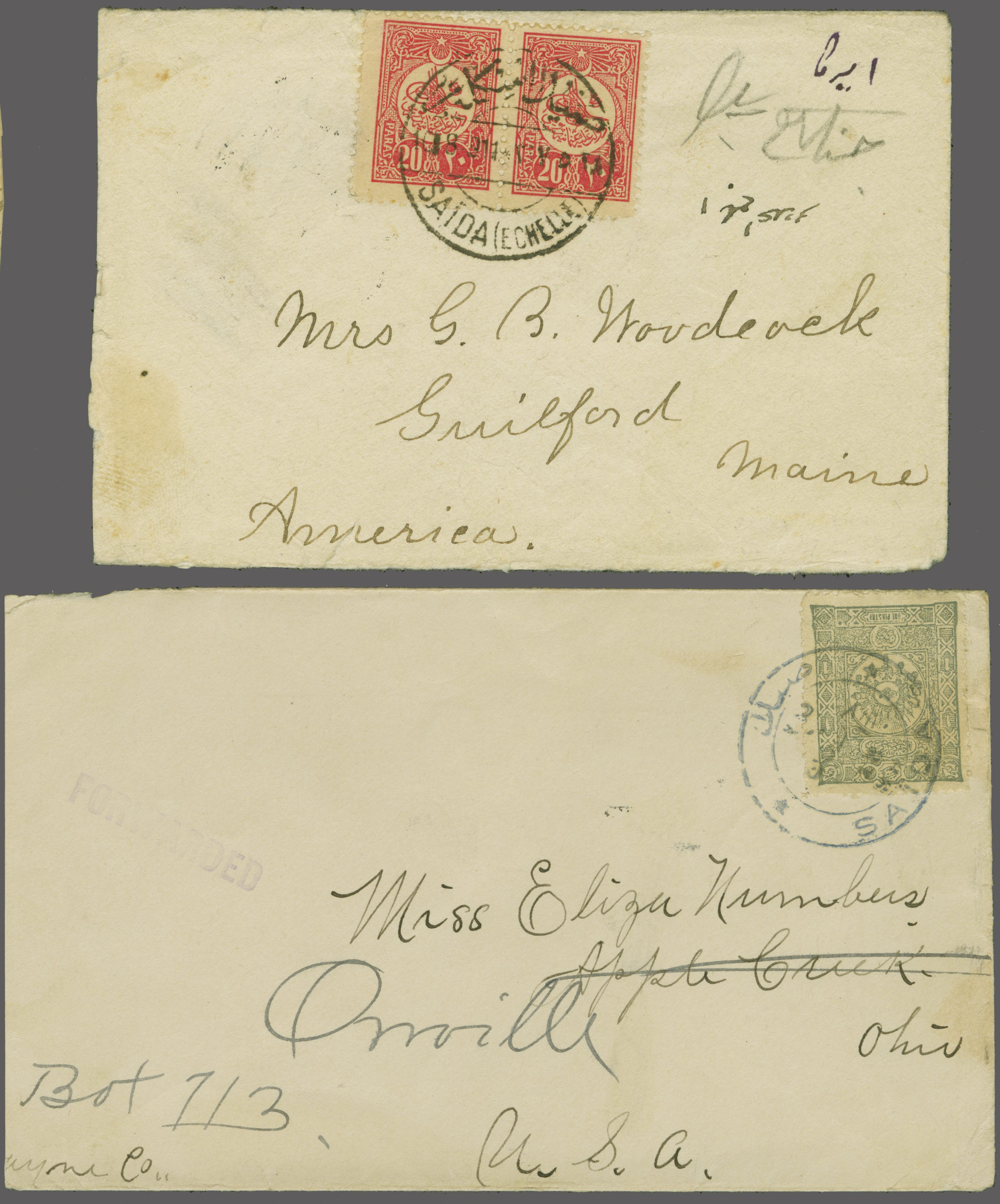 Vilayet of Beirut - Säida / Sidon 1898/1911: Covers (2) with 1892 Turkey 1 pi. grey-blue used on 1898 cover to Orrville, Ohio, USA tied by bilingual "SAIDA" circular datestamp (June 18) in blue (Coles & Walker fig. 152,