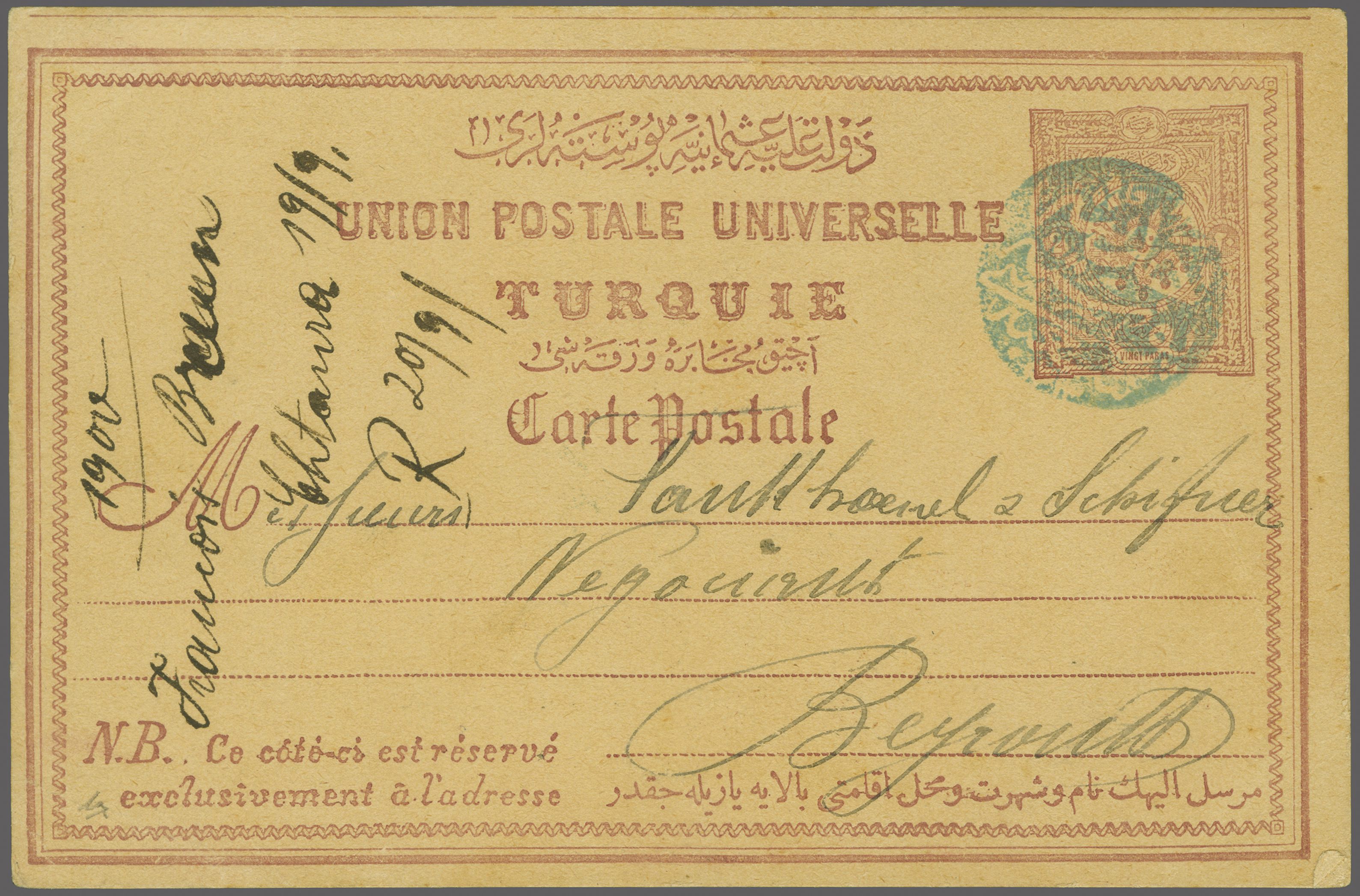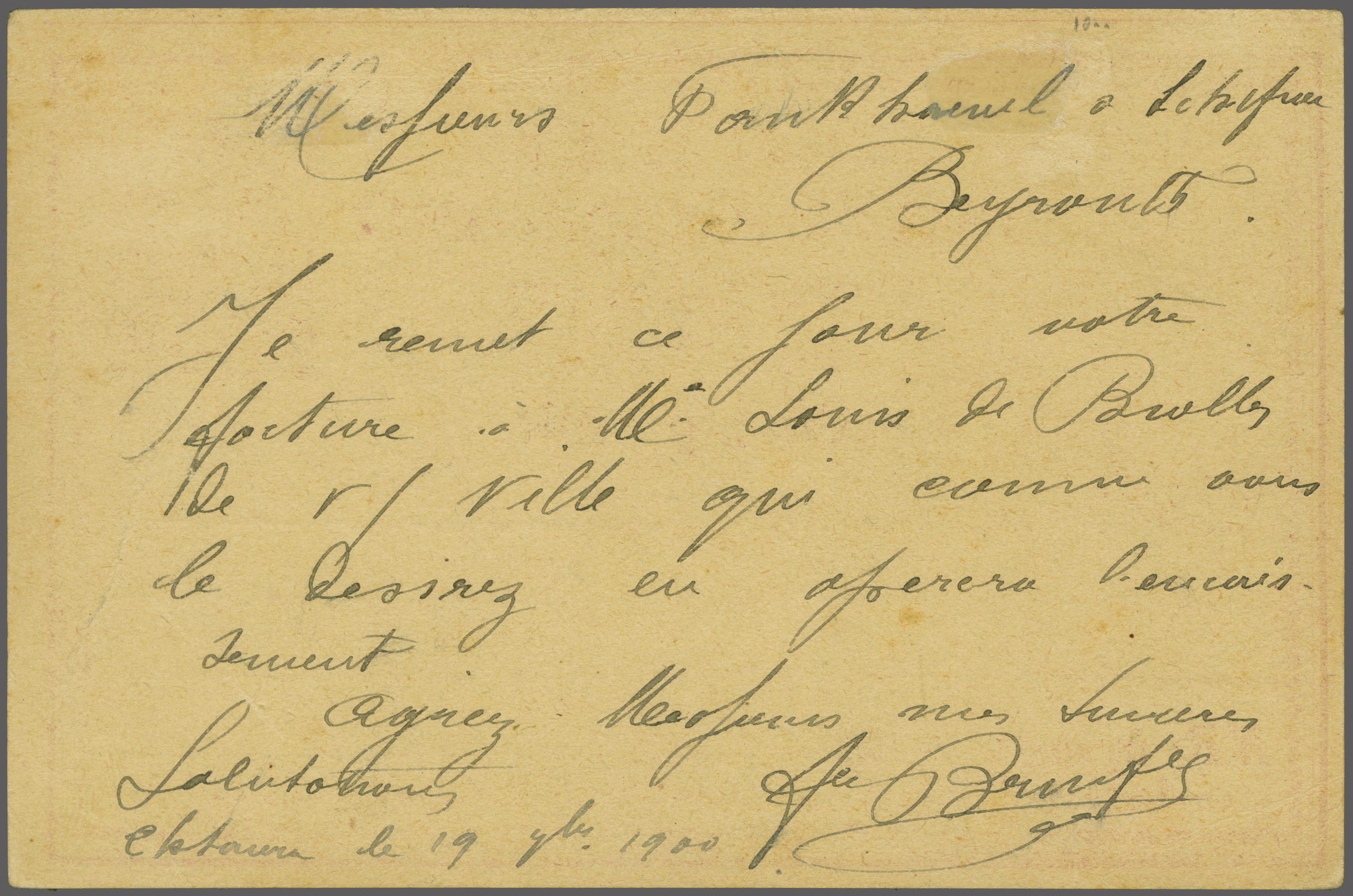 Vilayet of Syria - Djidita / Djédissa / Cedisa 1892: 20 pa. claret postal stationery card, a used example dated 19 September 1900 mailed to Beirut cancelled by superb strike of circular "DJIDITA POSTA SHUBESI - 1313" negative