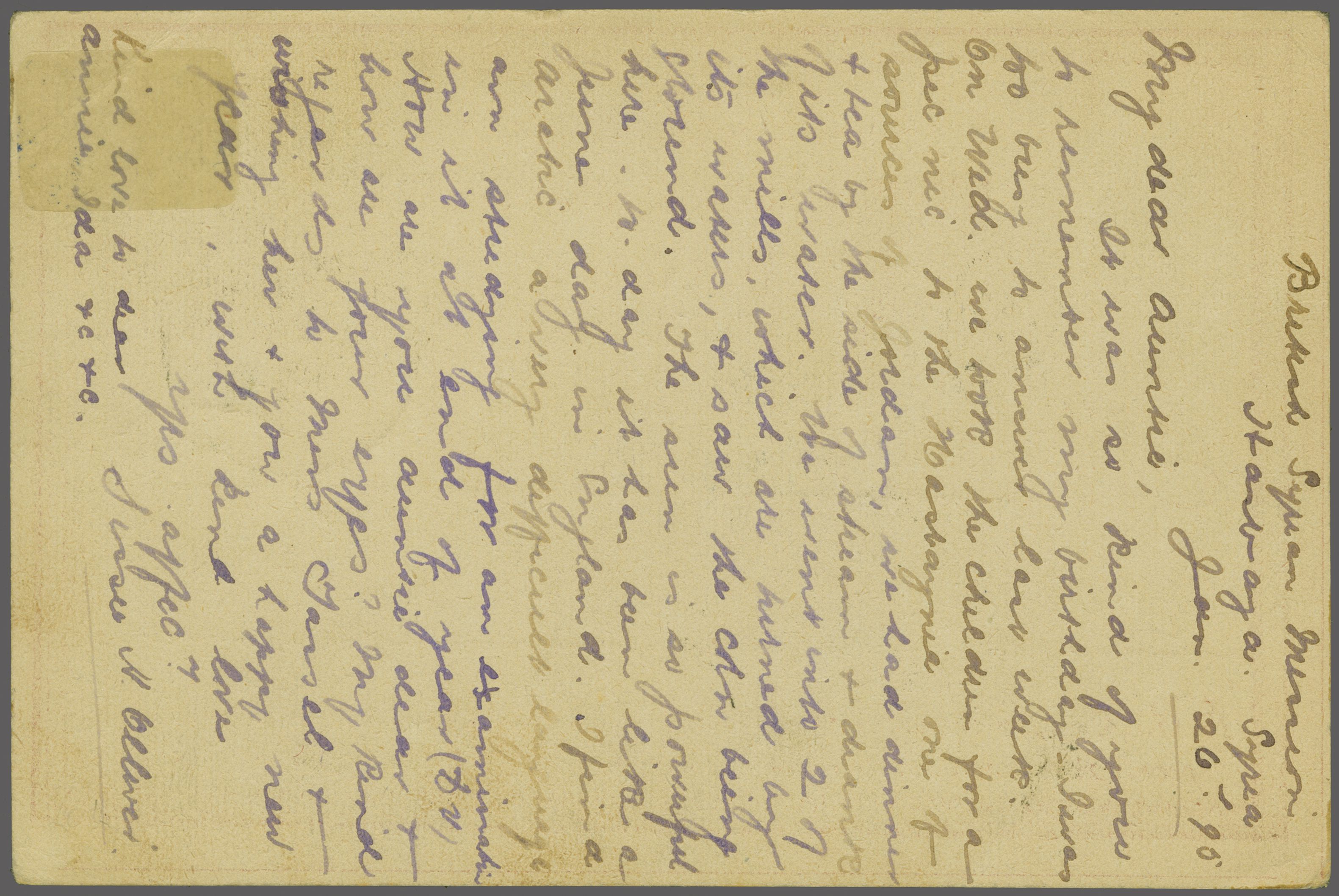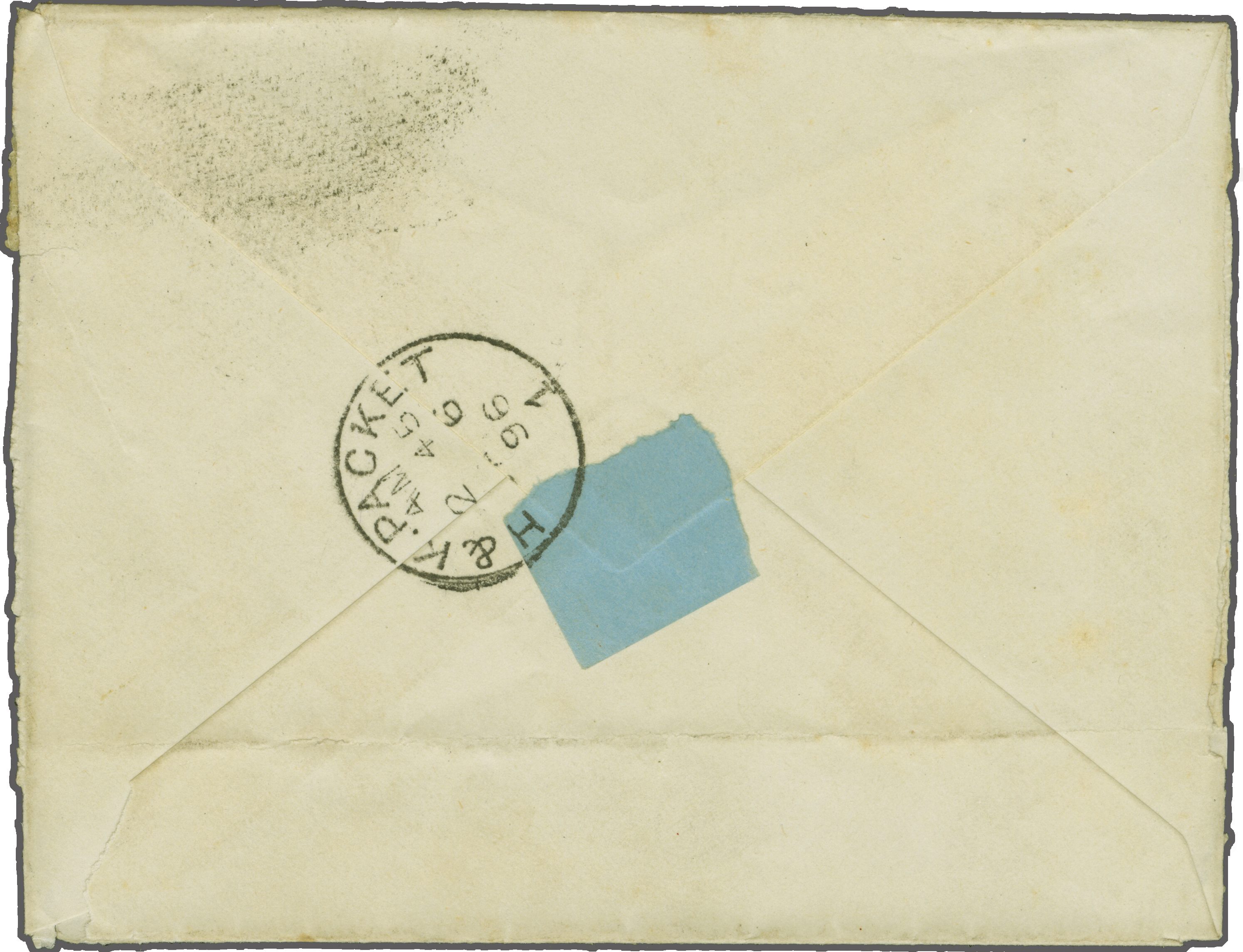 house which ran until the turn of the 19th century. The Mission had its own Post Office, from which two negative seals are known (see next lot). The Post Office closed in the early 1900's after which mail was sent via the main Broumanna Post Office