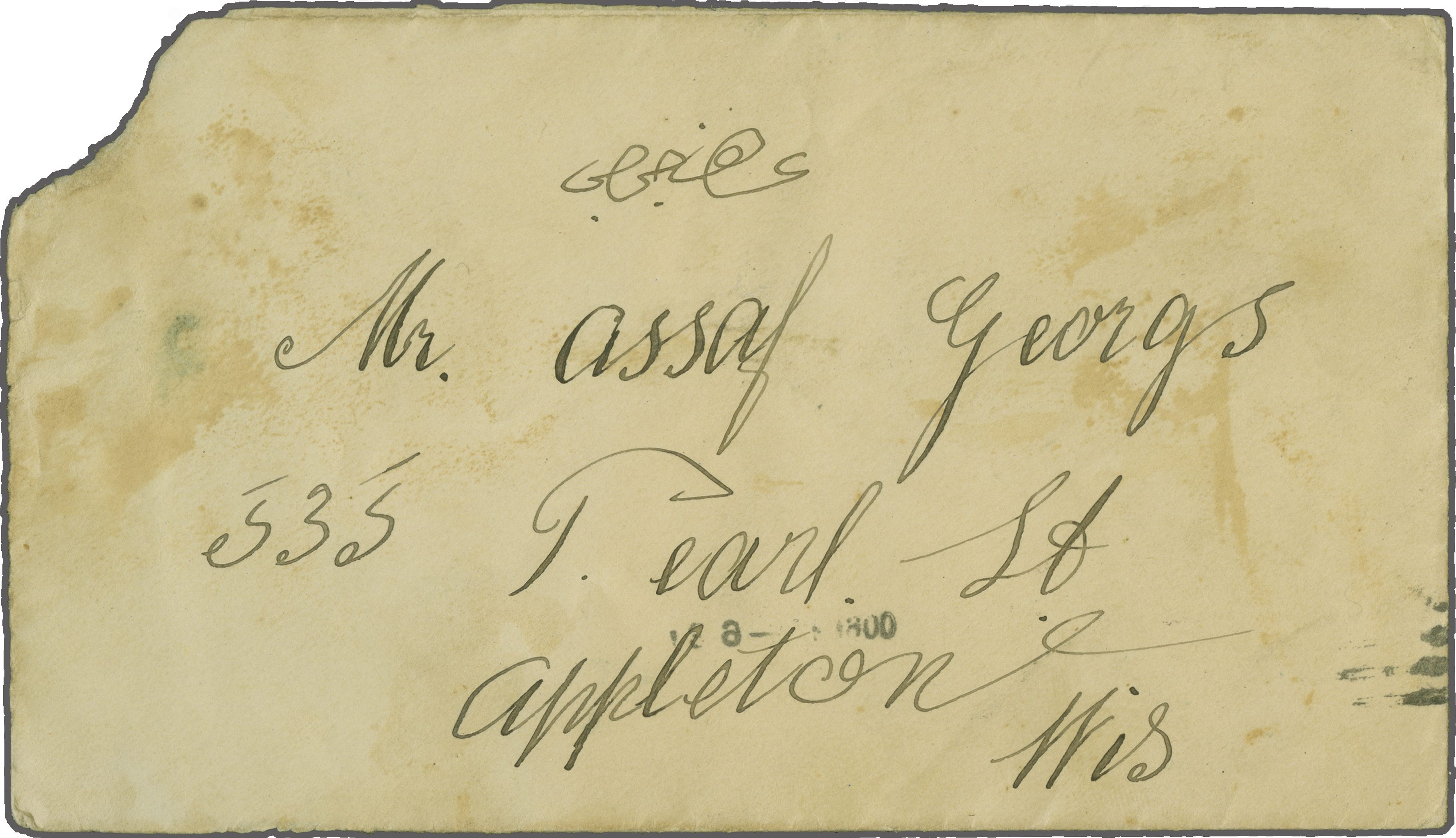 Bekaa Postal Branch) in blue with further information strike alongside (Coles & Walker fig. 96, Ziya fig. 1 - rated 'RRR*'), with Appleton arrival below (April 13). Envelope torn at right upon opening but very rare - the sole recorded cover.