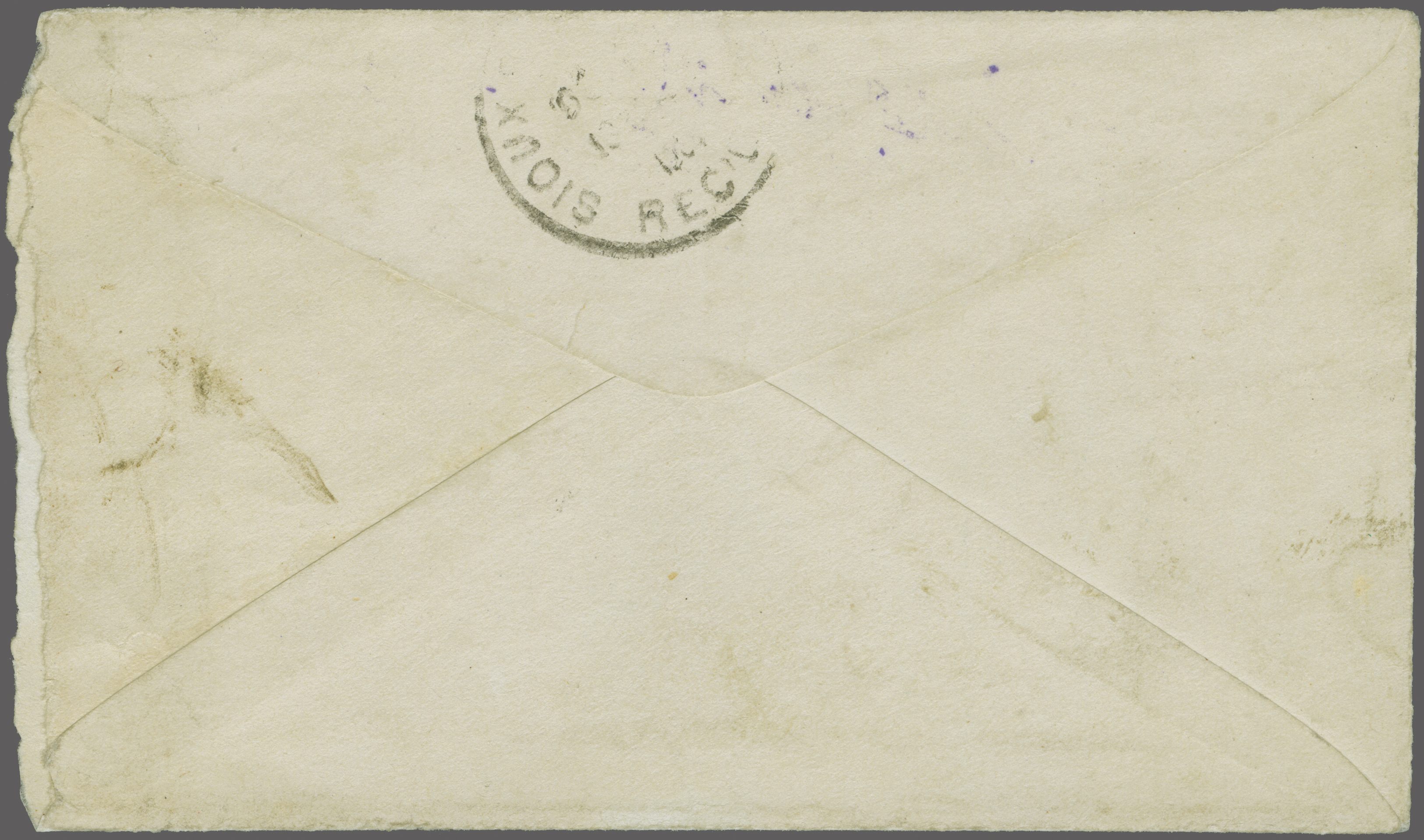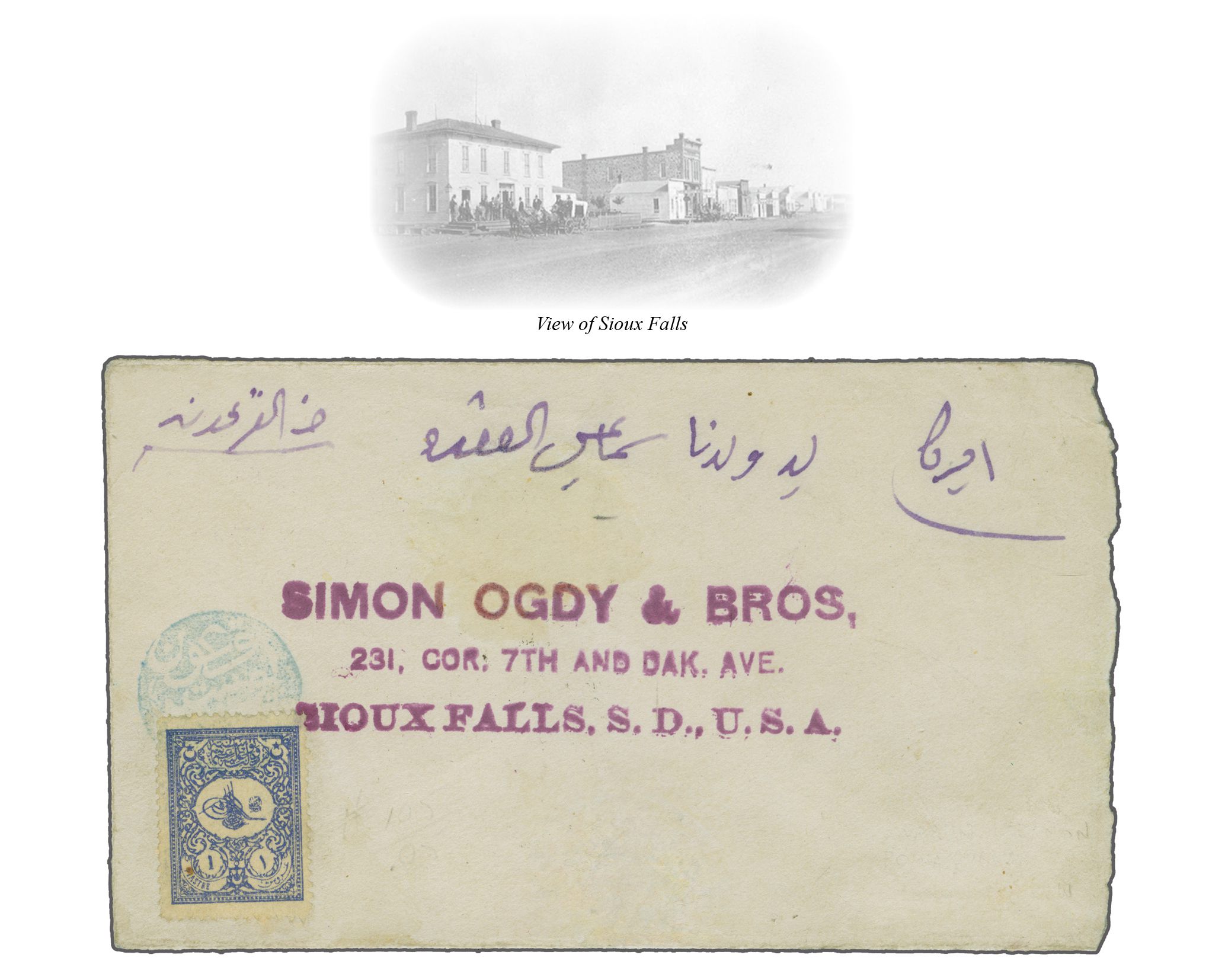 blue (Coles & Walker unlisted, Ziya fig. 1 - rated 'RRR') with Sioux Falls arrival cds on reverse in black. One of just two covers recorded with this handsatmp (Image 1)
