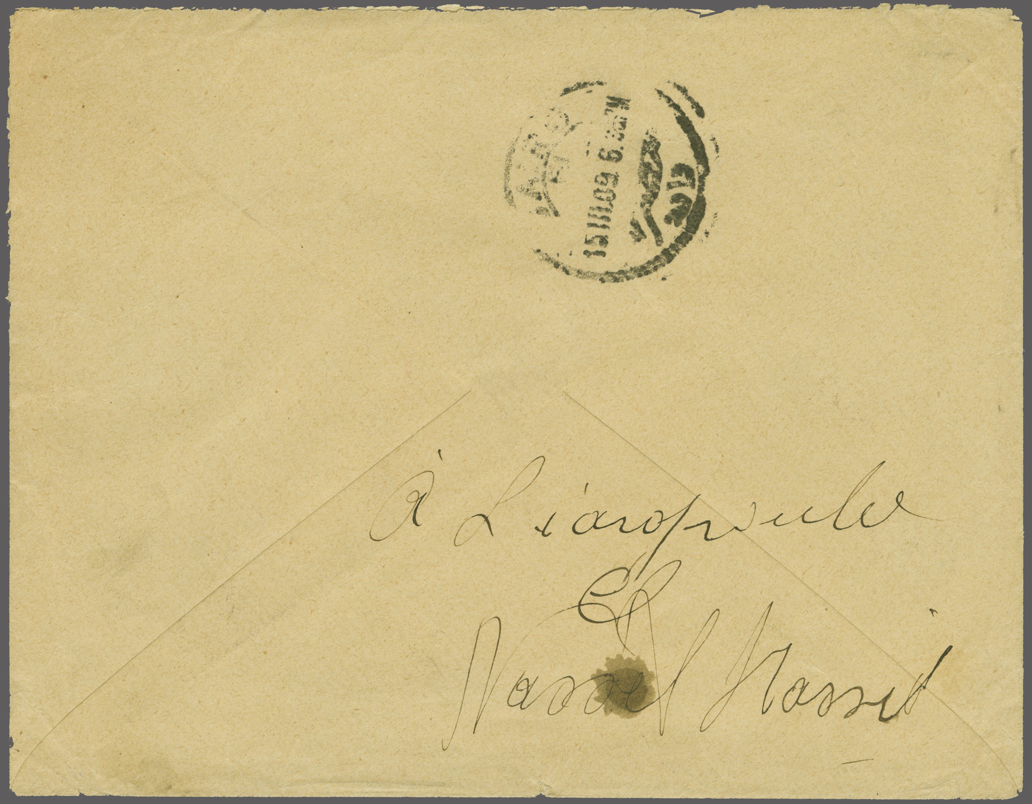 (Shtora Postal Branch) in blue (Coles & Walker fig. 81 = 25 pts.), with reverse showing Beyrout transit (Oct 10) and Mainz arrival cds (Oct 22). Some splashed ink but scarce (Image 1)