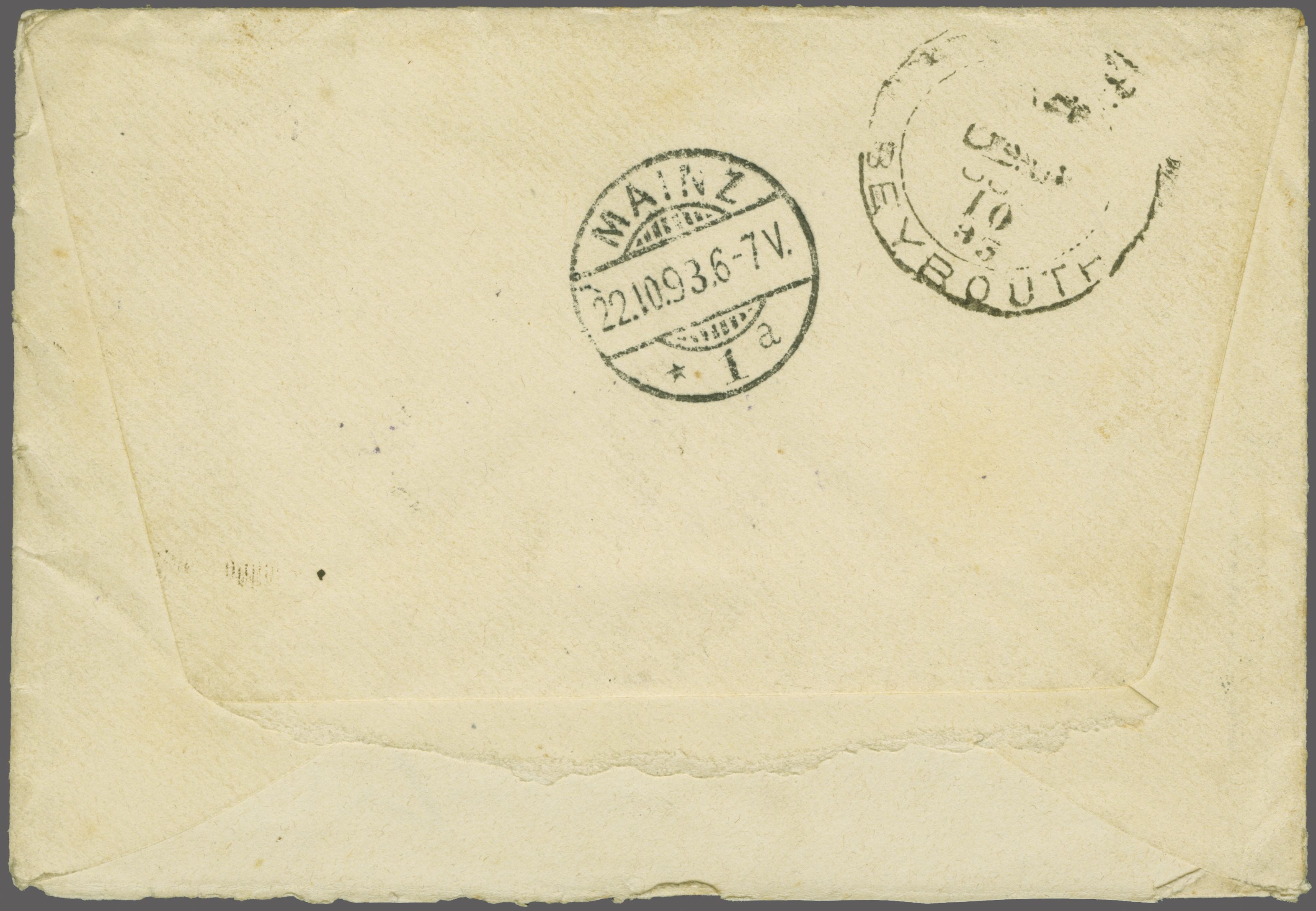 POSTE LIBAN " handstamp in violet (Coles & Walker fig. 119, Ziya fig. 1 - rated 'R'). Reverse with Oberstdorf arrival cds (Sept 12). A fine and attractive cover. Note: This cover is illustrated in the Ziya catalogue 'S' on page 201 (Image 1)