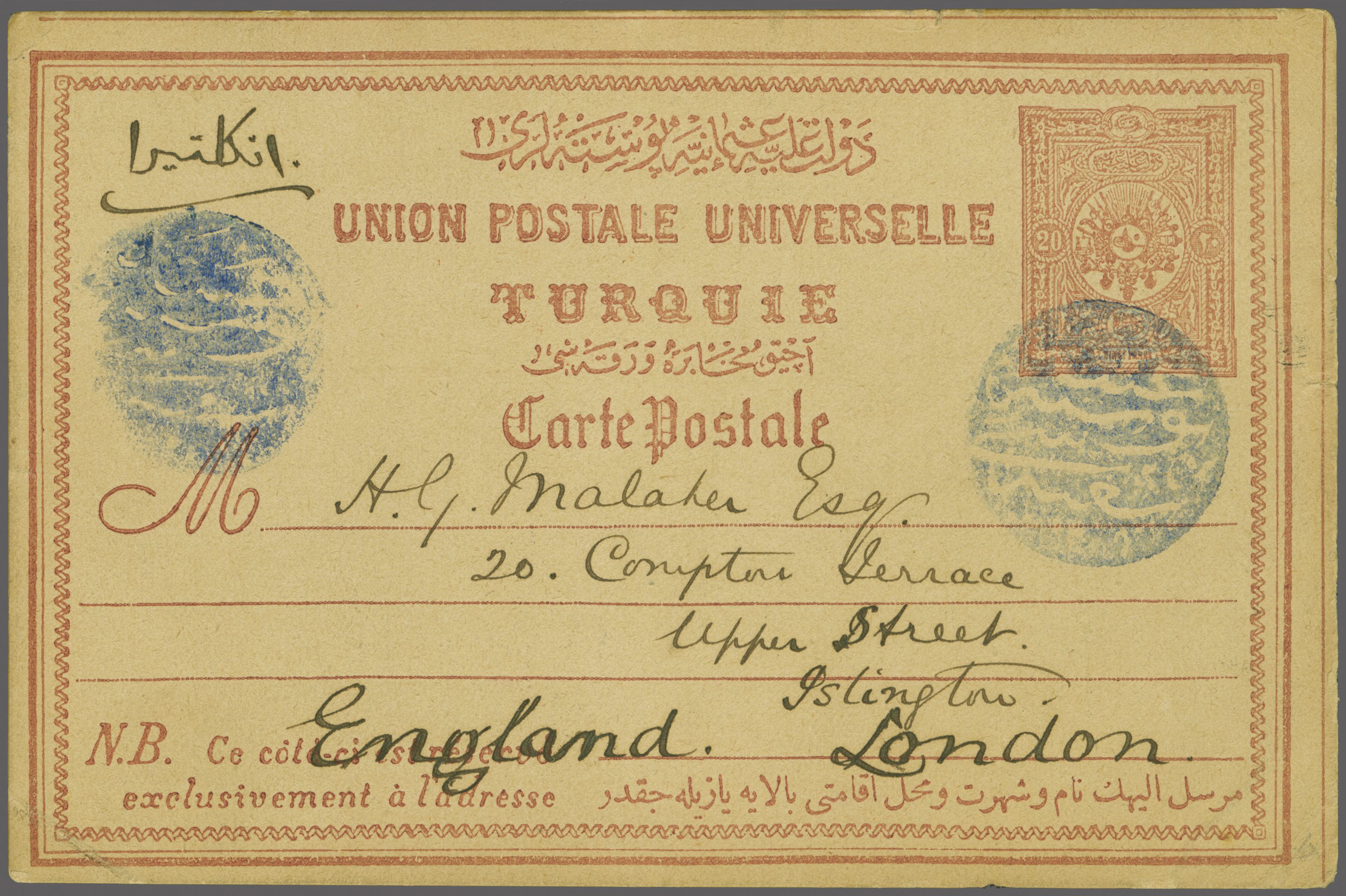 seal handstamp in blue (Coles & Walker fig. 161, Ziya fig. 1 - rated 'RR'). Exquisite and rare. Note: This card is illustrated in Ziya catalogue 'C - D' on page 10 (Image 1)