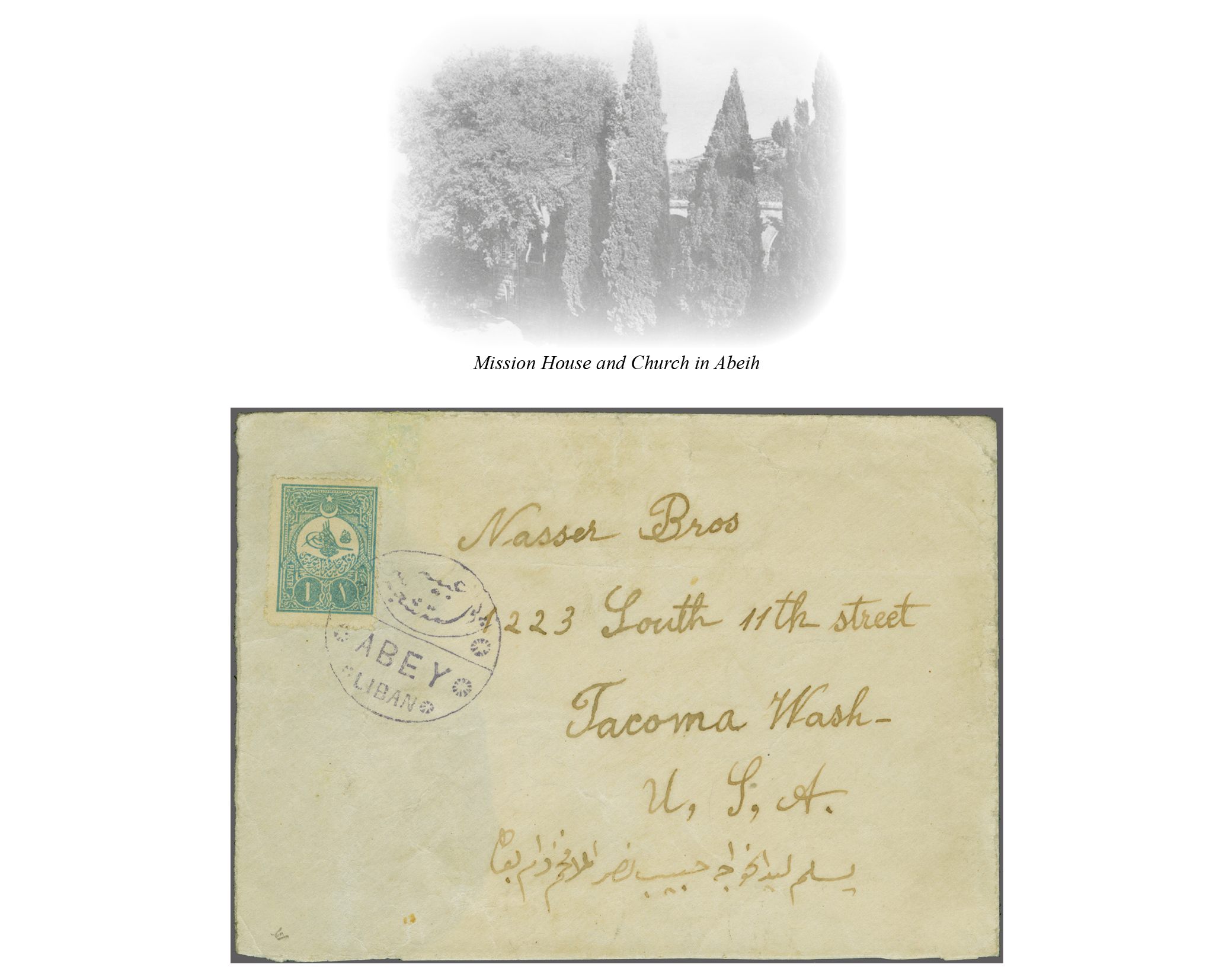 cover. Note 1: This cover is illustrated in the Ziya catalogue 'A' on page 139. Note 2: The Quaker religious order purchase land for a Mission in Broumana in 1874 and named the site "Spring of Peace" (Ain es Salaam. They built a school and a meeting
