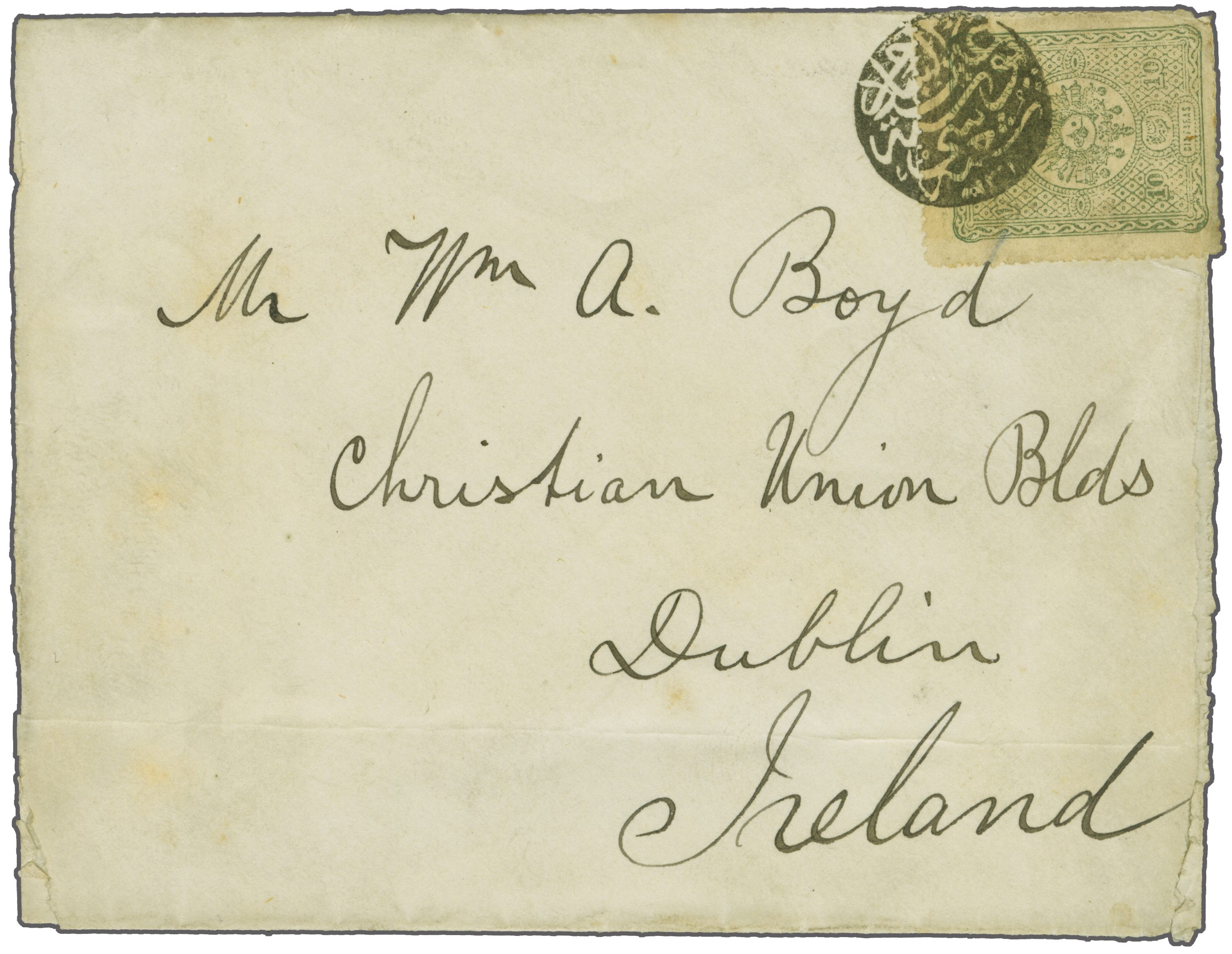 Sanjak of Djebel Lubnan - Ain es Salaam / Ayn Elsalaam 1892: Turkey 10 pa. green, a single example used on 1896 Printed Matter wrapper from Ain es Salaam to Dublin, Ireland, tied by small circular "AIN ES SALAAM POSTA SHUBESI