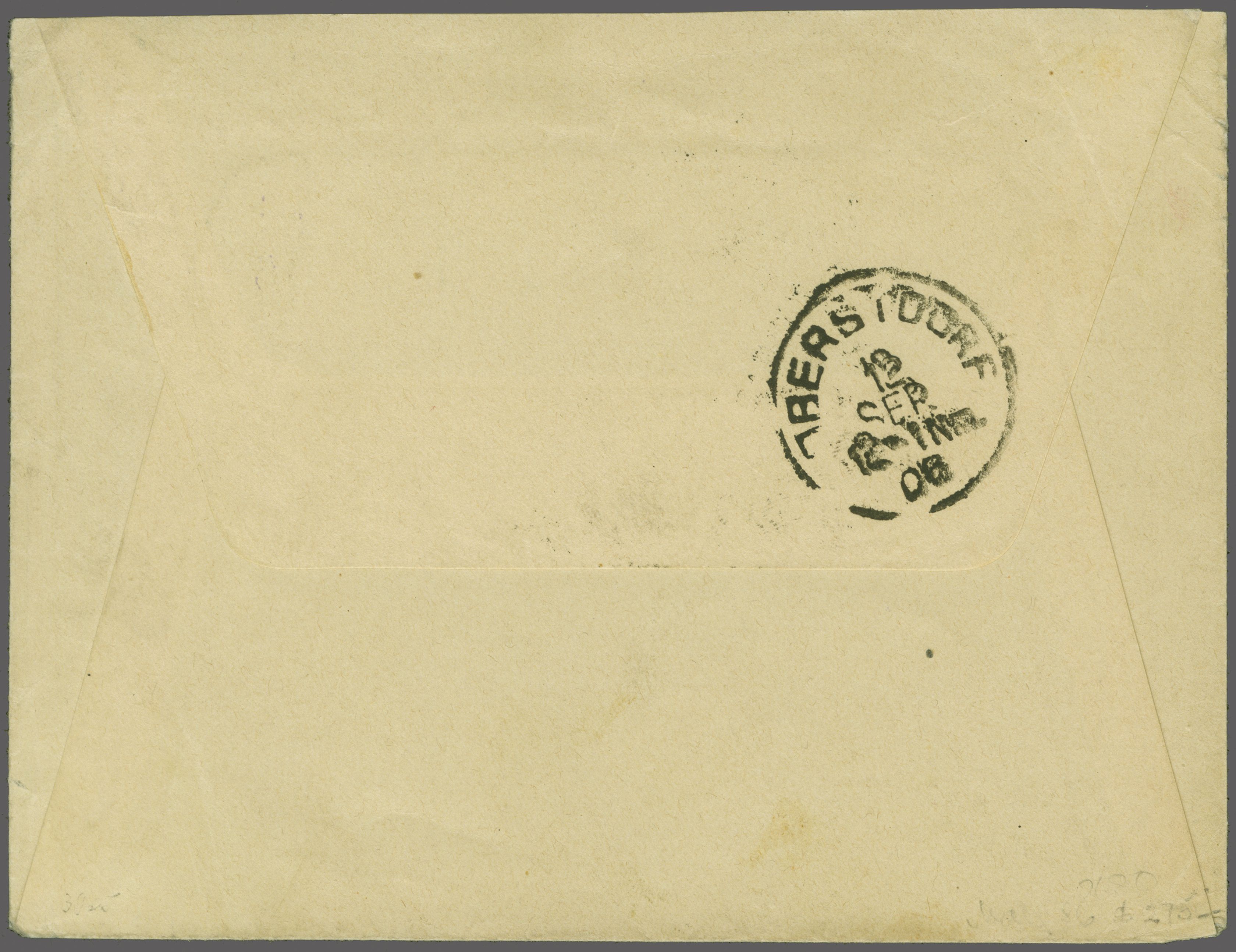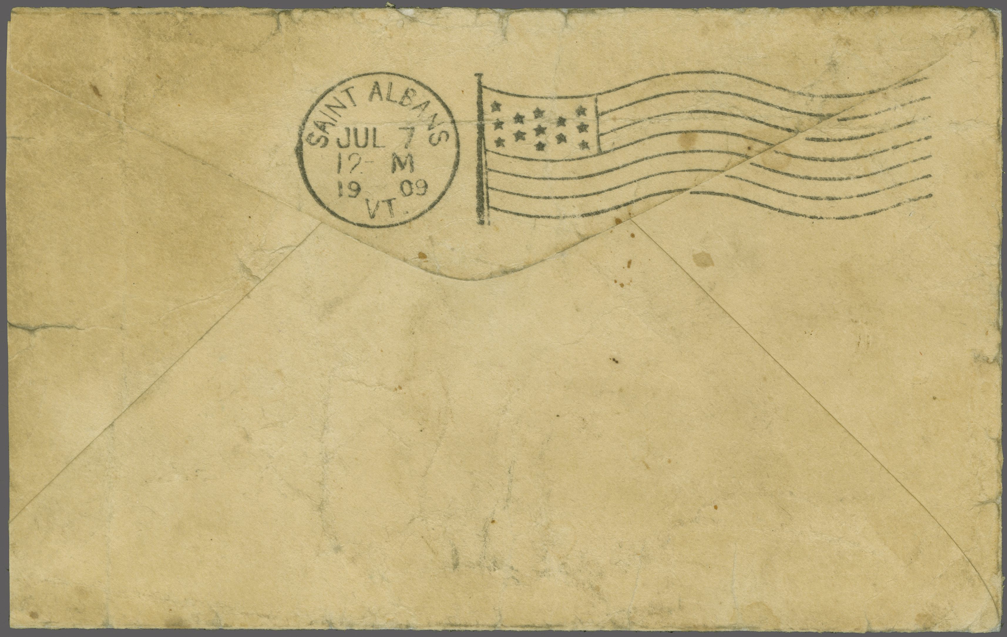 violet (Coles & Walker unlisted, Ziya fig. 1 - rated 'RRR'). Reverse with Saint Albans arrival (July 7, 1909) in black. The cover restored and with envelope trim at right but rare (Image 1)