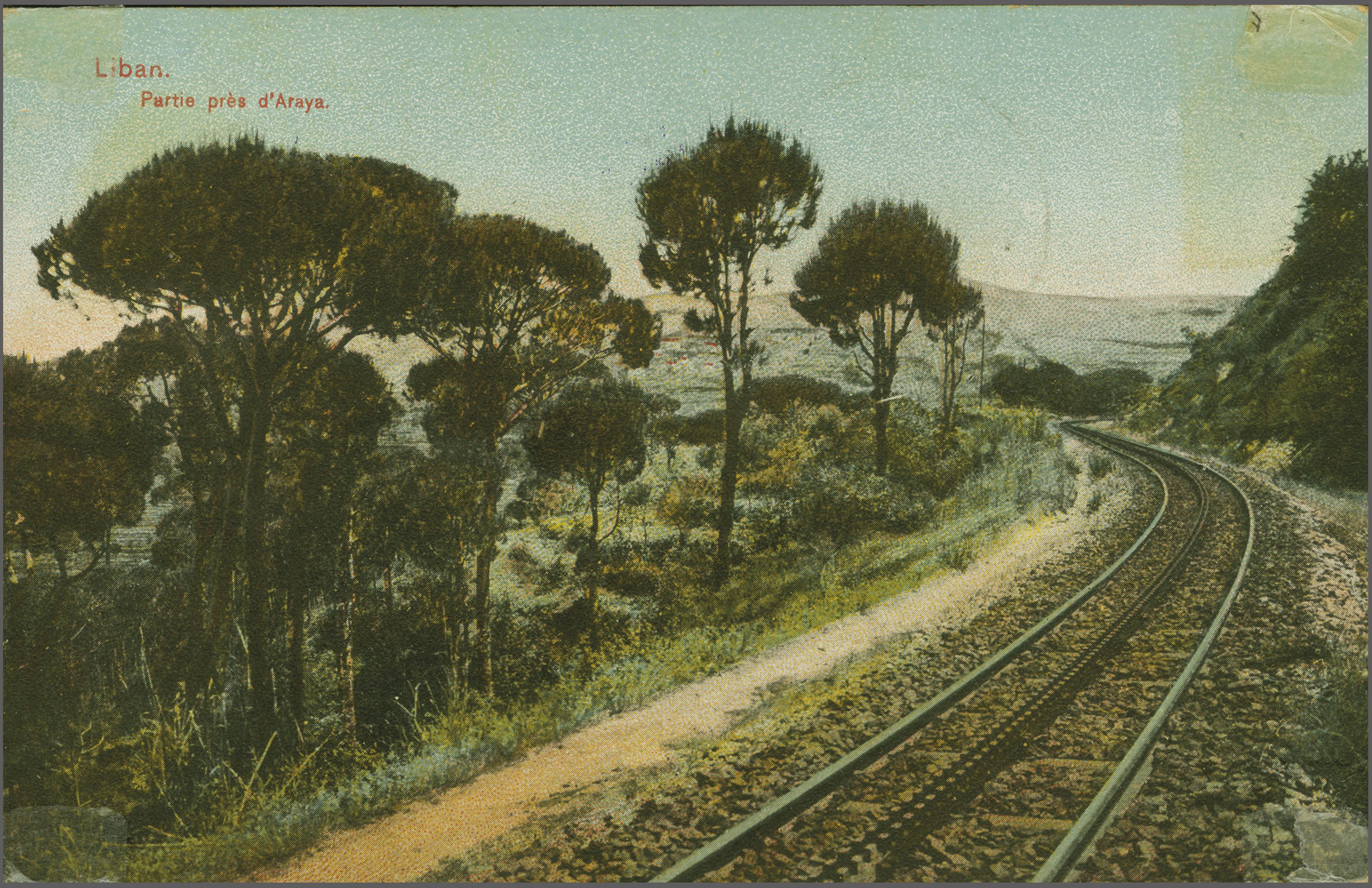 Sanjak of Djebel Lubnan - Ain Sofar / Sofer 1909: Turkey 20 pa. rose-red, a used example on 1910 postcard to Egypt tied by circular "TELEGRAF VE POSTA HANE SOFAR - 313" negative seal handstamp in violet (Coles & Walker