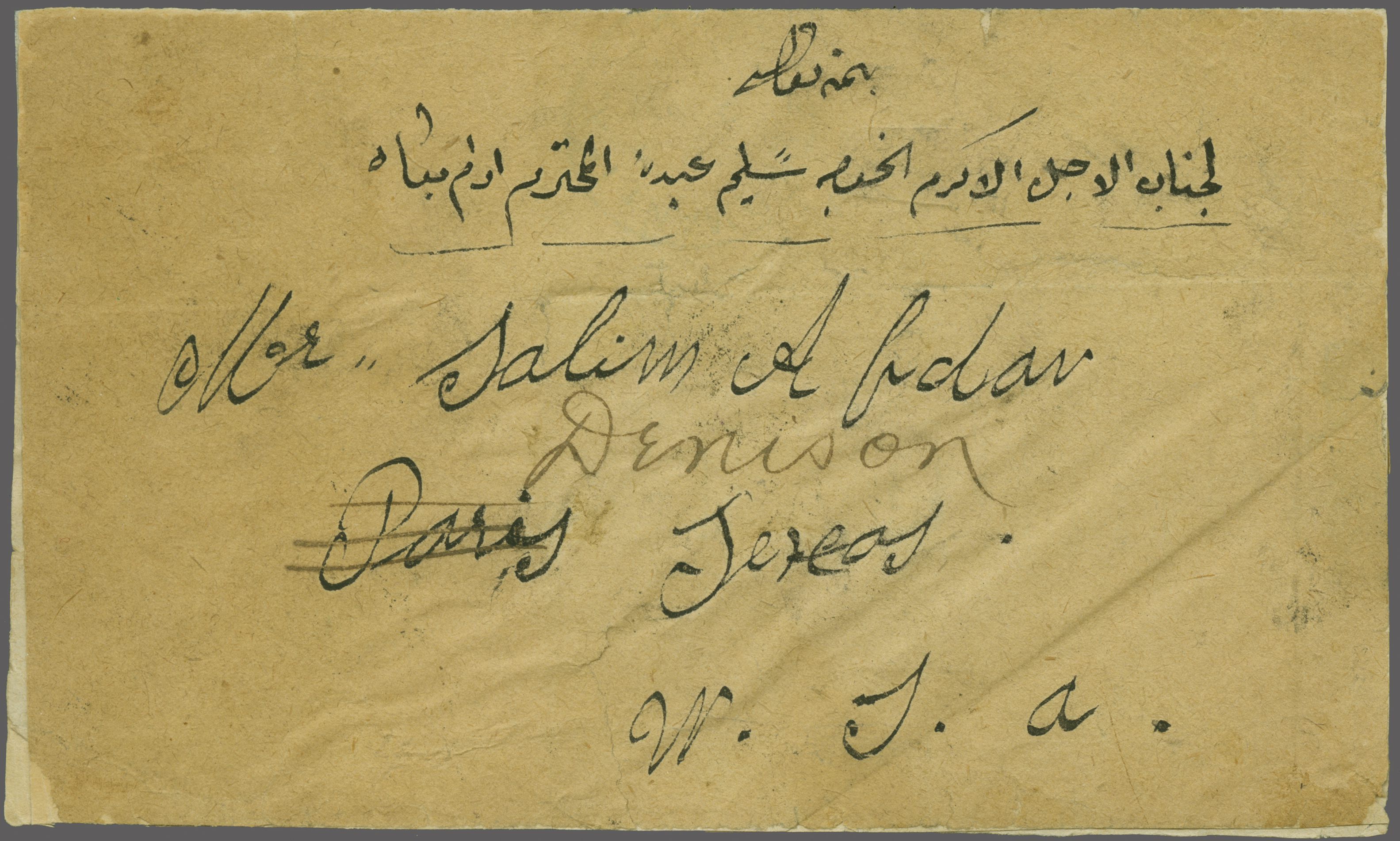 Sanjak of Djebel Lubnan - Bekfiya / Bikfayya / Bekfaya 1892: Turkey 1 pi., grey-blue, a single example used on 1894 cover to Denison, Texas, USA as seal, the envelope and adhesive with faults but tied by bold circular "BEKFIYA
