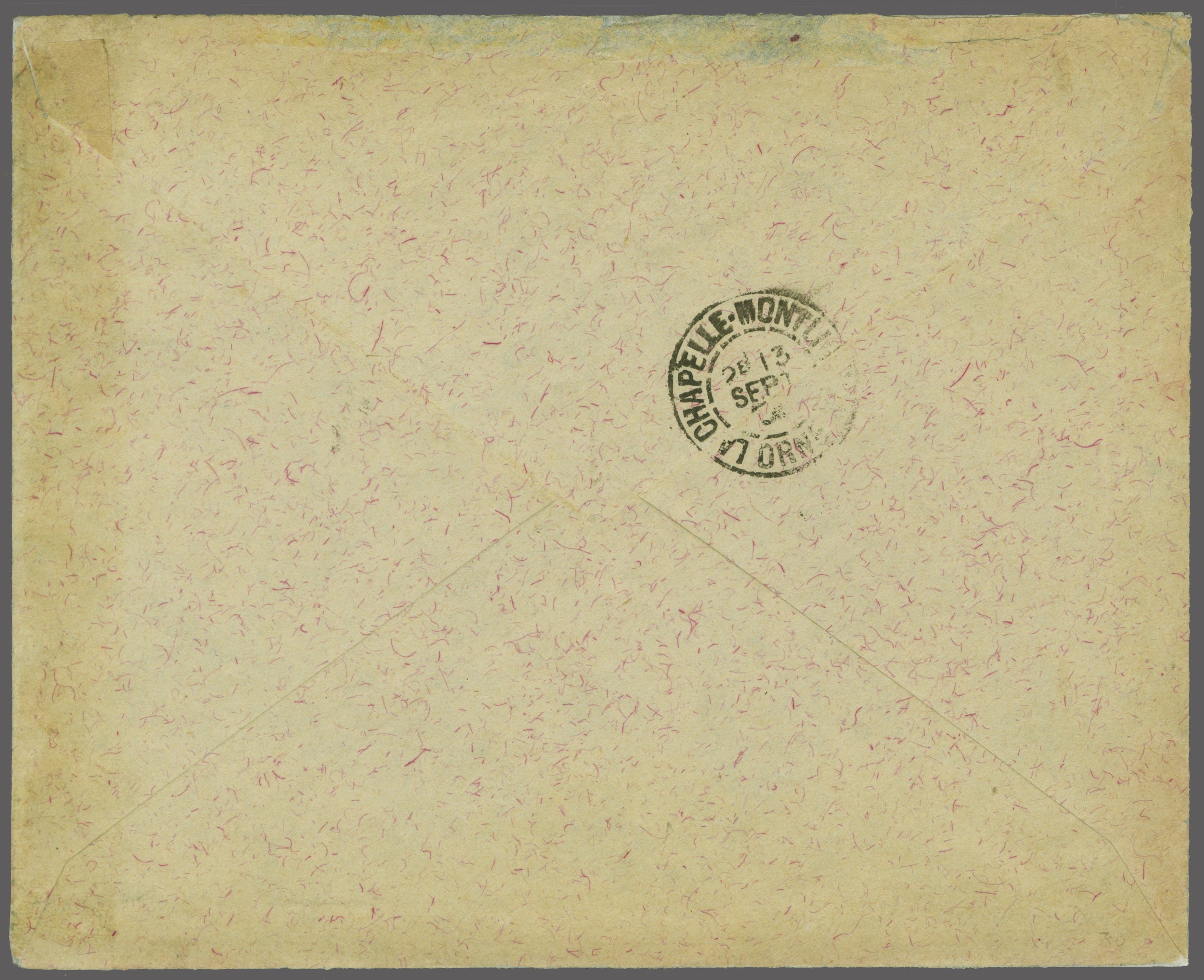 black (Coles & Walker fig. 71, Ziya fig. 2 - rated 'RRR'). La Chapelle arrival cds on reverse. Small sensible restoration to the envelope but scarce (Image 1)