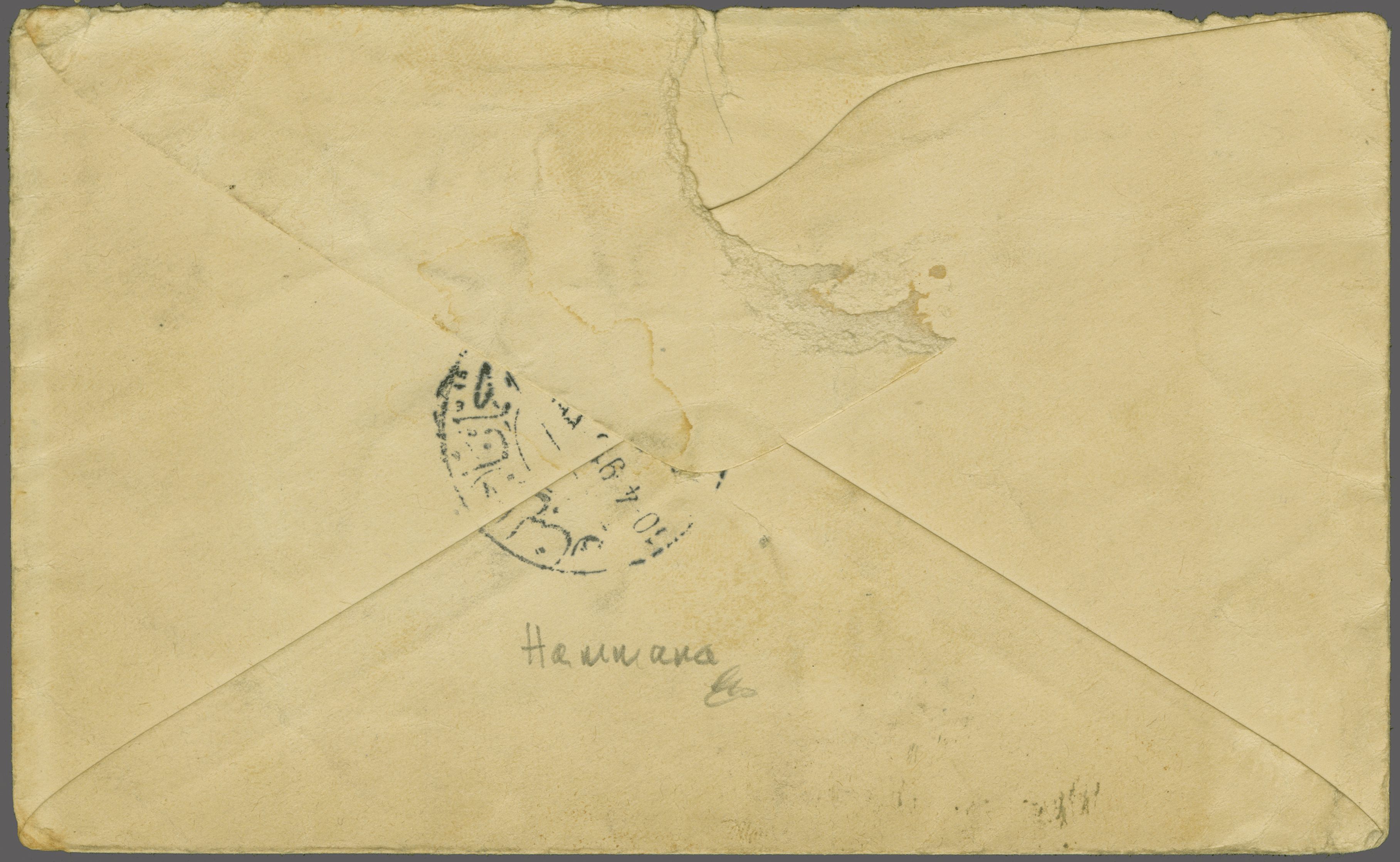 Walker fig. 97, Ziya unlisted). Top of cover slightly trimmed and back flap missing leaving small part of arrival cds but of great rarity, this being the sole cover recorded. Provenance: Collection Howard E. Walker (Image 1)
