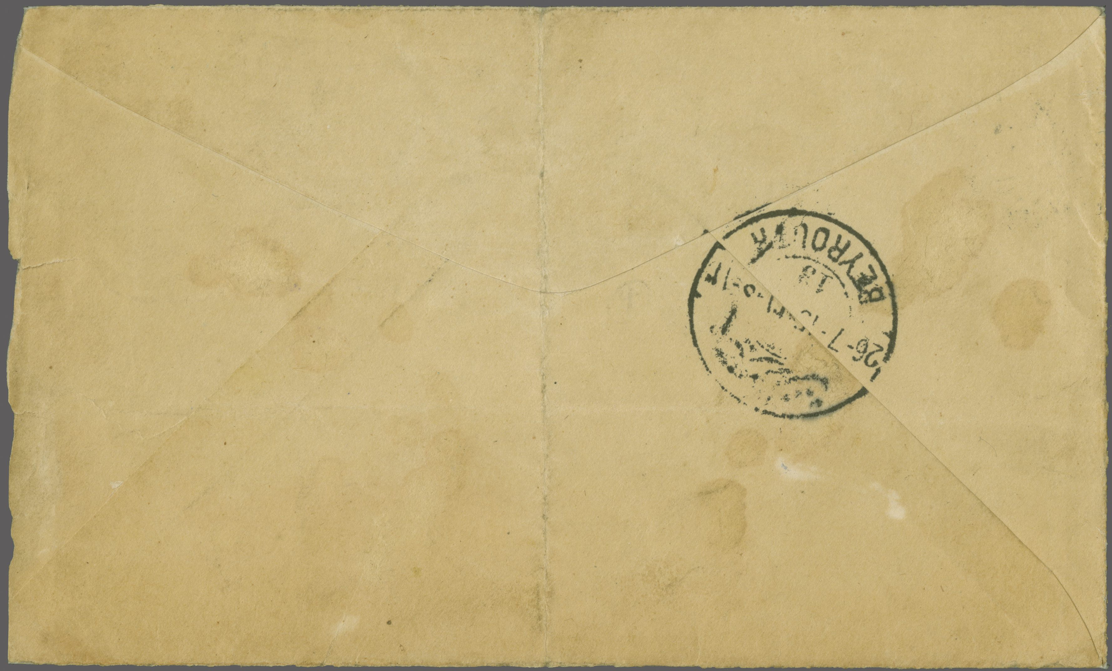 "DJOUNIÉH" by circular datestamp (March 22) with circular "R" adjacent. Reverse with Moutain arrival cds (April 1). Typical ageing but of great scarcity. Note: This cover illustrated in the Ziya catalogue 'J - L' on page 171 (Image 1)