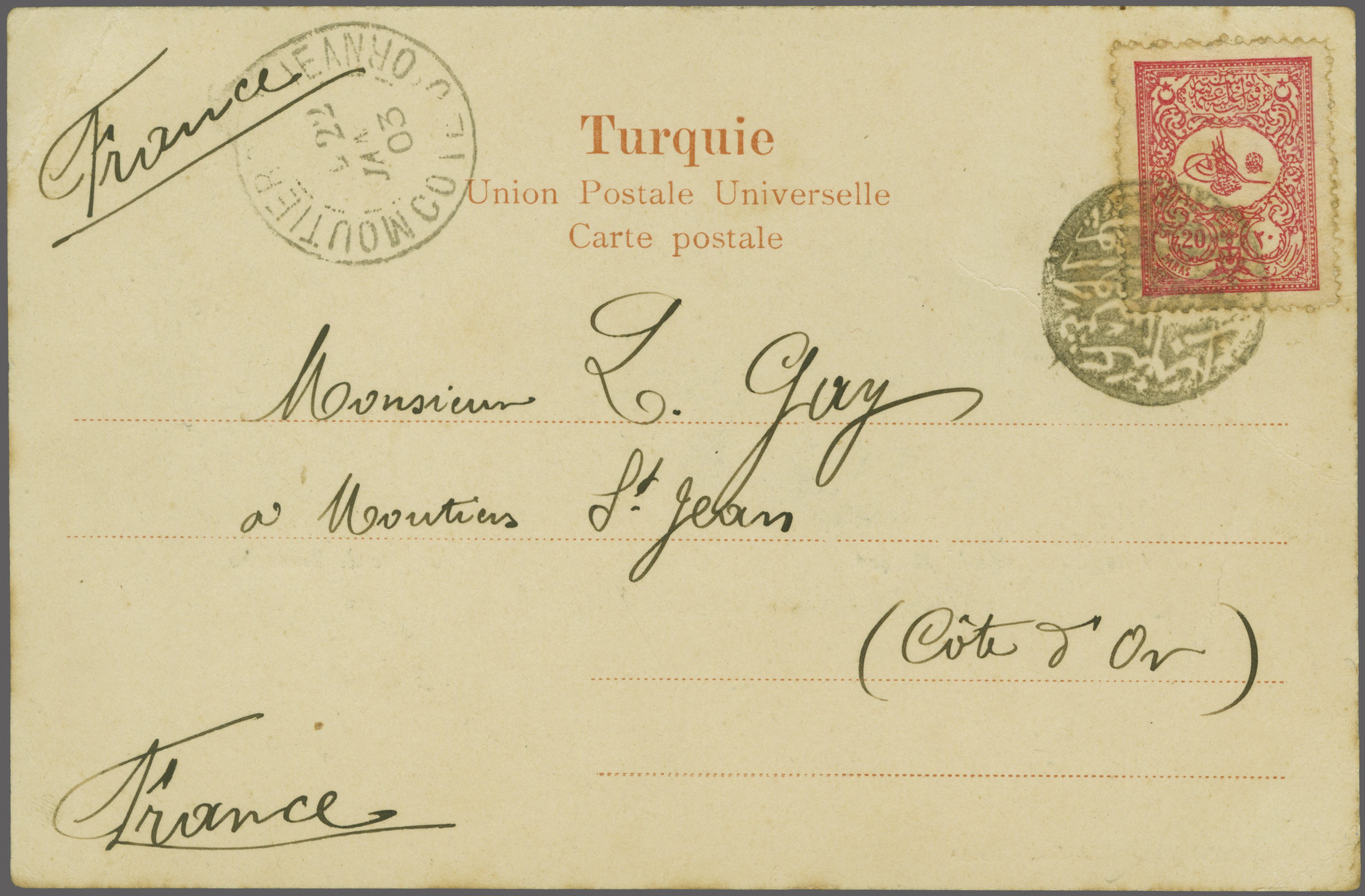 Sanjak of Djebel Lubnan - Hosh el Zeraane / Hoş Elzeraane 1901: Turkey 20 pa. rose, a single example used on 1903 postcard to Moutiers St. Jean, France tied by circular "HOSH EL ZERAANE POSTA SHUBESI" negative seal handstamp