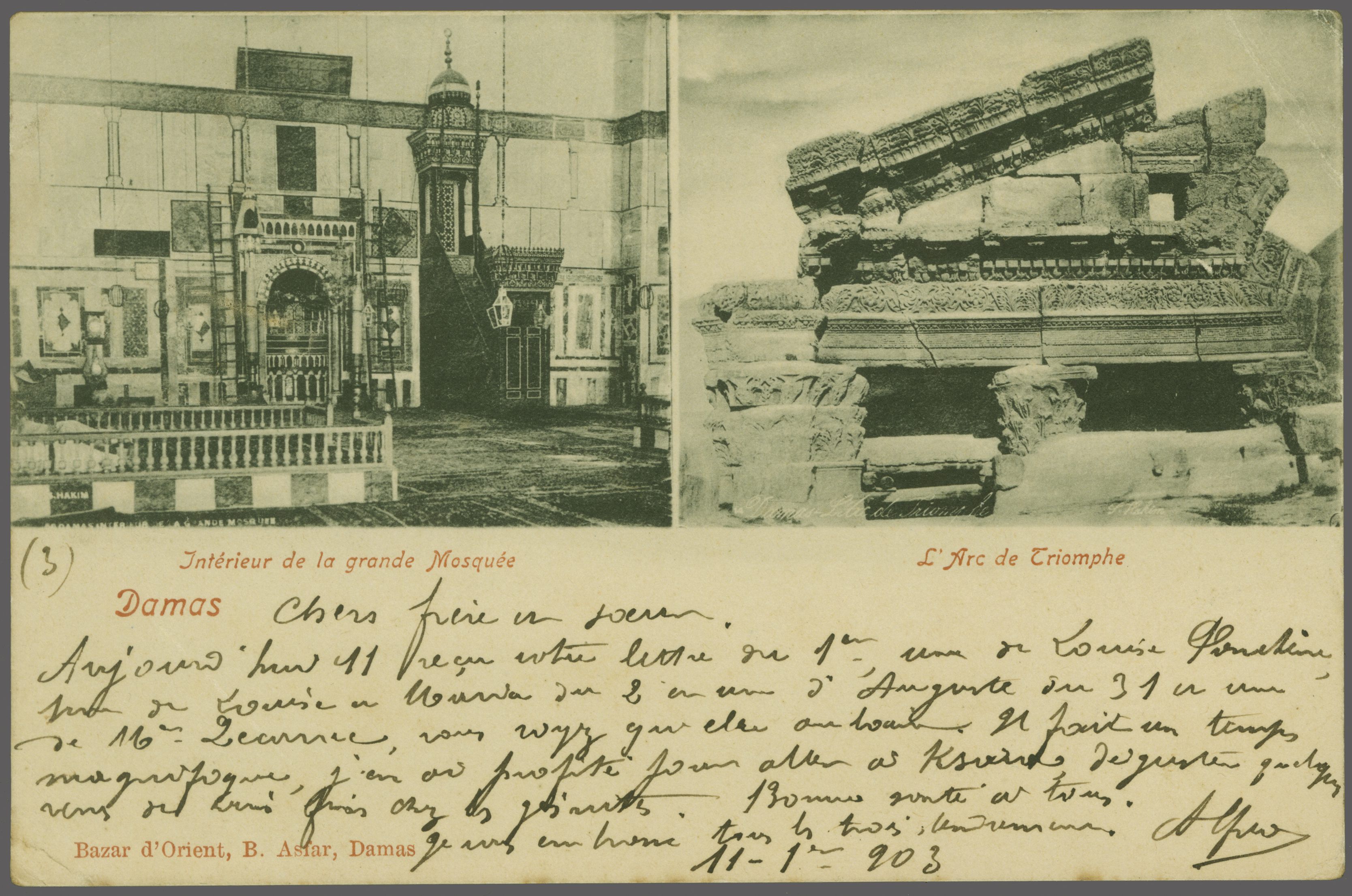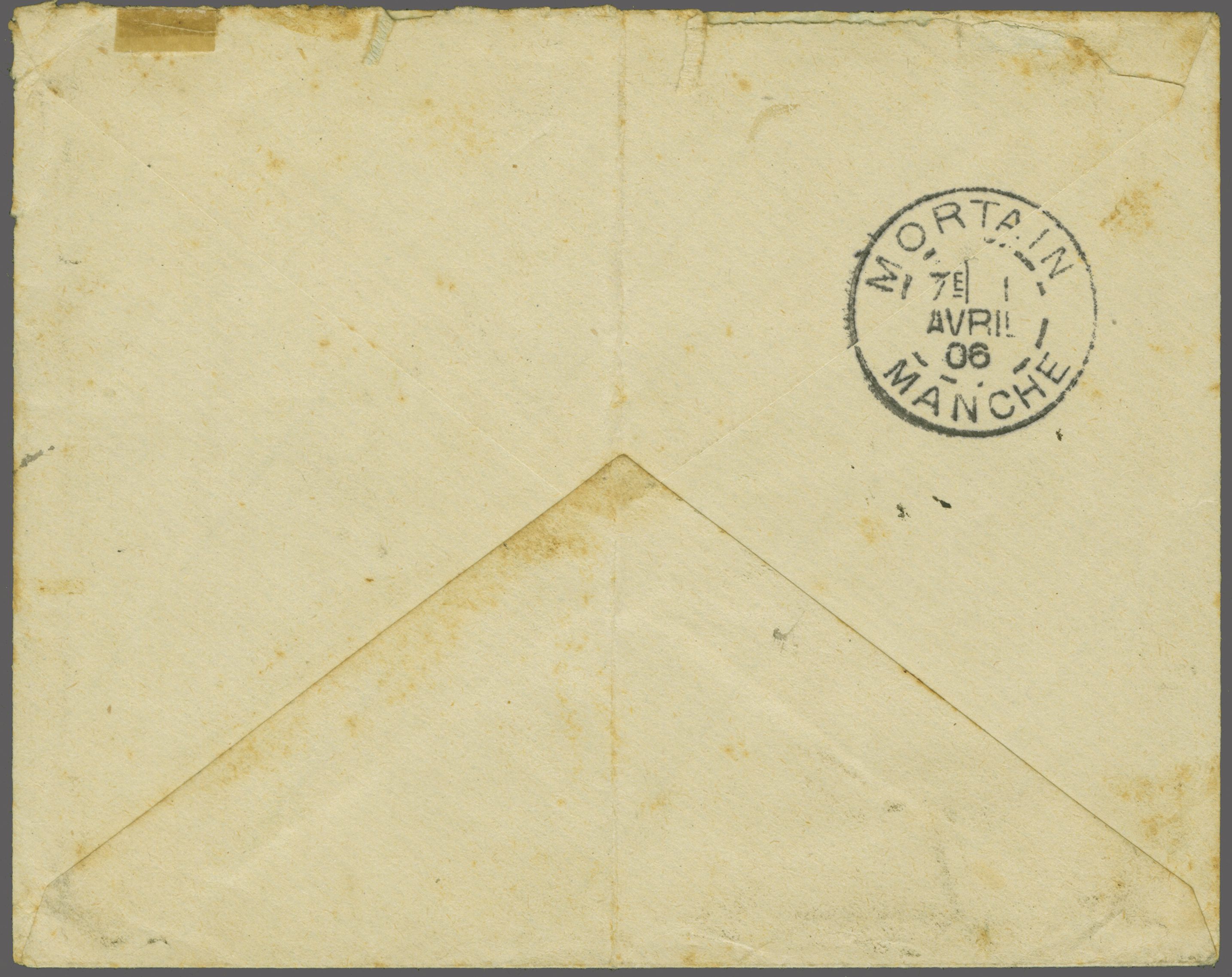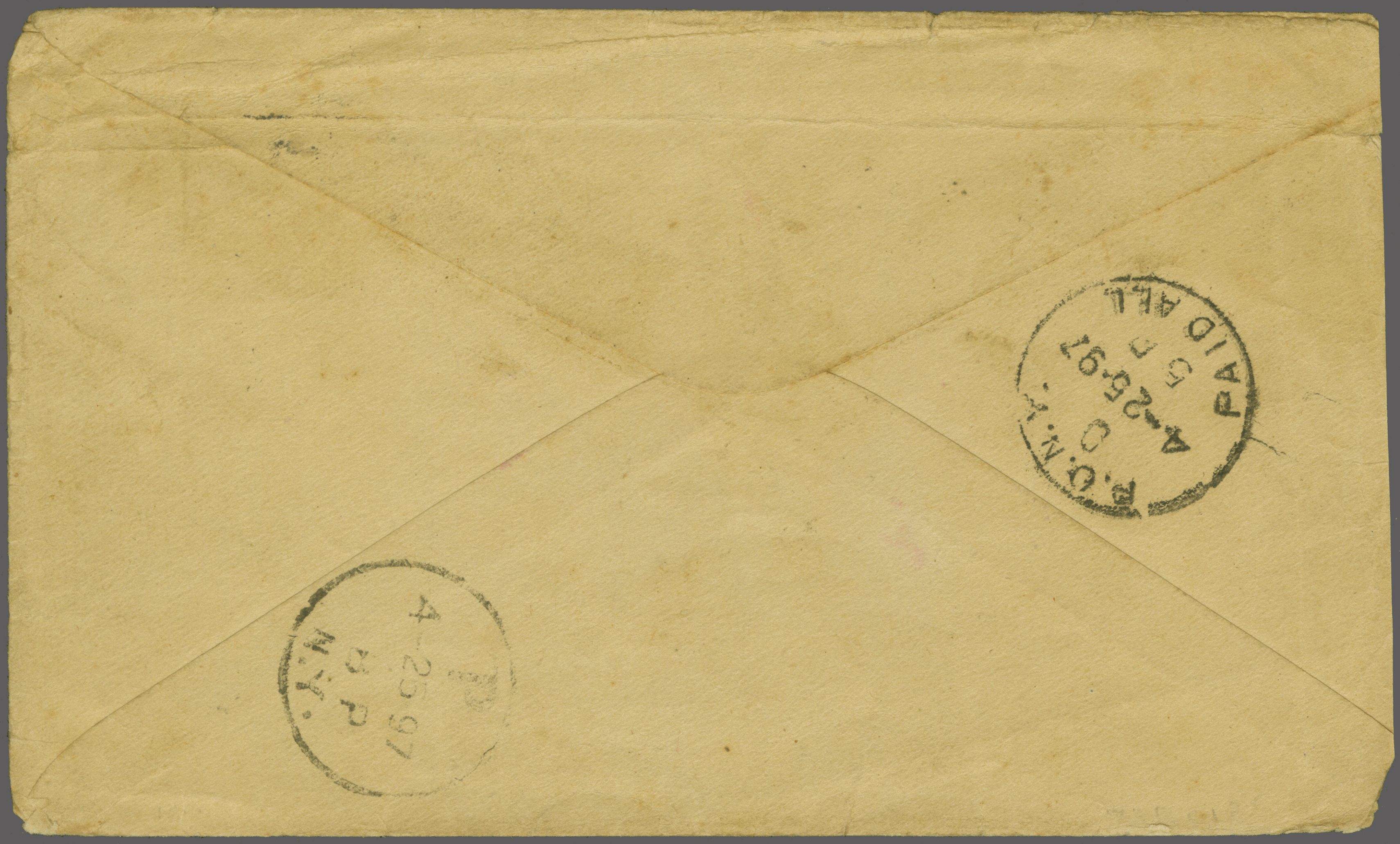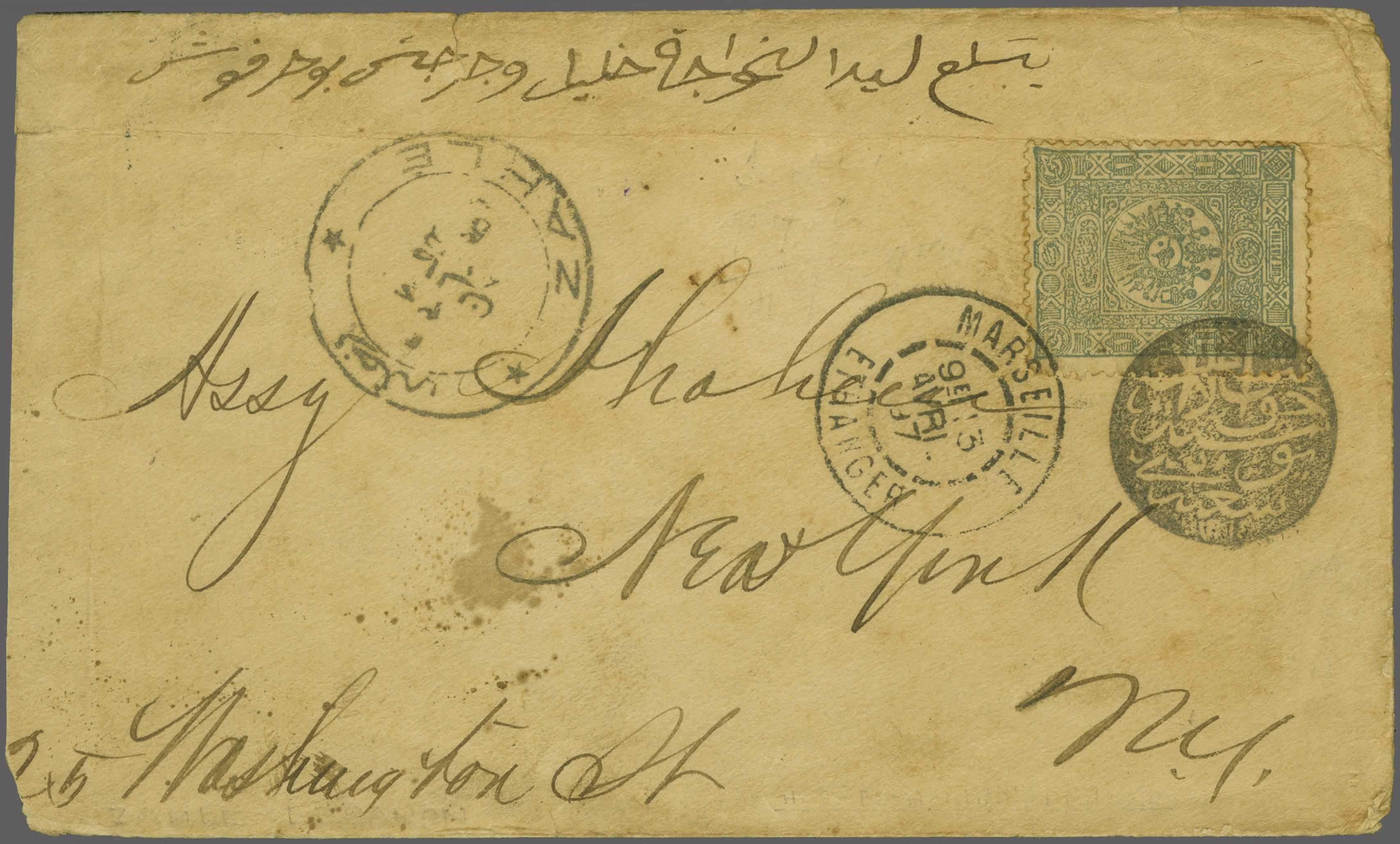 Branch) in black (Coles & Walker unlisted, Ziya unlisted) with "ZAHLE" cds alongside (April 5) and Marseille transit cds also tying the adhesive (April 13). Reverse with New York arrival (April 25). Slight envelope imperfections. Unique (Image 1)