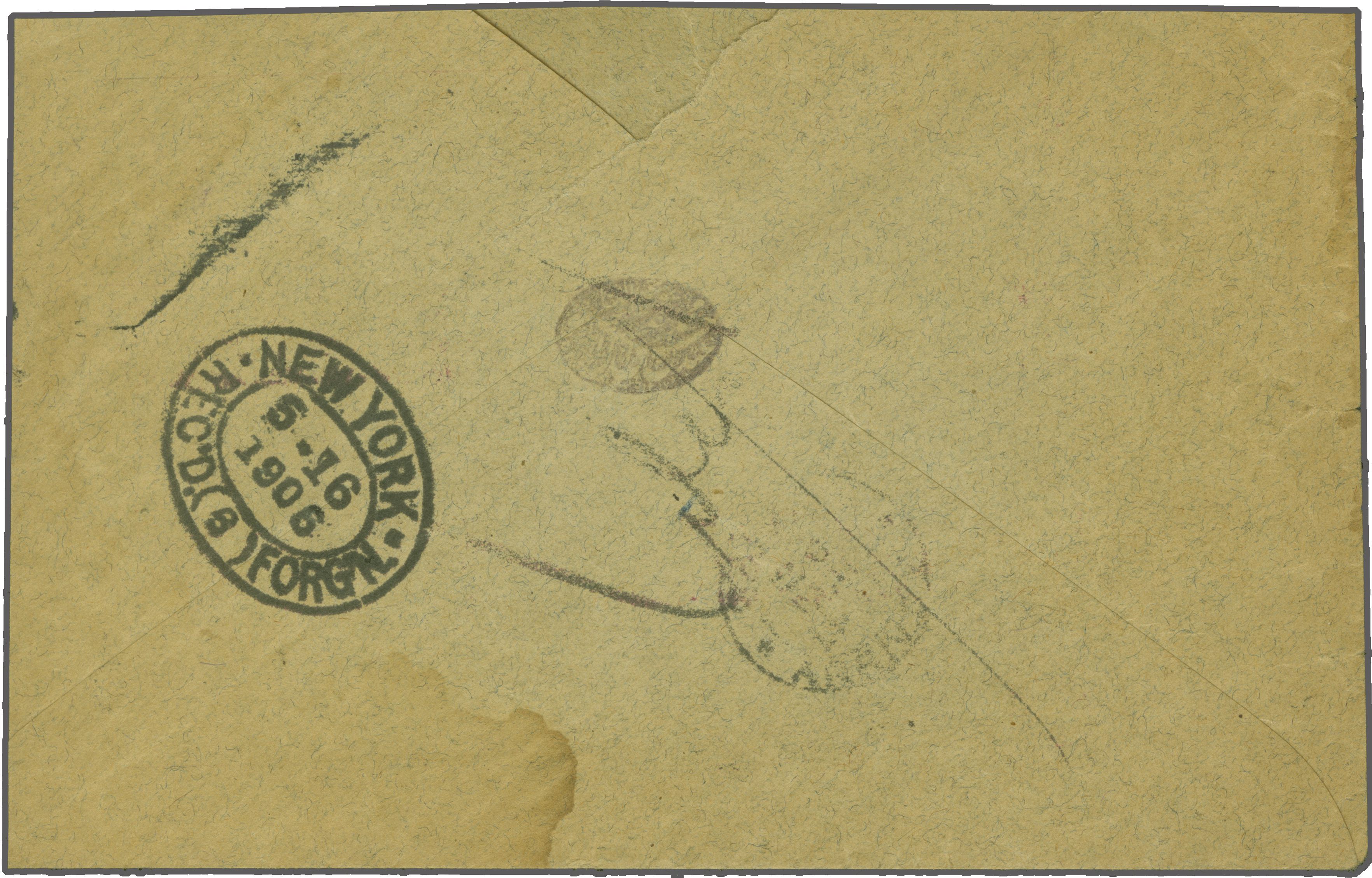 (Coles & Walker fig. 188 / Ziya unlisted). New York arrival on reverse (May 16). The cover with slight stain at right away from the adhesive but very rare, the sole example known (Image 1)