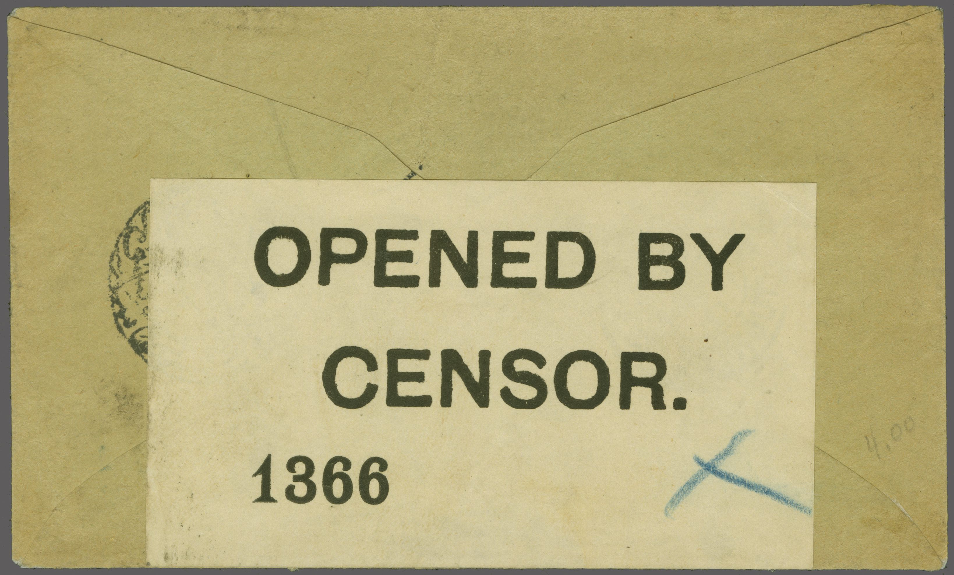 Censor handstamp below Allied "OPENED BY / CENSOR 1366" label. Unique. Note: This cover illustrated in the Ziya catalogue 'M - N' on page 104 (Image