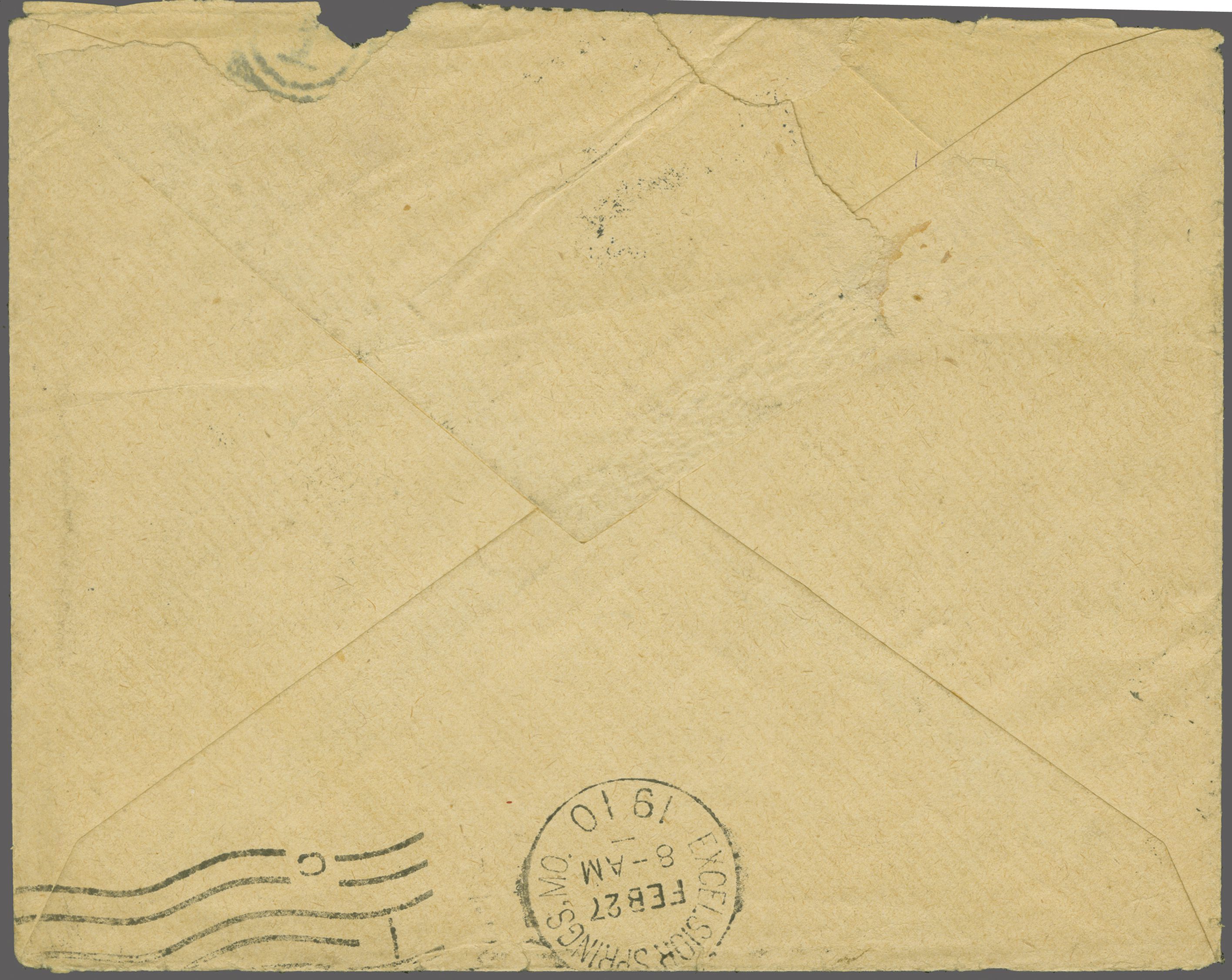 (Coles & Walker unlisted, Ziya fig. 1 - rated 'RRR') with St. Louis, M. arrival duplex (Feb 26) above and arrival (Feb 27) on reverse. Strike somewhat weak but believed unique. Note: This cover is illustrated in the Ziya catalogue 'O - R' on page