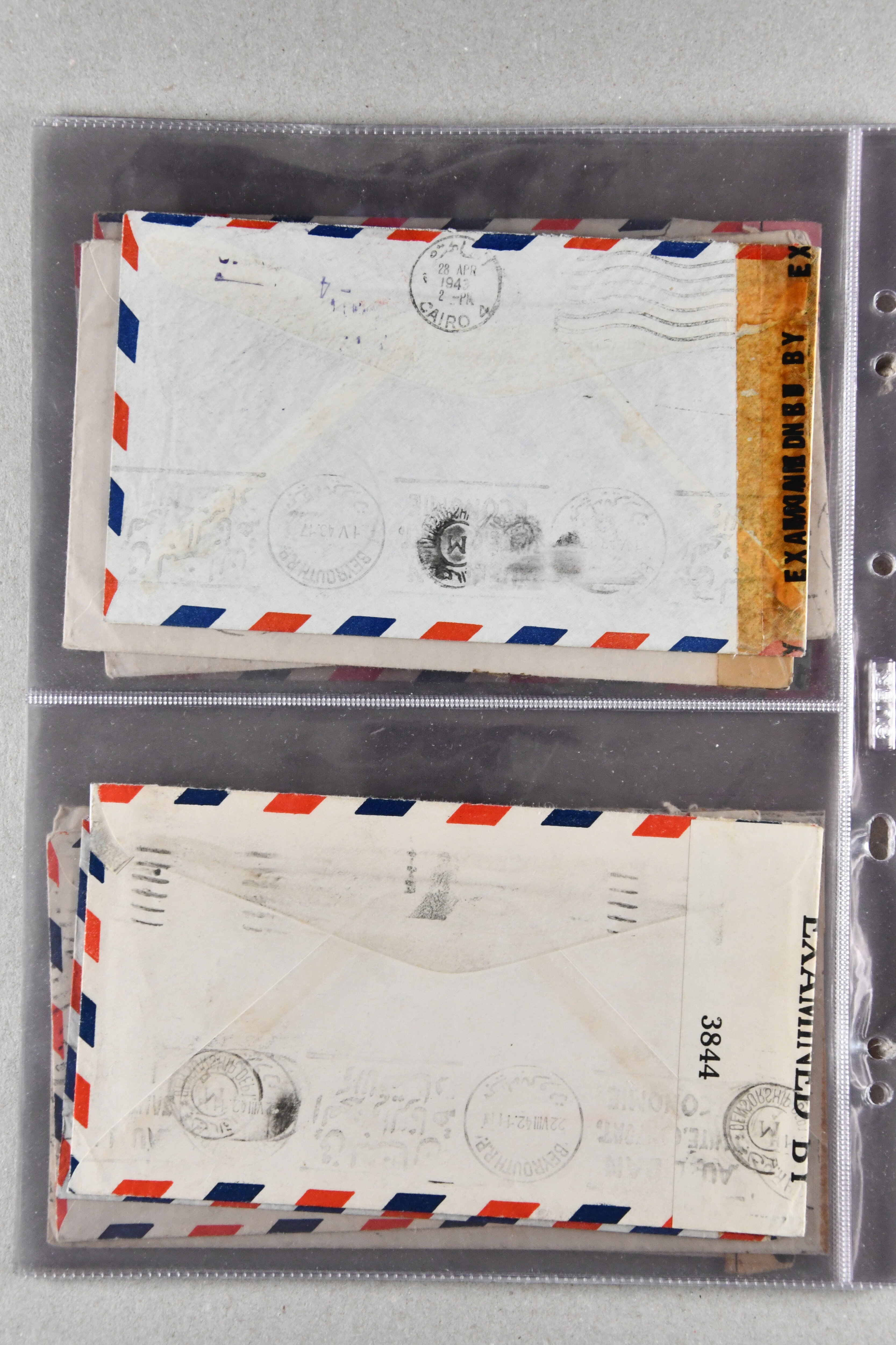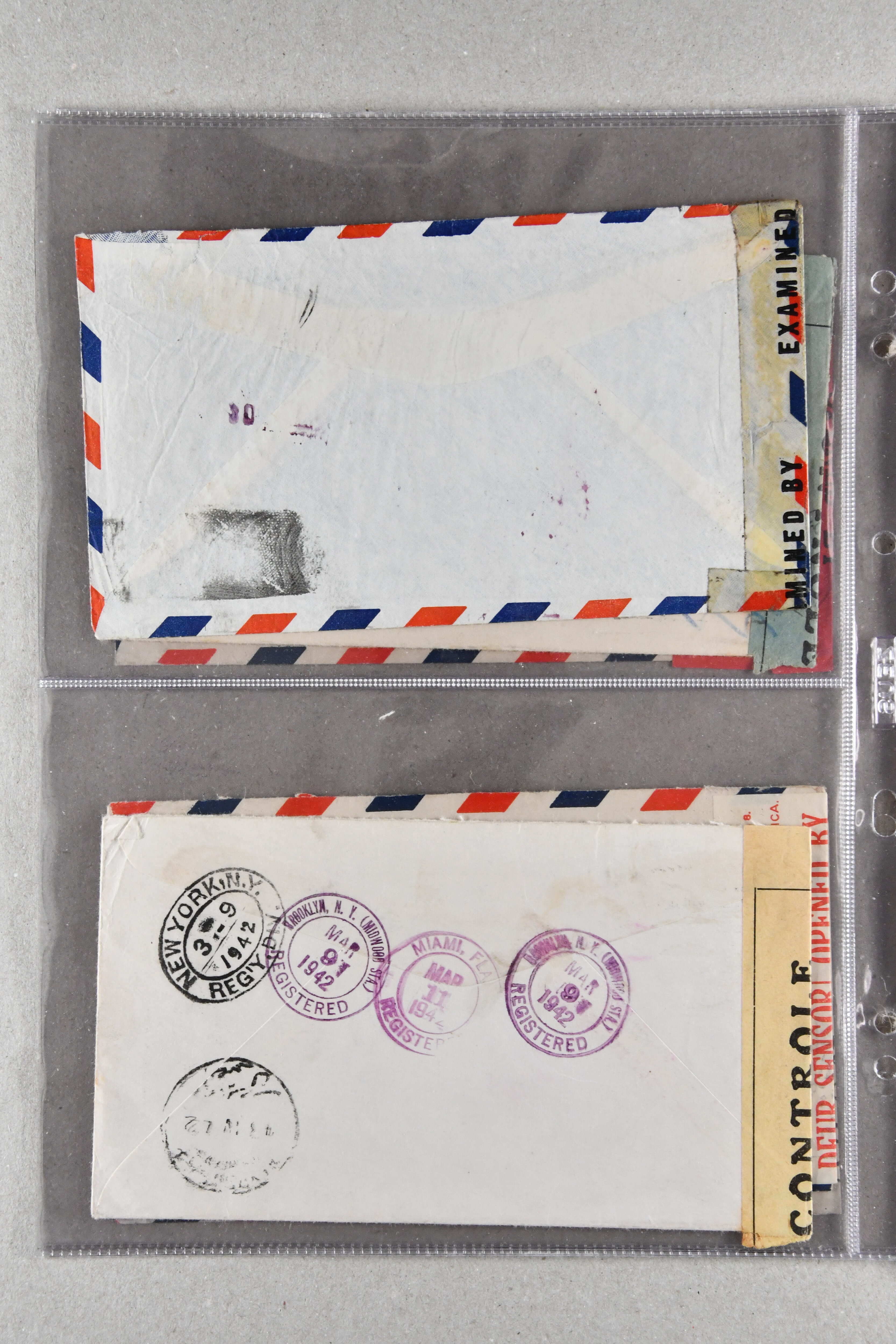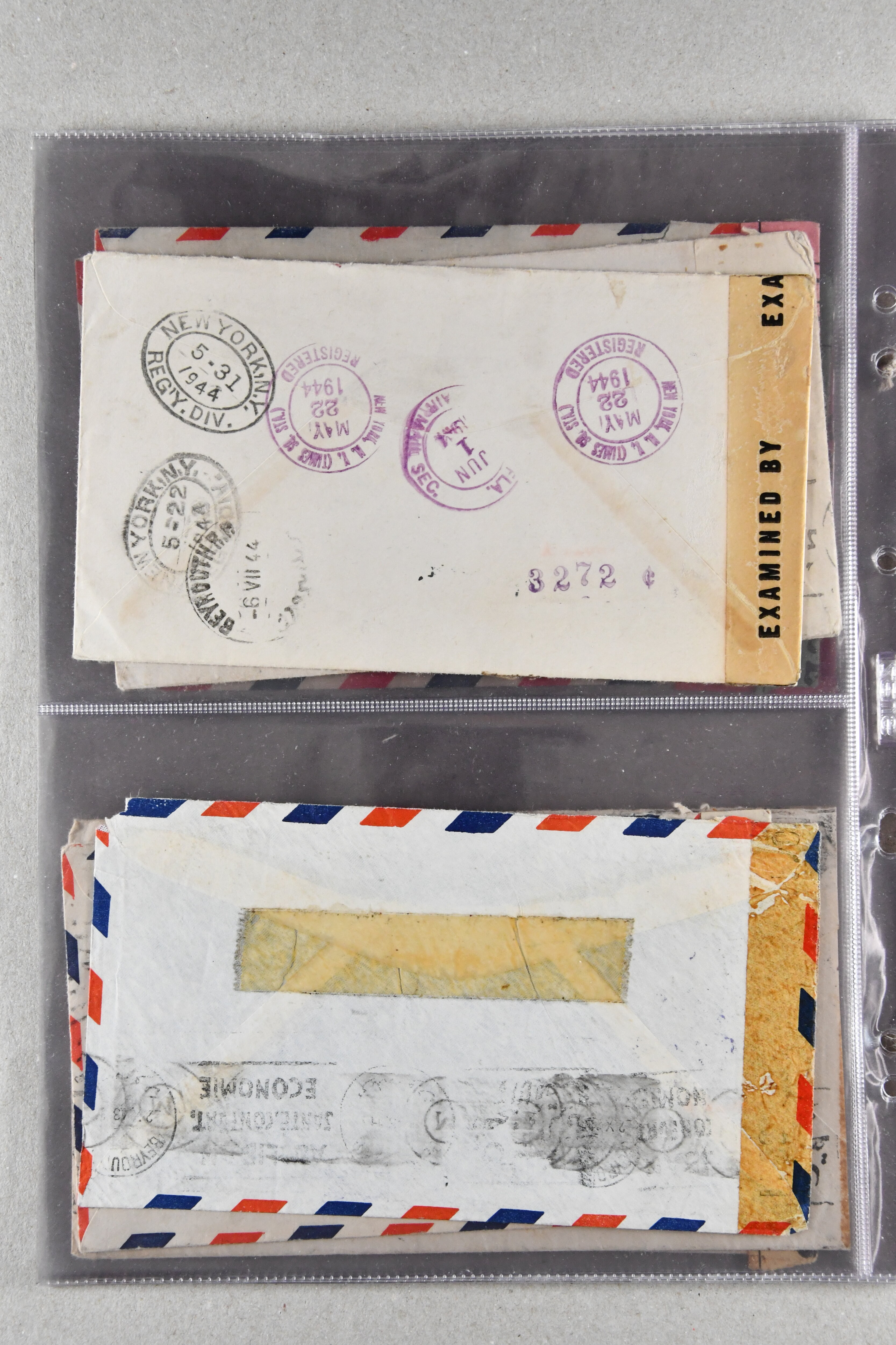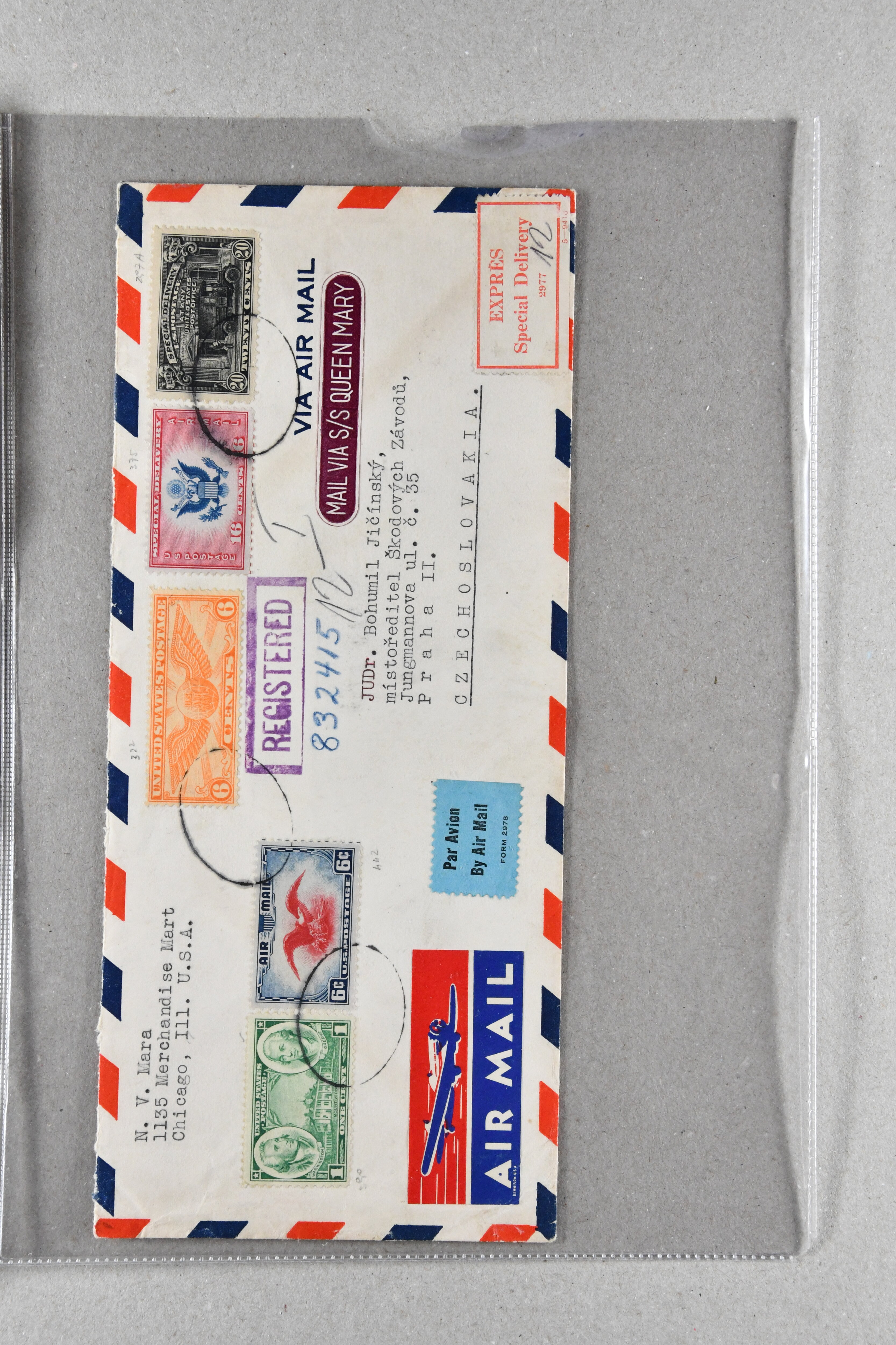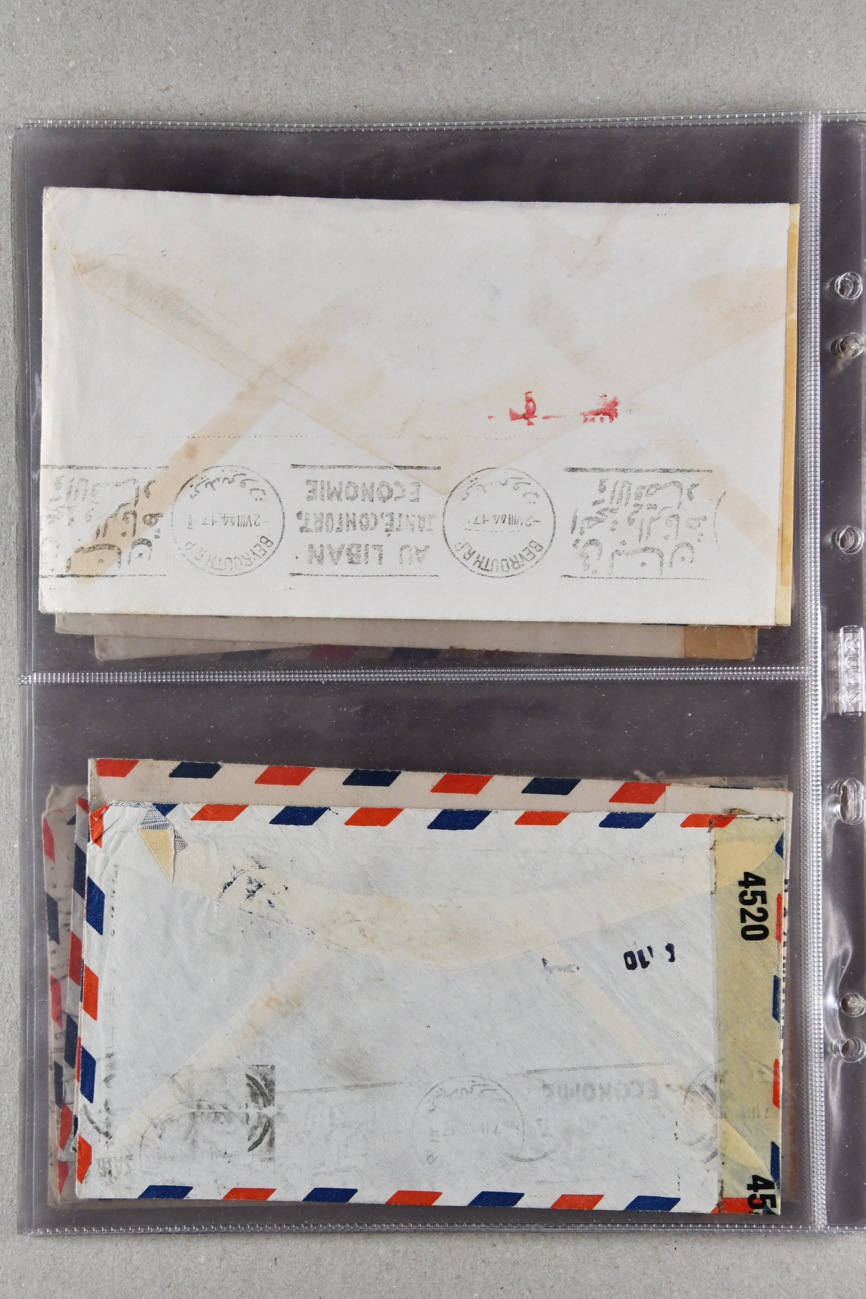 1156 cover image1938/44: United States WWII Airmail to Lebanon and Europe. Lot of 25 airmail covers, franked with a variety of US airmail and definitive issues of the period, showing a broad range of rates and combinations. 23 covers addressed to Beirut, Lebanon, plus 1 to Germany and 1 to Czechoslovakia. Nearly all covers show wartime censor markings or resealing labels, including US and foreign censor handstamps/tapes. Clear strikes of Boston, Chicago, Berwyn, New York and Jackson Hieghts and other US postmarks. Strong representation of the 1938 Transatlantic Clipper issue (10 ¢. & 25 ¢.). Several covers show mixed franking with definitives or commemoratives. Carried during the crucial WWII years when transatlantic and Middle East airmail routes were disrupted, rerouted, or censored. Covers to Lebanon reflect the shifting control of the French Mandate (Vichy / Free French), adding further postal-historical significance. Overall good to fine, typical flaws and opening wear. An appealing group for the collector of WWII postal history, US airmail usages, or Middle East destinations. The Lebanon correspondence, with varied censoring and frankings, provides excellent material for study or exhibit (Image 1) (Image 2) (Image 3) (Image 4) (Image 5) (Image 6) (Image 7) (Image 8) (Image 9) (Image 10) (Image 11) (Image 12) (Image 13) (Image 14) (Image 15) (Image 16) (Image 17) (Image 18) (Image 19) (Image 20) (Image 21) (Image 22) (Image 23) (Image 24) (Image 25)