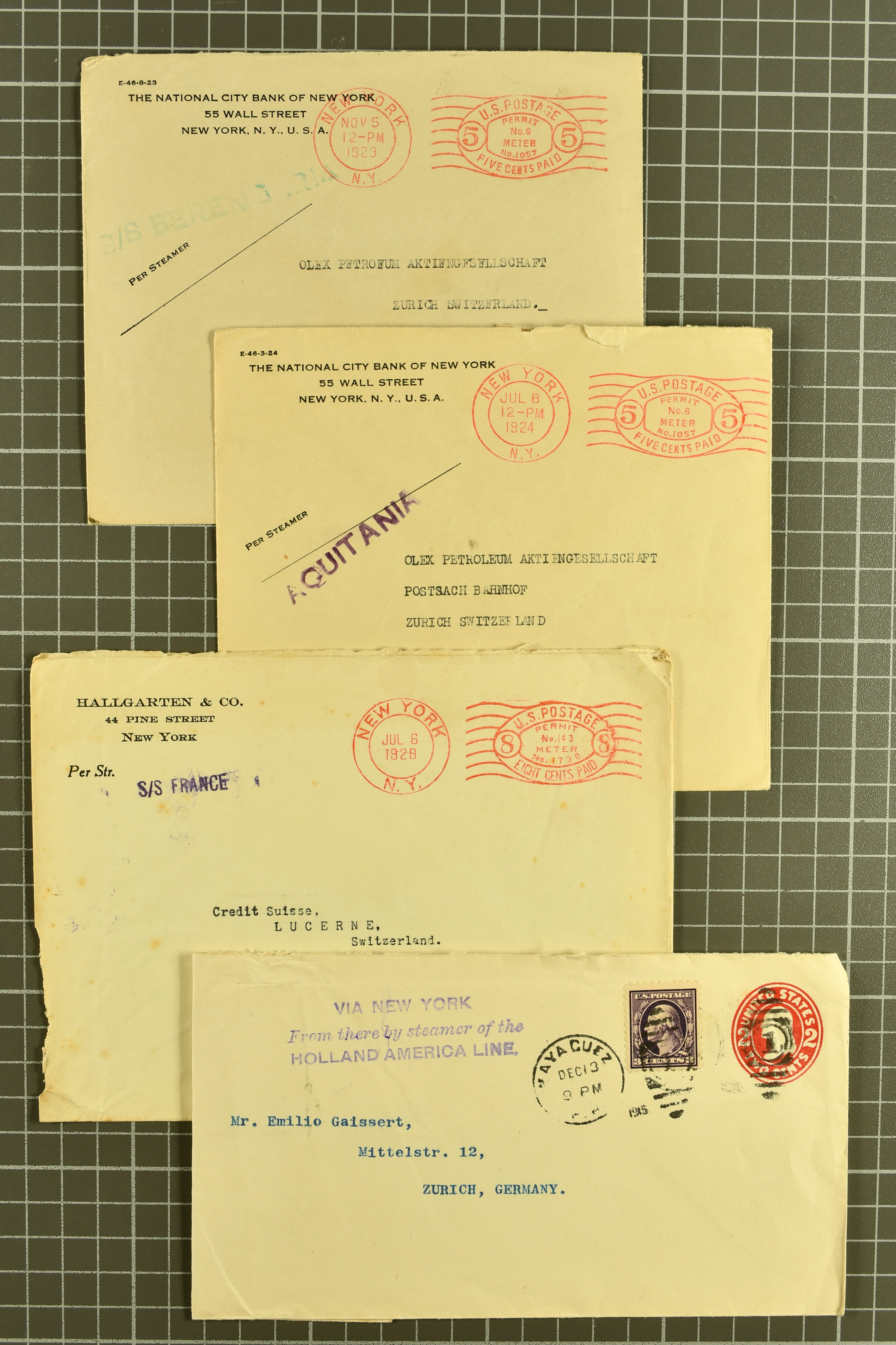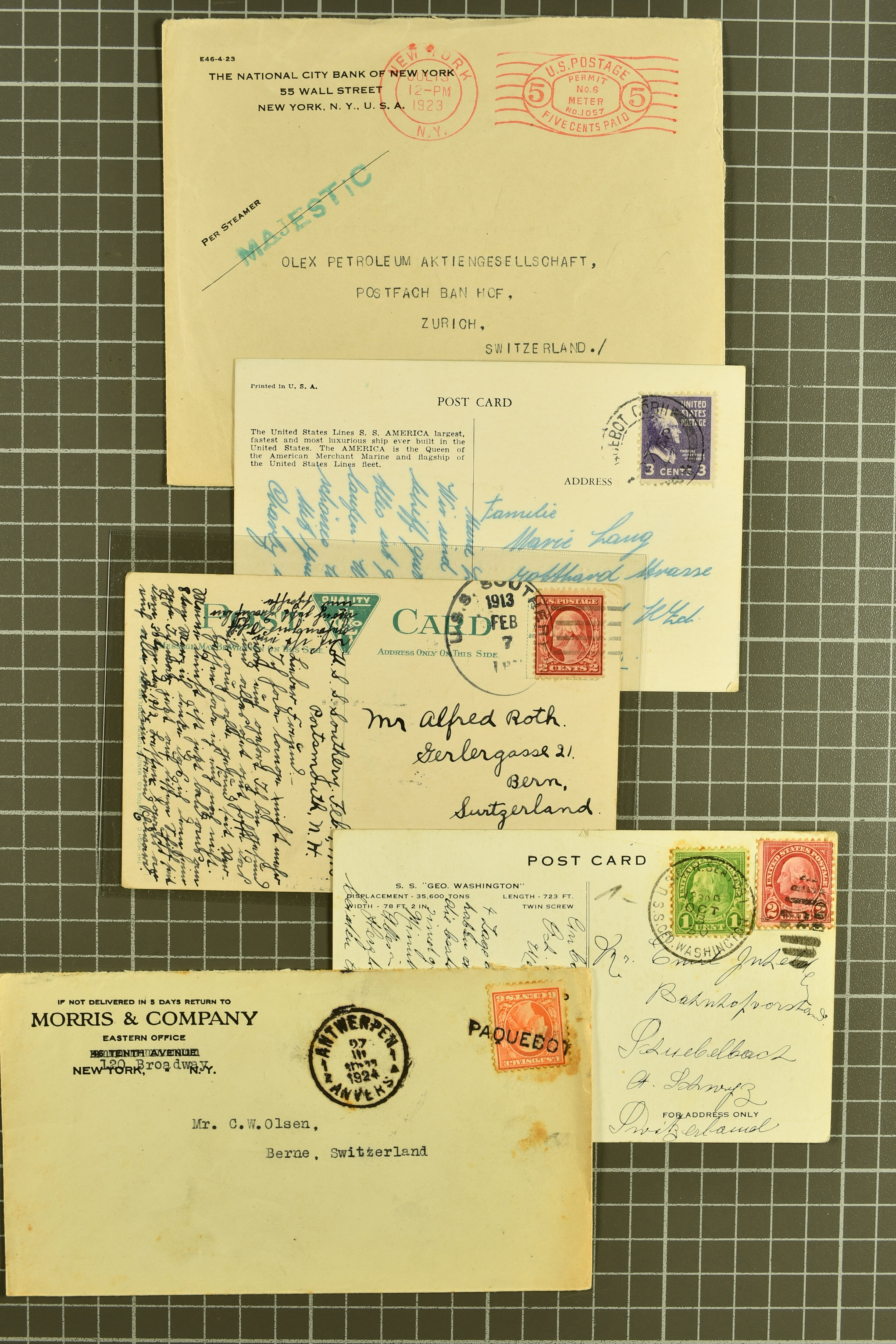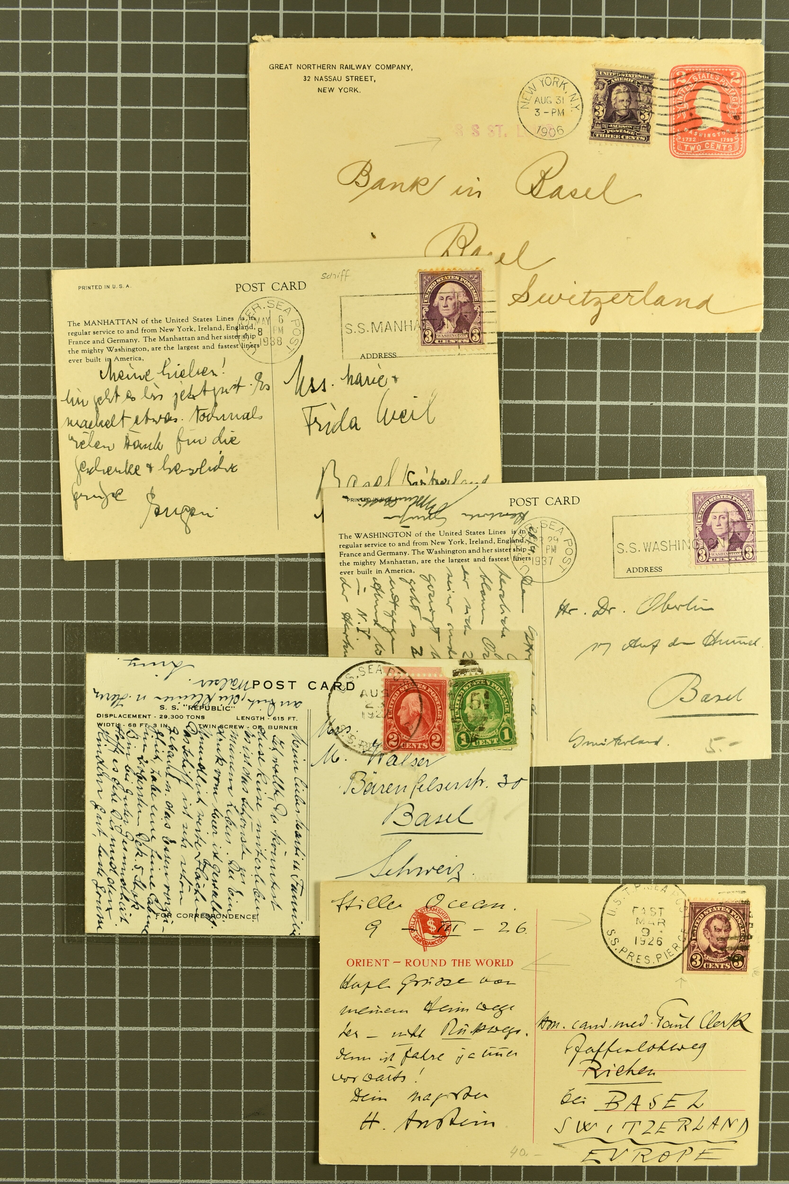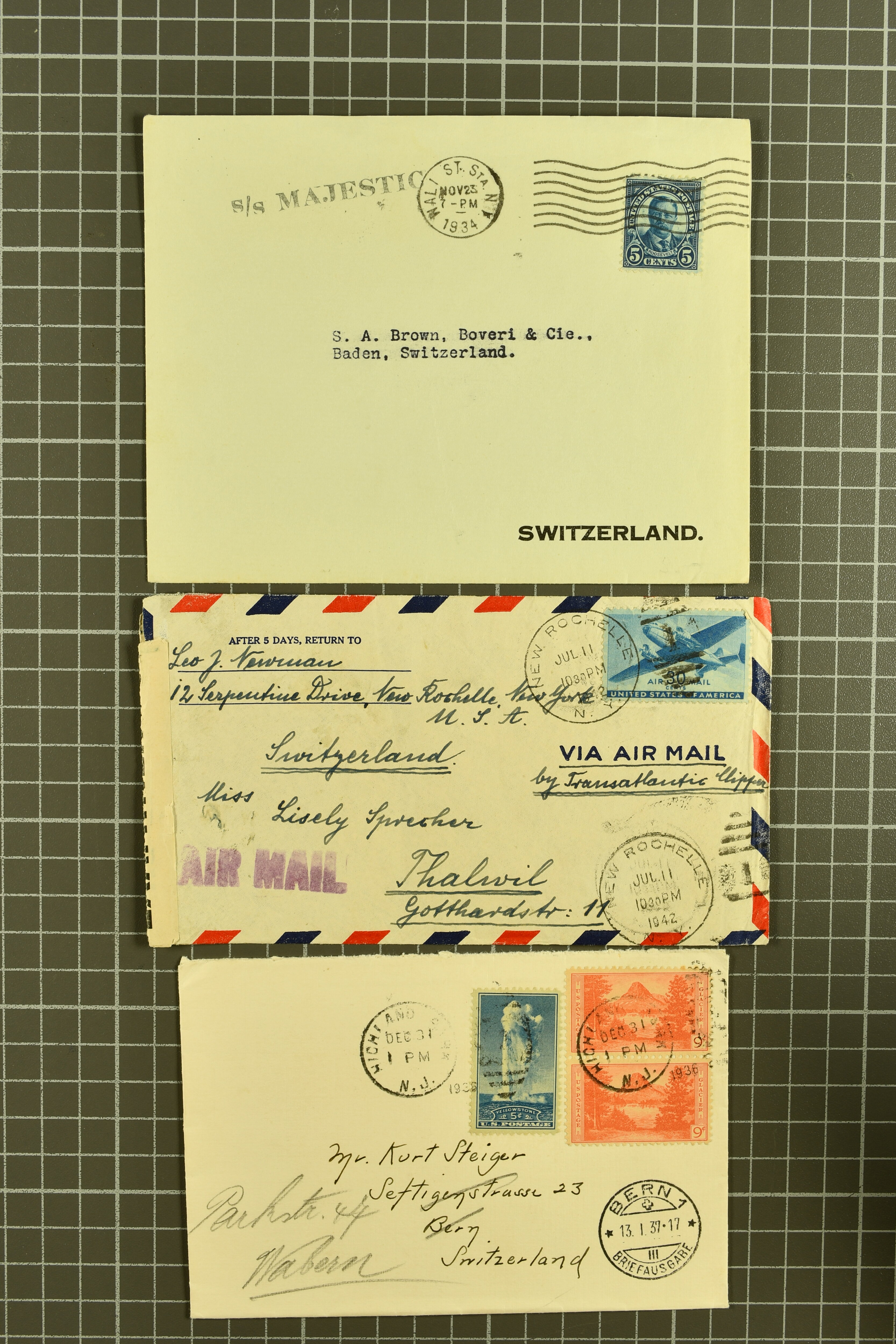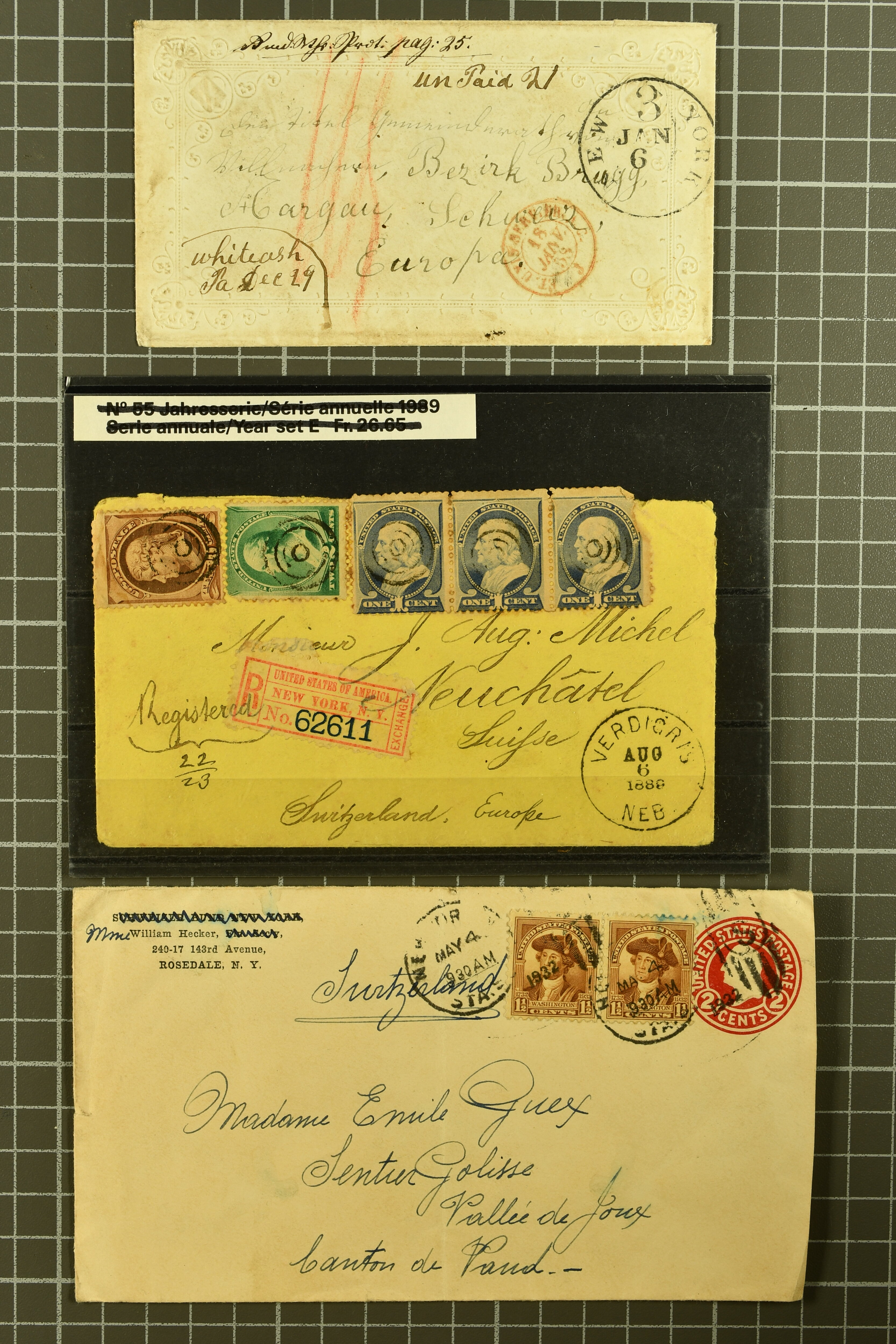 1152 cover image1840/1945C.: Covers / entire letters to Switzerland (39) from pre-stamp period with Transatlantic Mail incl. a fine 1840 entire letter to Wohlen forwarded through the Gilpin Exchange with superb strike of the Forwarding cachet in red, 1854 cover from St. Louis to Locarno via New York, Southampton and Aachen; also Zeppelin mail, Naval mail, Puerto Rico, covers from named Steamers etc (Image 1) (Image 2) (Image 3) (Image 4) (Image 5) (Image 6) (Image 7) (Image 8) (Image 9) (Image 10) (Image 11) (Image 12)