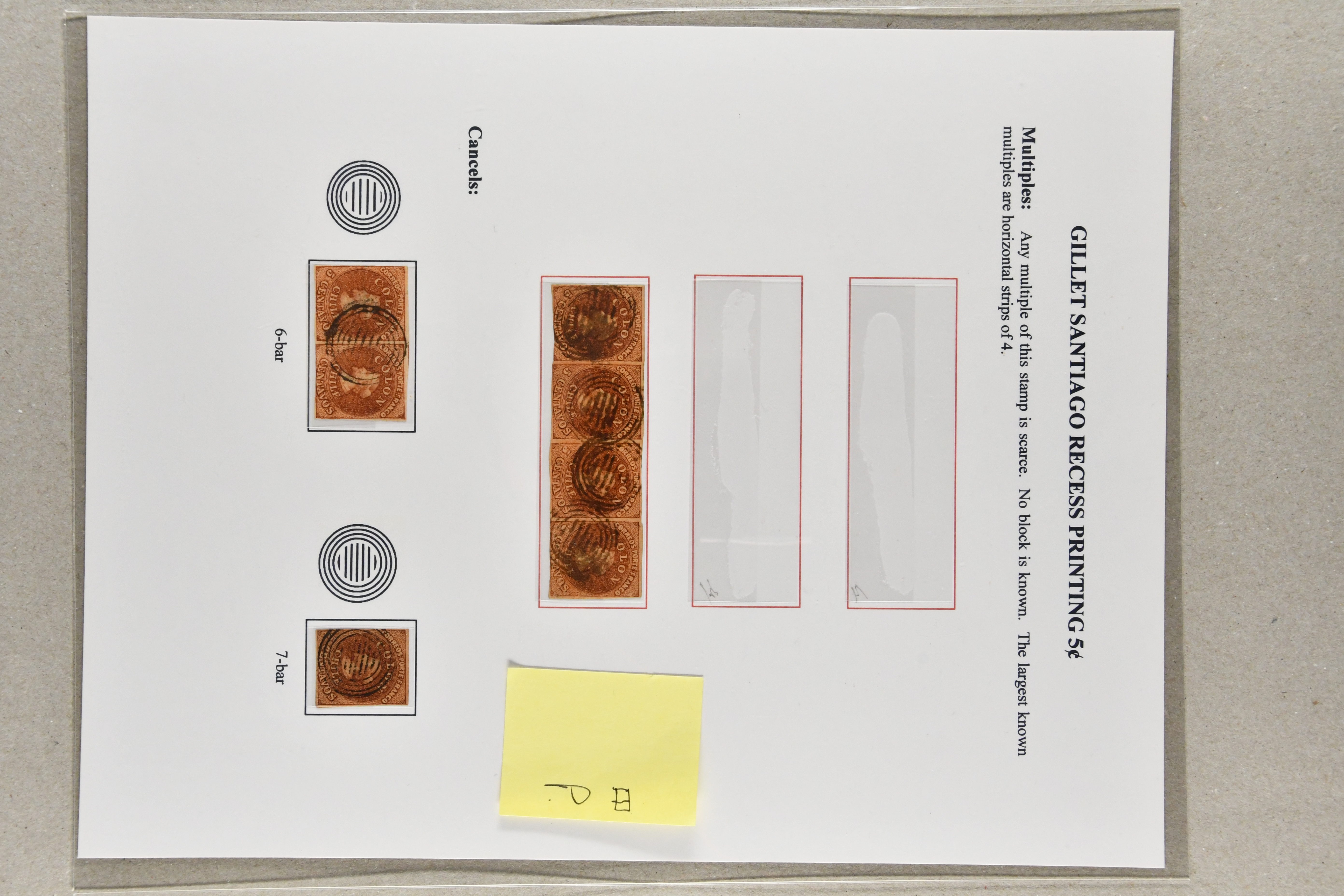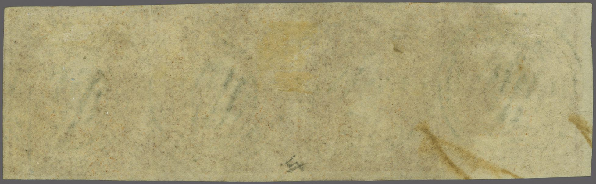 Gillet Recess Printing 1854 (April): 5 c. burnt sienna, wmk. 4, a used horizontal strip of four, good to large margins all round, lightly cancelled by target handstamps in black. A fine and rare multiple. Signed A. Diena Scott