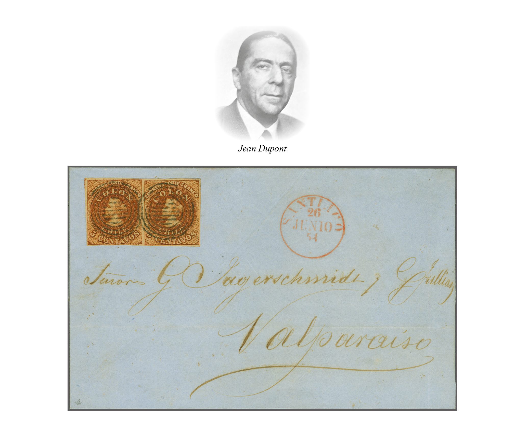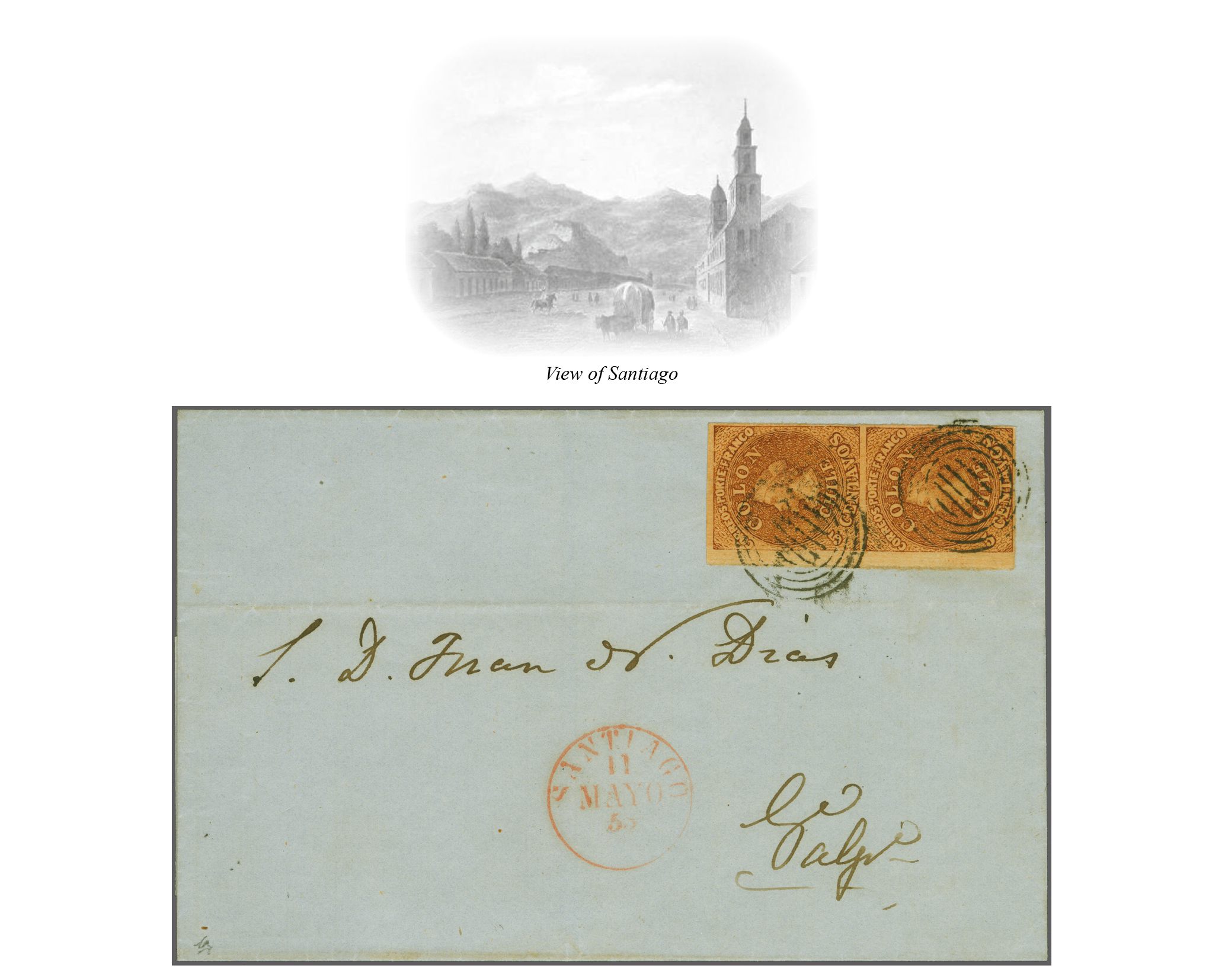 SANTIAGO despatch cds (June 26) in red at right. A fine and very rare cover. Cert. Maier (2025) Scott = $ 900+. Provenance: Collection Jean Dupont, Balasse, London, 8 May 1981, lot 425 (Image 1)