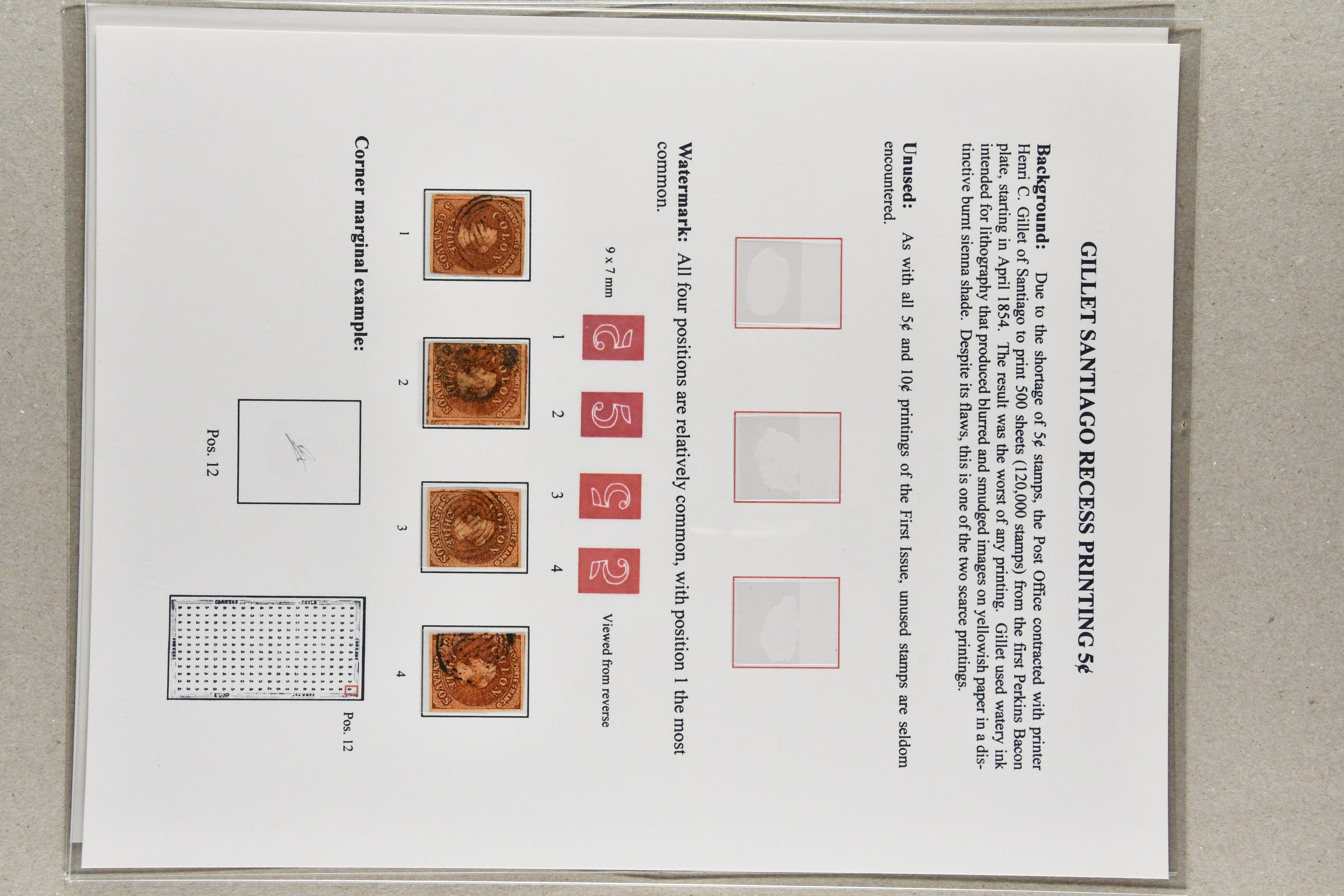 Gillet Recess Printing 1854 (April): 5 c. burnt sienna, wmk. 2, an unused example of rich colour, clear to large margins all round, without gum. A very rare stamp unused Scott = $ 1'800 (Image 1)