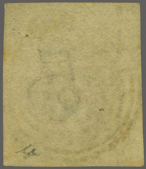 target handstamp in black leaving the varities remarkably clear. An extremely rare stamp. Signed Holcombe. Provenance: Collection Alfred H. Caspary, Harmers, New York, 2-5 June 1958, lot 684; collection "Islander" (Dr. Norman Hubbard); Siegel, New