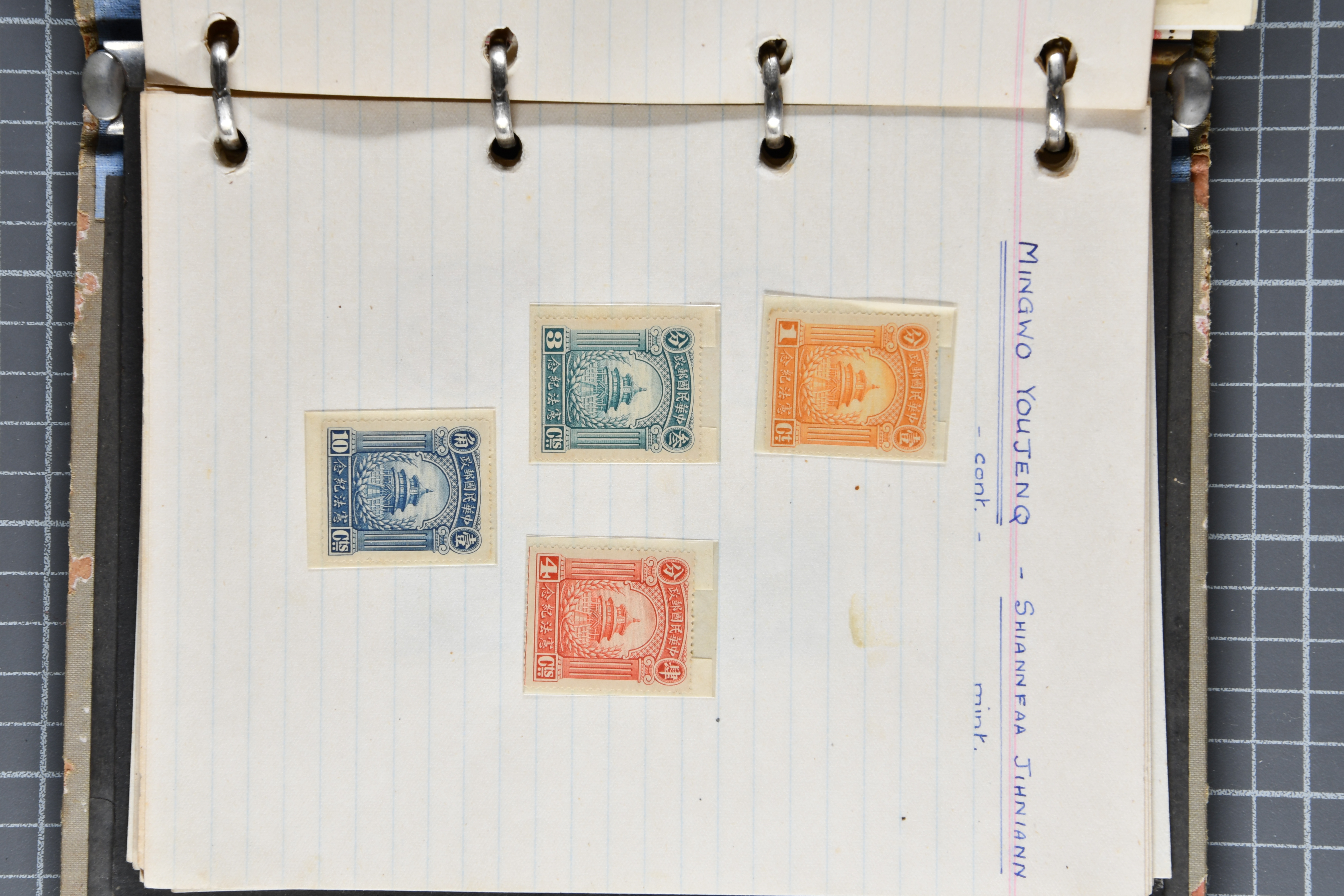 1944 Mao Tse-tung litho 10 c- yellow-green pair and 50 c. brown pairs (2) imperforate, North China 1945 Victory over Japan set of eight unused (large format) and 1946 Victory part set of fourteen unused, Taiwan 1945 set of nine unused, Japan National