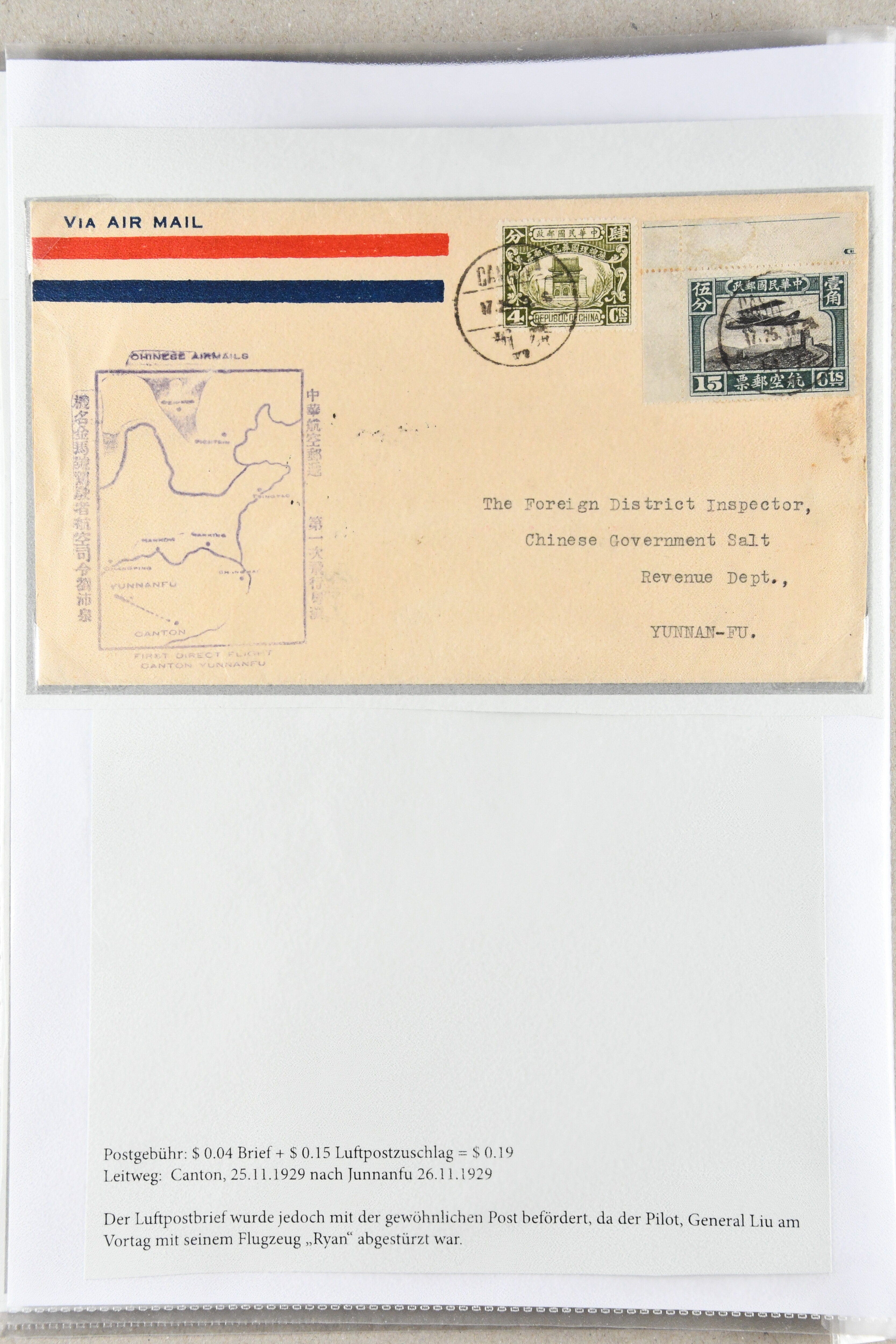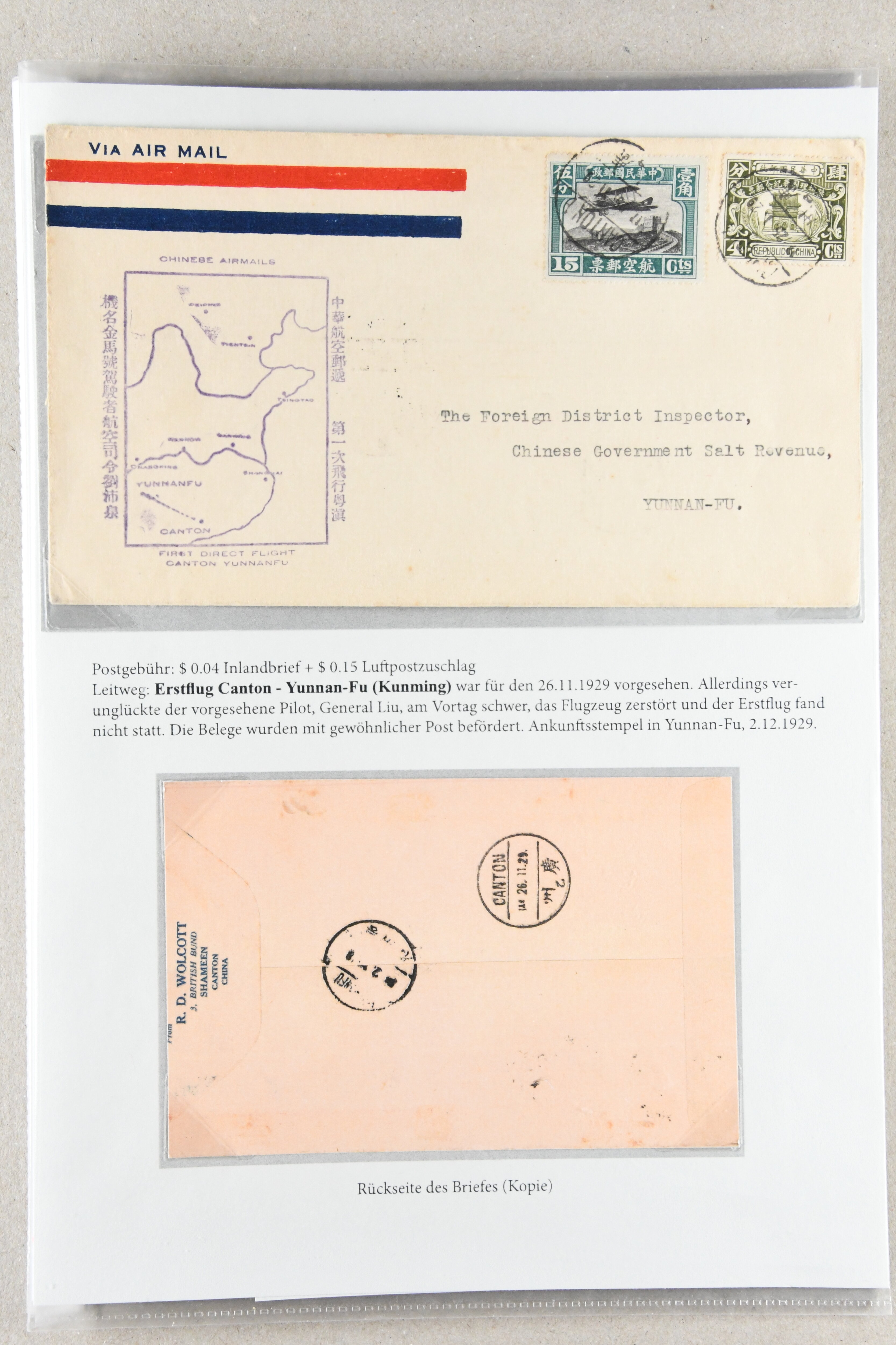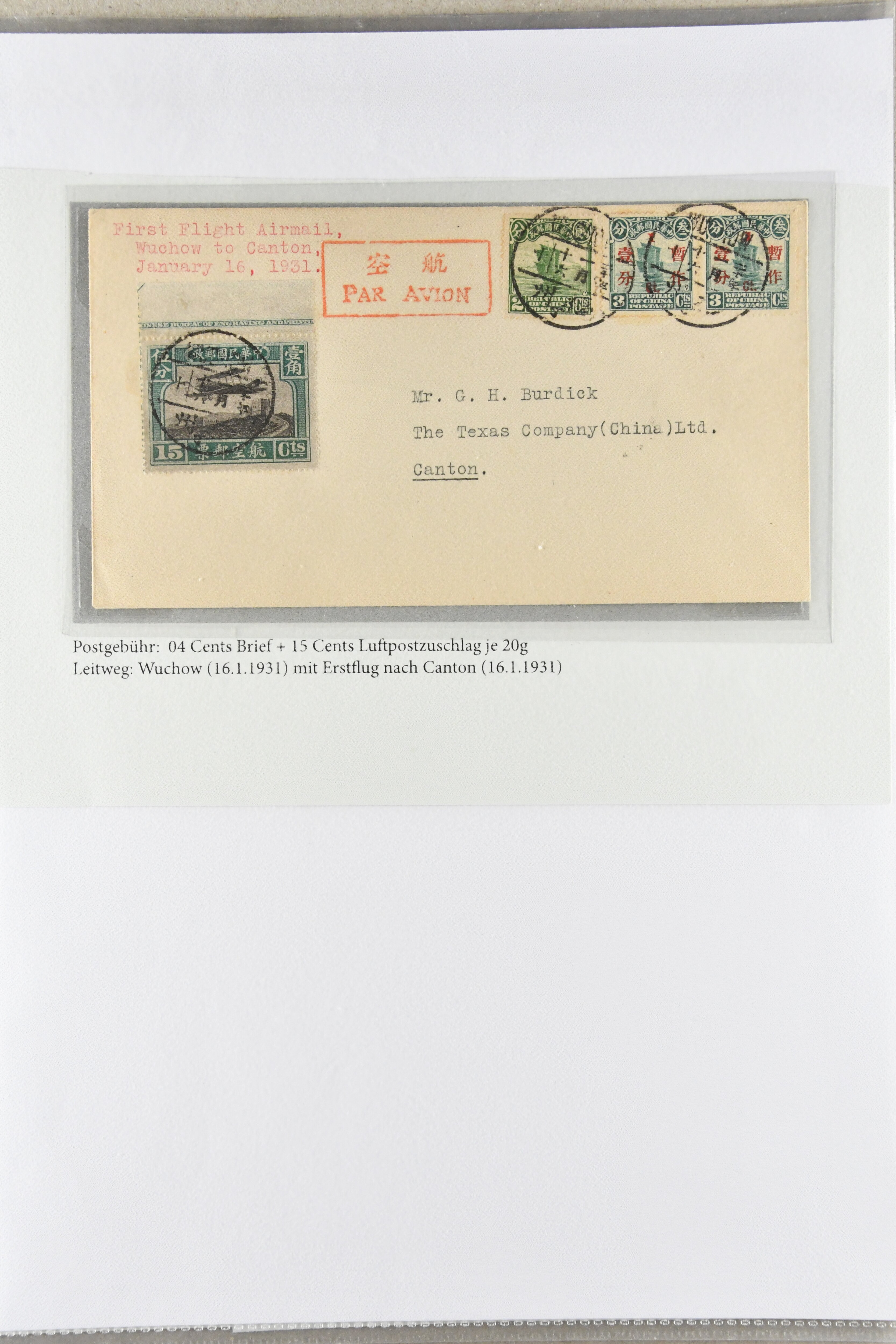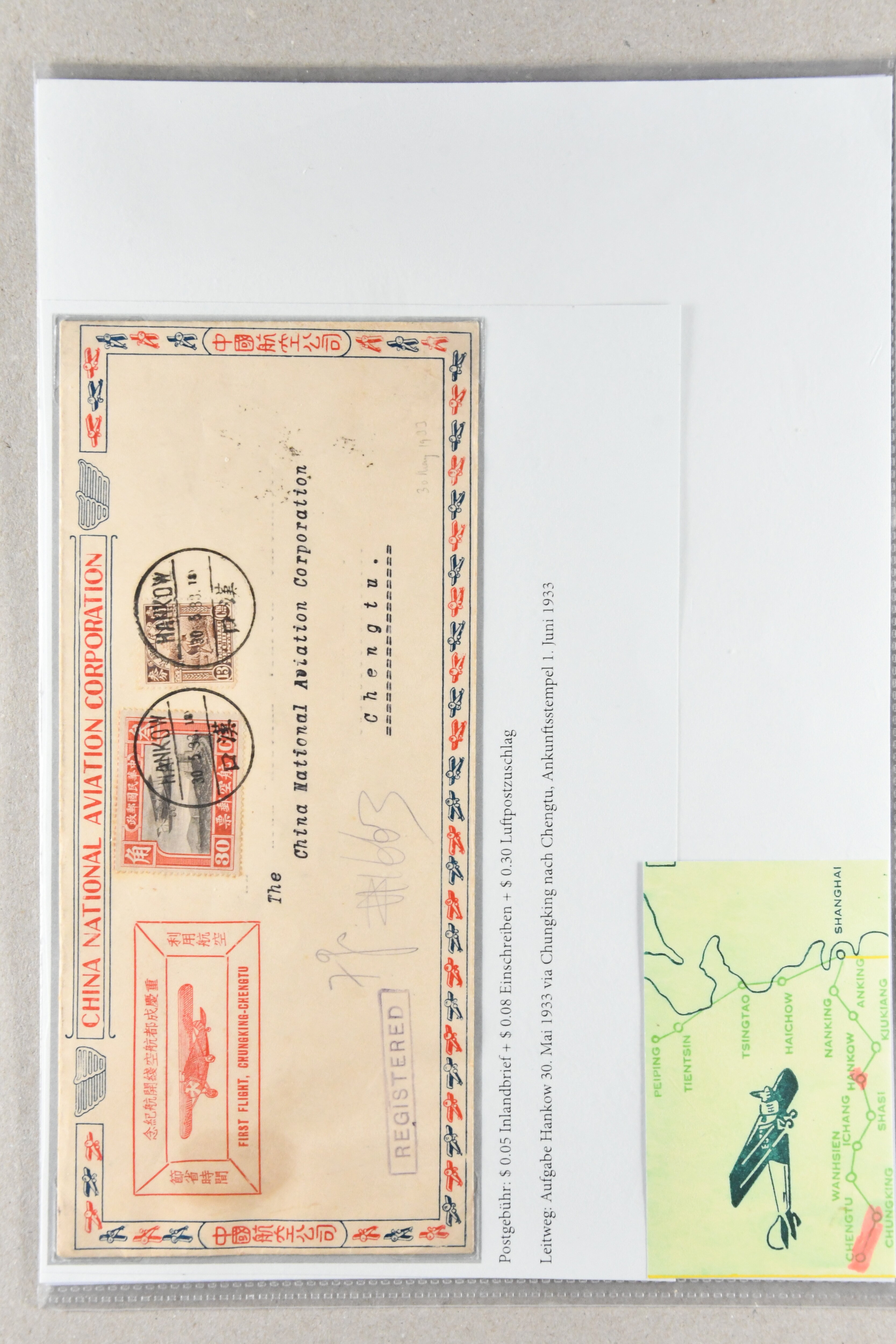 day before) as well as pre-printed First Flight envelope of 1933 Chungking-Chengtu flight franked with 1921 airpost 30 c. tied by "Hankow 30.5.33" cds's. A fine and scarce group (Image 1)
