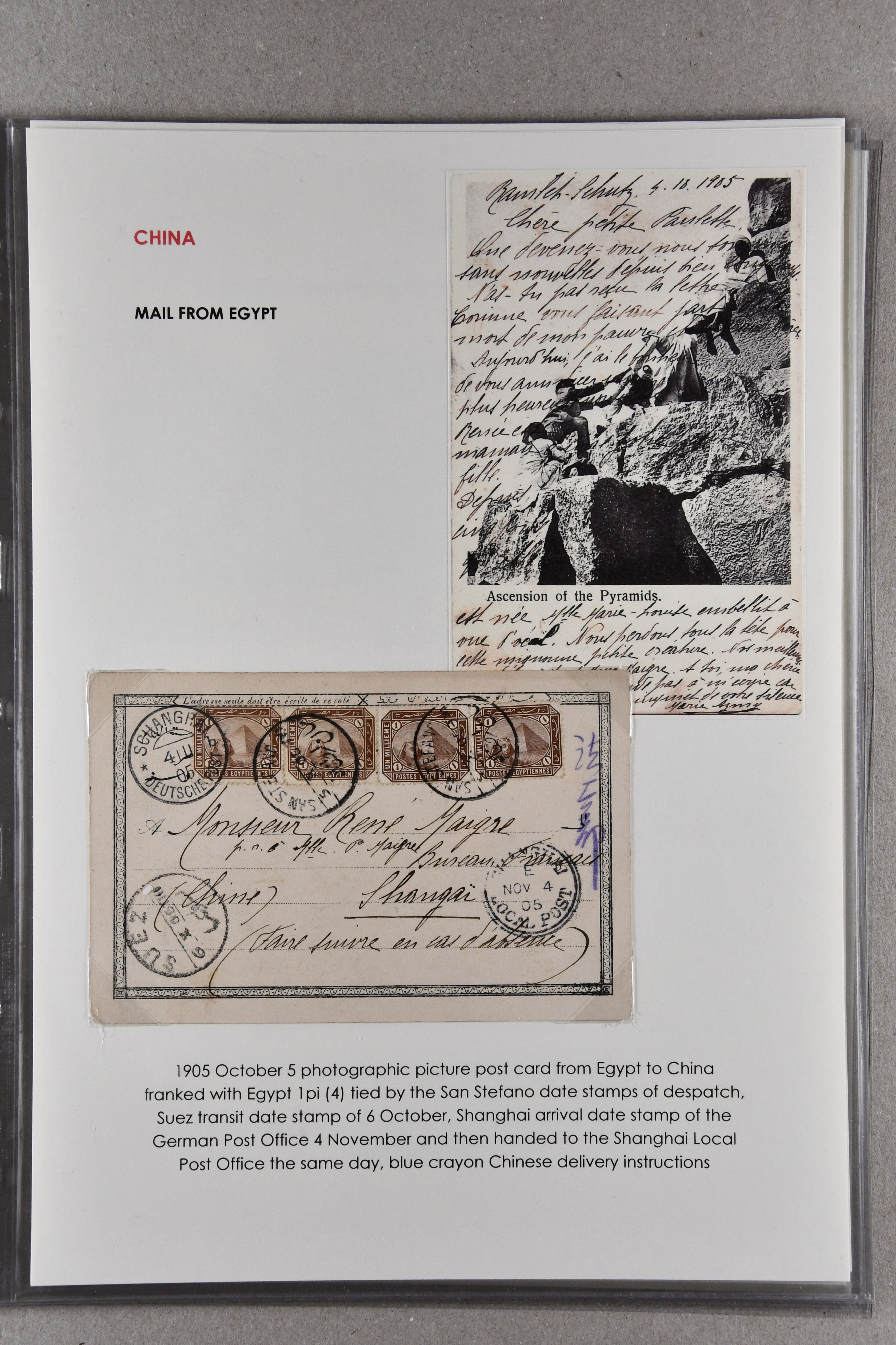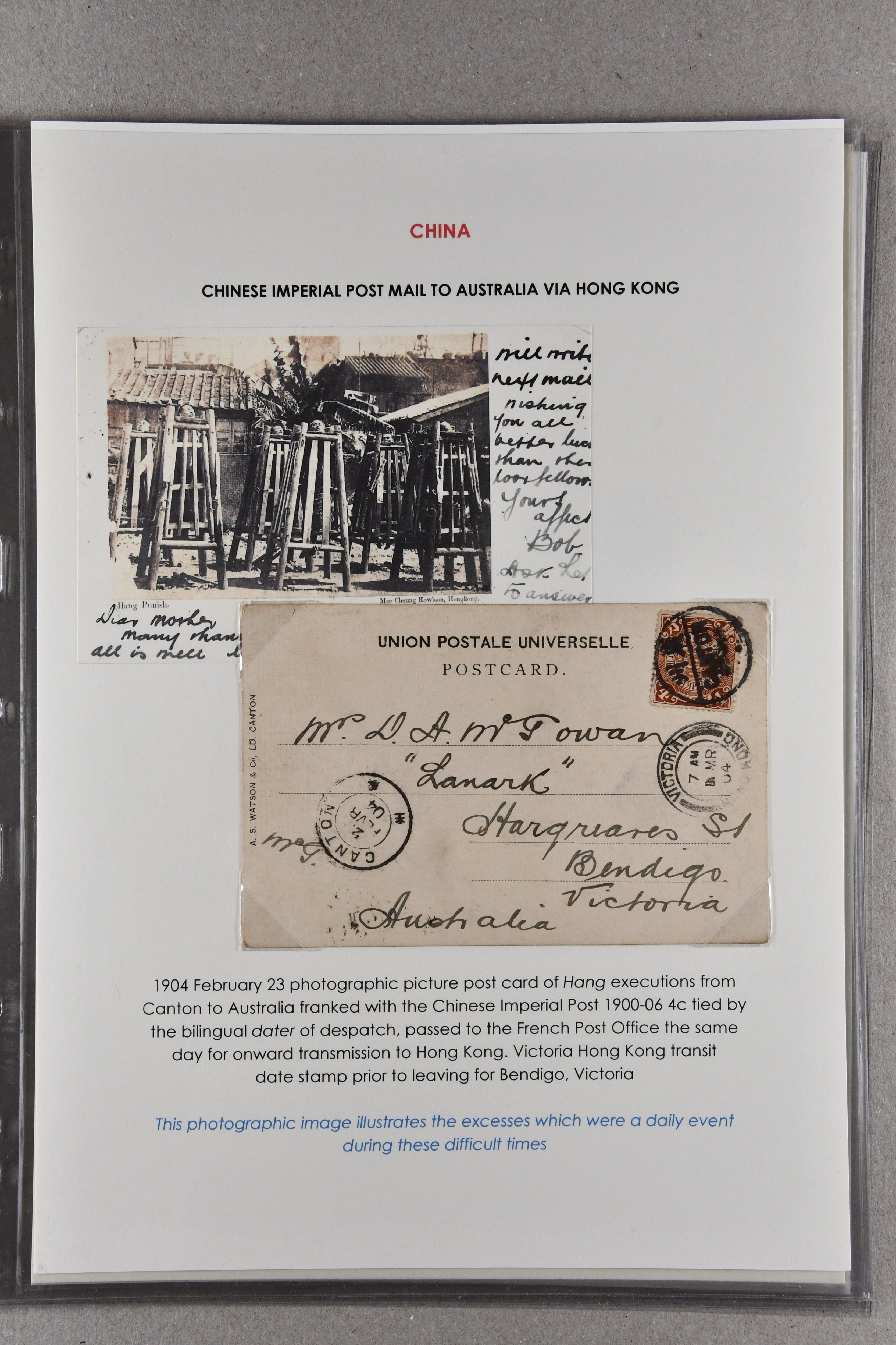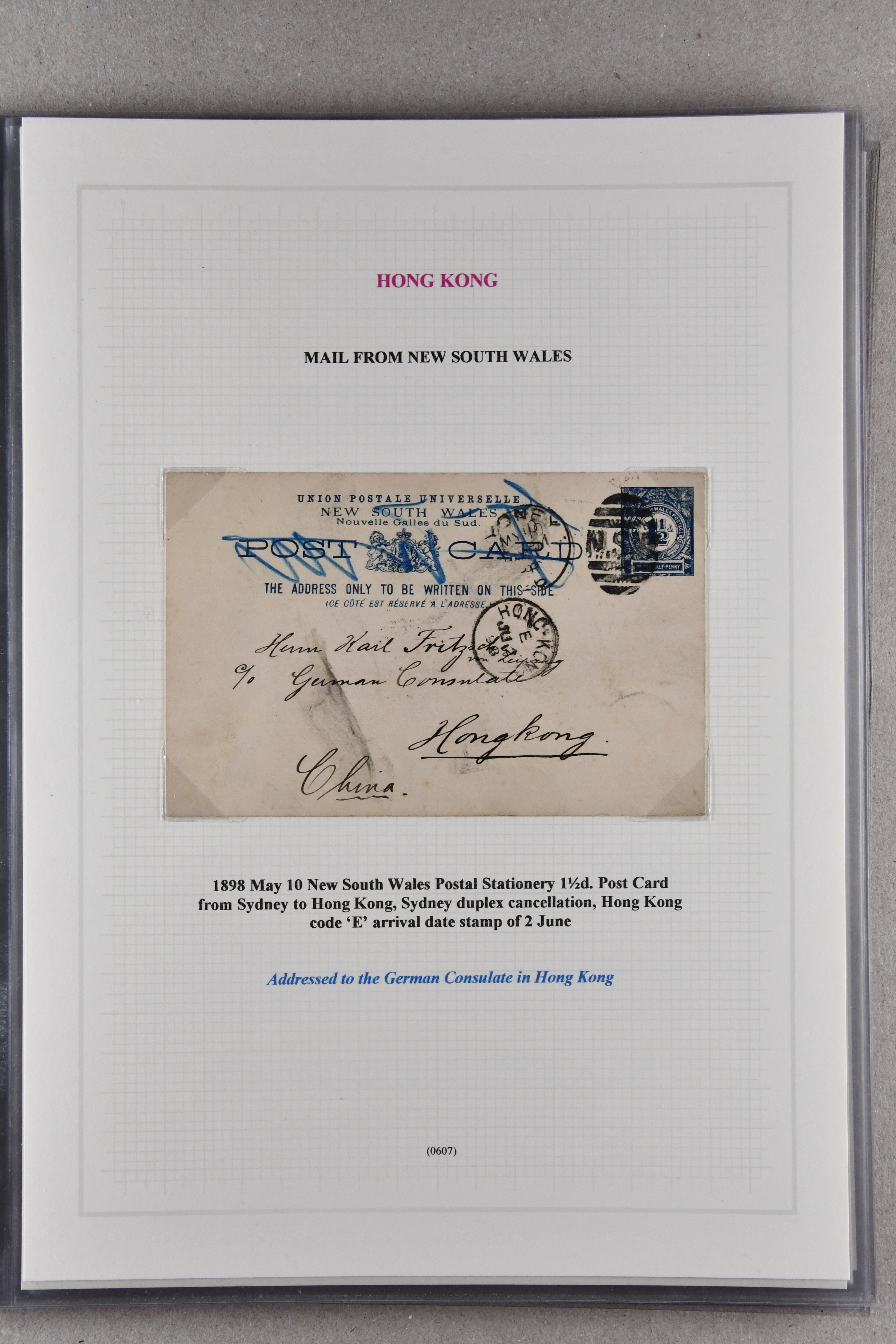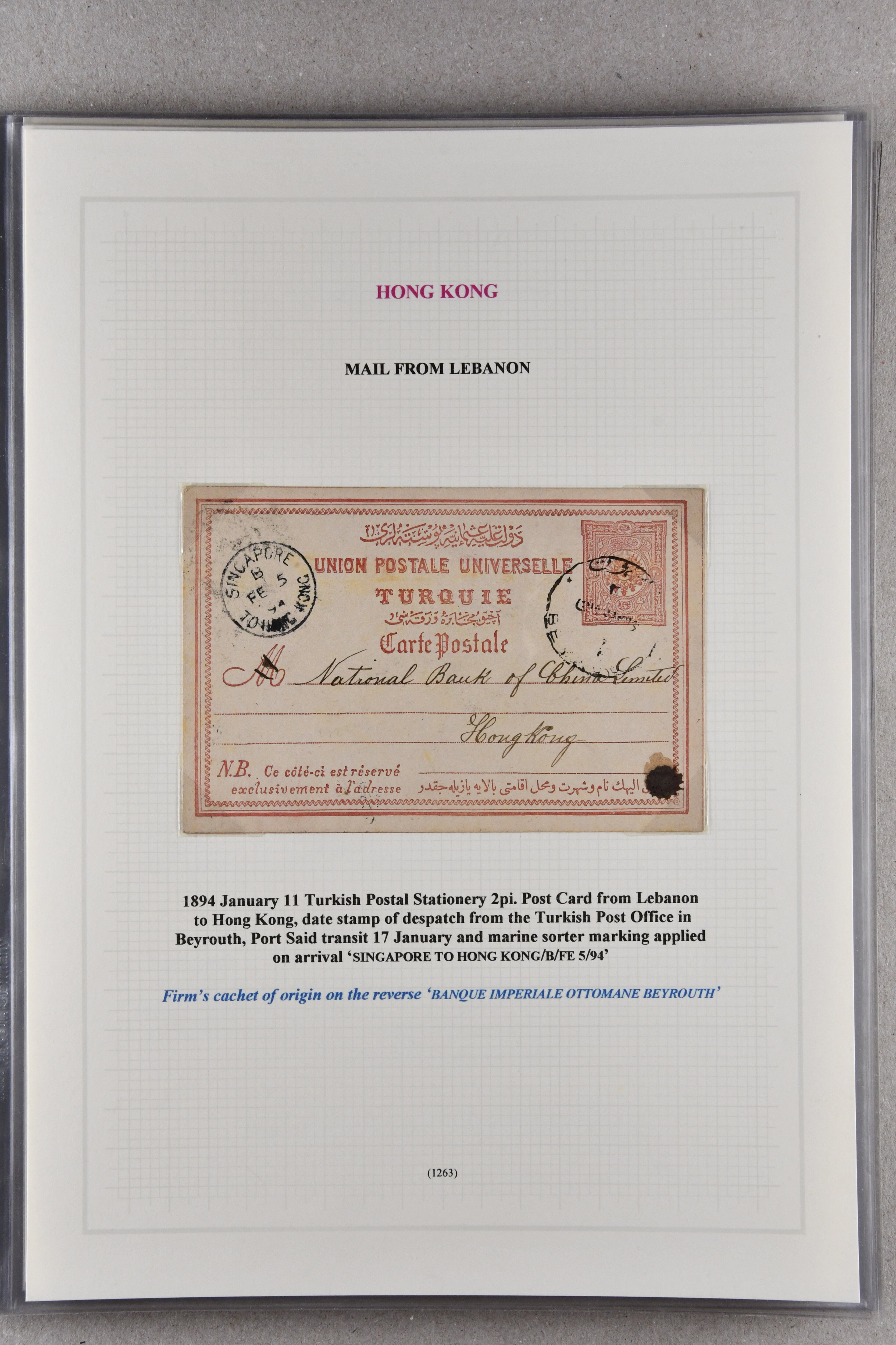 1894/1940: Selection of covers/cards (20) on leaves with 1892 Turkish 20 pa. card used to Hong Kong with "Singapore / To Hong Kong" cds (Feb 5, 1894), two Shanghai Local Post covers, 1898 New South Wales 1½ d.
