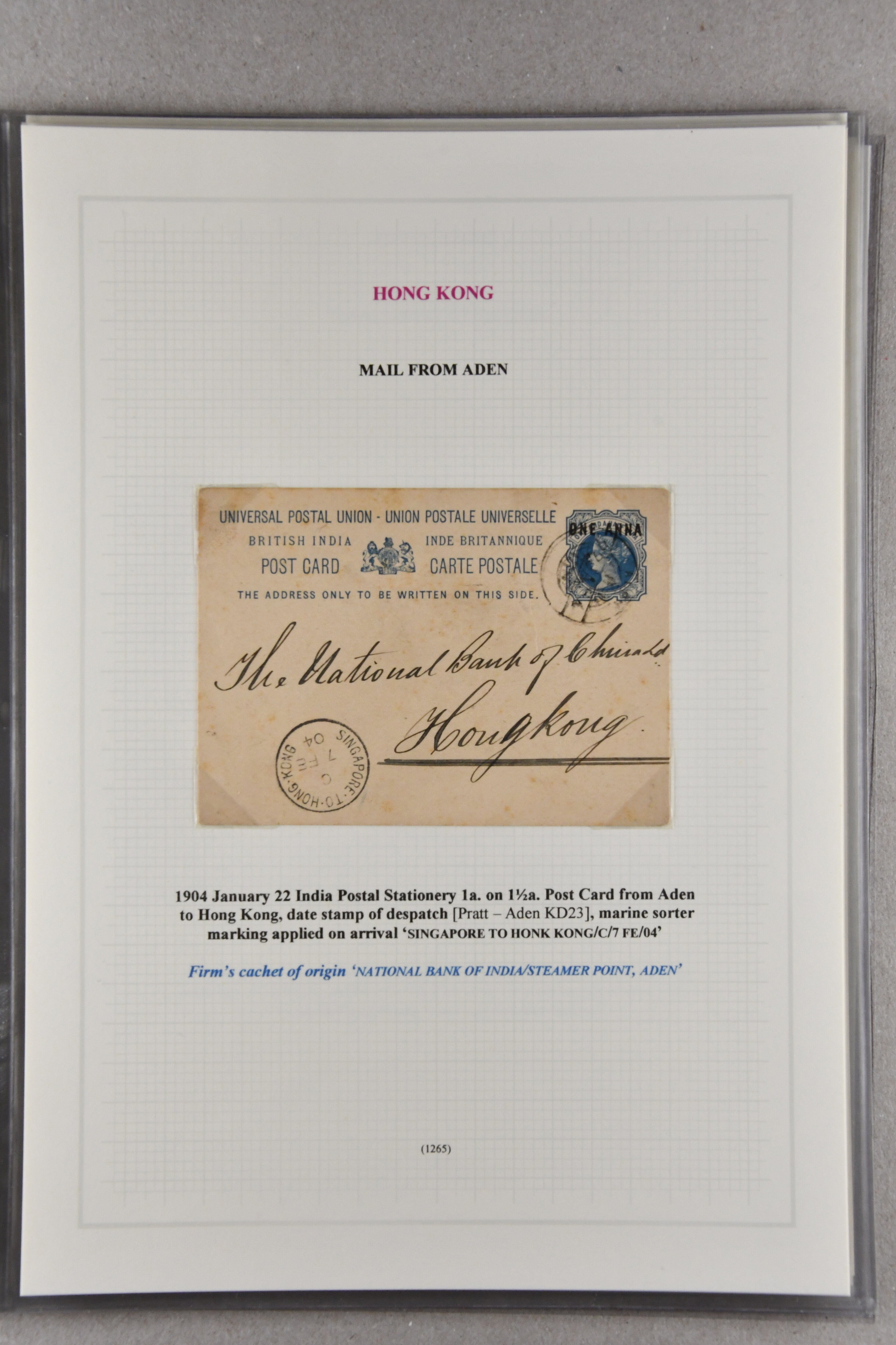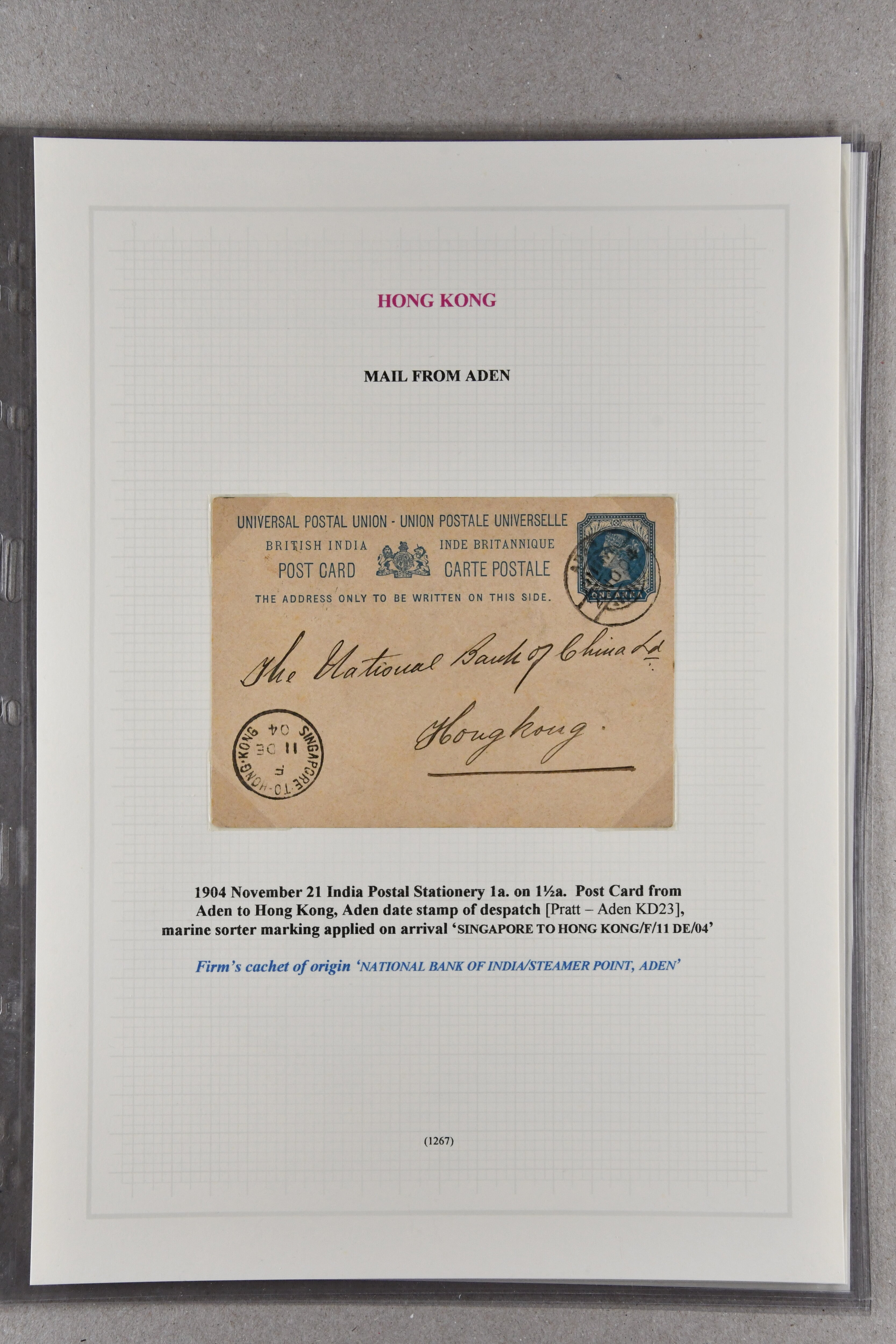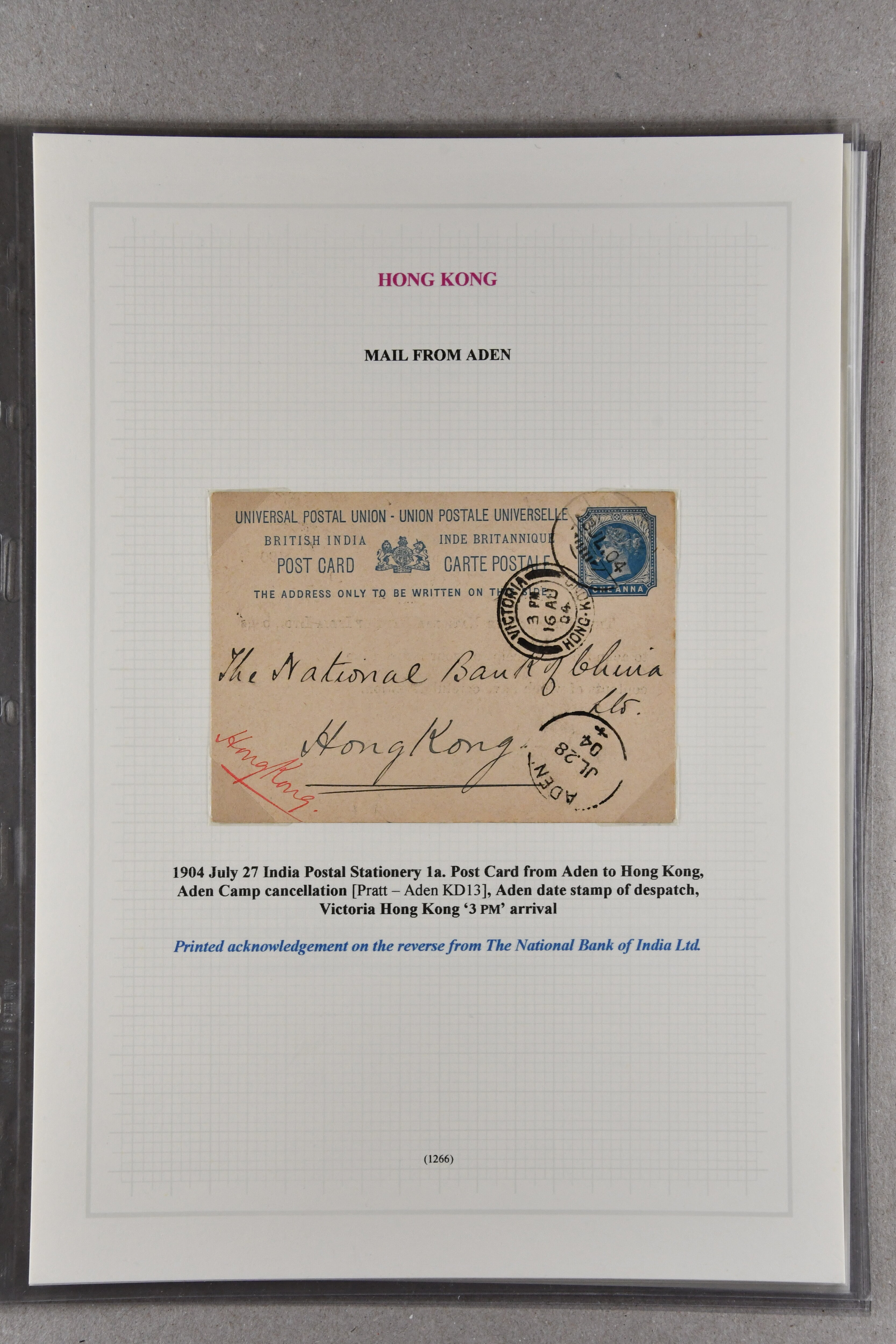 Postbureau" in black, 1904 incoming India cards (3) used from Aden to Hong Kong etc (Image 1)