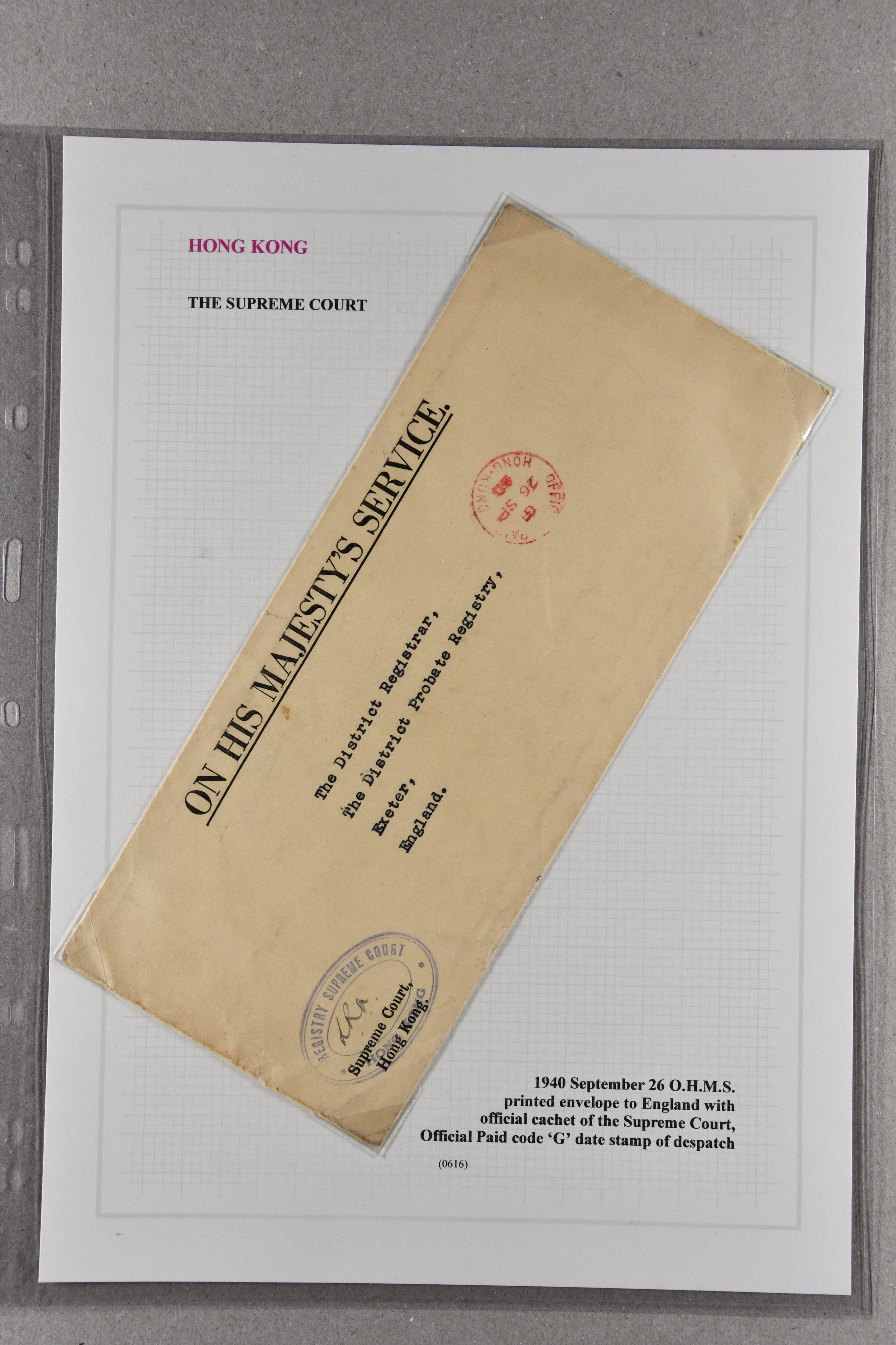 Hong Kong cds code A datestamp (Oct 26) of arrival in black. Pencil manuscript "Official envelope" which may or may not be contemporary. Rare - an early use of the "PAID" marking, introduced in 1897 to replace the Customs datestamps (Image 1)