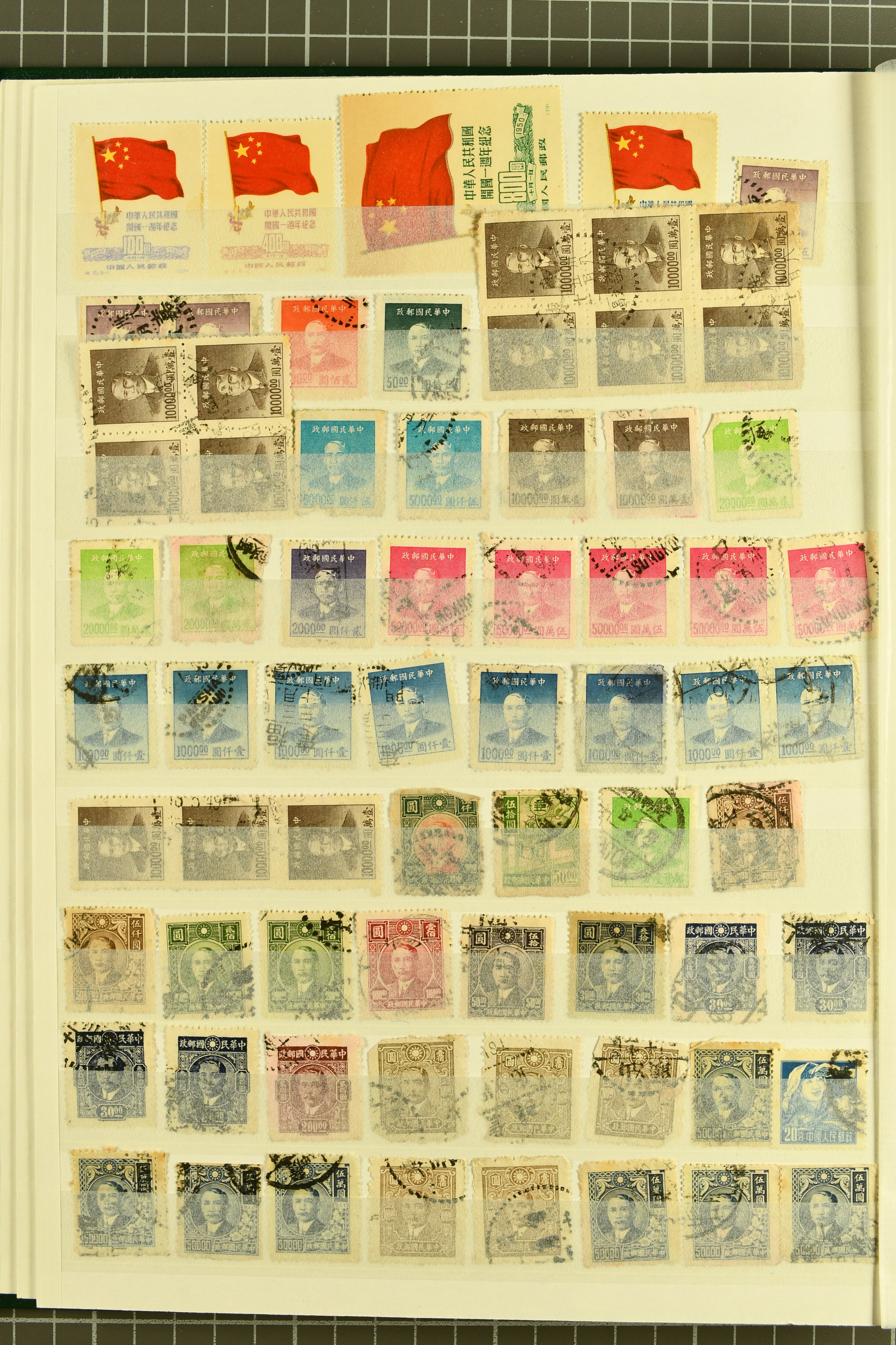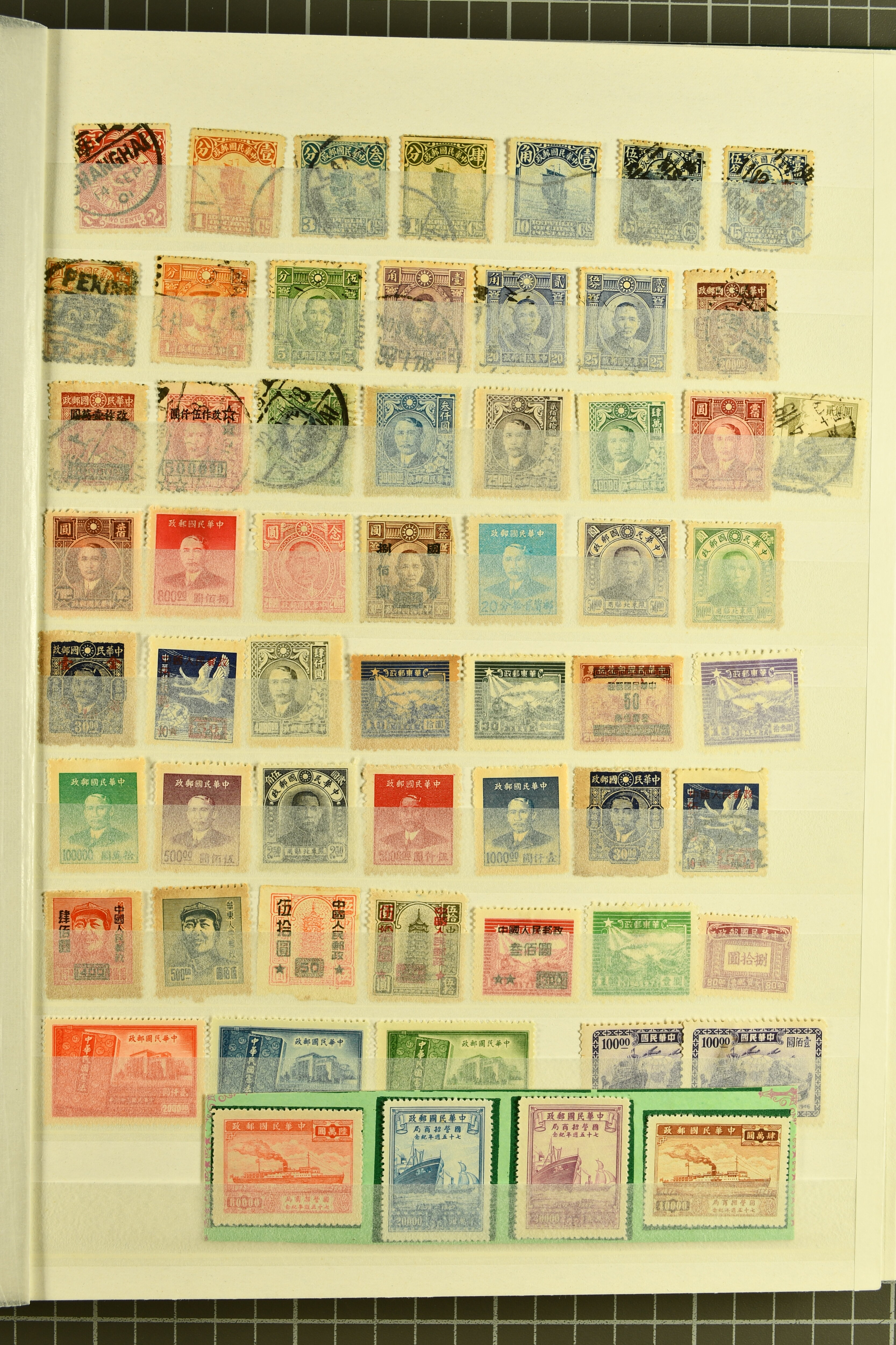 1912 SYS to $ 5 used, 1912 Yuan Shh-kai set part set incl. $ 2 brown and $ 5 grey used, Junk 1913/33 issues loose in envelopes and in stockbook with values to $ 10 and $ 20 used, early commemoratives and SYS issues, Communist issues incl. East China