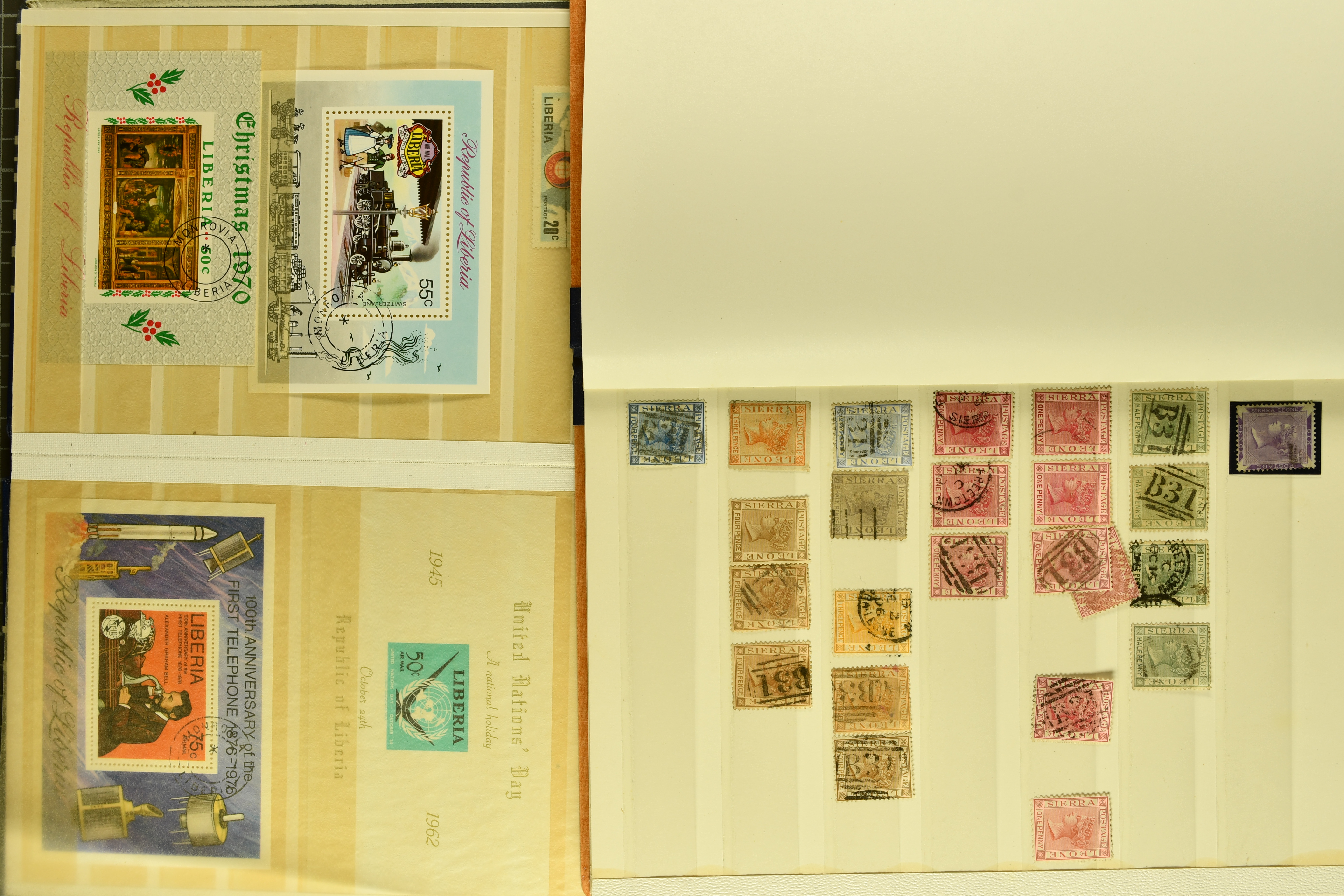 1461 image1880/1990ca.: Schaubek album with pages for West African countries: Benin, Dahomey and Ivory Coast (French Colonies), as well as Gambia and Northern Nigeria (British Colonies), plus Liberia. Includes some better stamps, often with old signatures. In addition, 13 stockbooks with duplication and modern issues, a ring binder with covers, including some interesting material (Image 1) (Image 2) (Image 3) (Image 4) (Image 5) (Image 6) (Image 7) (Image 8) (Image 9) (Image 10) (Image 11) (Image 12) (Image 13) (Image 14) (Image 15) (Image 16) (Image 17) (Image 18) (Image 19) (Image 20) (Image 21) (Image 22) (Image 23) (Image 24) (Image 25) (Image 26)
