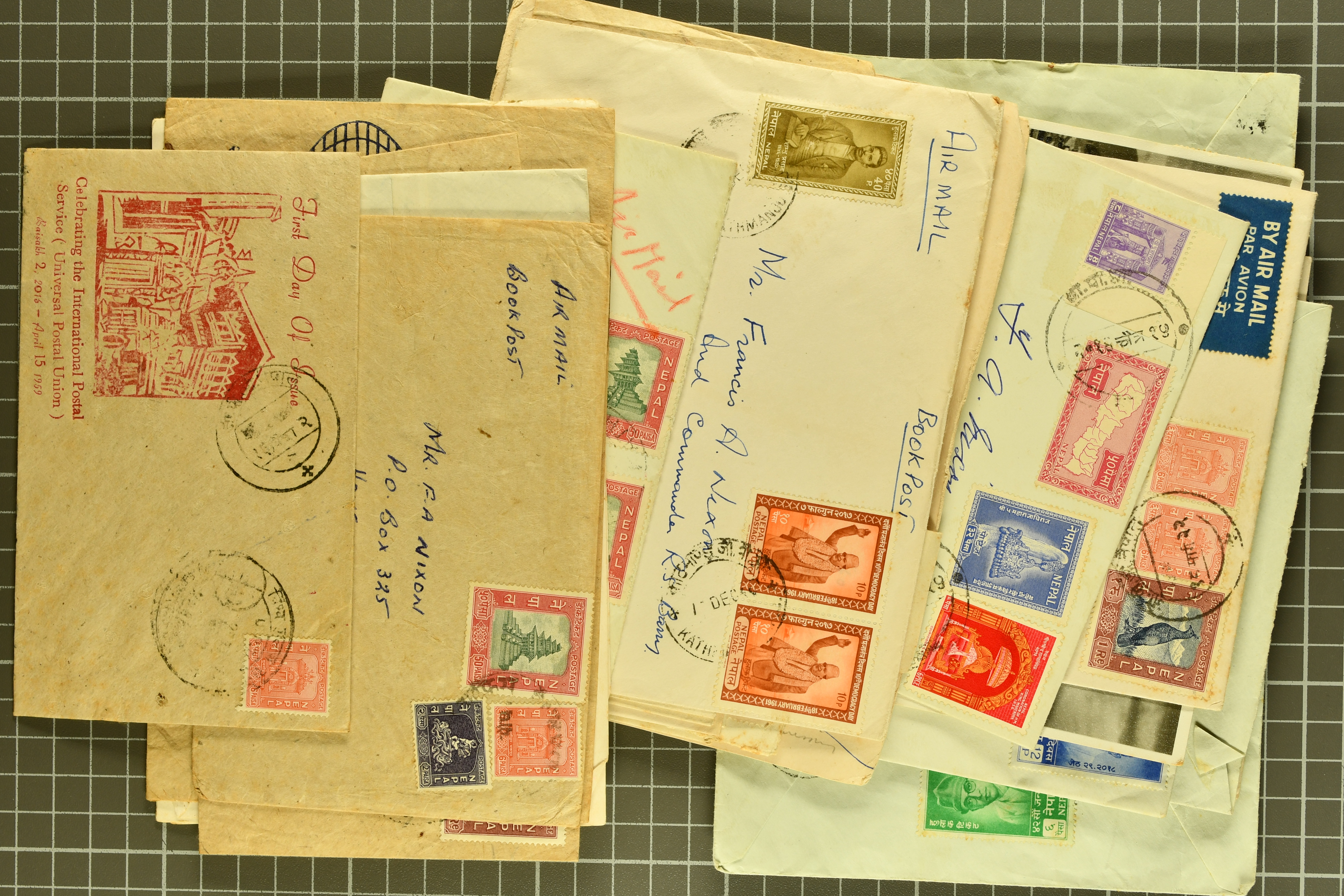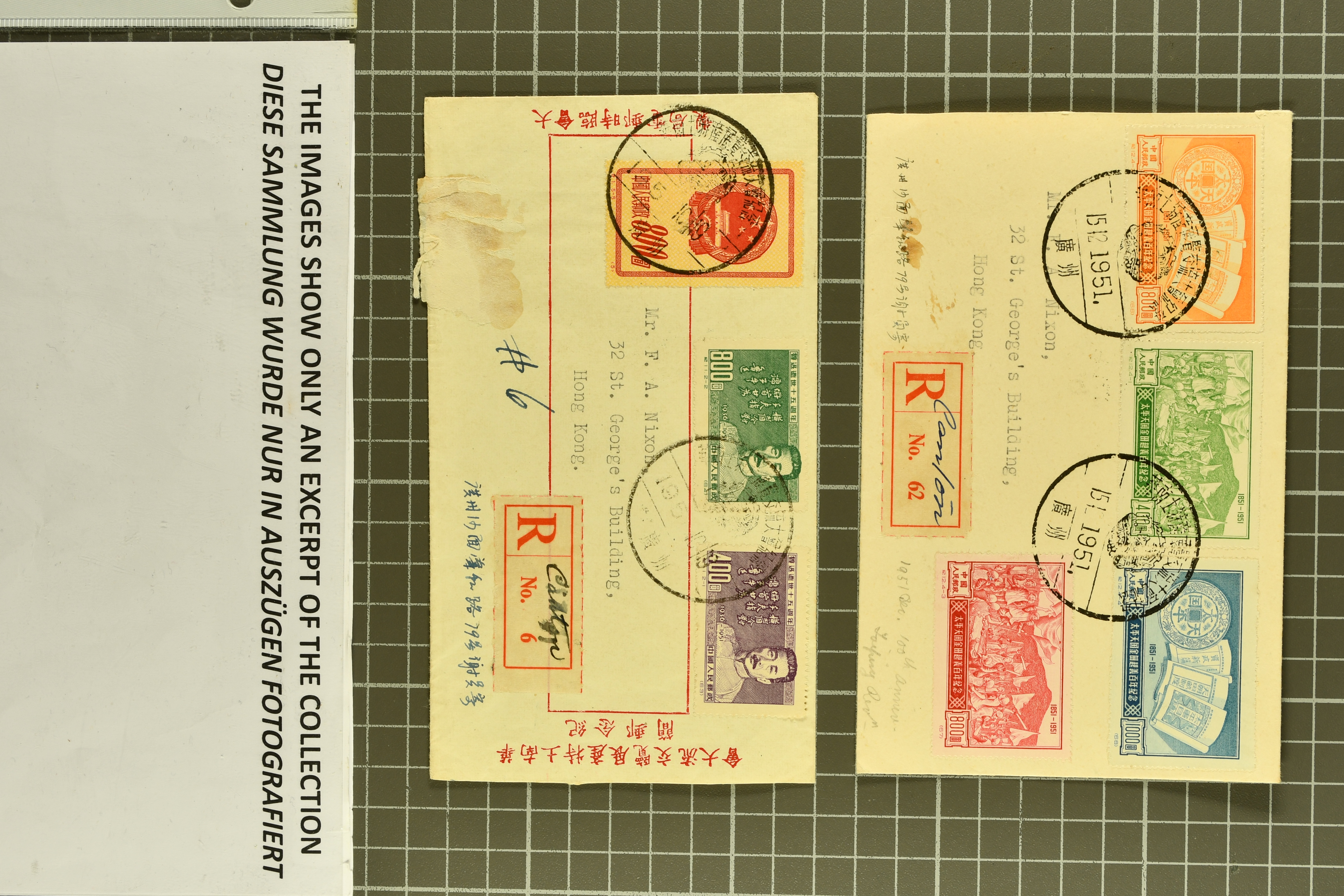 954 image1928/77c.: Ranges, including People's Republic of China stamp album compiled by the China Philatelic Company in 1959, mostly with issues from October 1949 to March 1959, and a few covers; together with additional material, mostly Asian postal history incl. Macao & Nepal (Image 1) (Image 2) (Image 3) (Image 4) (Image 5) (Image 6) (Image 7) (Image 8) (Image 9) (Image 10) (Image 11)