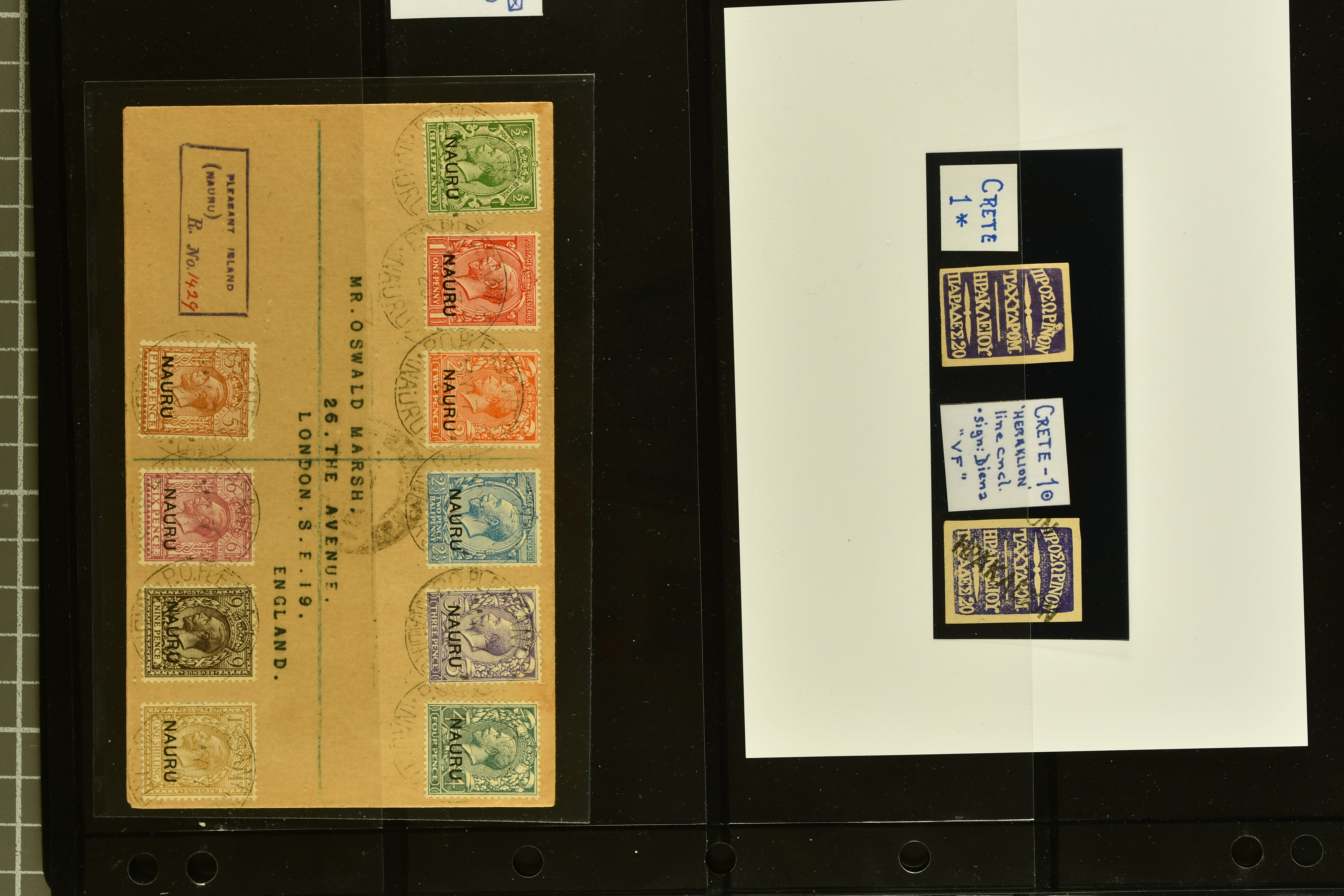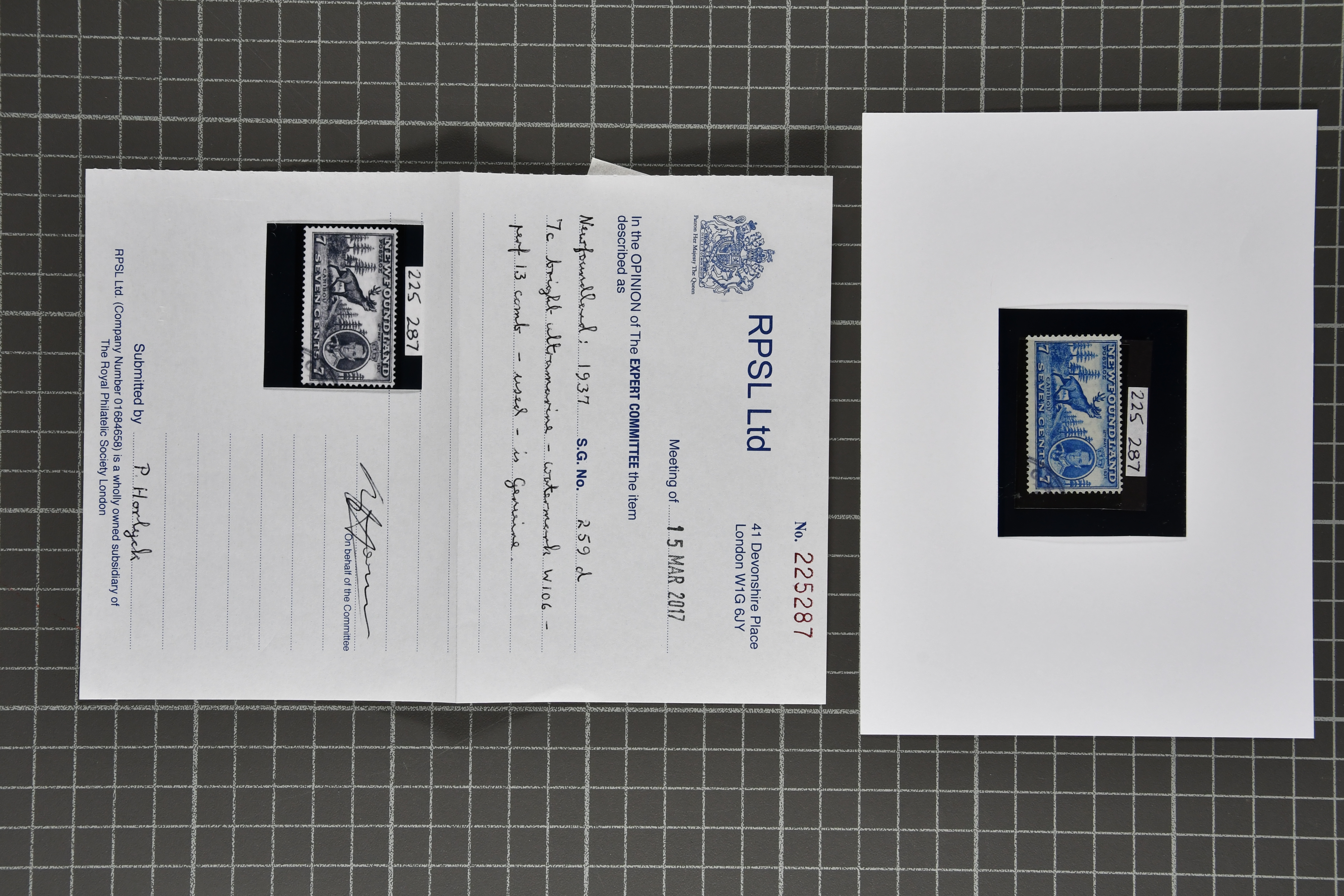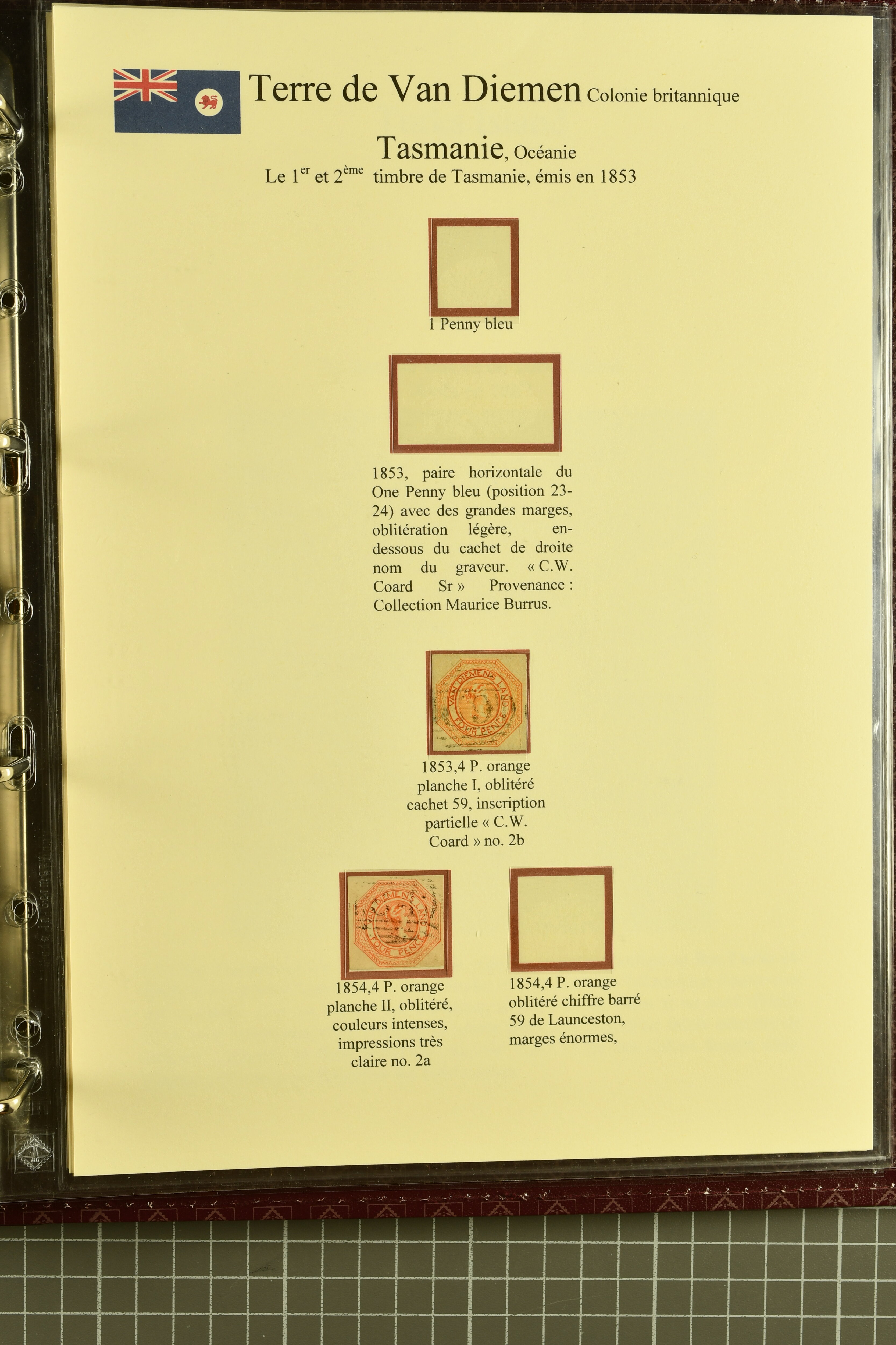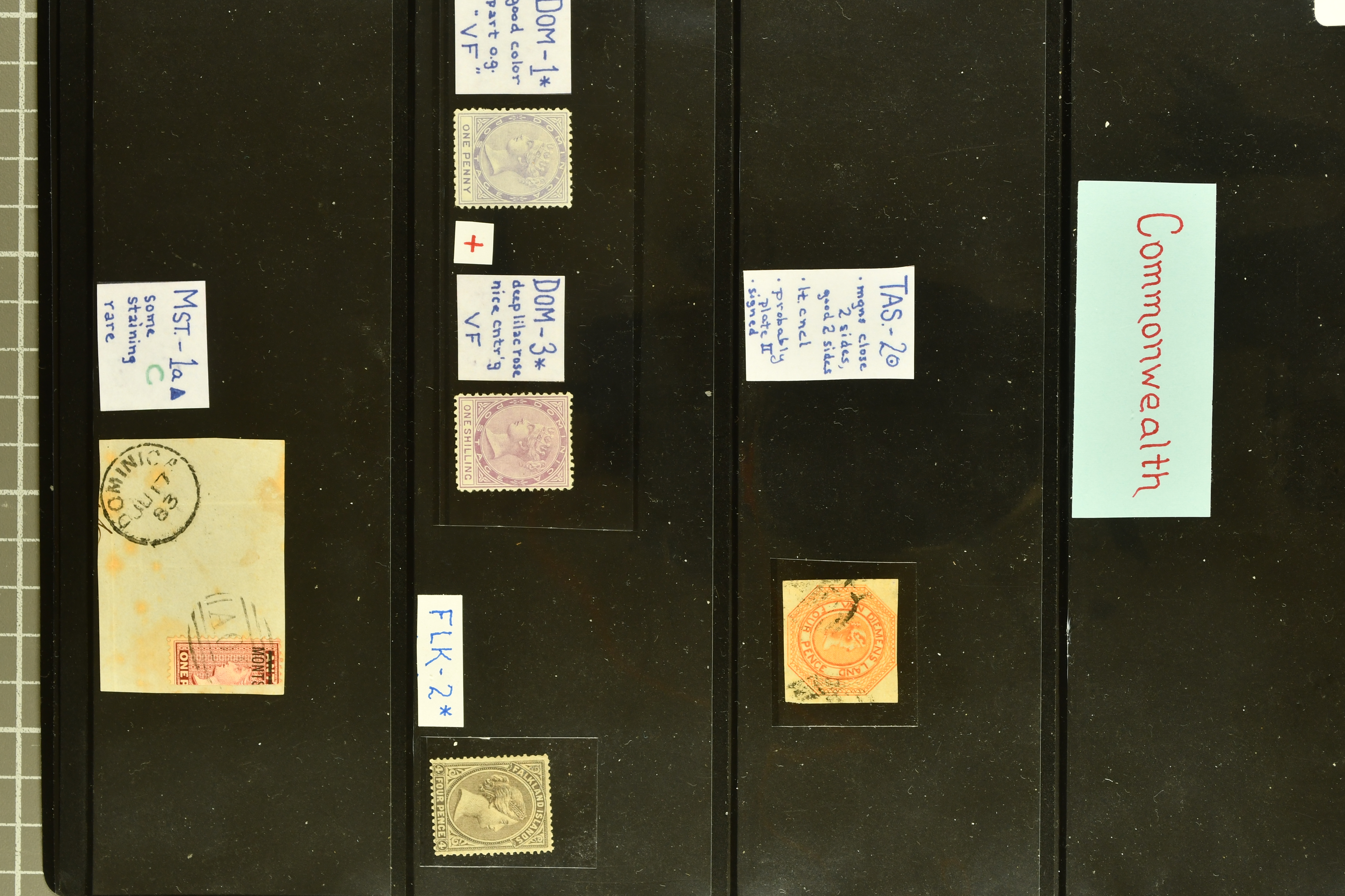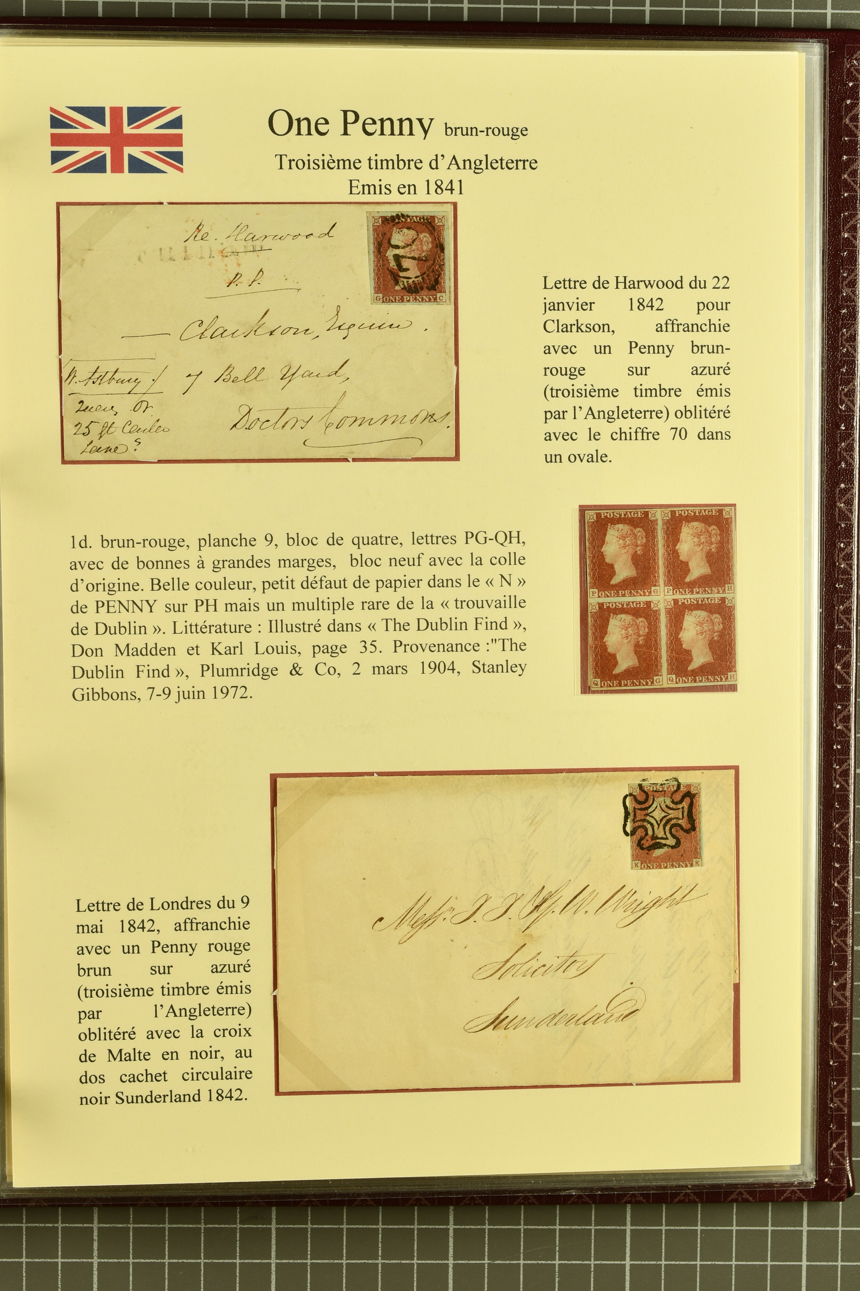 130 piece/cover/bof image1840/: Collection with Great Britain with 1840 1 d. black used, 1 d. black used on Dec 1840 cover cancelled by red MC and March 1841 cover front with 1 d. black cancelled in black, 1840 2 d. blue pl. 1 in an attractive horizontal strip of three cancelled by Mltese Crosses in red (cert. RPSL); 1841 1 d. red from black plate 9 in an unused block of four (ex the Dublin Find, and illustrated in the Madden/Louis handbook on page 35); 1841 1 d. red on covers (3), thereafter with Colnies incl. Antigua with rare 1862 6 d. green (Gi 1 = £ 800), Bahamas with 1860 1 d. dull lake unused and 1887 cover to London franked by 1882 4 d. rose, Basutoland 1933 unused set of ten (Gi = £ 325), Bechuanaland from 1885 incl. 1888 ½ d. vermilion optd SPECIMEN in single and pair (Gi 40s = £ 225), 1 d. and 1 s. handstamped SPECIMEN, 1888 4 d. on ½ d. vermilion unused and optd. SPECIMEN (Gi 53+53s= £ 200), Bermuda with 1865 1 d. rose-red in an unused block of four (ex collection Sir Henry Tucker), 1 d. pale rose on local cover and 3 d. brownish-buff unused; British Honduras 1865 first issue set of three unused with part og. (Gi = £ 950); Caymans 1900 set of two unused, Gambia 1856 4 d.brown and 6 d. each cancelled in red (Gi = £ 400+), Hong Kong 1862/63 8 c. buff, 12 c. pale greenish-blue and 18 c. lilac used, New Brunswick 1851 3 d. red on blued used, 6 d. yellow on blued used (Gi 2+4 = £ 1'275) and an attractive cover with four margin 3 d. red to Richibuchto; Nova Scotia with 1851 1 d. red-brown vertical pair used, 3 d. blue used, 6 d. yellow-green lightly cancelled used example (Gi = £ 1'900) together with single 3 d. blue on cover; Straits Settlements 1865 1½ c. on ½ a. and 2 c. on 1 a. unused; Mauritius with 1854/57 1 d. orange used, Britannia (6 d.) vermilion in an unused block of six (Gi = £ 420+) 1859 Lapirot 2 d. blue early impression pair on piece and an 1859 entire letter bearing a worn impression horizontal pair; St. Helena with 1856 6 d. blue unused and 1863 1 d. lake unused, together with an 1893 mixed issue four-colour franking cover; Nevis with 1862 1 d. unused (shades), Newfoundland with 1857 1 d. brown-purple unused, 1860 2 d. orange-vermilion (Gi 10) unused and 3 d. green used - all with Eichele opinions (Gi = £ 1'000+), Niger Coast / Oil Rivers with piece bearing five stamps incl. ½ d. on 2 d. cancelled in blue (Gi 30 = £ 800) and a fine 1895 registered stationery card; Queensland with imperforate 1860 1 d. rose unused (cert. RPSV, 1982) and superb 6 d. green used (Gi 1+3 = £ 7'000+) Sirmoor 1878 1 d. pale green unused, Tasmania with 4 d. orange, Pl. I and pl. II fine used examples, Wadwhan 1888/94 ½ p. used, Western Australia with 1854 imperforate 1 d. black used (2) and wonderful 1 d. black rouletted (showing portions of five adjoing stamps (cert. Ceremuga, 2018); 4 d. blue unused (2) and 1855 1 s. grey-brown and 1 s. pale brown unused (Gi 1+2+3+4b+4c = £ 3'750). A fine and attractively arranged collection with many fine and rare stamps present (Image 1) (Image 2) (Image 3) (Image 4) (Image 5) (Image 6) (Image 7) (Image 8) (Image 9) (Image 10) (Image 11) (Image 12) (Image 13) (Image 14) (Image 15) (Image 16) (Image 17) (Image 18) (Image 19) (Image 20) (Image 21) (Image 22) (Image 23) (Image 24) (Image 25) (Image 26) (Image 27) (Image 28) (Image 29) (Image 30) (Image 31) (Image 32) (Image 33) (Image 34) (Image 35)