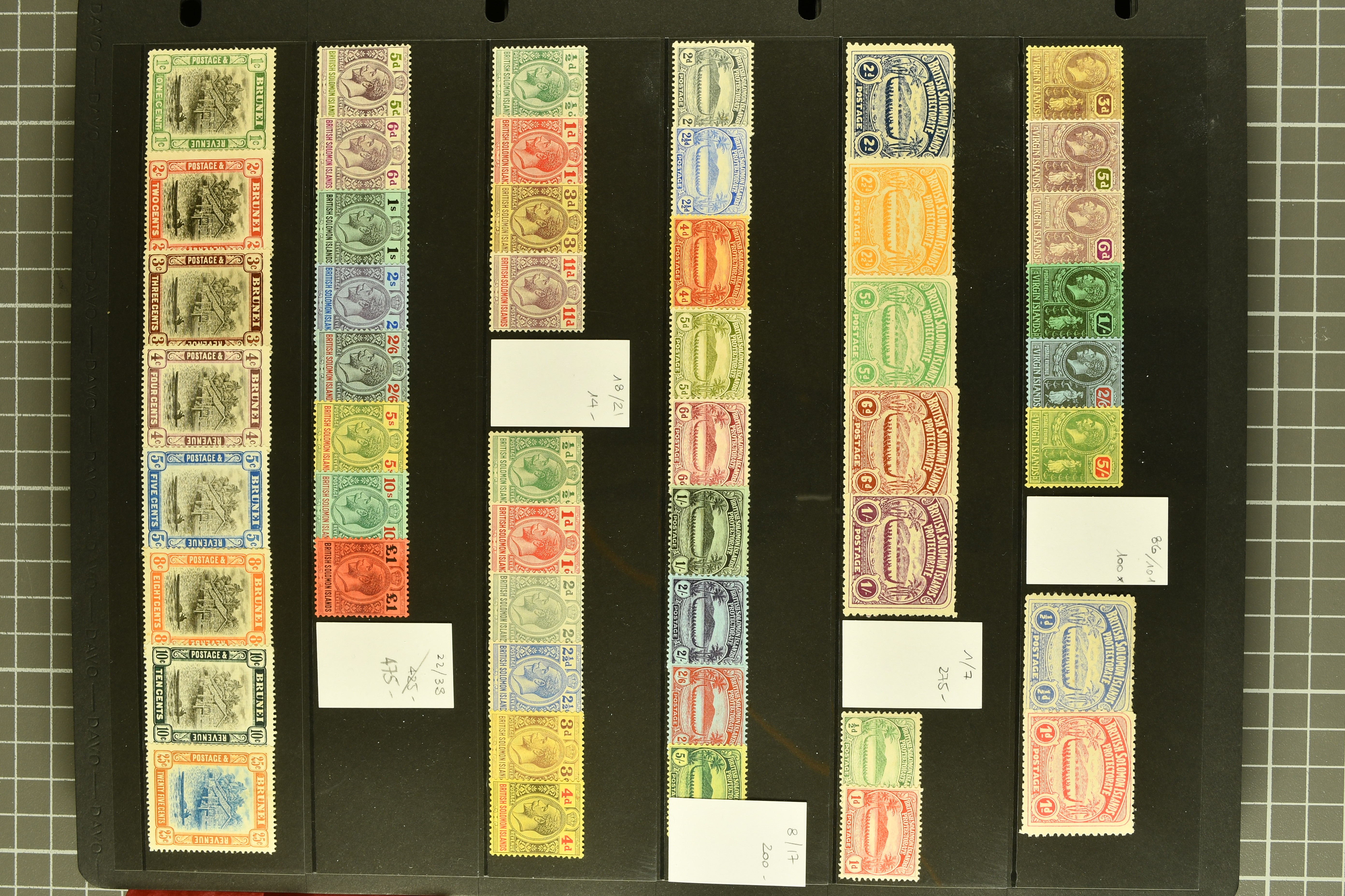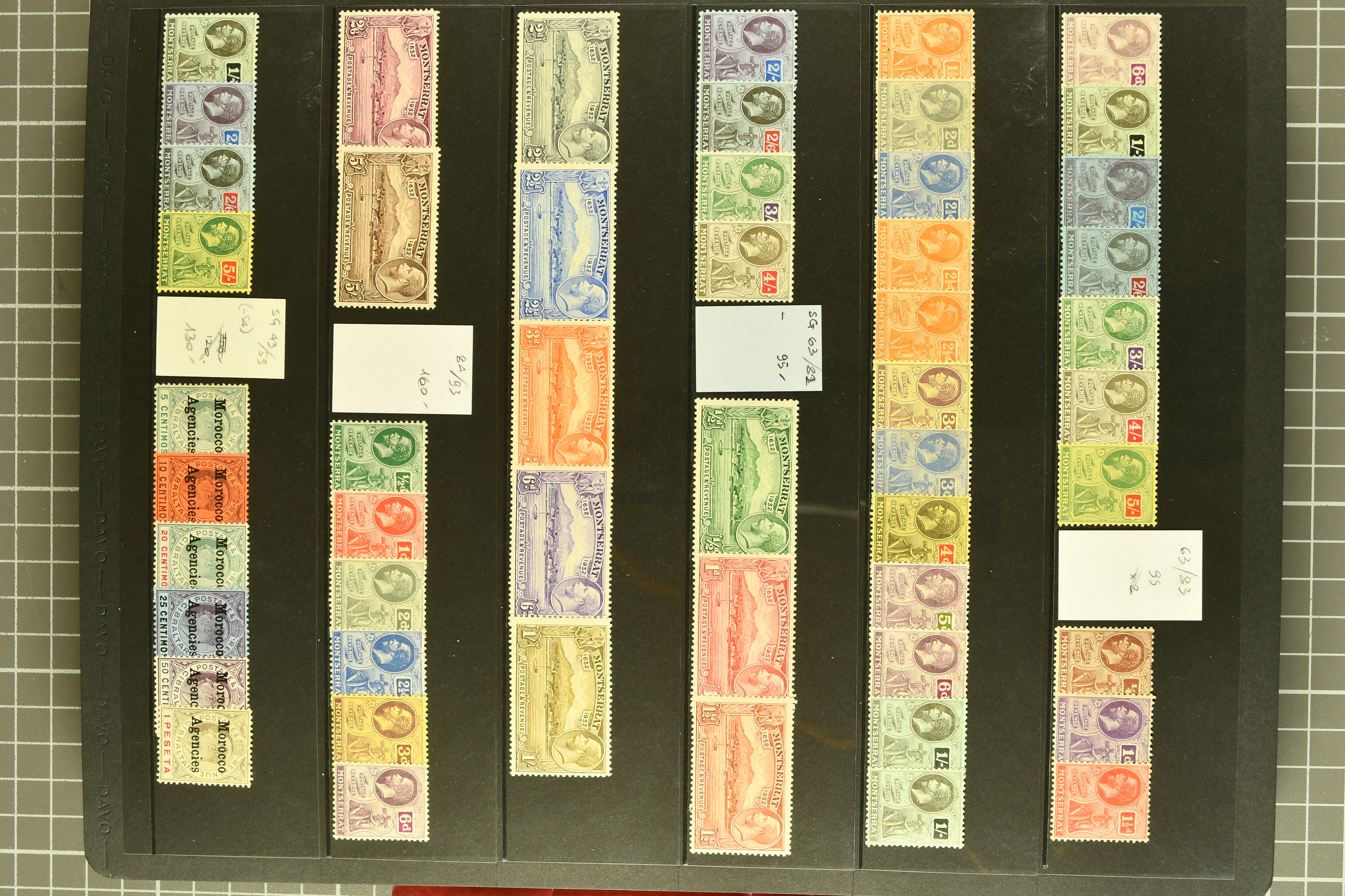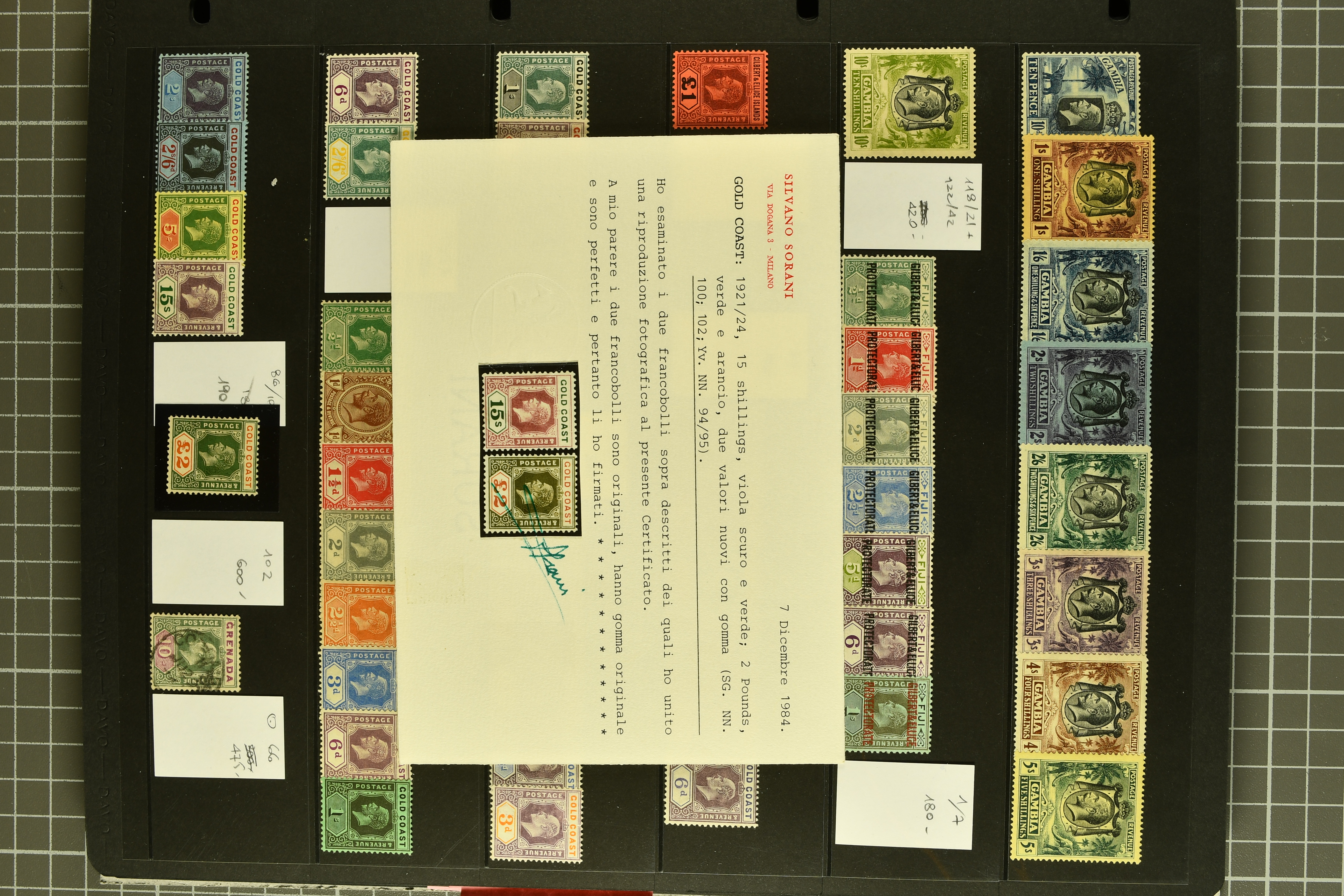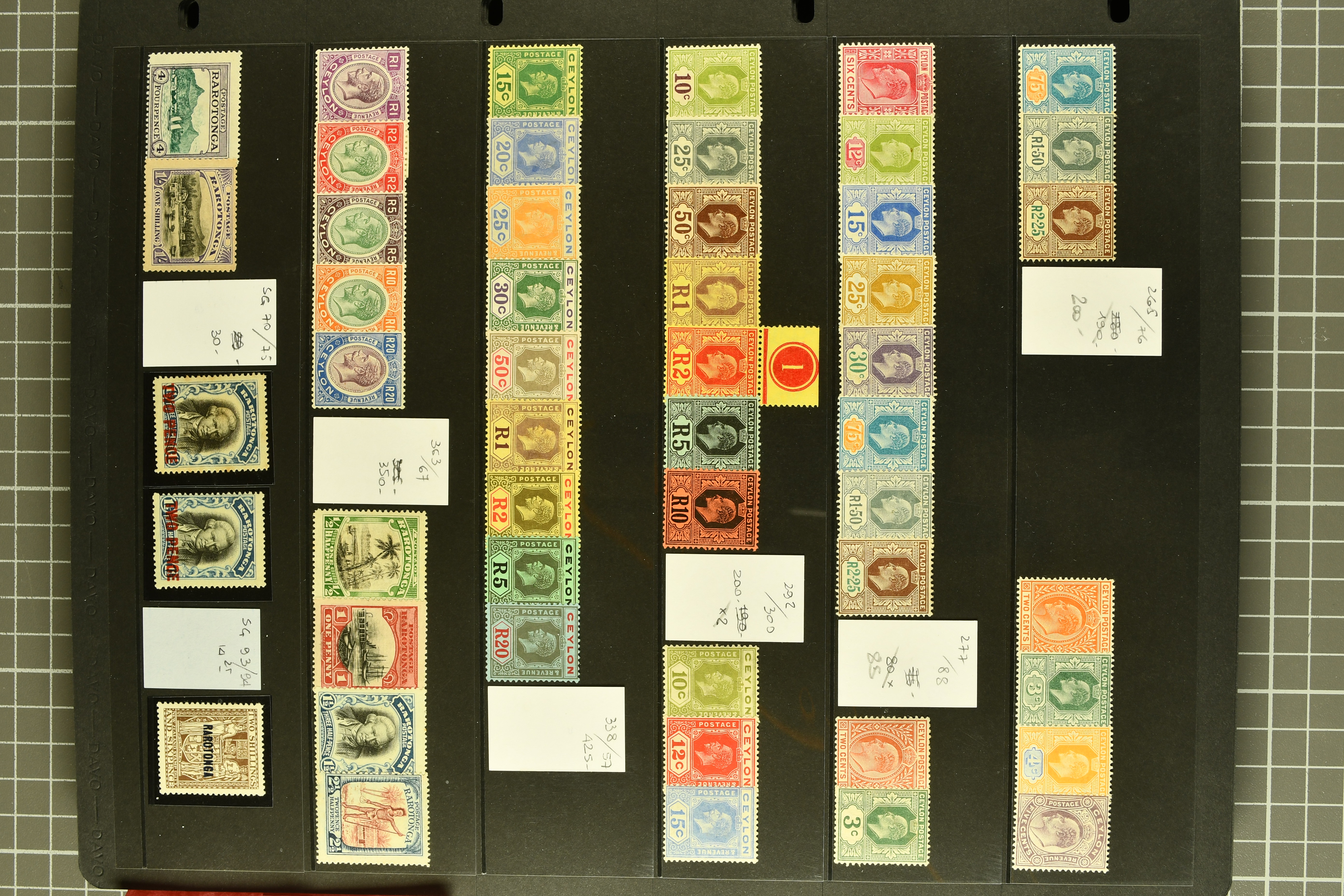 585 **/*/(*) imageKing Edward VII and George VI Commonwealth Collection 1901/1952: The extensive unused collection with many better and highly catalogued sets from Antigua to Zanzibar, including the rare Shilling and Pound values, starting with Antigua 1903 Crown CC 5s. and 1£, Australia with Sydney Harbour Bridge 5s.(2), Bechuanaland 1932 set of twelve to 10s., Bermuda 1918 set to 1£ with the 2s. value in blocks of four (2) and 1924/32 12s.6d. multiple script CA (9, with a SPECIMEN stamp and one used), Cyprus 1904/10 9pi. yellow-brown & carmine with inverted wmk., Gibraltar 1906/12 high Shilling- and £-values (Gi.85), Gold Coast 1921/24 £2 unused, Iraq 1932 ½ d and 1d. (two of each) plus the compl. set of 1920 officials, Malta with the compl. 1914/21 sets to 10s., 1922 'Self-Governement (SG106/113) and 1930 set to 10s. black (carmine), Malayan States, Maldive Islands, Mauritius with the 1913/26 compl. sets to 10 and 50 Rupees respectively, Montserrat complete sets to 5s., further Morocco Agencies, Nauru, New Hebrides, New Zealand, Niue and Northern Nigeria, British North Borneo and Labuan, Nyasaland Protectorate 1908/13 sets to £1, Northern Rhodesia 1925 compl. set of 17 to 20 s., Rhodesia £1 black and violet unused, St. Helena, St.Lucia, St. Kitts Nevis, St. Vincent 1904/11 and 1913/17 compl. sets to £1, Seychelles 1917/22 set to 2r. 25, Sierra Leone 1912/32 sets to £1, Southern Rhodesia, Somaliland, South Africa with Natal and Zululand with 1888/93 rare unused set to 5s. rose up to Tanganyika, Togo, Transjordan, Trinidad, Turk and Caicos to Zanzibar. Largely in fresh and much above average condition throughout. Viewing highly recommended Gi. = GB £ 100'000+ (Image 1) (Image 2) (Image 3) (Image 4) (Image 5) (Image 6) (Image 7) (Image 8) (Image 9) (Image 10) (Image 11) (Image 12) (Image 13) (Image 14) (Image 15) (Image 16) (Image 17) (Image 18) (Image 19) (Image 20) (Image 21) (Image 22) (Image 23) (Image 24) (Image 25) (Image 26) (Image 27) (Image 28) (Image 29) (Image 30) (Image 31) (Image 32) (Image 33) (Image 34) (Image 35) (Image 36) (Image 37) (Image 38) (Image 39) (Image 40) (Image 41) (Image 42) (Image 43) (Image 44) (Image 45) (Image 46) (Image 47) (Image 48) (Image 49) (Image 50)