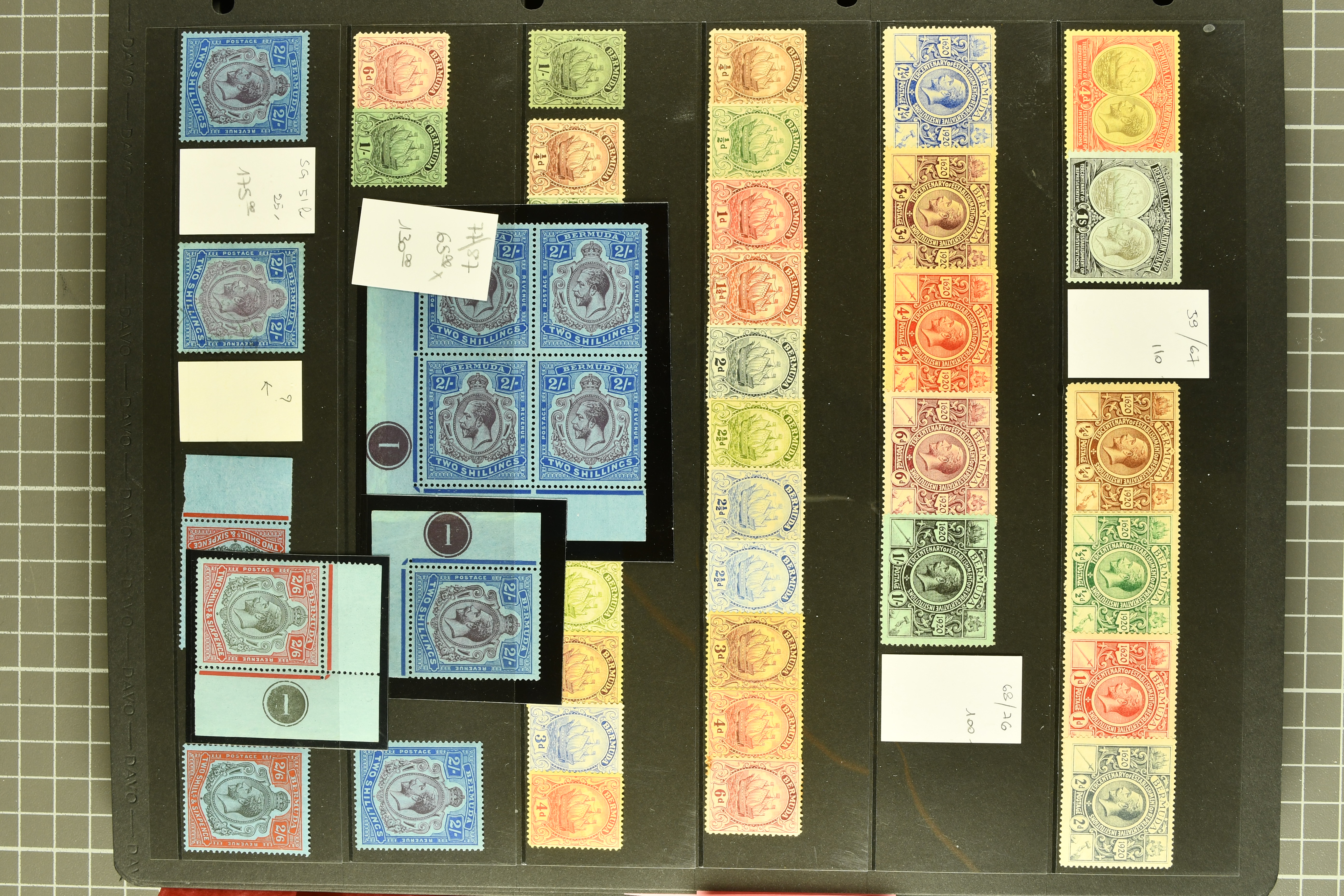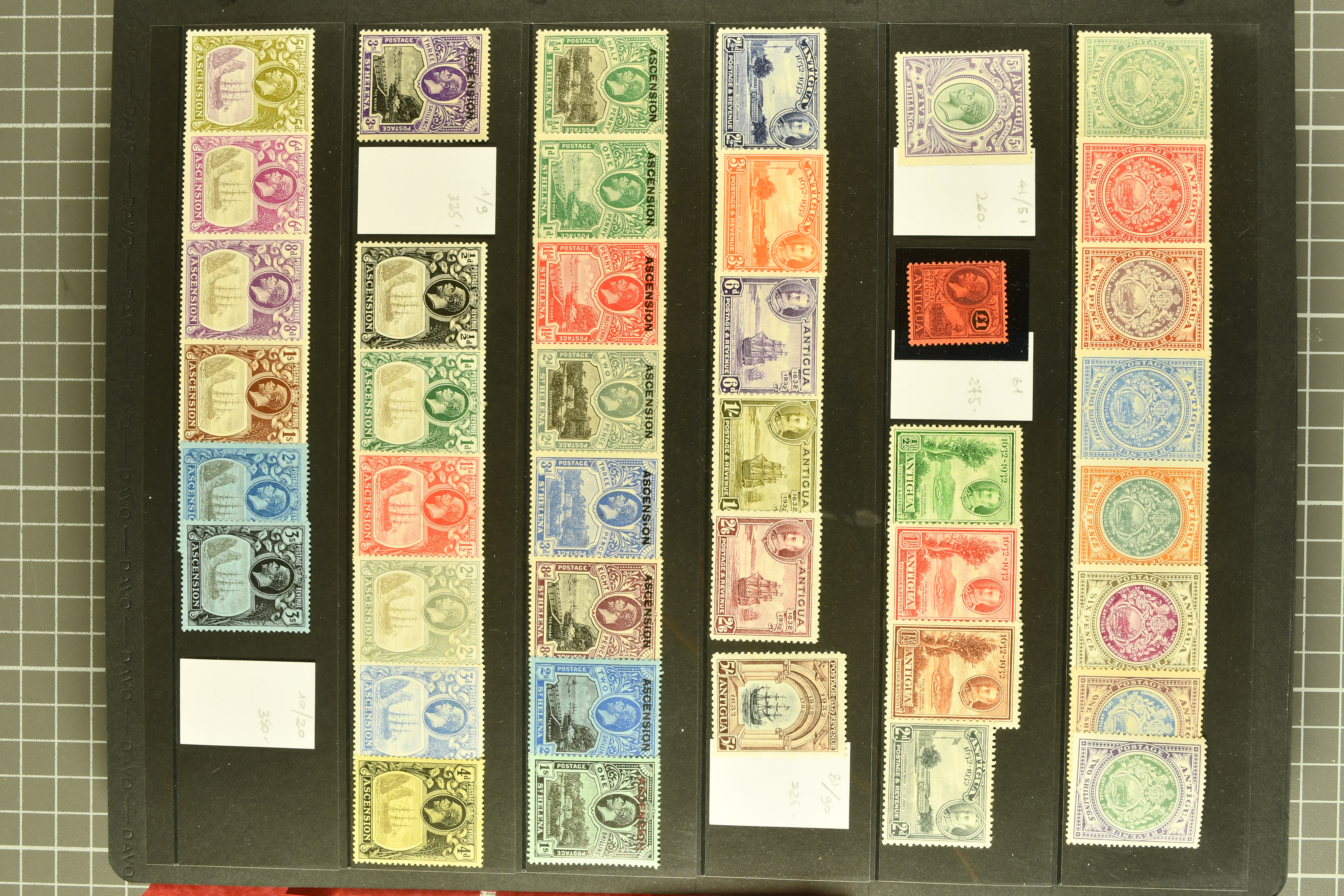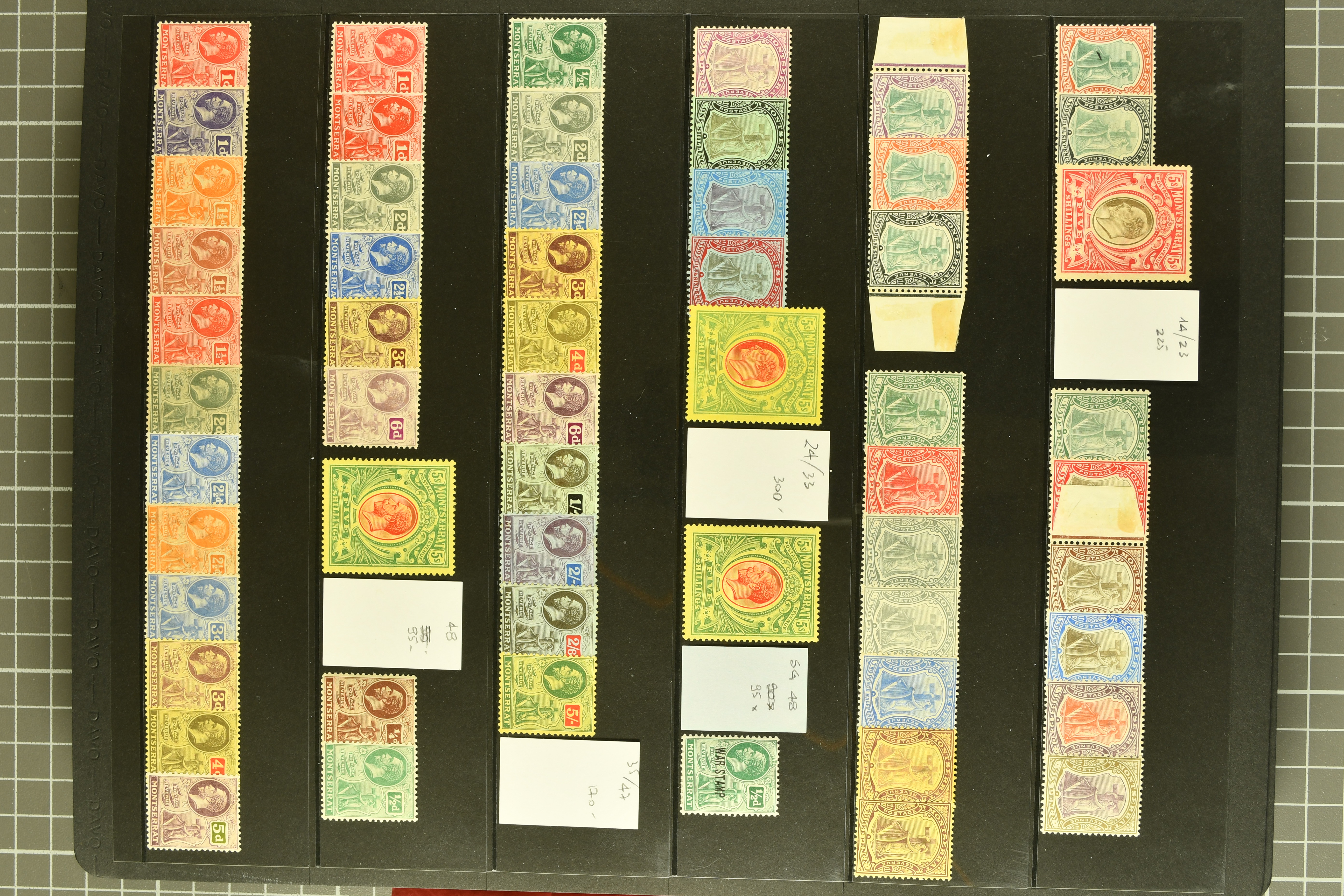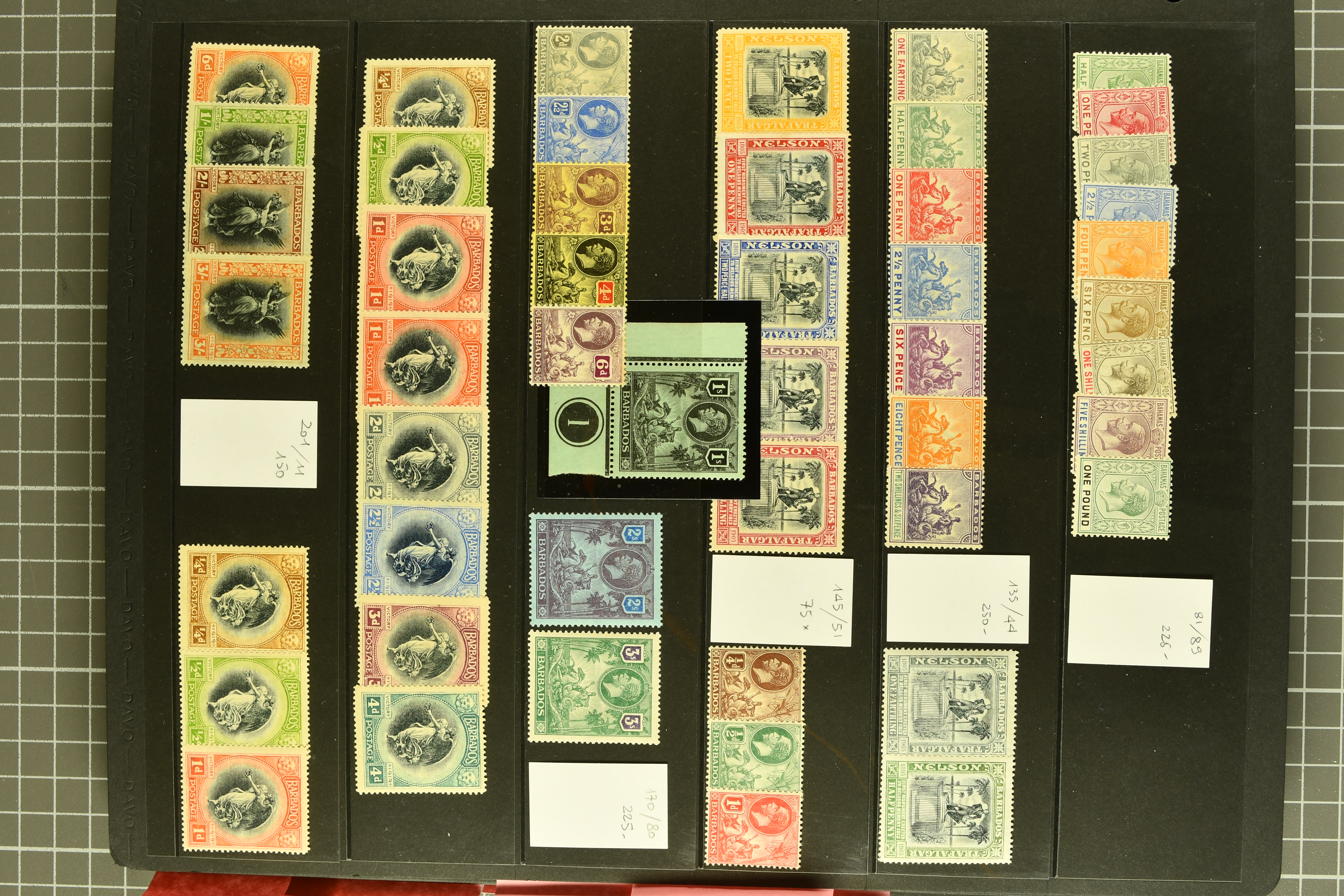 585 **/*/(*) imageKing Edward VII and George VI Commonwealth Collection 1901/1952: The extensive unused collection with many better and highly catalogued sets from Antigua to Zanzibar, including the rare Shilling and Pound values, starting with Antigua 1903 Crown CC 5s. and 1£, Australia with Sydney Harbour Bridge 5s.(2), Bechuanaland 1932 set of twelve to 10s., Bermuda 1918 set to 1£ with the 2s. value in blocks of four (2) and 1924/32 12s.6d. multiple script CA (9, with a SPECIMEN stamp and one used), Cyprus 1904/10 9pi. yellow-brown & carmine with inverted wmk., Gibraltar 1906/12 high Shilling- and £-values (Gi.85), Gold Coast 1921/24 £2 unused, Iraq 1932 ½ d and 1d. (two of each) plus the compl. set of 1920 officials, Malta with the compl. 1914/21 sets to 10s., 1922 'Self-Governement (SG106/113) and 1930 set to 10s. black (carmine), Malayan States, Maldive Islands, Mauritius with the 1913/26 compl. sets to 10 and 50 Rupees respectively, Montserrat complete sets to 5s., further Morocco Agencies, Nauru, New Hebrides, New Zealand, Niue and Northern Nigeria, British North Borneo and Labuan, Nyasaland Protectorate 1908/13 sets to £1, Northern Rhodesia 1925 compl. set of 17 to 20 s., Rhodesia £1 black and violet unused, St. Helena, St.Lucia, St. Kitts Nevis, St. Vincent 1904/11 and 1913/17 compl. sets to £1, Seychelles 1917/22 set to 2r. 25, Sierra Leone 1912/32 sets to £1, Southern Rhodesia, Somaliland, South Africa with Natal and Zululand with 1888/93 rare unused set to 5s. rose up to Tanganyika, Togo, Transjordan, Trinidad, Turk and Caicos to Zanzibar. Largely in fresh and much above average condition throughout. Viewing highly recommended Gi. = GB £ 100'000+ (Image 1) (Image 2) (Image 3) (Image 4) (Image 5) (Image 6) (Image 7) (Image 8) (Image 9) (Image 10) (Image 11) (Image 12) (Image 13) (Image 14) (Image 15) (Image 16) (Image 17) (Image 18) (Image 19) (Image 20) (Image 21) (Image 22) (Image 23) (Image 24) (Image 25) (Image 26) (Image 27) (Image 28) (Image 29) (Image 30) (Image 31) (Image 32) (Image 33) (Image 34) (Image 35) (Image 36) (Image 37) (Image 38) (Image 39) (Image 40) (Image 41) (Image 42) (Image 43) (Image 44) (Image 45) (Image 46) (Image 47) (Image 48) (Image 49) (Image 50)