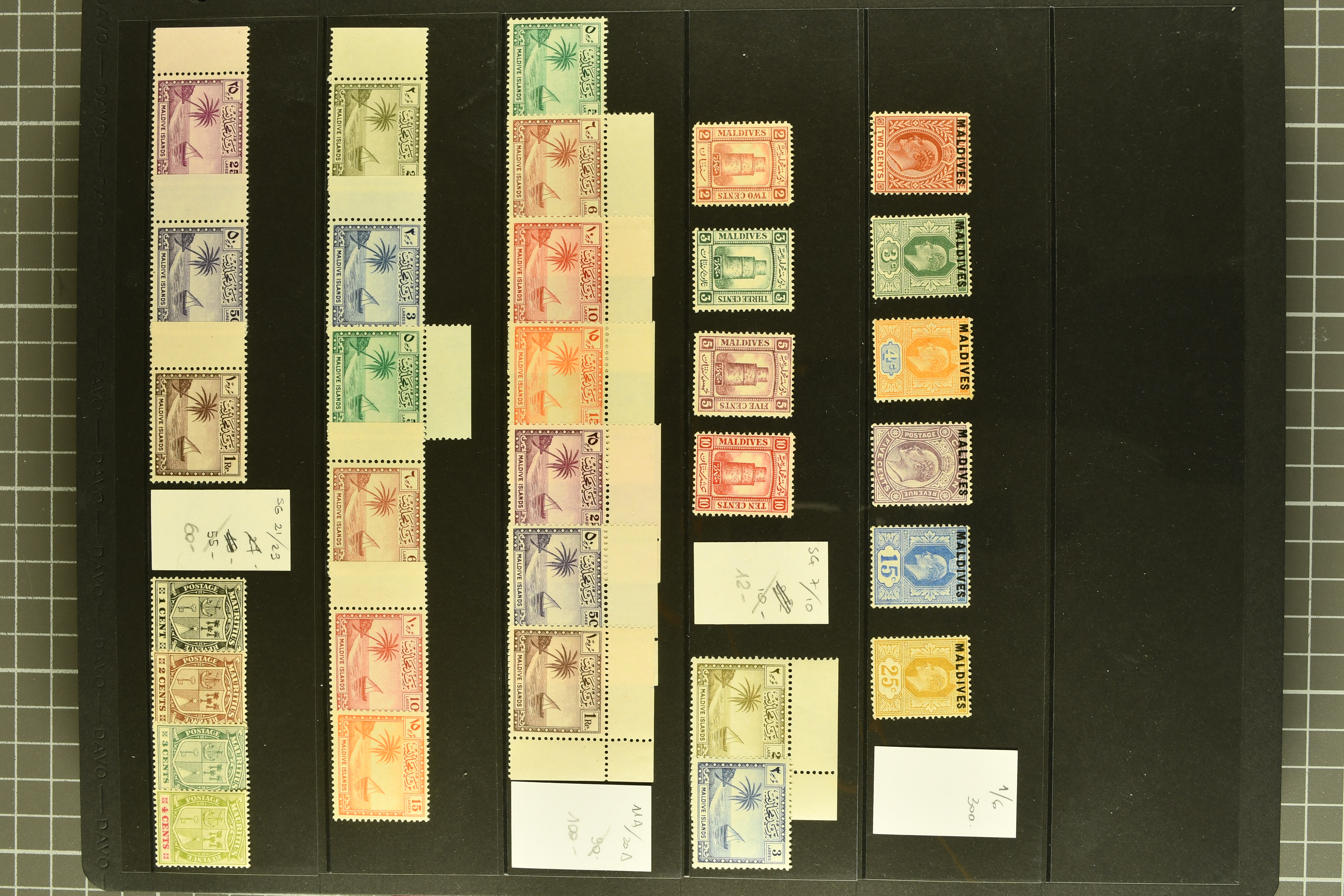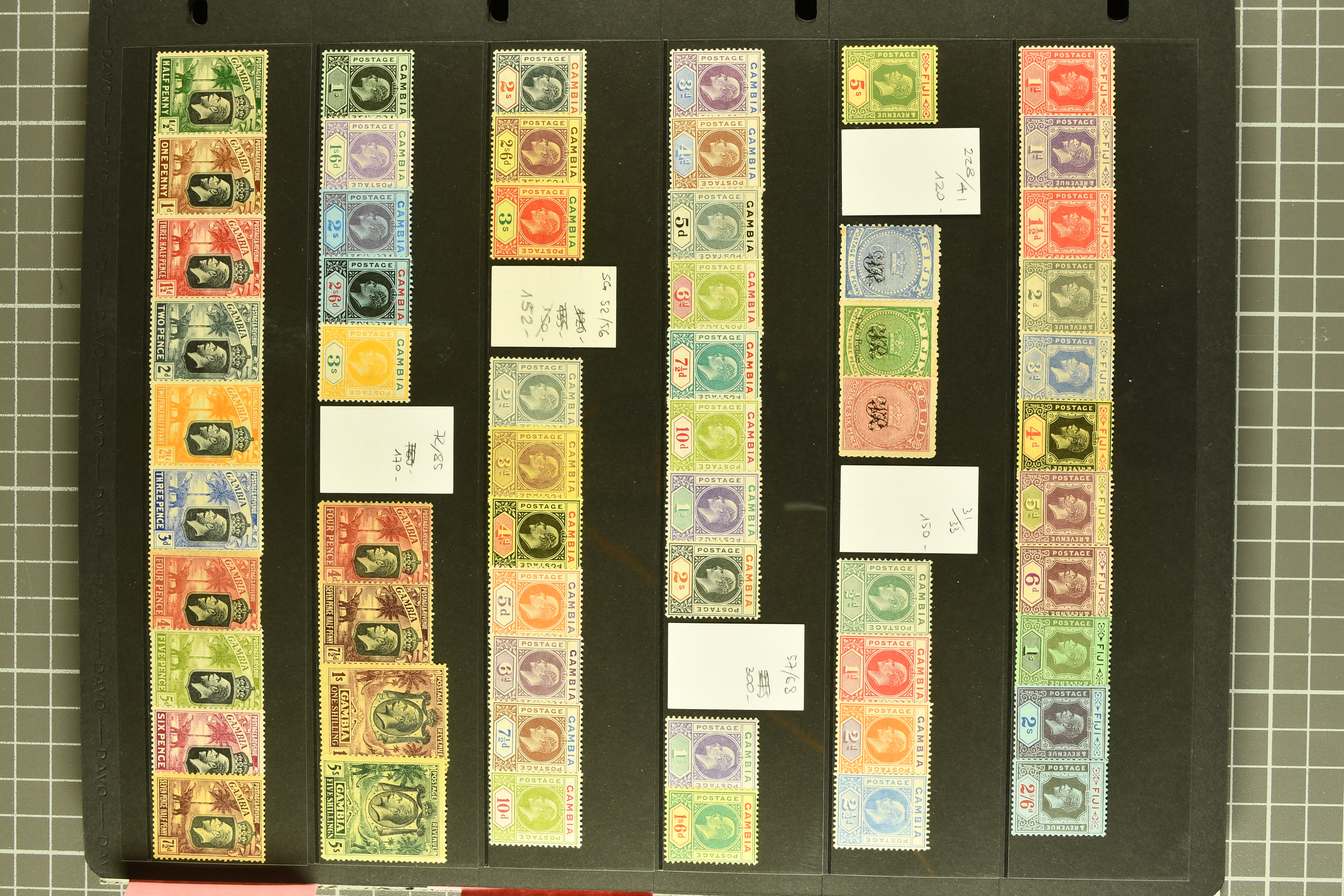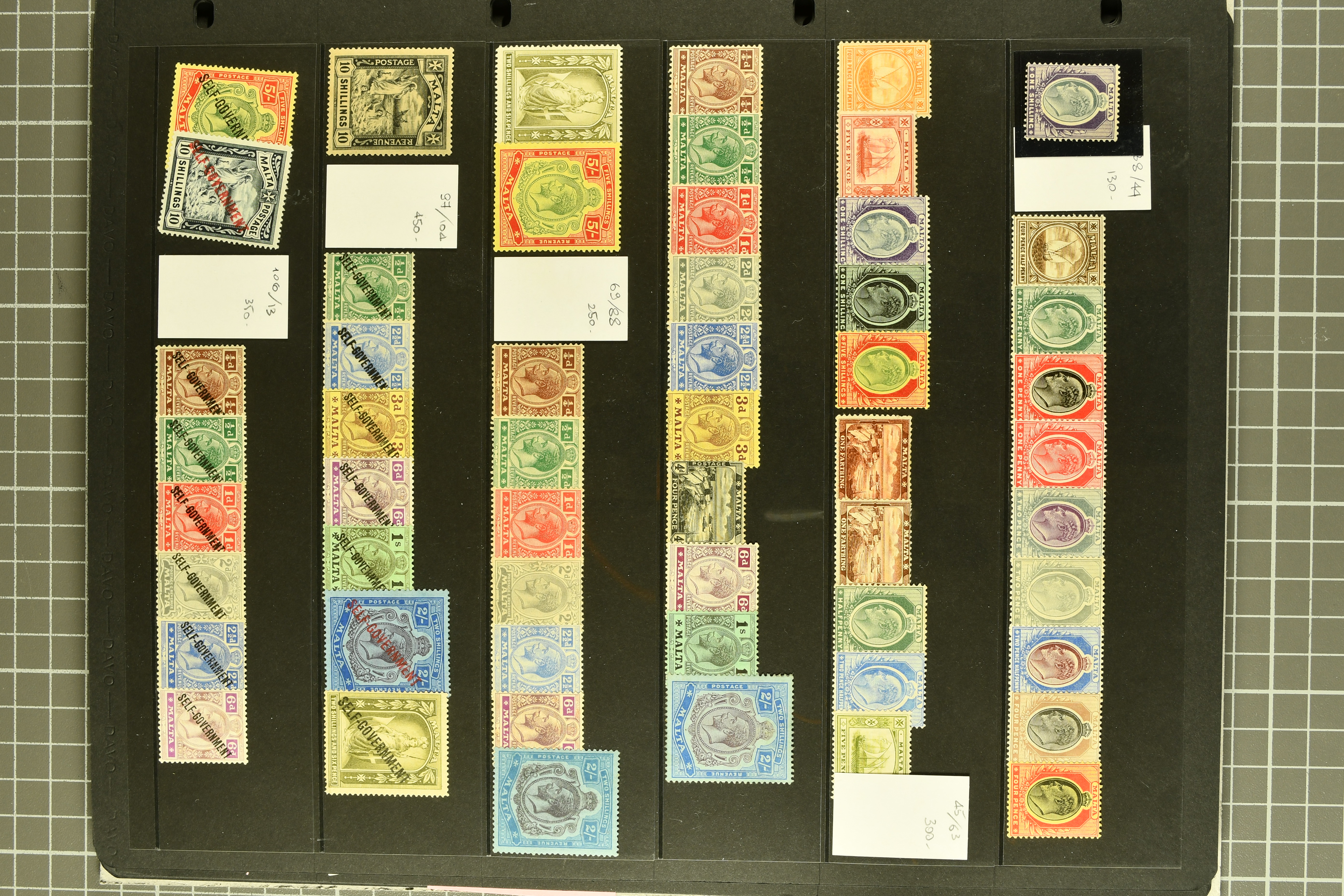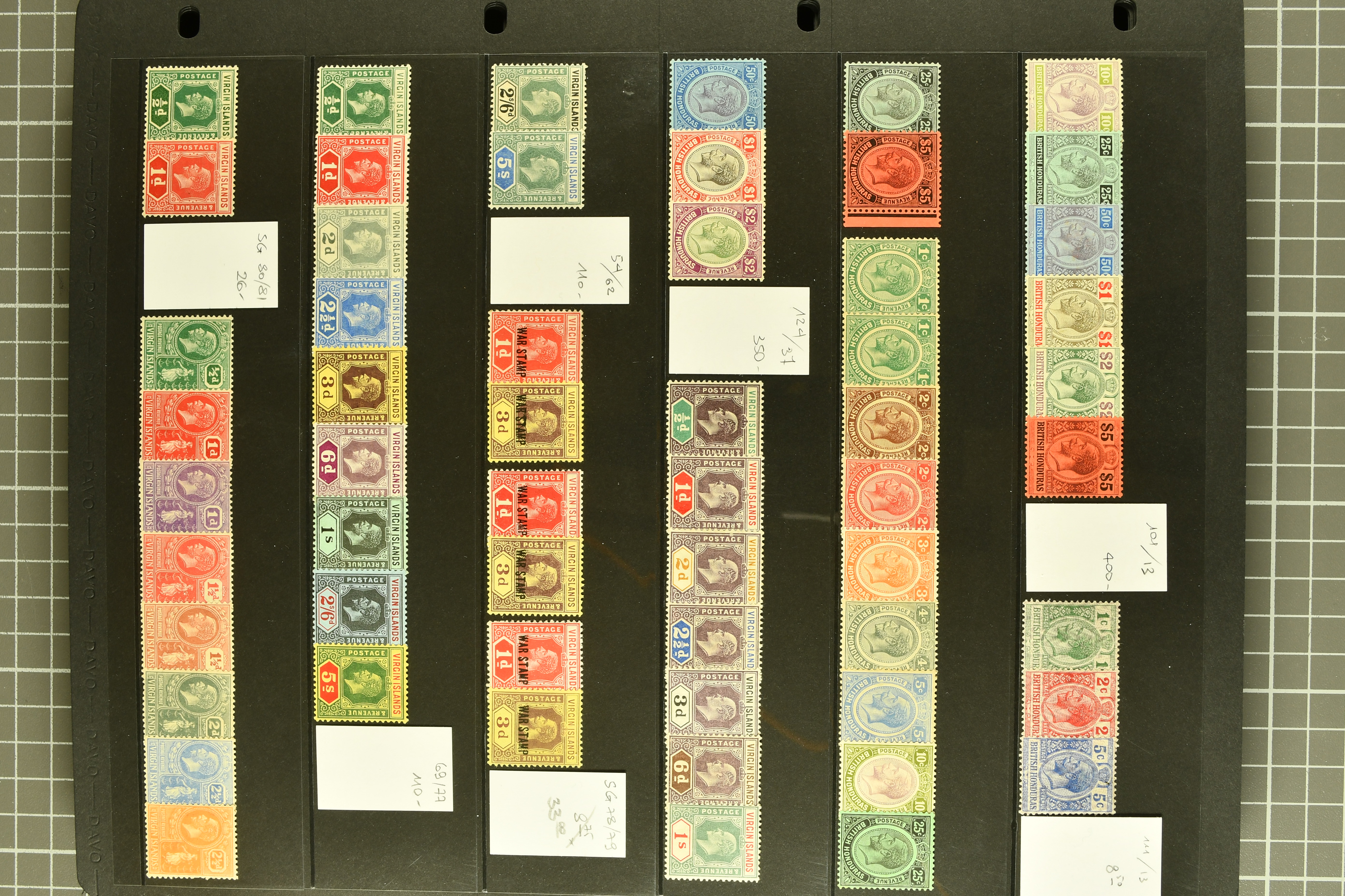 585 **/*/(*) imageKing Edward VII and George VI Commonwealth Collection 1901/1952: The extensive unused collection with many better and highly catalogued sets from Antigua to Zanzibar, including the rare Shilling and Pound values, starting with Antigua 1903 Crown CC 5s. and 1£, Australia with Sydney Harbour Bridge 5s.(2), Bechuanaland 1932 set of twelve to 10s., Bermuda 1918 set to 1£ with the 2s. value in blocks of four (2) and 1924/32 12s.6d. multiple script CA (9, with a SPECIMEN stamp and one used), Cyprus 1904/10 9pi. yellow-brown & carmine with inverted wmk., Gibraltar 1906/12 high Shilling- and £-values (Gi.85), Gold Coast 1921/24 £2 unused, Iraq 1932 ½ d and 1d. (two of each) plus the compl. set of 1920 officials, Malta with the compl. 1914/21 sets to 10s., 1922 'Self-Governement (SG106/113) and 1930 set to 10s. black (carmine), Malayan States, Maldive Islands, Mauritius with the 1913/26 compl. sets to 10 and 50 Rupees respectively, Montserrat complete sets to 5s., further Morocco Agencies, Nauru, New Hebrides, New Zealand, Niue and Northern Nigeria, British North Borneo and Labuan, Nyasaland Protectorate 1908/13 sets to £1, Northern Rhodesia 1925 compl. set of 17 to 20 s., Rhodesia £1 black and violet unused, St. Helena, St.Lucia, St. Kitts Nevis, St. Vincent 1904/11 and 1913/17 compl. sets to £1, Seychelles 1917/22 set to 2r. 25, Sierra Leone 1912/32 sets to £1, Southern Rhodesia, Somaliland, South Africa with Natal and Zululand with 1888/93 rare unused set to 5s. rose up to Tanganyika, Togo, Transjordan, Trinidad, Turk and Caicos to Zanzibar. Largely in fresh and much above average condition throughout. Viewing highly recommended Gi. = GB £ 100'000+ (Image 1) (Image 2) (Image 3) (Image 4) (Image 5) (Image 6) (Image 7) (Image 8) (Image 9) (Image 10) (Image 11) (Image 12) (Image 13) (Image 14) (Image 15) (Image 16) (Image 17) (Image 18) (Image 19) (Image 20) (Image 21) (Image 22) (Image 23) (Image 24) (Image 25) (Image 26) (Image 27) (Image 28) (Image 29) (Image 30) (Image 31) (Image 32) (Image 33) (Image 34) (Image 35) (Image 36) (Image 37) (Image 38) (Image 39) (Image 40) (Image 41) (Image 42) (Image 43) (Image 44) (Image 45) (Image 46) (Image 47) (Image 48) (Image 49) (Image 50)