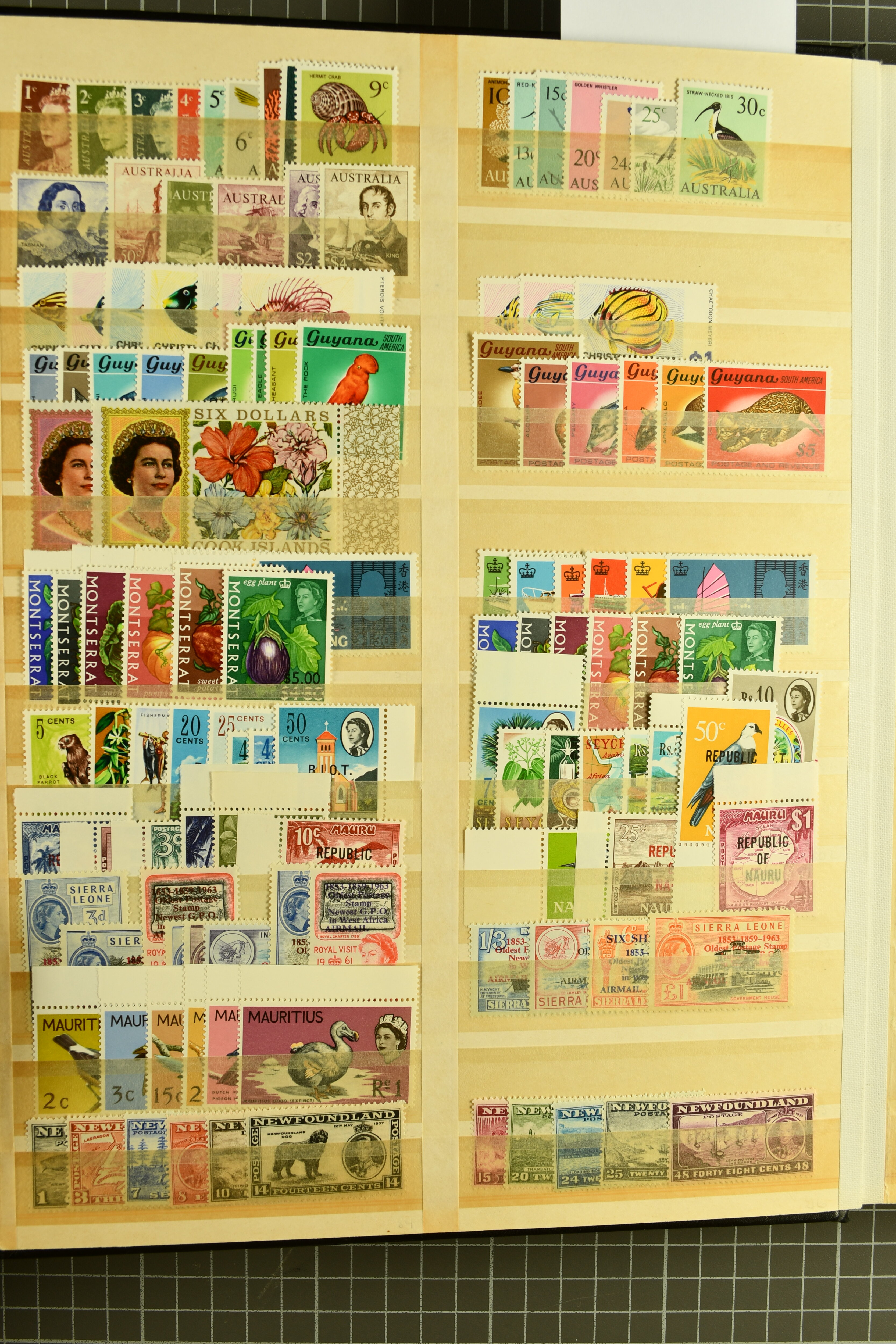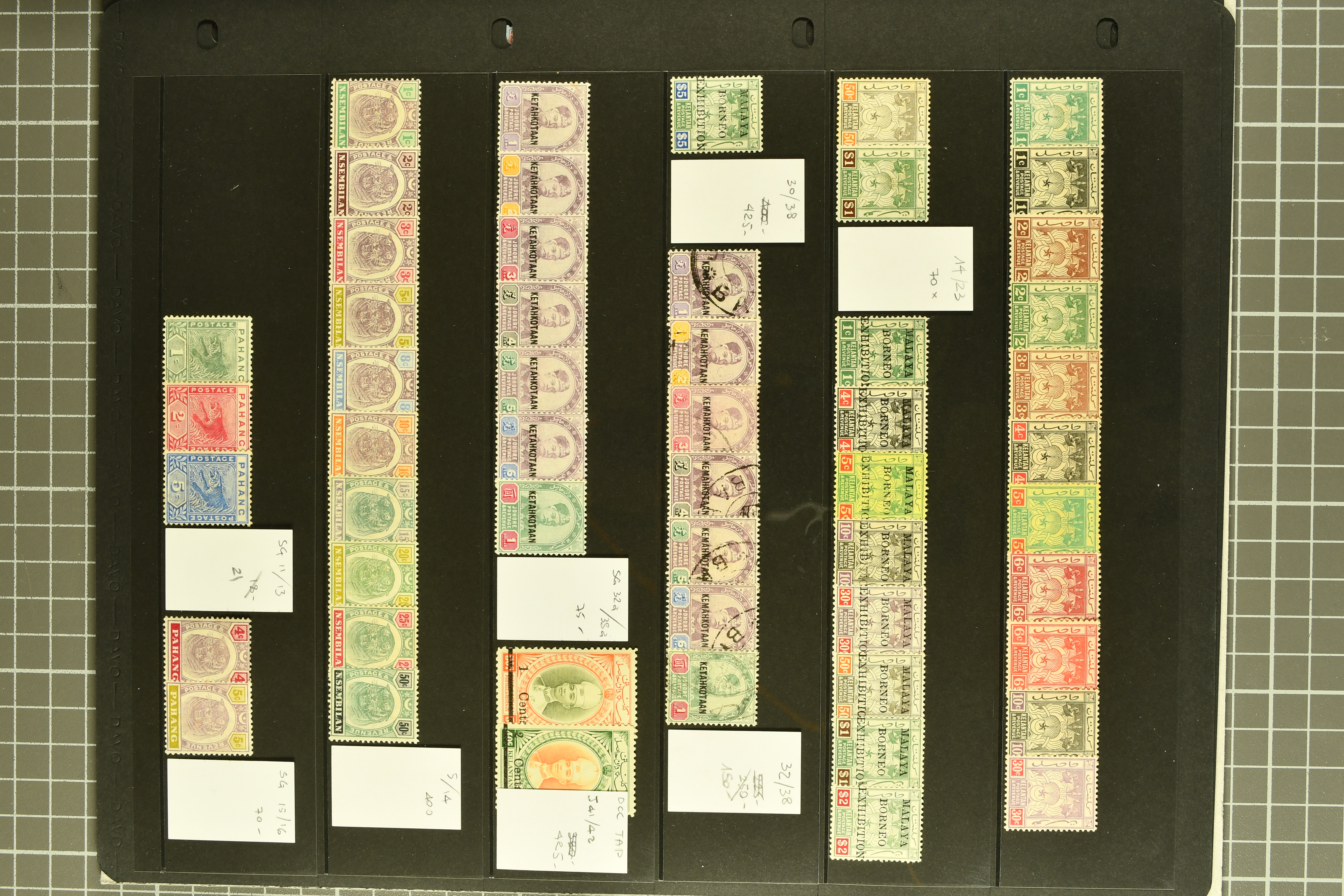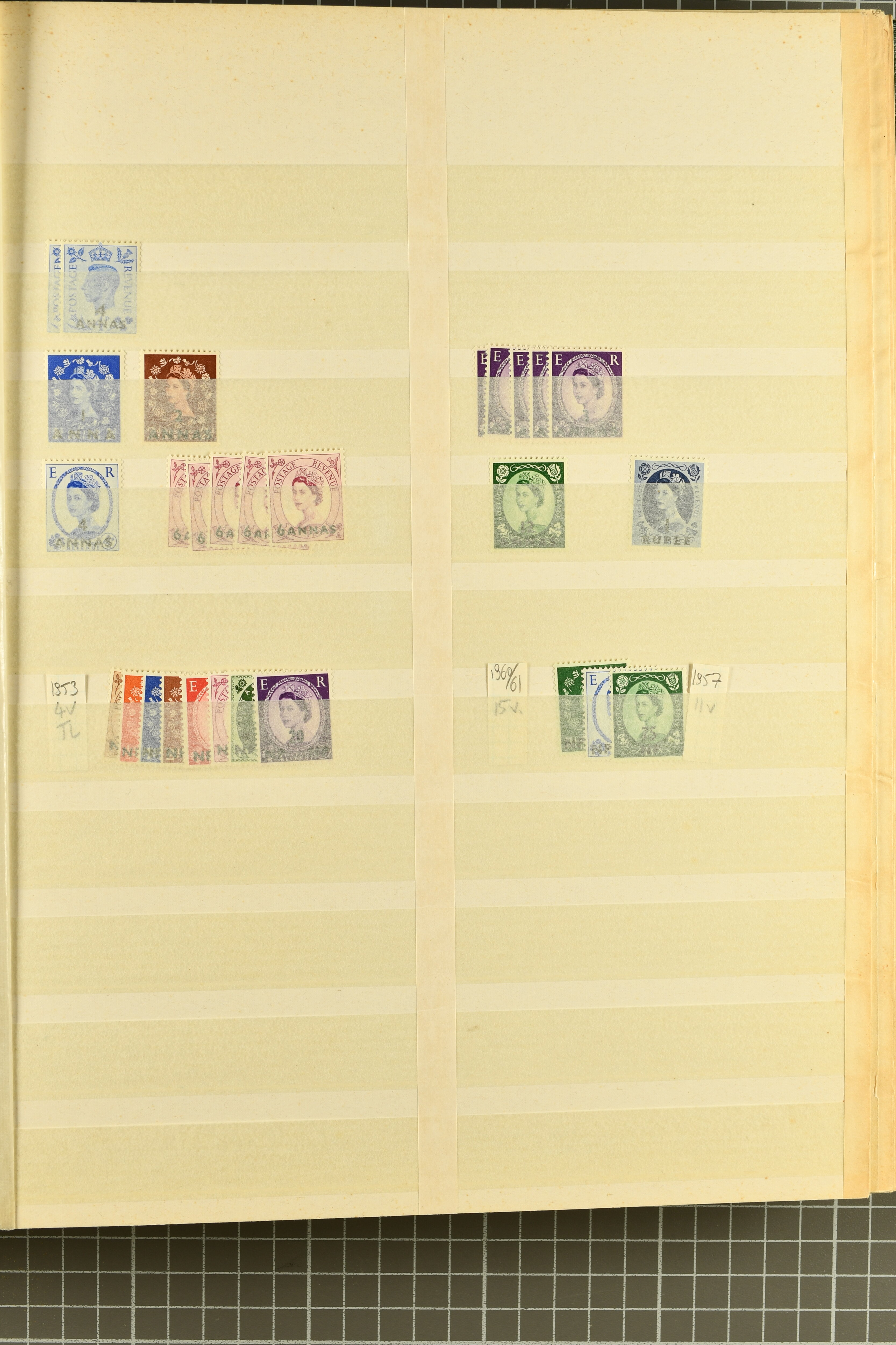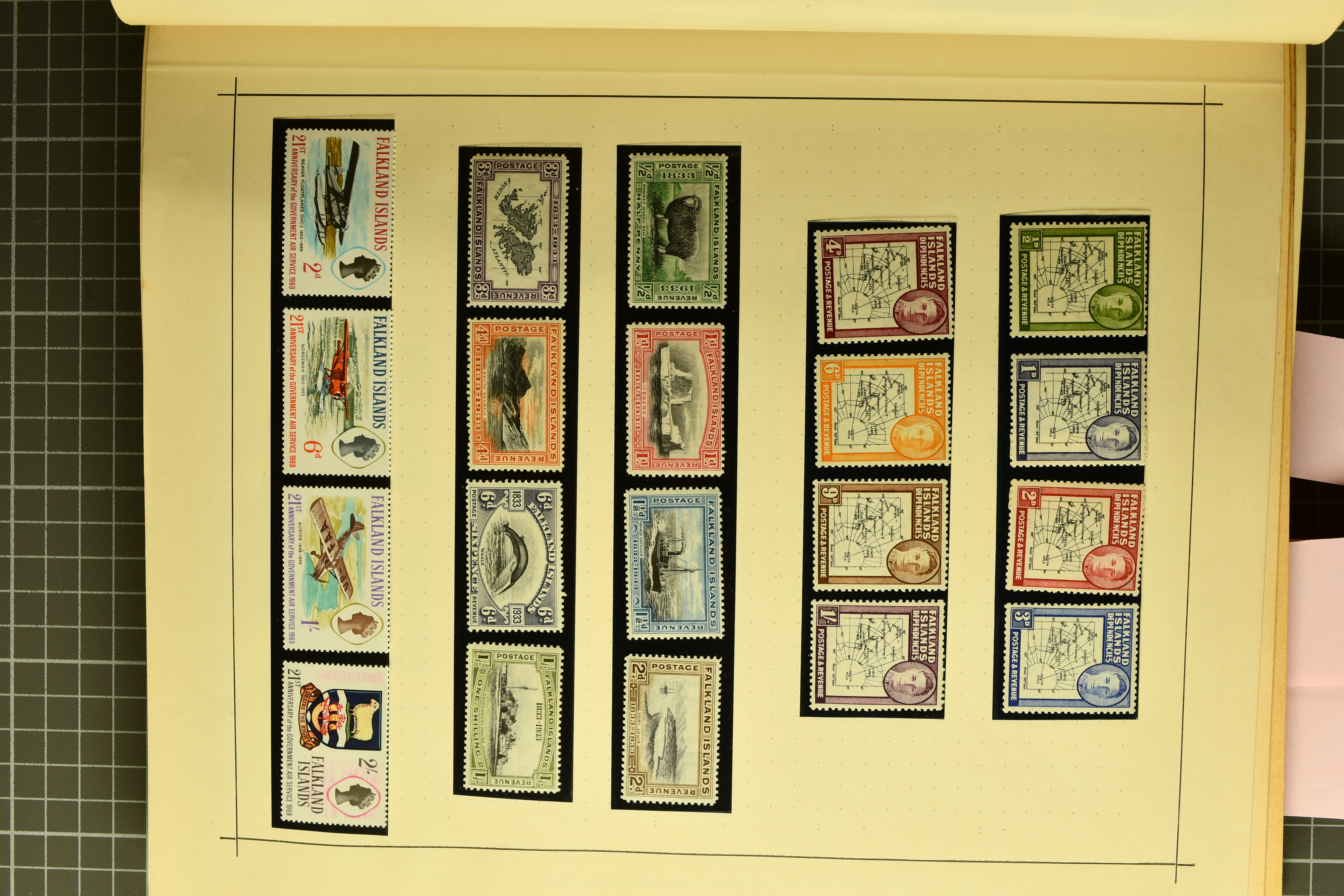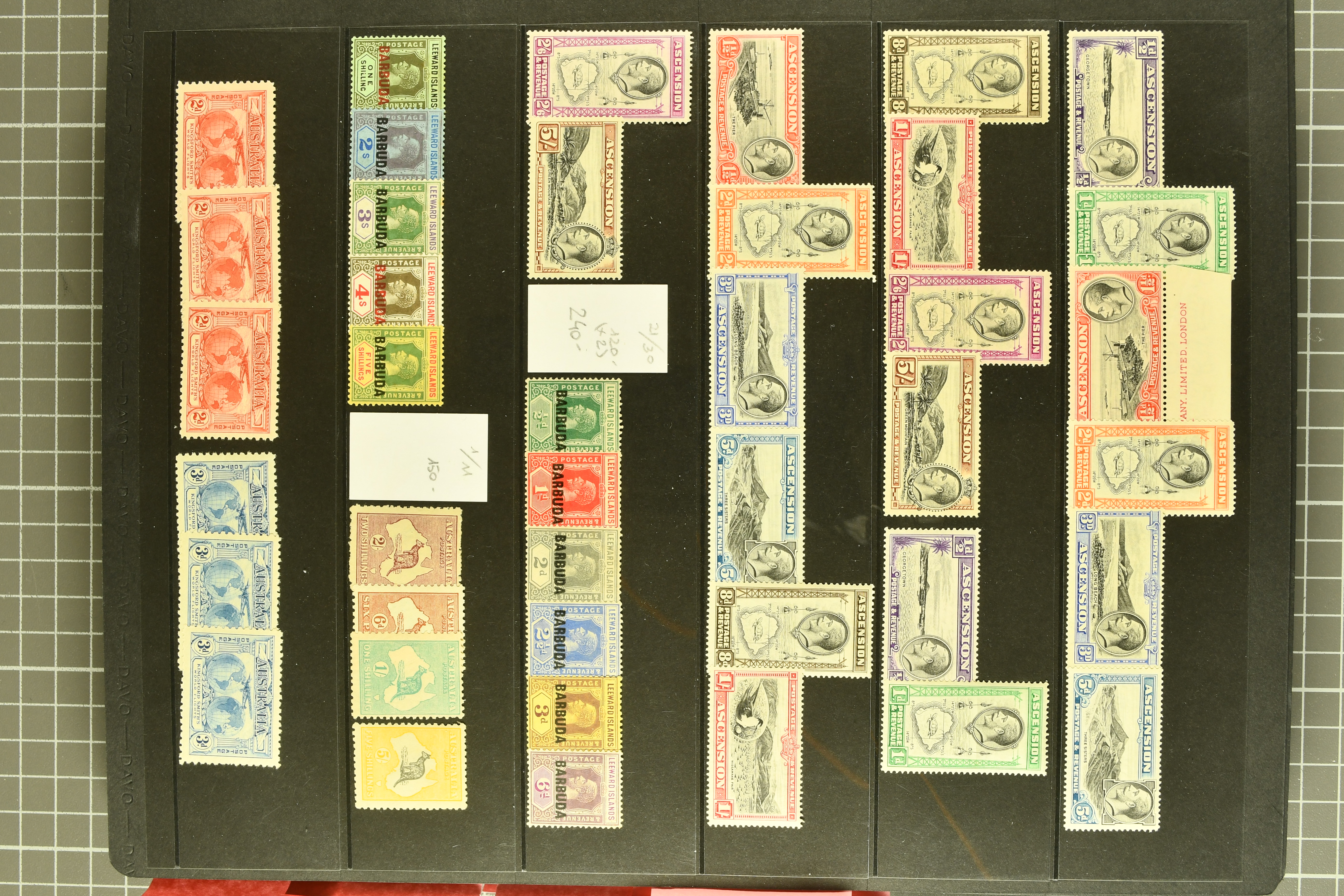 584 1870/1960ca.: Commonwealth Dealer's stock in ten albums with many good and predominantely unused sets from Aden to Zanzibar, including Bahrain, Barbados with unused 1907 2d. showing inverted ovpt. (cert. RPSL 2010), 1885 British Bechuanaland (Gi. 1/8) unused, British Guyana, Cayman Islands, Ceylon 1912 and later Issues, Falkland Islands and Dependencies 1878ff including 1898 2s.6d and 5s.unused, 1933 5s. King Penguin and 10s. Coat of Arms unused, 1938 part set to 2s.6d., all unused o.g., Fiji 1909ff., Iraq, Kuwait, Morocco Agencies, India 1902ff. with 1948 Gandhi official 1½ a. and some Indian states, various sets or part sets of Malayan states with Johore, Kedah, Kelantan and Perak, Labuan and North Borneo, Montserrat 1903ff, Nigeria and Northern Nigeria 1902ff, a good part of 'N.W. Pacific Islands' and New Guinea and Papua, further South Africa, Southern Rhodesia, St. Helena, St. Kitts and Nevis, St. Lucia, St. Vincent, Seychelles to Sierra Leone as well as sets from Sudan, Tanganyika, Trinidad, Transjordan, Turks and Caicos Islands, Virgin Islands to Zanzibar. All well preserved fresh and fine in choice condition. Viewing recommended