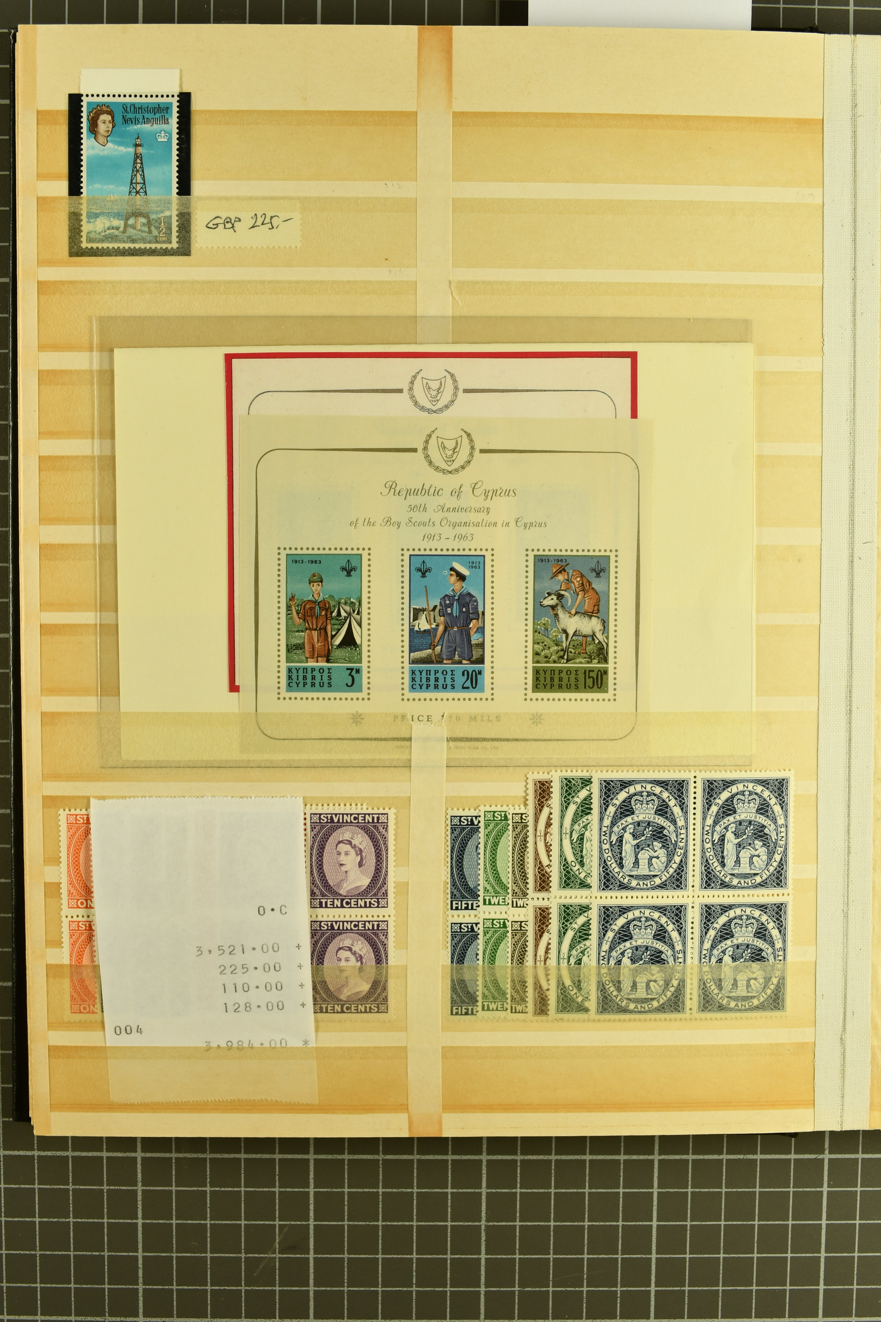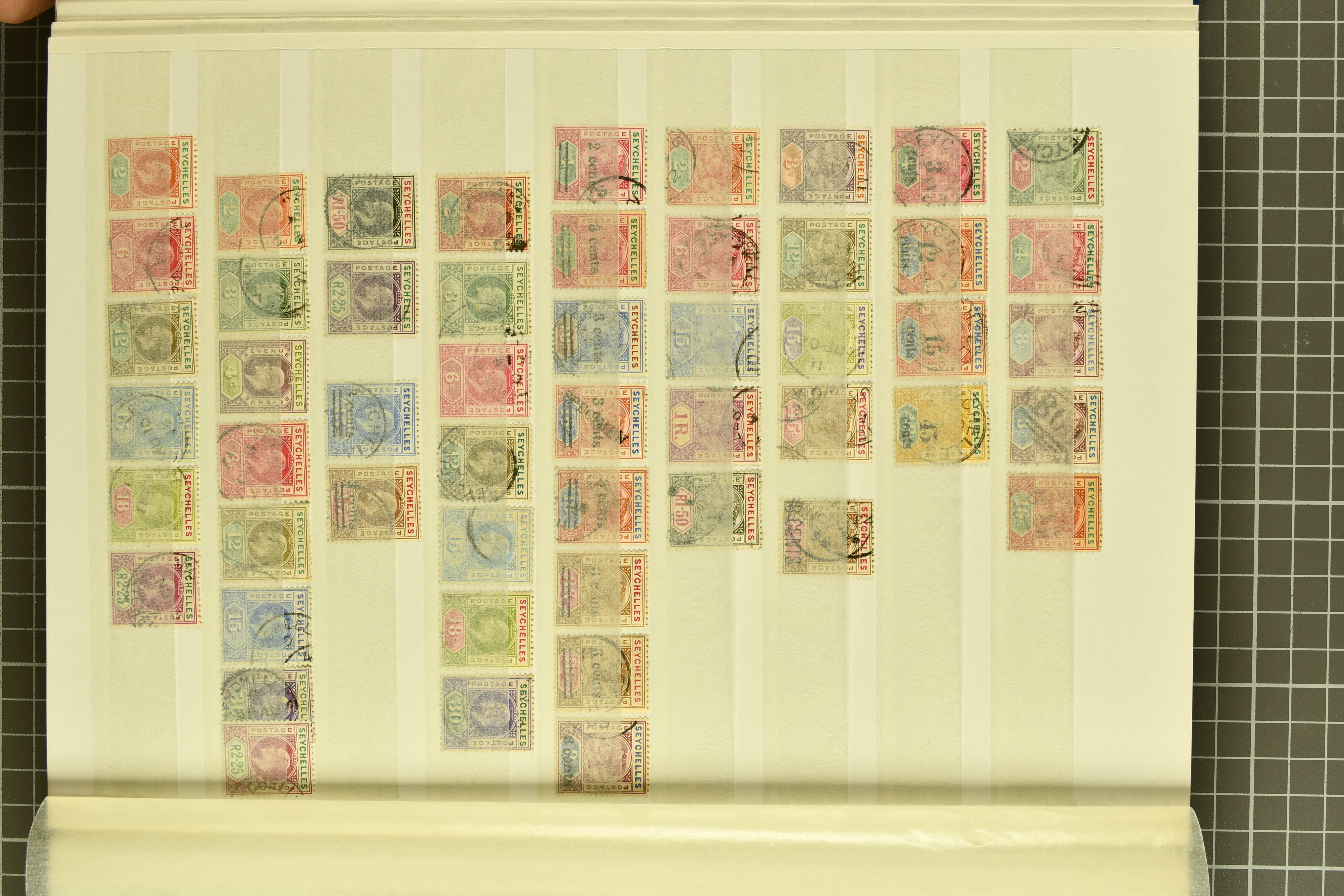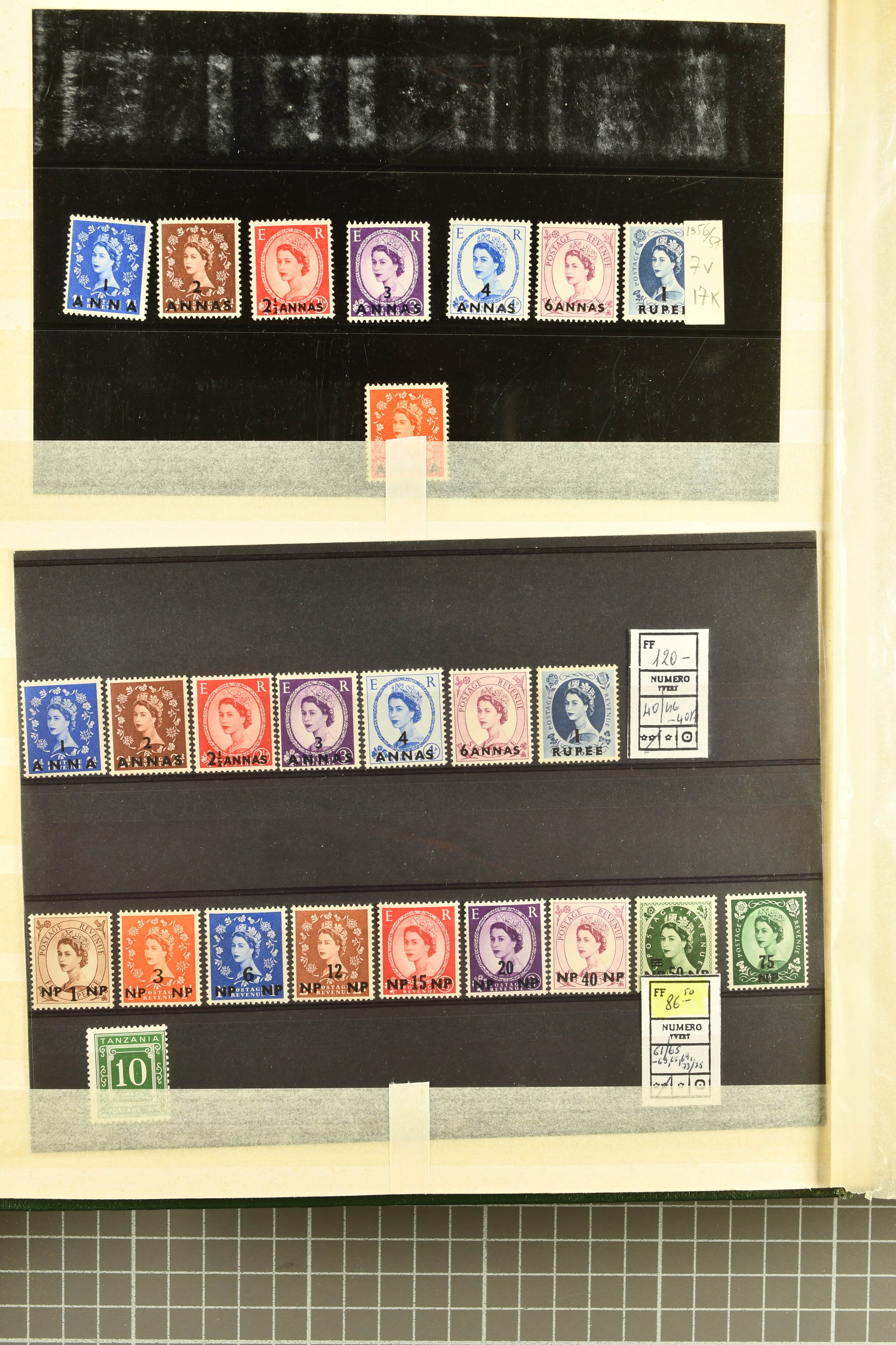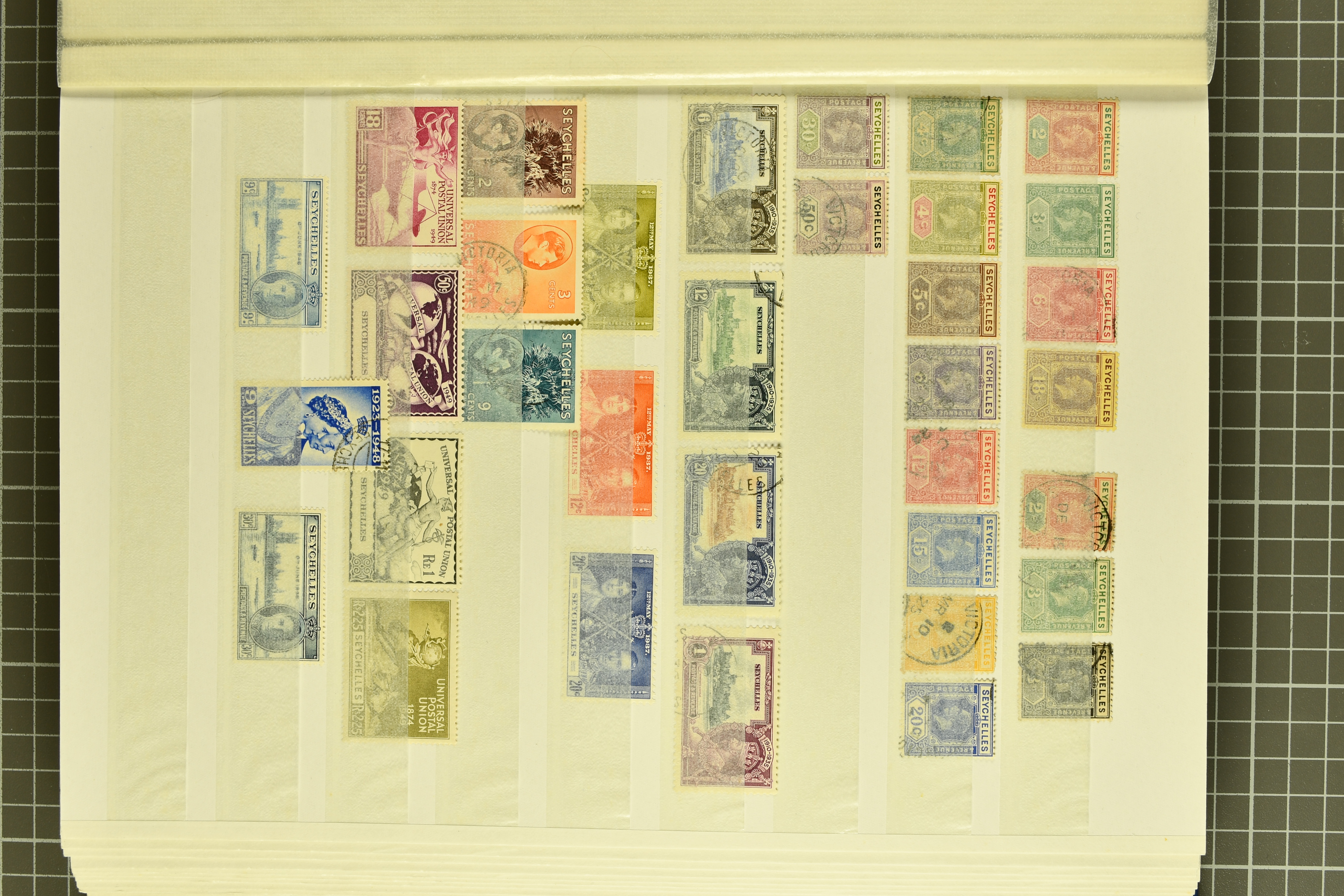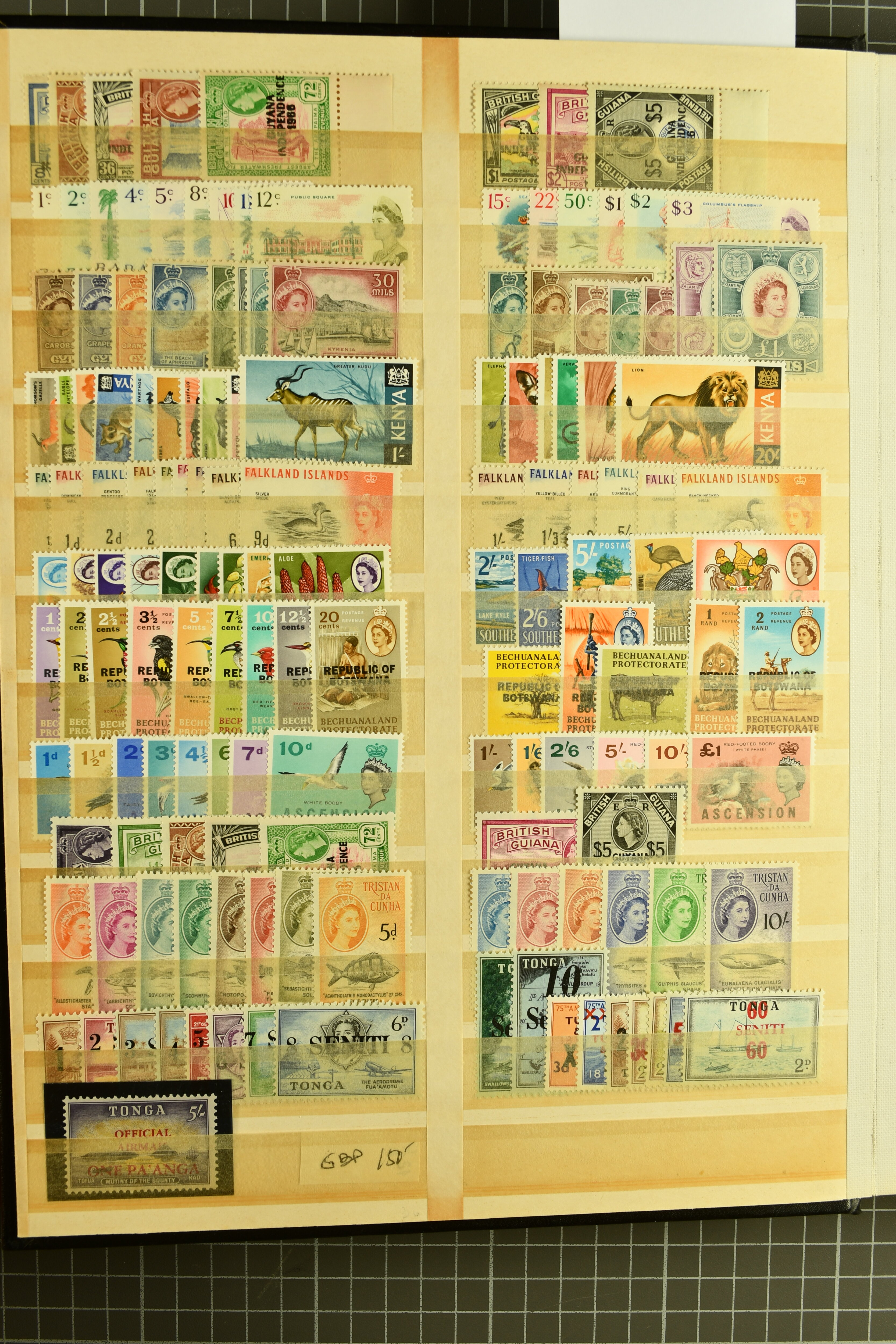 584 1870/1960ca.: Commonwealth Dealer's stock in ten albums with many good and predominantely unused sets from Aden to Zanzibar, including Bahrain, Barbados with unused 1907 2d. showing inverted ovpt. (cert. RPSL 2010), 1885 British Bechuanaland (Gi. 1/8) unused, British Guyana, Cayman Islands, Ceylon 1912 and later Issues, Falkland Islands and Dependencies 1878ff including 1898 2s.6d and 5s.unused, 1933 5s. King Penguin and 10s. Coat of Arms unused, 1938 part set to 2s.6d., all unused o.g., Fiji 1909ff., Iraq, Kuwait, Morocco Agencies, India 1902ff. with 1948 Gandhi official 1½ a. and some Indian states, various sets or part sets of Malayan states with Johore, Kedah, Kelantan and Perak, Labuan and North Borneo, Montserrat 1903ff, Nigeria and Northern Nigeria 1902ff, a good part of 'N.W. Pacific Islands' and New Guinea and Papua, further South Africa, Southern Rhodesia, St. Helena, St. Kitts and Nevis, St. Lucia, St. Vincent, Seychelles to Sierra Leone as well as sets from Sudan, Tanganyika, Trinidad, Transjordan, Turks and Caicos Islands, Virgin Islands to Zanzibar. All well preserved fresh and fine in choice condition. Viewing recommended