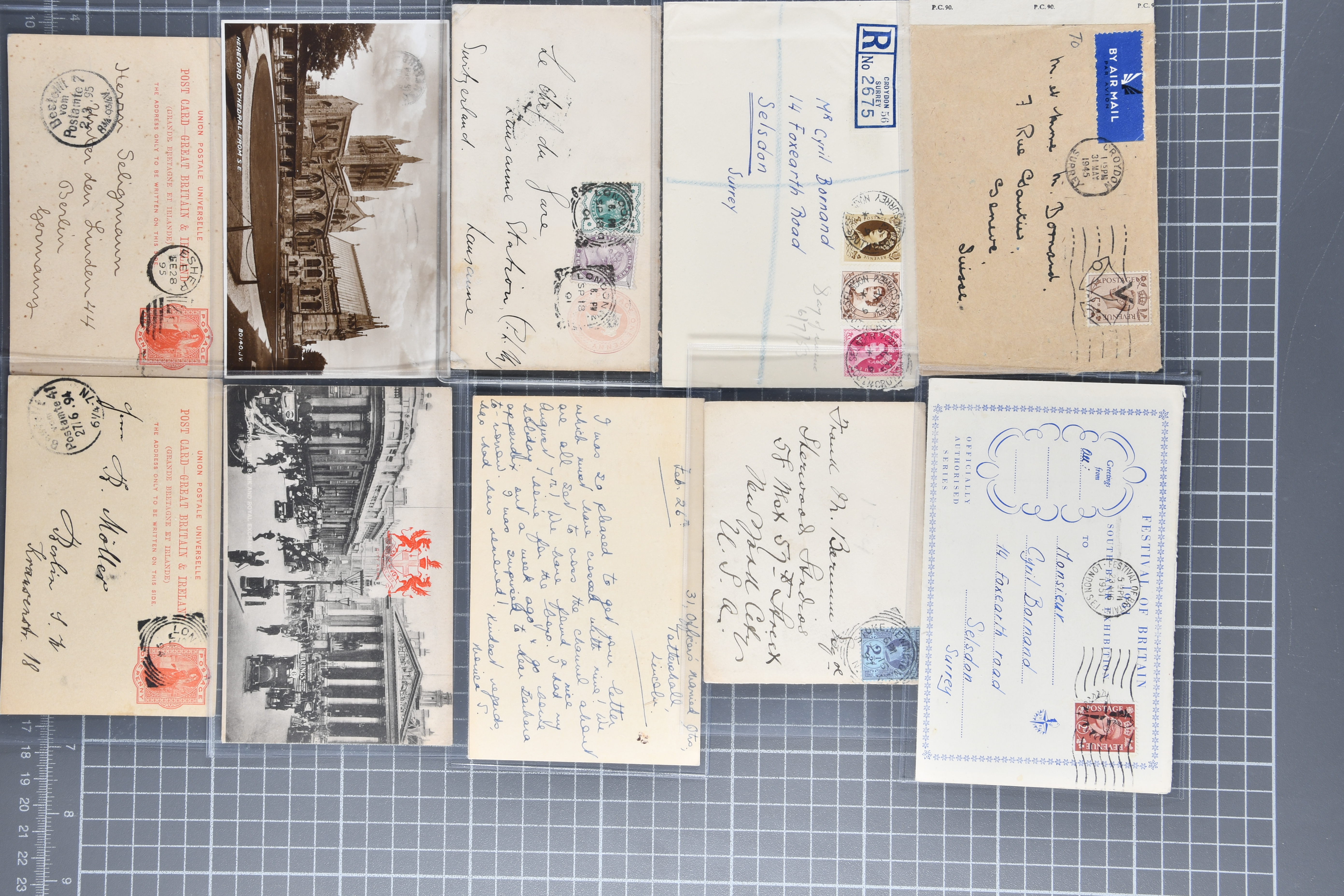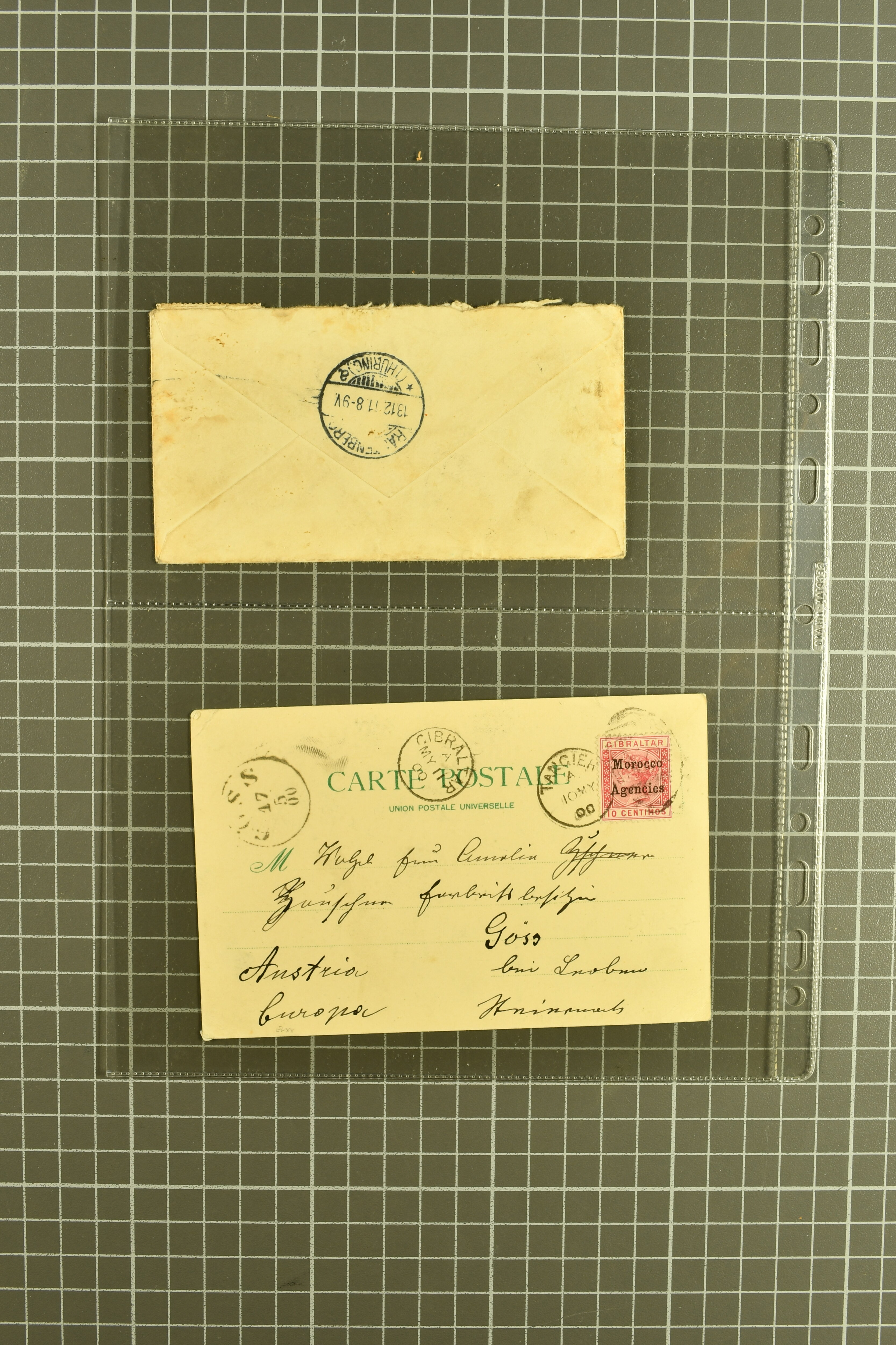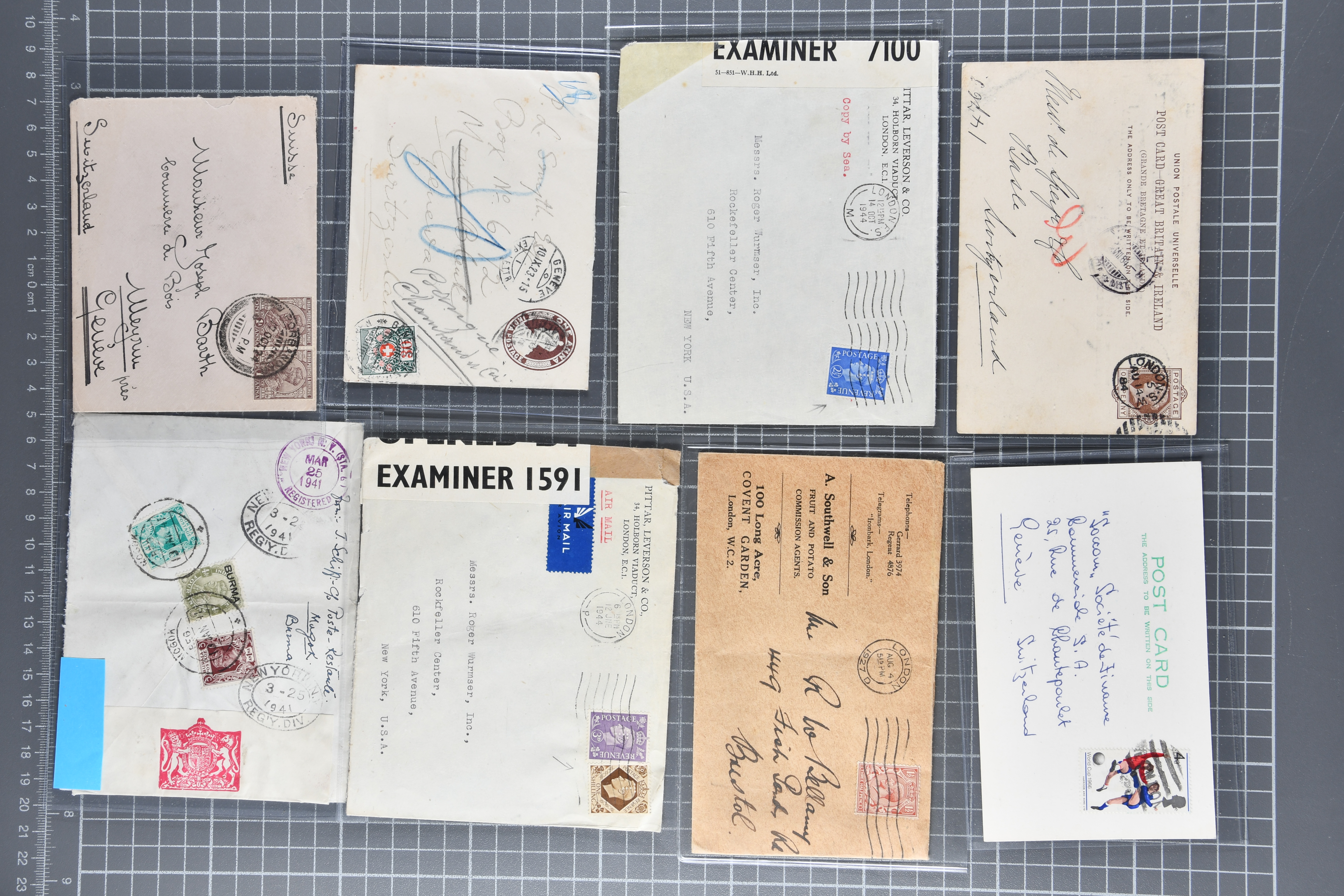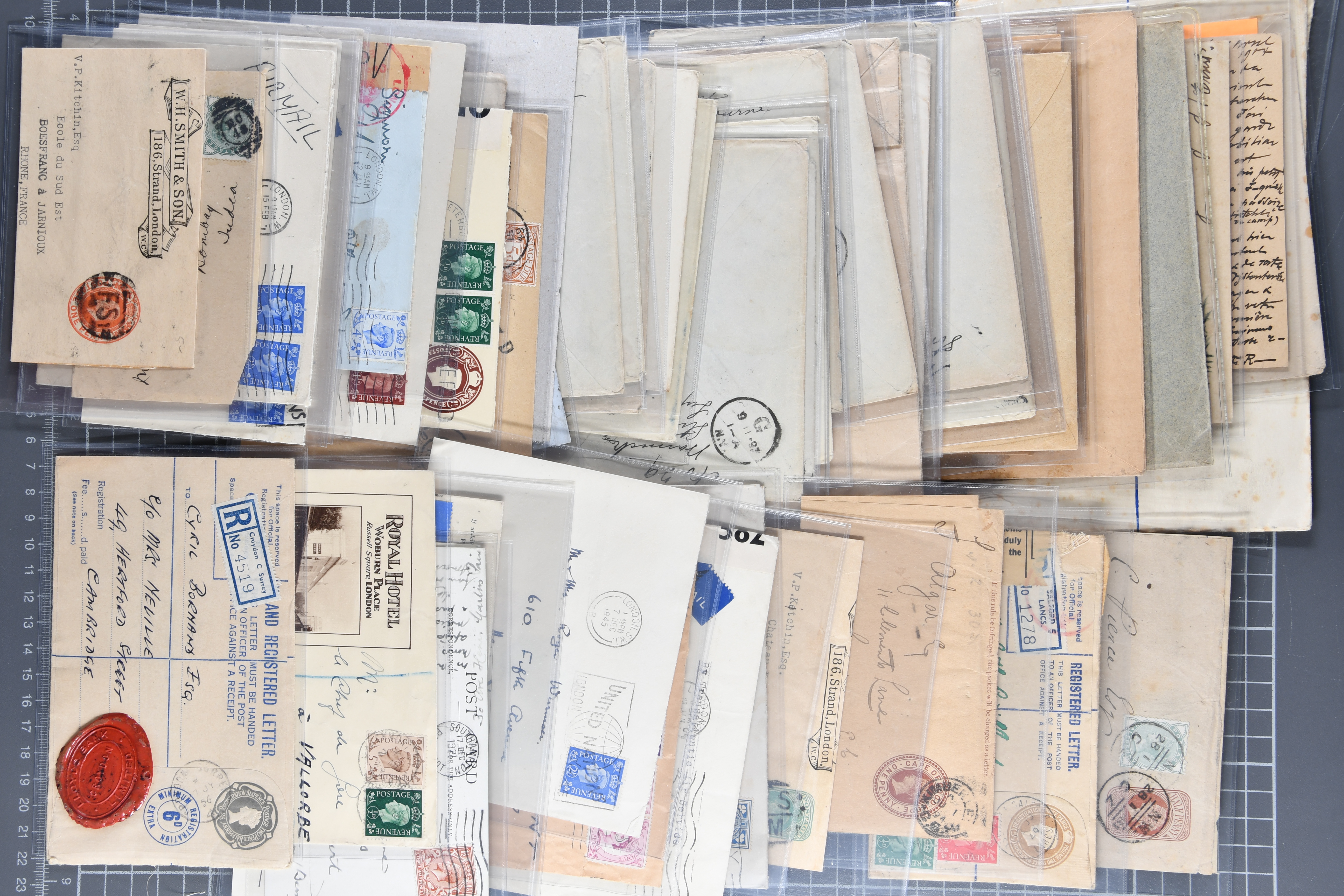 586 cover image1857/1960ca.: Interesting lot of covers and postcards from Great Britain, with a few from Ireland and colonies including Gibraltar, Gold Coast, Sarawak and India. The lot begins with eight 1d red stamps 1857 (SG 29) on cover from London to Vienna. Includes censored items, postal stationery and various destinations. In total 115 items (Image 1) (Image 2) (Image 3) (Image 4) (Image 5)