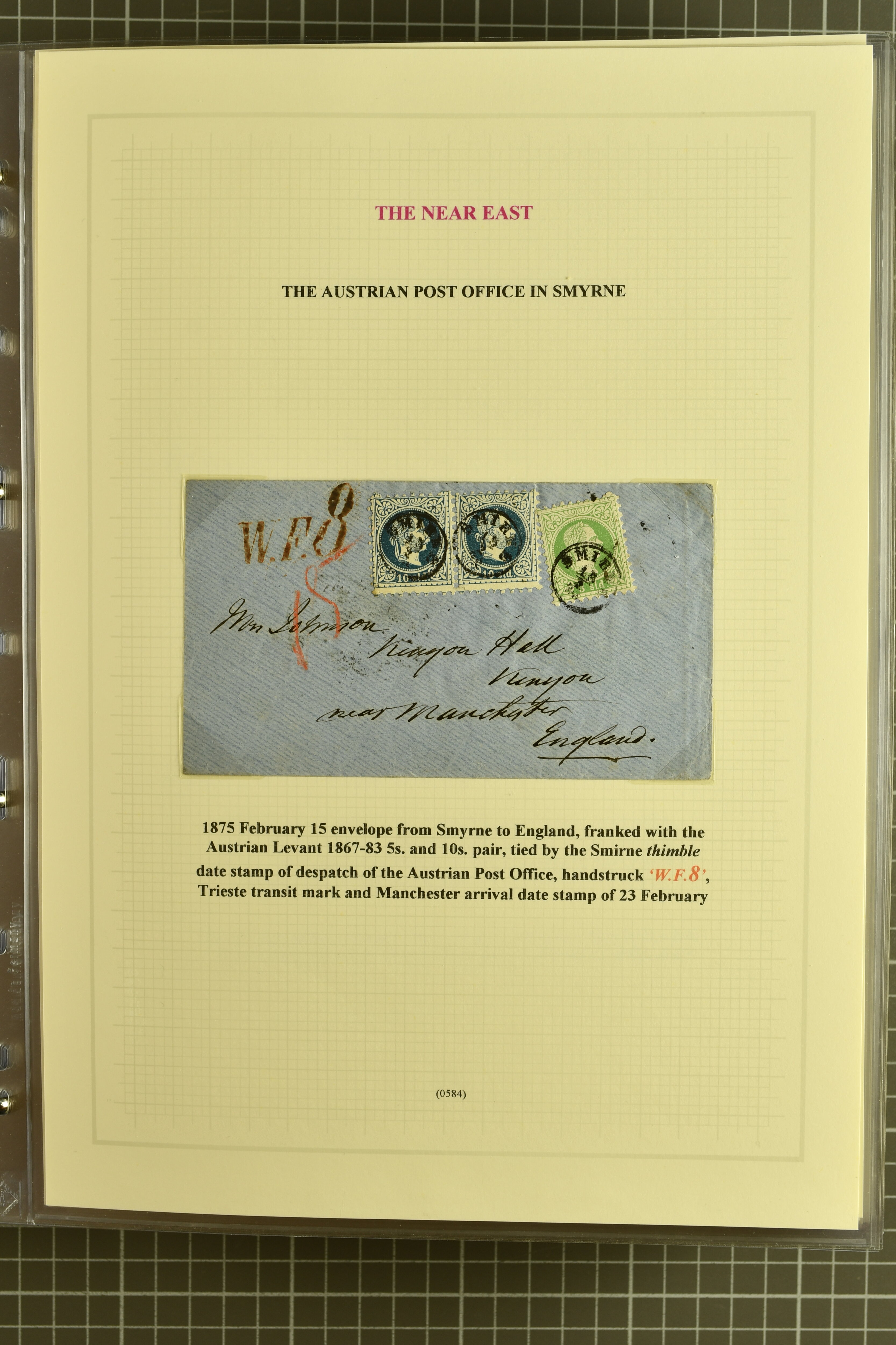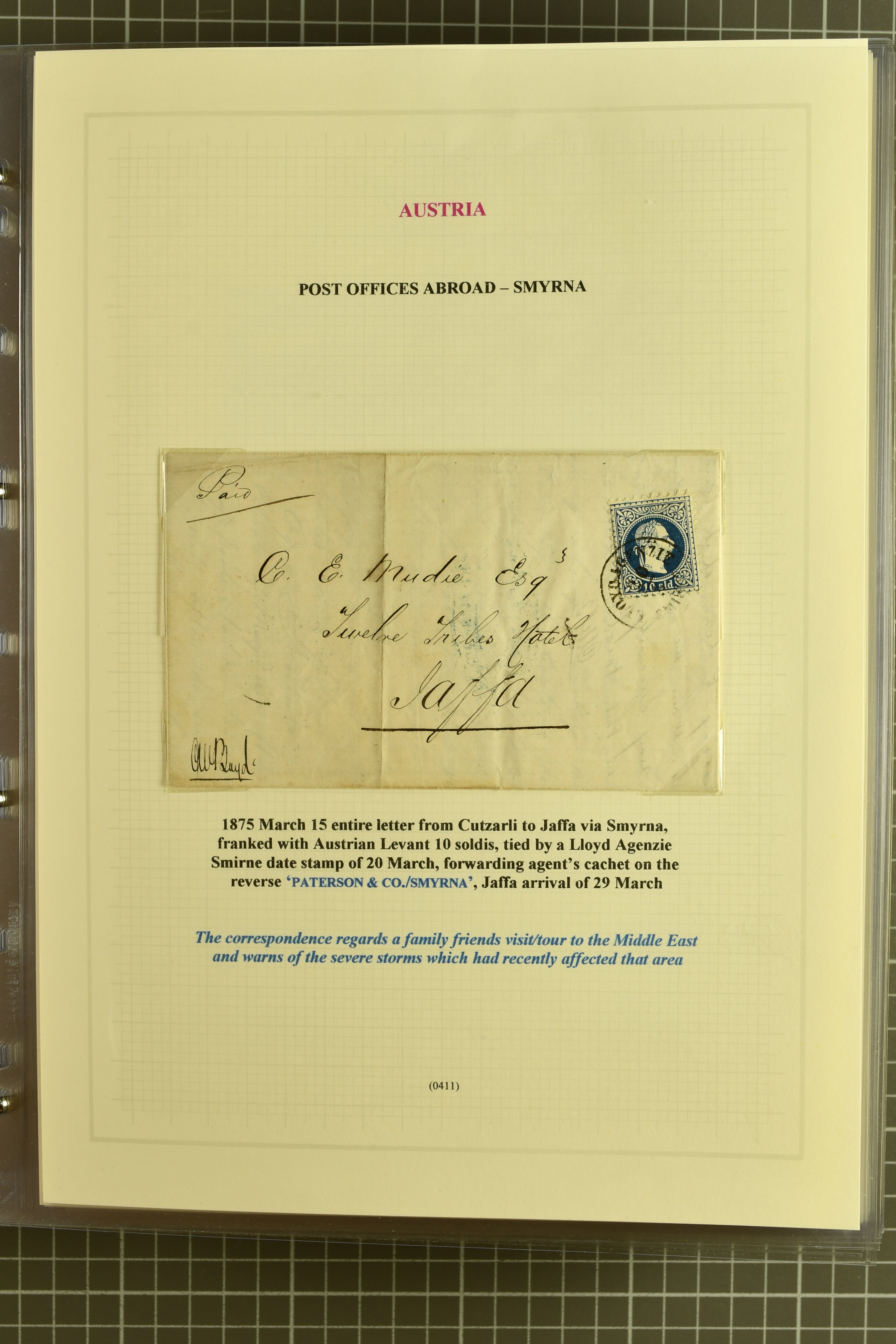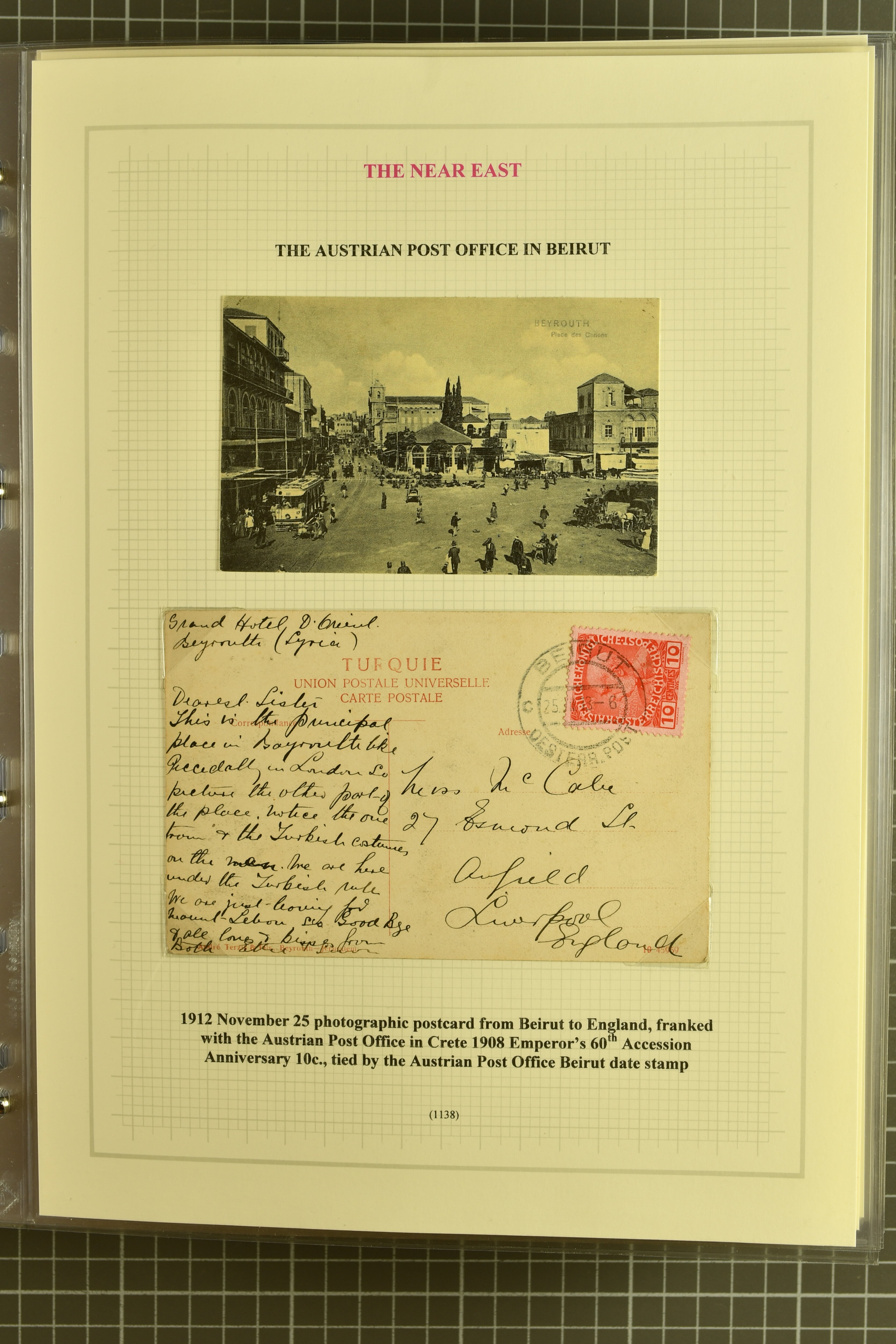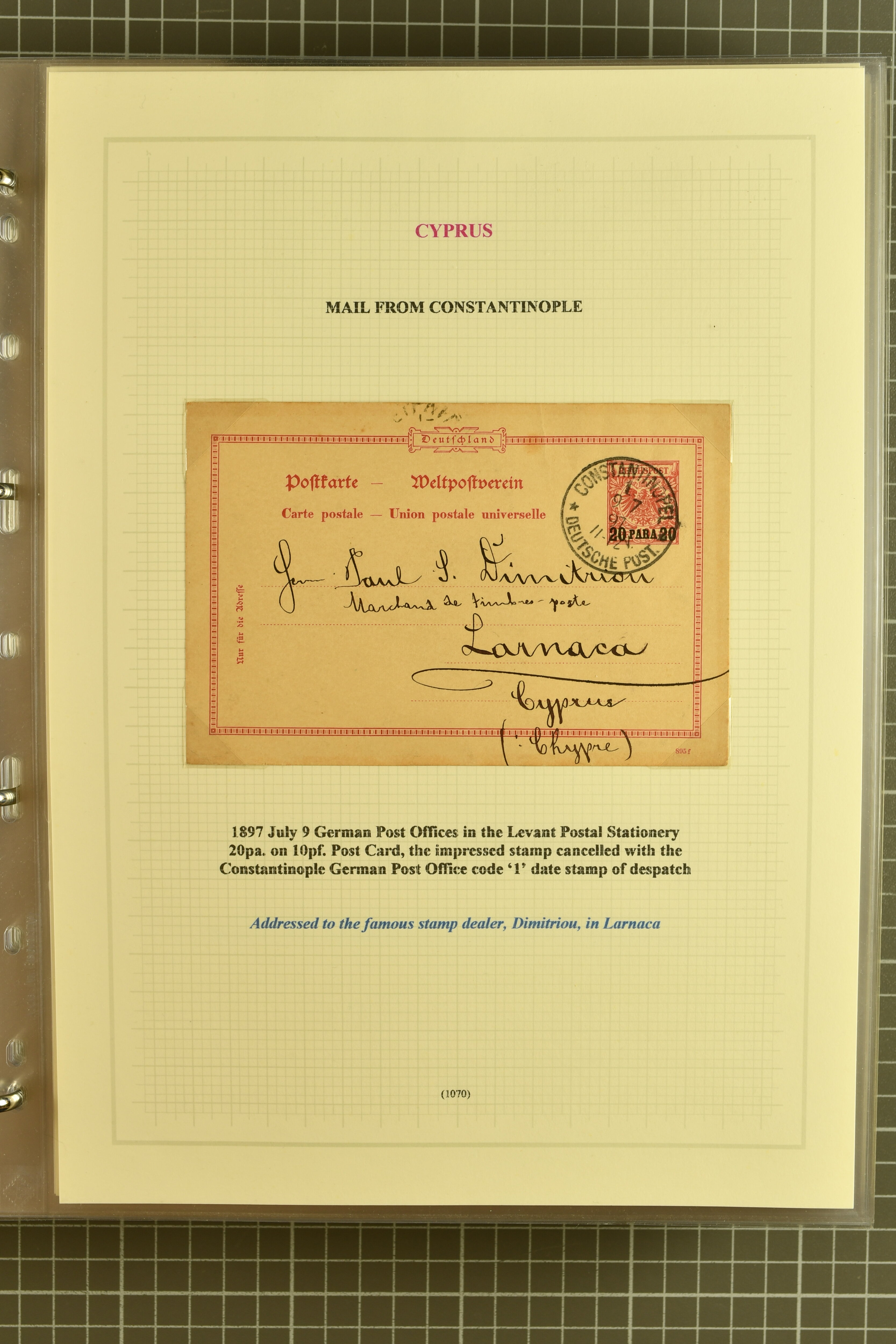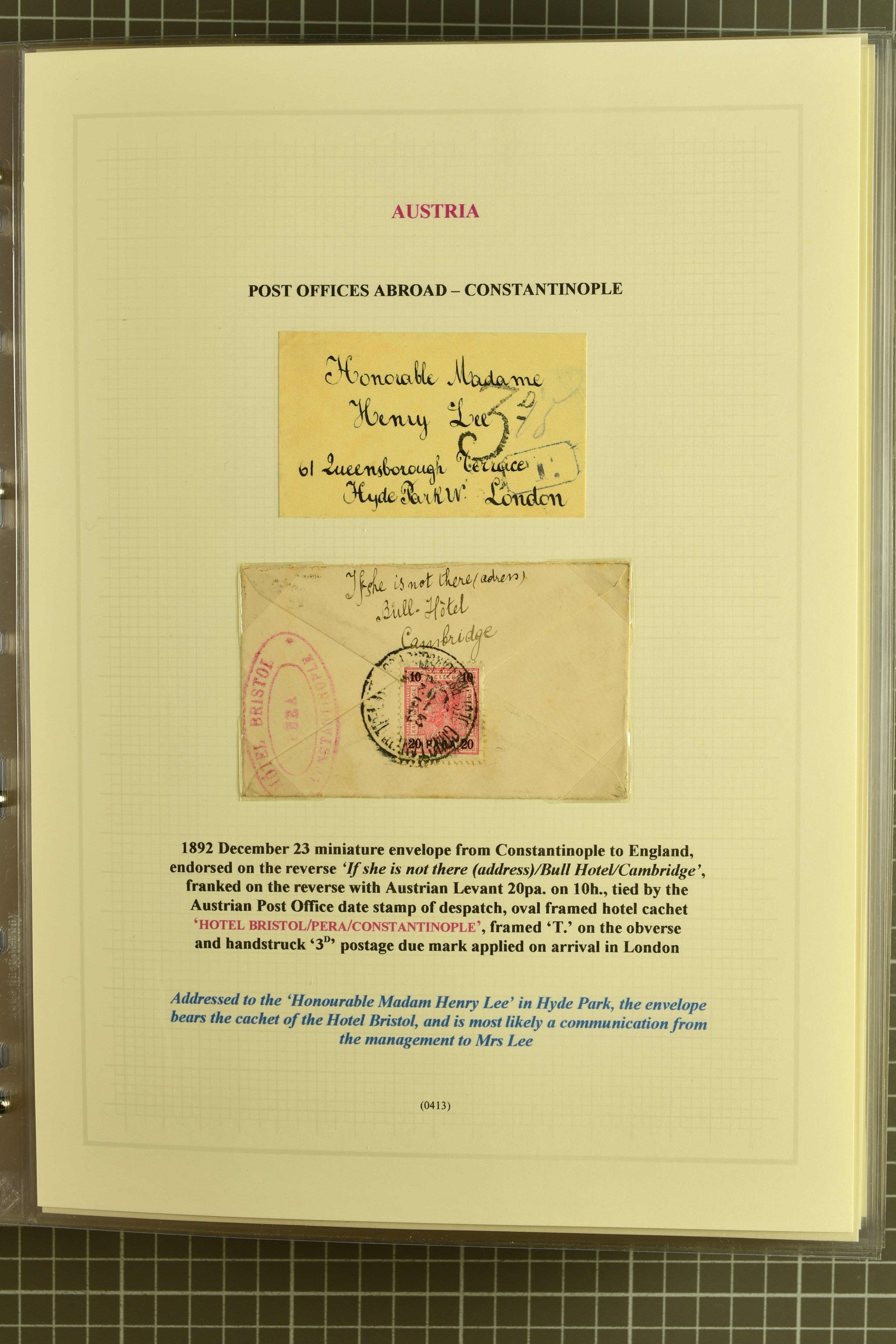 5612 cover image1766/1936: Collection of covers/cards (83) with Ethiopia 1917 consular postcard with "Consulat de France / Dire Daoua" cachet in violet, Afghanistan 1935 consular cover from Kabul to England witth India Official 2 a. 6 p. orange, 1847 Antigua cover to England, Austria 1864 2 kr. yellow on Printed Matter cover from "Huszt", 1897 uprated stationery card mailed to Larnaca, Cyprus; 1875 cover from Smirna to England franked 1867/74 3 s. green and 10 s. blue pair tied by SMIRNE thimble cds; 1875 cover to Jaffa from Smirne franked 10 s. blue, 1892 Cook Islands first issue cover with single 2½ d. blue, Dahomey 1896 cover franked at 25 c. to Oyo via Lagos; Leewards 1 d. rose stationery envelopes (2) each cancelled "Wesley / Dominica" cds's; 1875 cover to UK with France 1871/75 Cérès 10 c. and 25 c. pair cancelled by 5098 gros chiffres of Smirna; 1897 20 pa. stationery card from Constantinople to Cyprus; 1888 South Australia 6 d. blue on cover to Hawaii, range of Italian pre-stamp covers/ entires, 1917 New Guinea cover with 1 d. red ex Kieta to England via Rabaul; 1906 North Borneo cards (2) each franked 4 c. to Singapore; Palestine with 1 pi. ultramarine on 1918 cover to Alexandria, 1910 registered cover with scarce 'small Papua' 2 s. 6 d., 1896 Queensland 1½ d. brown card to Japan; 1858 and 1859 covers from Russia to Scotland; Seychelles with six covers/cards, 1894 India 1 a. card used from Aden to Bangkok, 1903 Somaliland cover from Berbera, 1842 cover from Trinidad to England etc. Generally fine throughout with much of interest to the postal historian (Image 1) (Image 2) (Image 3) (Image 4) (Image 5) (Image 6) (Image 7) (Image 8) (Image 9) (Image 10) (Image 11) (Image 12) (Image 13) (Image 14) (Image 15) (Image 16) (Image 17) (Image 18) (Image 19) (Image 20) (Image 21) (Image 22) (Image 23) (Image 24) (Image 25) (Image 26) (Image 27) (Image 28) (Image 29) (Image 30) (Image 31) (Image 32) (Image 33) (Image 34) (Image 35) (Image 36) (Image 37) (Image 38) (Image 39) (Image 40) (Image 41) (Image 42) (Image 43) (Image 44) (Image 45) (Image 46) (Image 47) (Image 48) (Image 49) (Image 50)