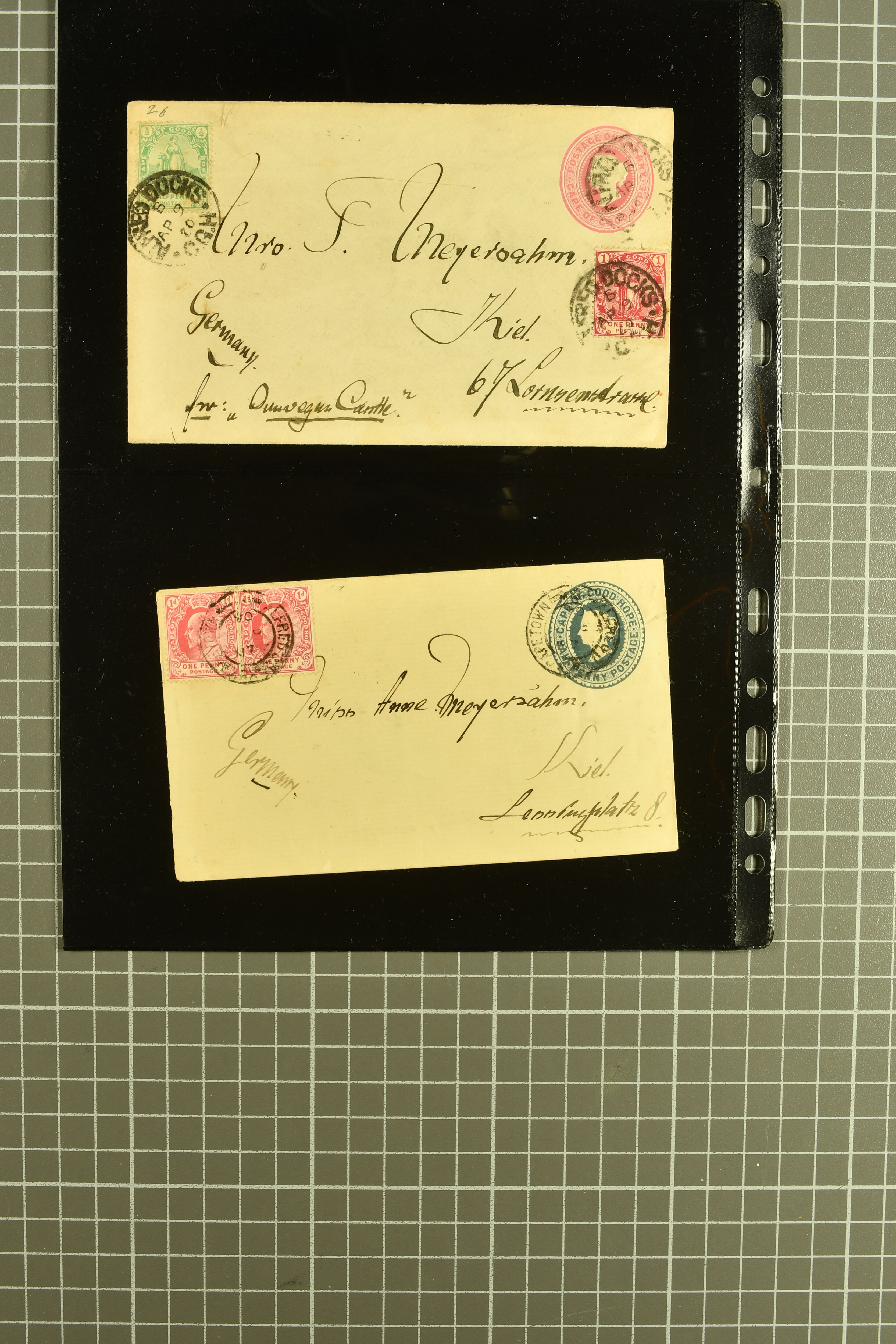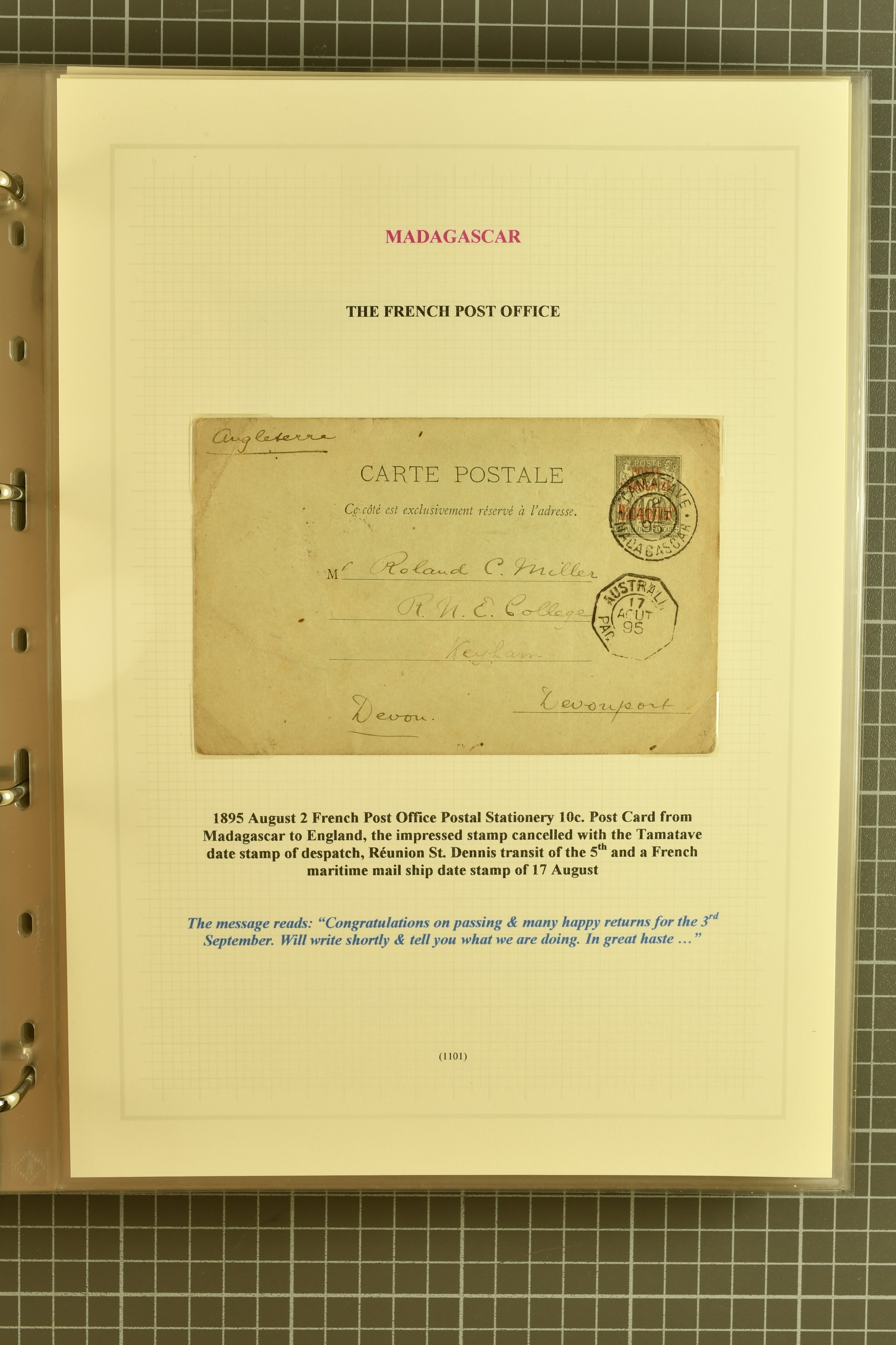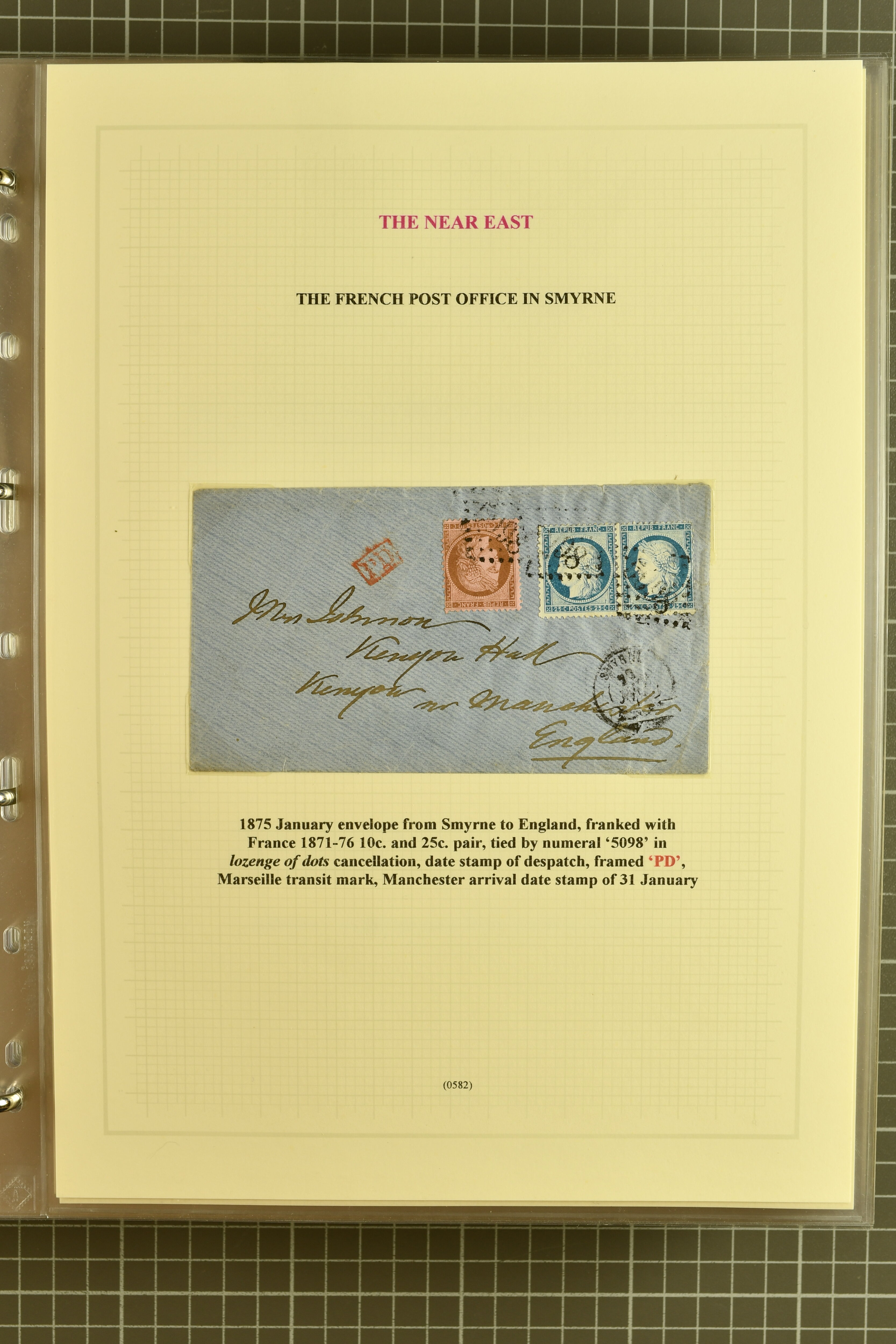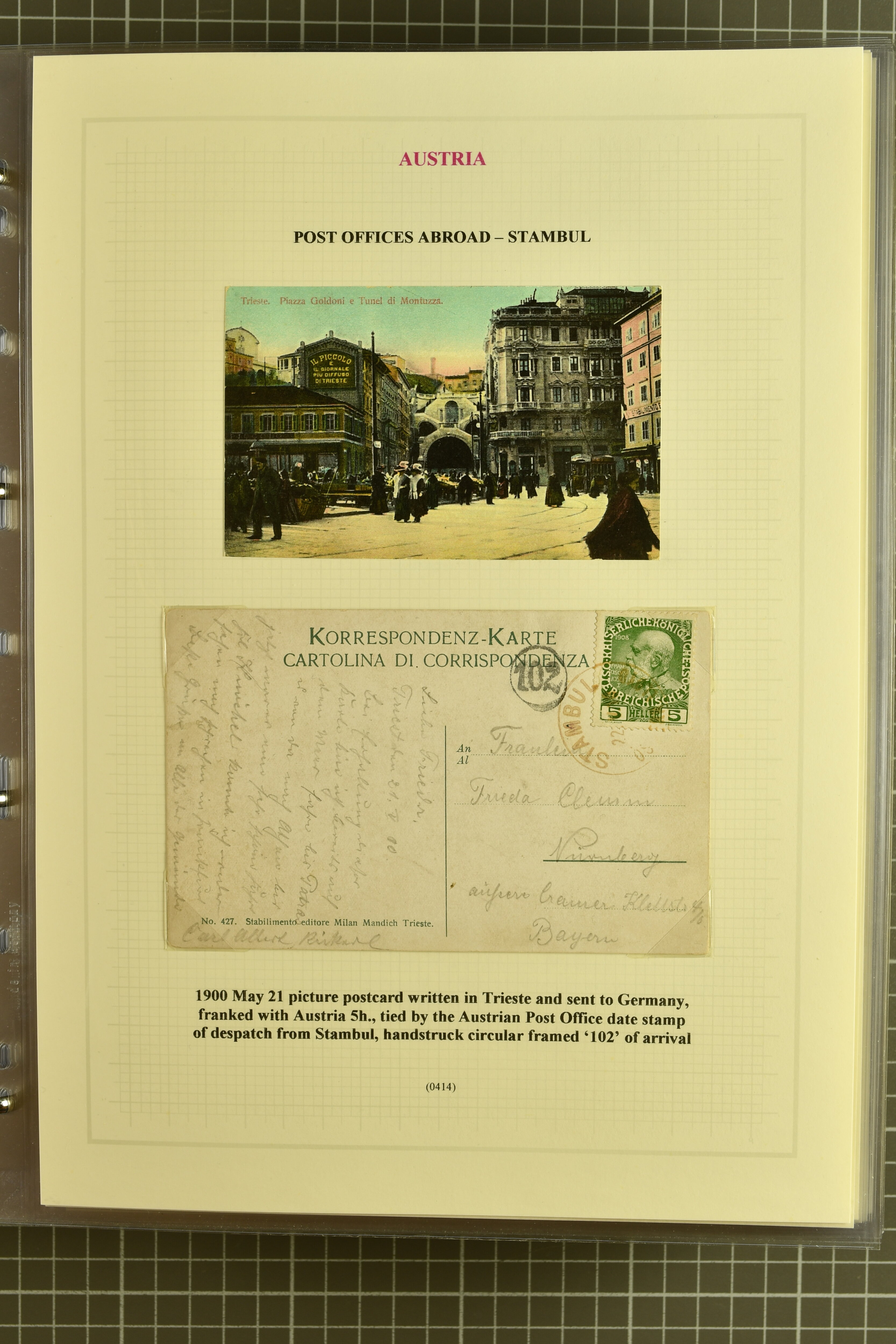 5612 cover image1766/1936: Collection of covers/cards (83) with Ethiopia 1917 consular postcard with "Consulat de France / Dire Daoua" cachet in violet, Afghanistan 1935 consular cover from Kabul to England witth India Official 2 a. 6 p. orange, 1847 Antigua cover to England, Austria 1864 2 kr. yellow on Printed Matter cover from "Huszt", 1897 uprated stationery card mailed to Larnaca, Cyprus; 1875 cover from Smirna to England franked 1867/74 3 s. green and 10 s. blue pair tied by SMIRNE thimble cds; 1875 cover to Jaffa from Smirne franked 10 s. blue, 1892 Cook Islands first issue cover with single 2½ d. blue, Dahomey 1896 cover franked at 25 c. to Oyo via Lagos; Leewards 1 d. rose stationery envelopes (2) each cancelled "Wesley / Dominica" cds's; 1875 cover to UK with France 1871/75 Cérès 10 c. and 25 c. pair cancelled by 5098 gros chiffres of Smirna; 1897 20 pa. stationery card from Constantinople to Cyprus; 1888 South Australia 6 d. blue on cover to Hawaii, range of Italian pre-stamp covers/ entires, 1917 New Guinea cover with 1 d. red ex Kieta to England via Rabaul; 1906 North Borneo cards (2) each franked 4 c. to Singapore; Palestine with 1 pi. ultramarine on 1918 cover to Alexandria, 1910 registered cover with scarce 'small Papua' 2 s. 6 d., 1896 Queensland 1½ d. brown card to Japan; 1858 and 1859 covers from Russia to Scotland; Seychelles with six covers/cards, 1894 India 1 a. card used from Aden to Bangkok, 1903 Somaliland cover from Berbera, 1842 cover from Trinidad to England etc. Generally fine throughout with much of interest to the postal historian (Image 1) (Image 2) (Image 3) (Image 4) (Image 5) (Image 6) (Image 7) (Image 8) (Image 9) (Image 10) (Image 11) (Image 12) (Image 13) (Image 14) (Image 15) (Image 16) (Image 17) (Image 18) (Image 19) (Image 20) (Image 21) (Image 22) (Image 23) (Image 24) (Image 25) (Image 26) (Image 27) (Image 28) (Image 29) (Image 30) (Image 31) (Image 32) (Image 33) (Image 34) (Image 35) (Image 36) (Image 37) (Image 38) (Image 39) (Image 40) (Image 41) (Image 42) (Image 43) (Image 44) (Image 45) (Image 46) (Image 47) (Image 48) (Image 49) (Image 50)