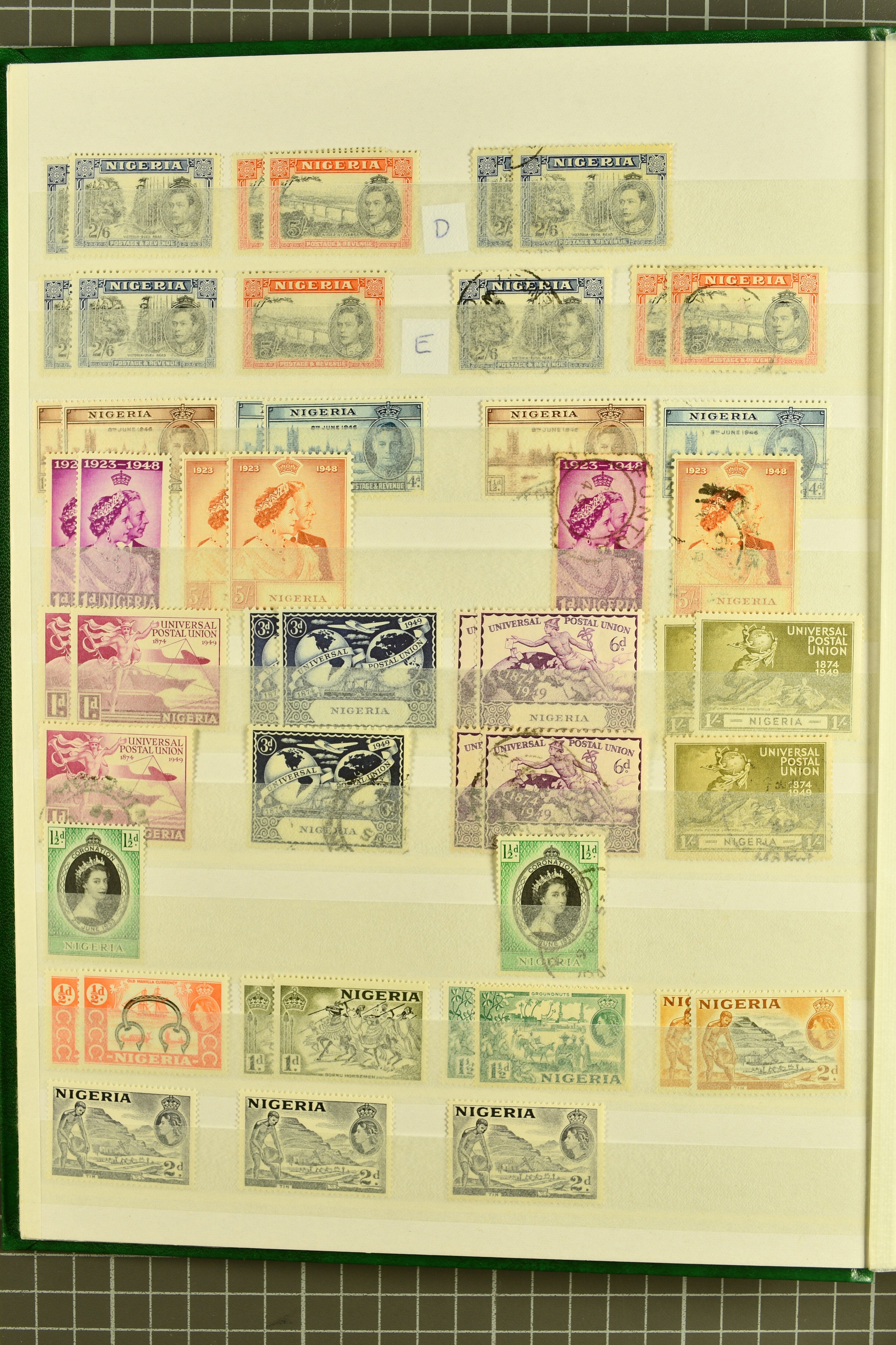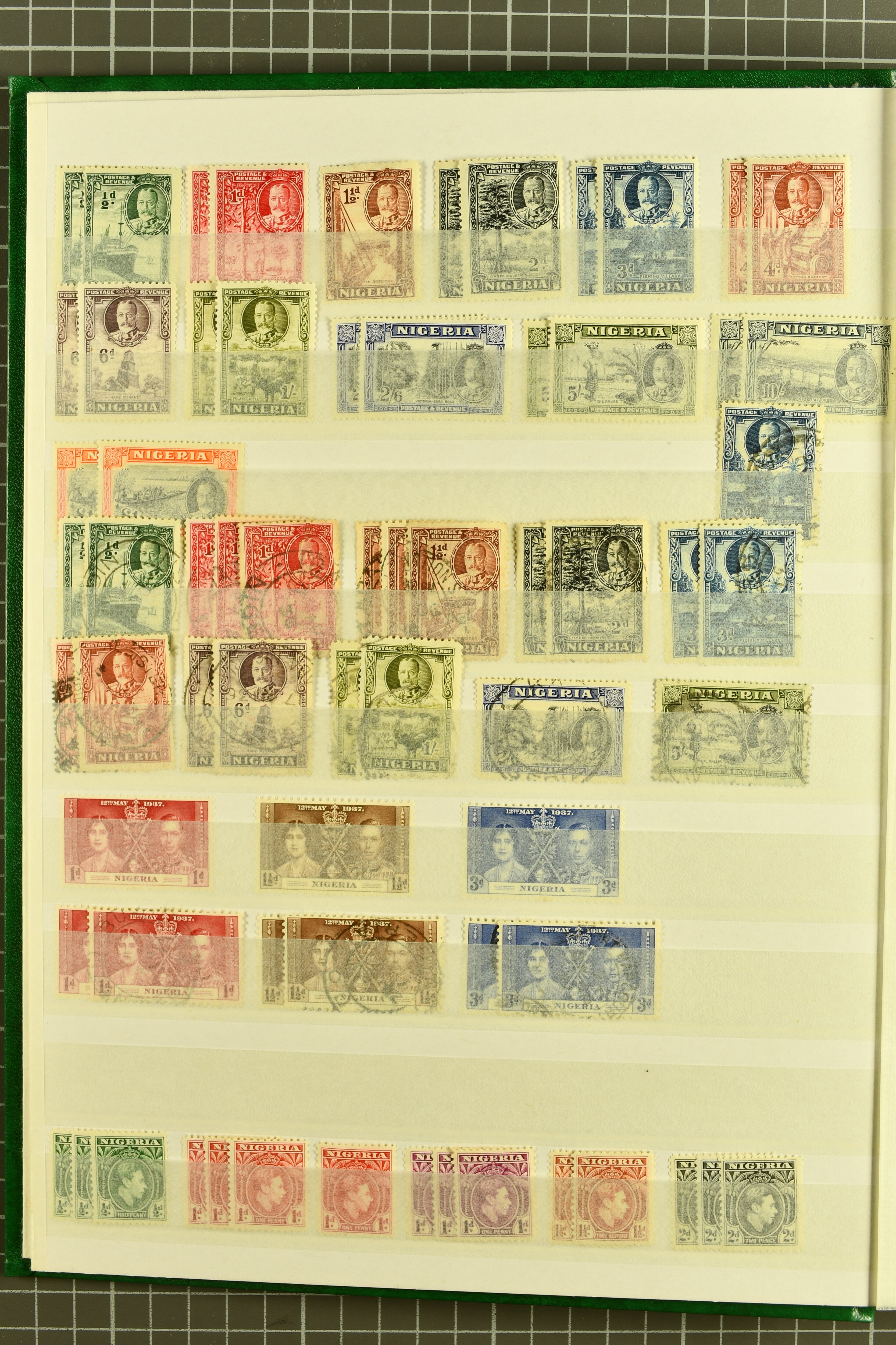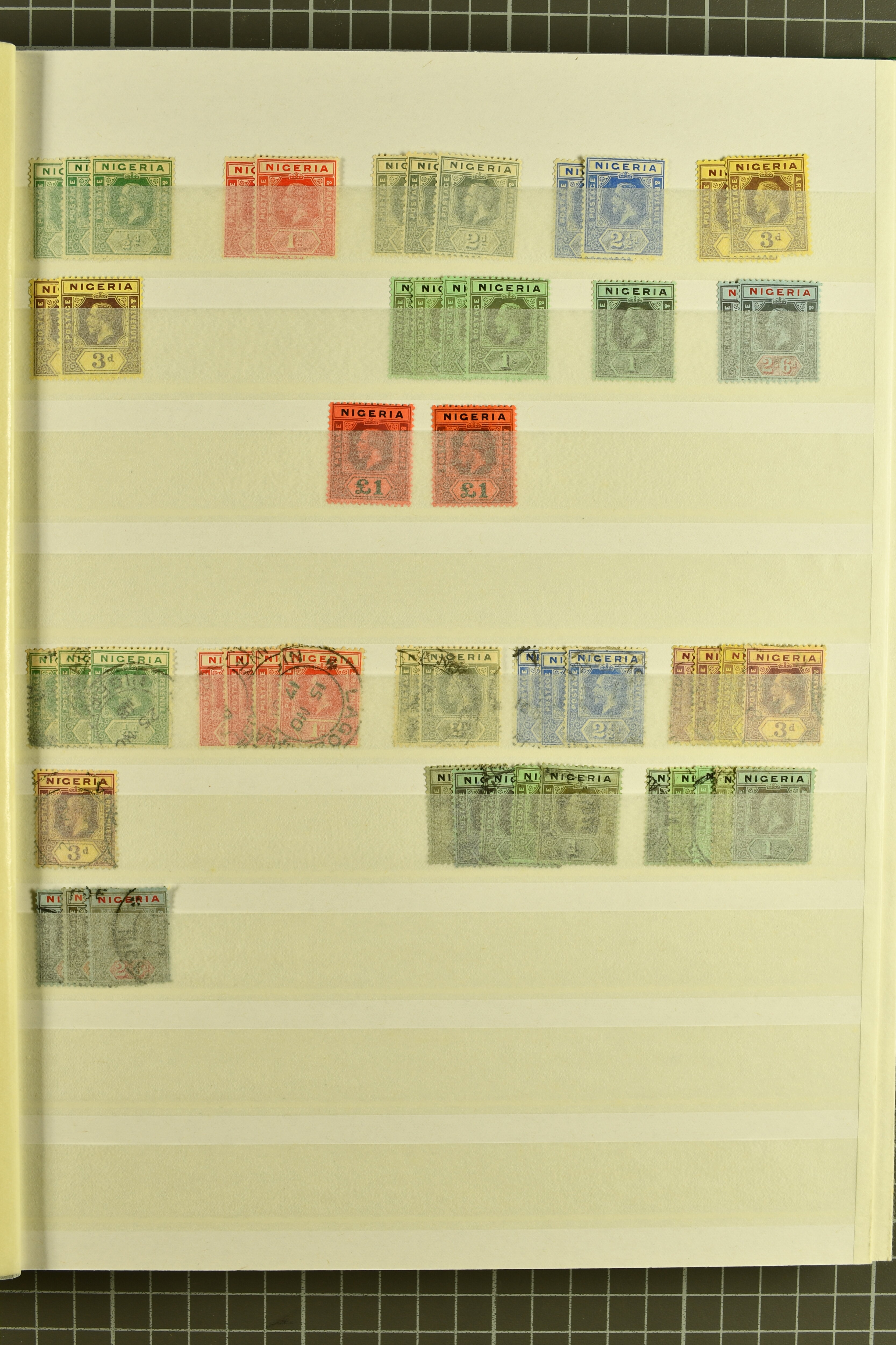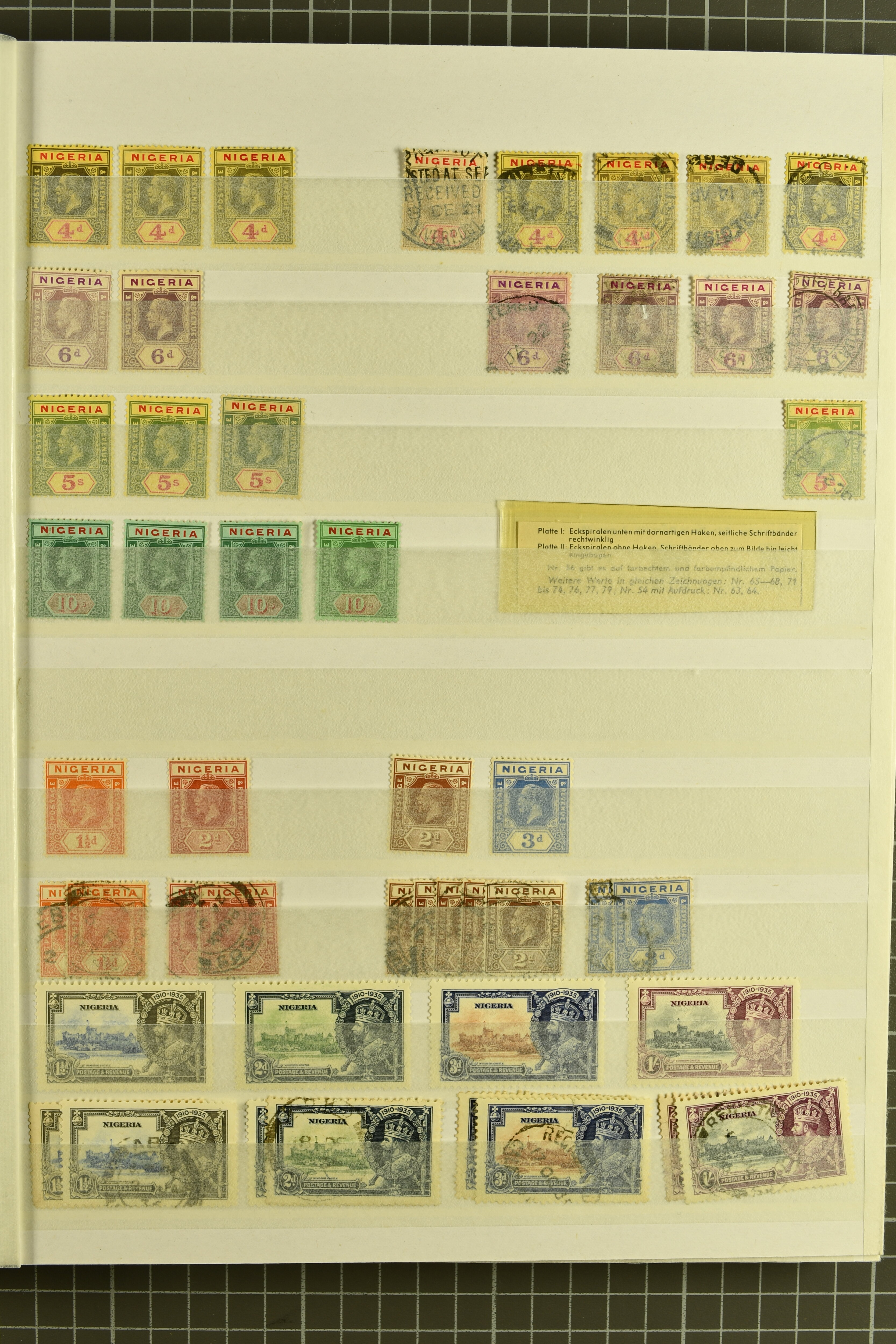 581 image1870/1950c.: Lot hundreds stamps used / unused incl. Nigeria Oil Rivers 1892/94, Niger Coast Protectorate 1894 issues, Northern Nigeria 1902, 1910 & 1912 sets unused, Crown Colony 1914 up to £1 (2), 1921/22 up to 10 s. (7), 1936 Pictorial up to £1, later issues until 1959; Malaysia Straits Settlements Crown Colony 24 c. / 8 a. rose used, 1867/72 and later definitives until 1938, Malaya BMA; and India after 1855 until Independence. Gi = £ 1'700+ (Image 1) (Image 2) (Image 3) (Image 4) (Image 5) (Image 6) (Image 7) (Image 8) (Image 9) (Image 10) (Image 11) (Image 12) (Image 13) (Image 14) (Image 15) (Image 16) (Image 17) (Image 18) (Image 19) (Image 20) (Image 21) (Image 22) (Image 23) (Image 24) (Image 25) (Image 26)
