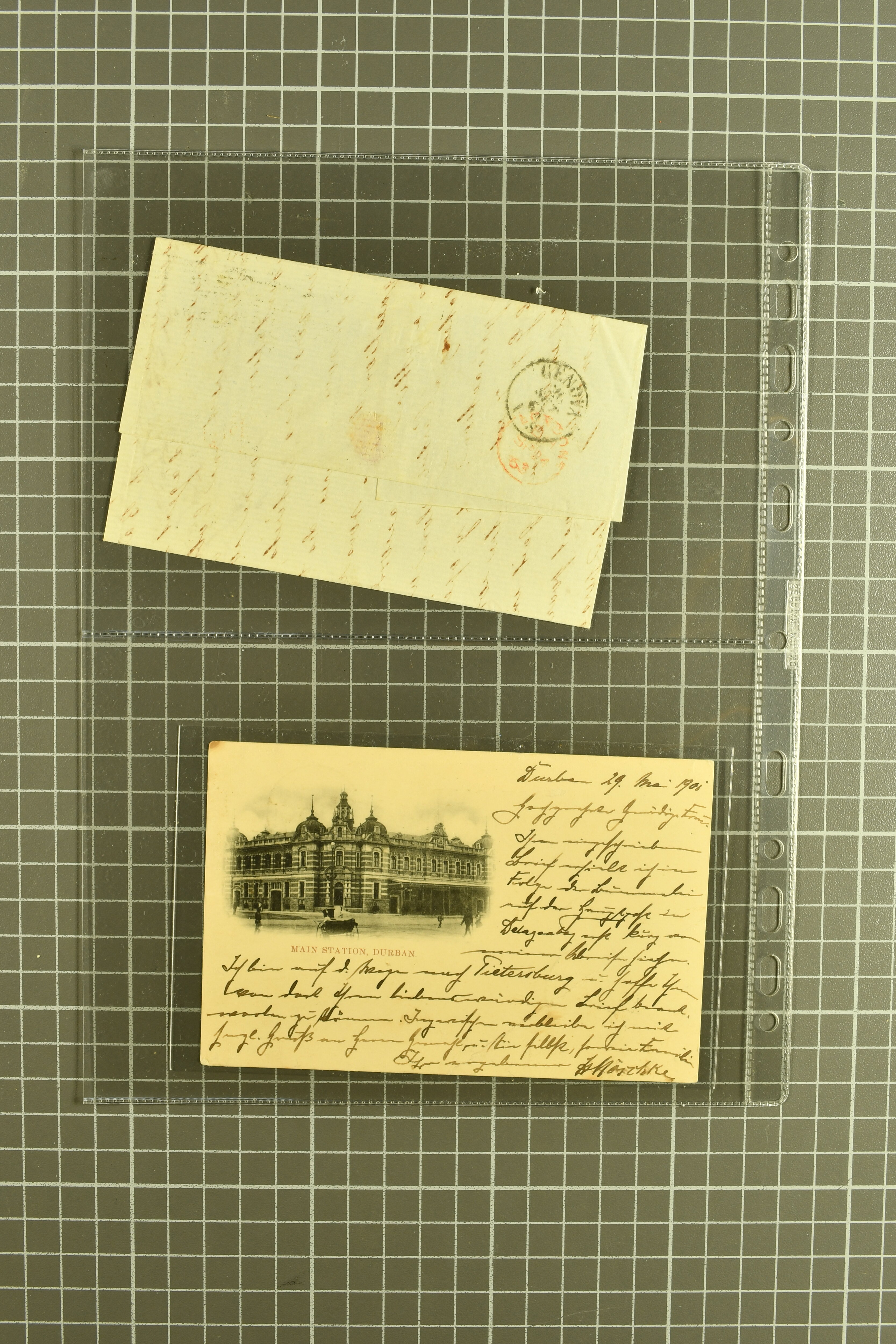 589 cover imageBritish Commonwealth Postal History. An eclectic assembly of around 50 covers and cards from across the British Commonwealth, spanning 19th to mid-20th century. Includes attractive frankings and destinations from Great Britain, Natal, Cape of Good Hope, Orange Free State, India, Canada, Falkland Islands, and others. Noted are early QV 6 d. lilac surface-printed usages, colonial postal stationery, Boer War and South African items, a variety of airmails, censor marks, registered covers, and unusual frankings with multiple adhesives and wax seals. Condition is mixed, with some fine. A diverse lot with considerable scope for further research and expansion (Image 1) (Image 2) (Image 3) (Image 4) (Image 5) (Image 6) (Image 7) (Image 8)