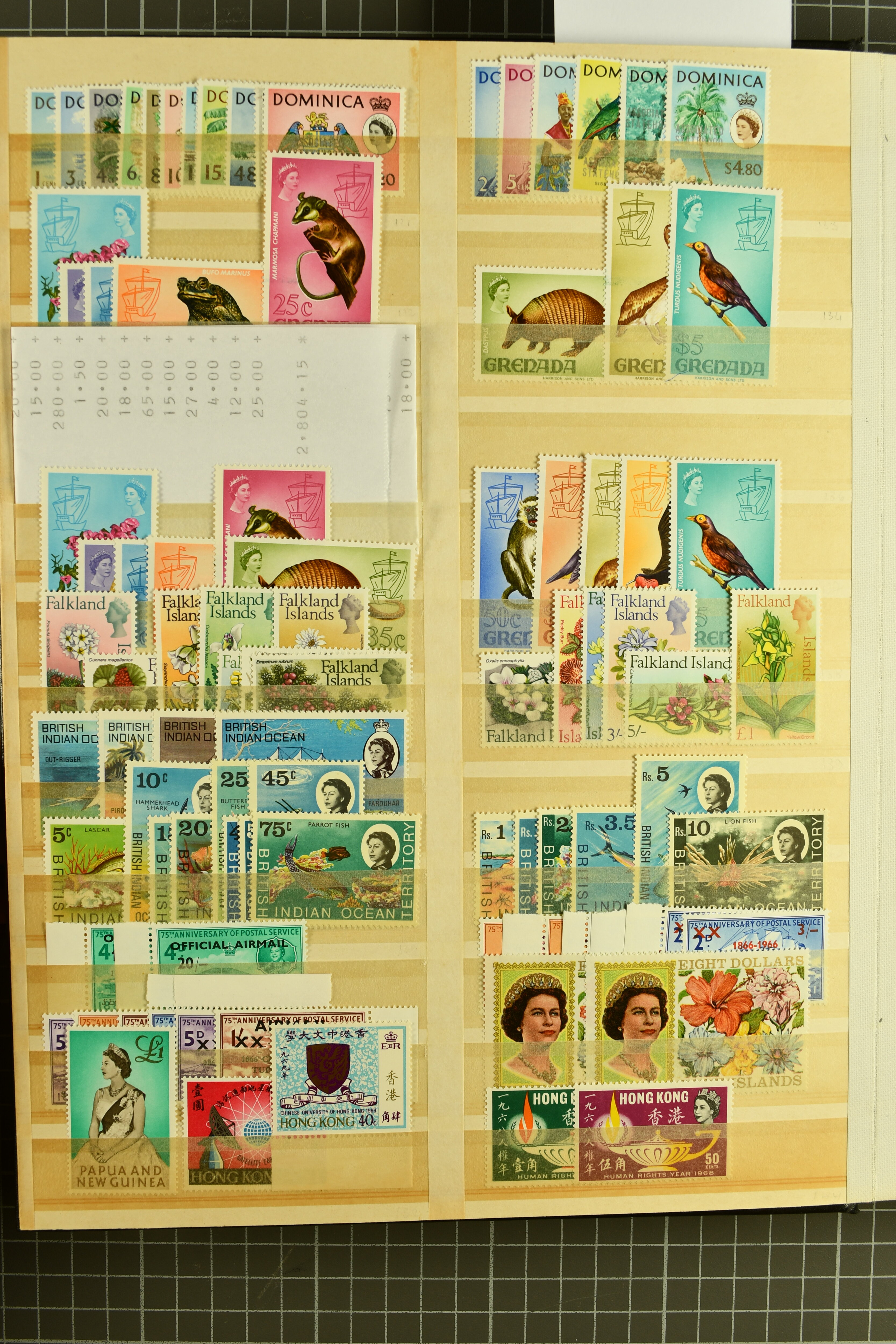 583 **/*/(*) imageBritish Commonwealth – 20th Century Collection in Stockbook. An attractive range housed on 10 stockbook pages, chiefly unused (many unmounted), with strength in QEII period issues from the Caribbean, Africa, Indian Ocean, and Pacific territories. Includes definitive and commemorative sets, high values to $ 5., £ 1. and $.10., miniature sheets, and a good showing of pictorials (flora, fauna, birds). Noted better items from Hong Kong, Mauritius, Falkland Islands, Gibraltar, and others. A clean and colourful assembly, ideal for further expansion or as a basis for resale. Gi = £ 4'000 (Image 1) (Image 2) (Image 3) (Image 4) (Image 5) (Image 6) (Image 7) (Image 8) (Image 9) (Image 10) (Image 11)