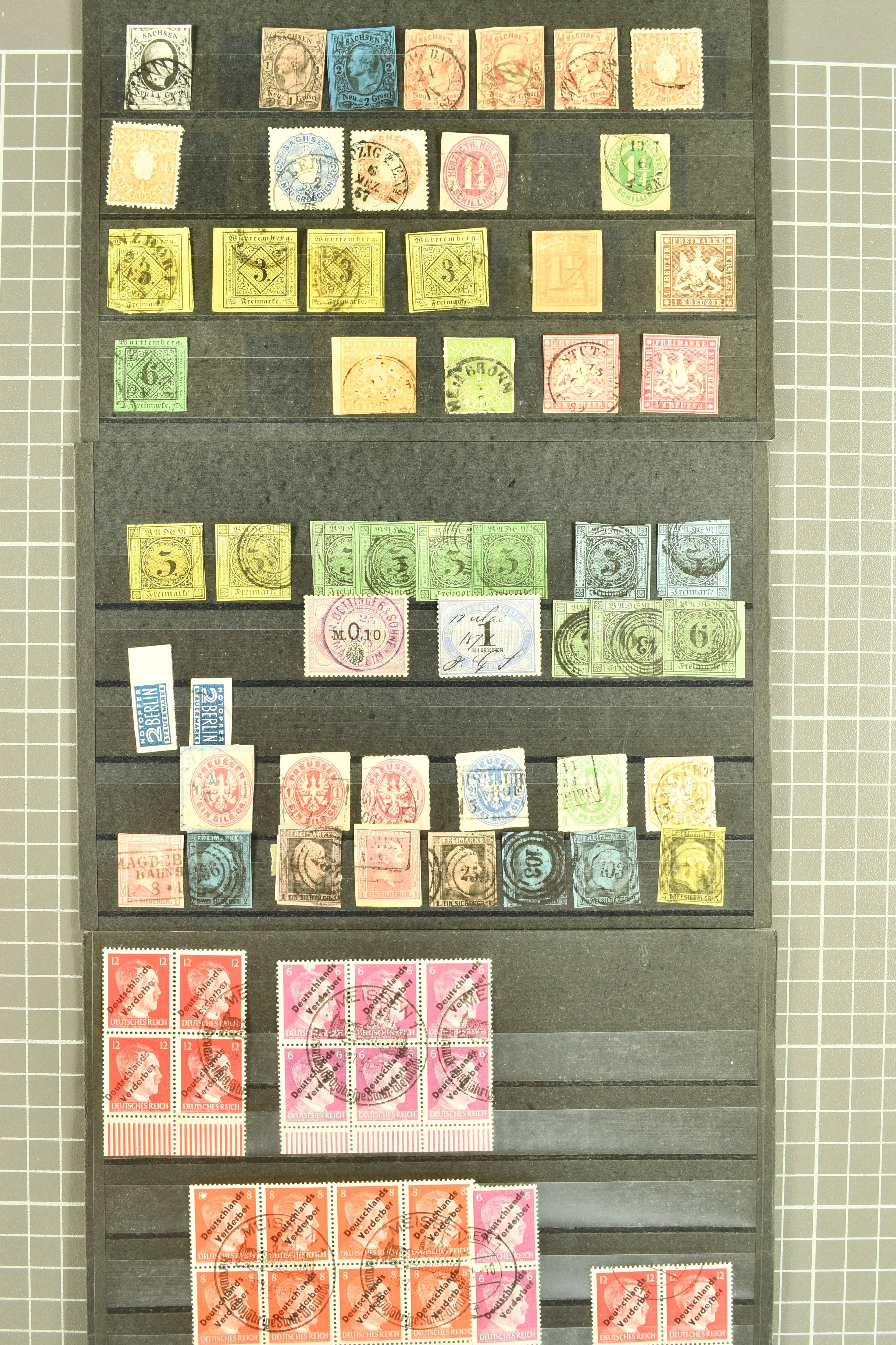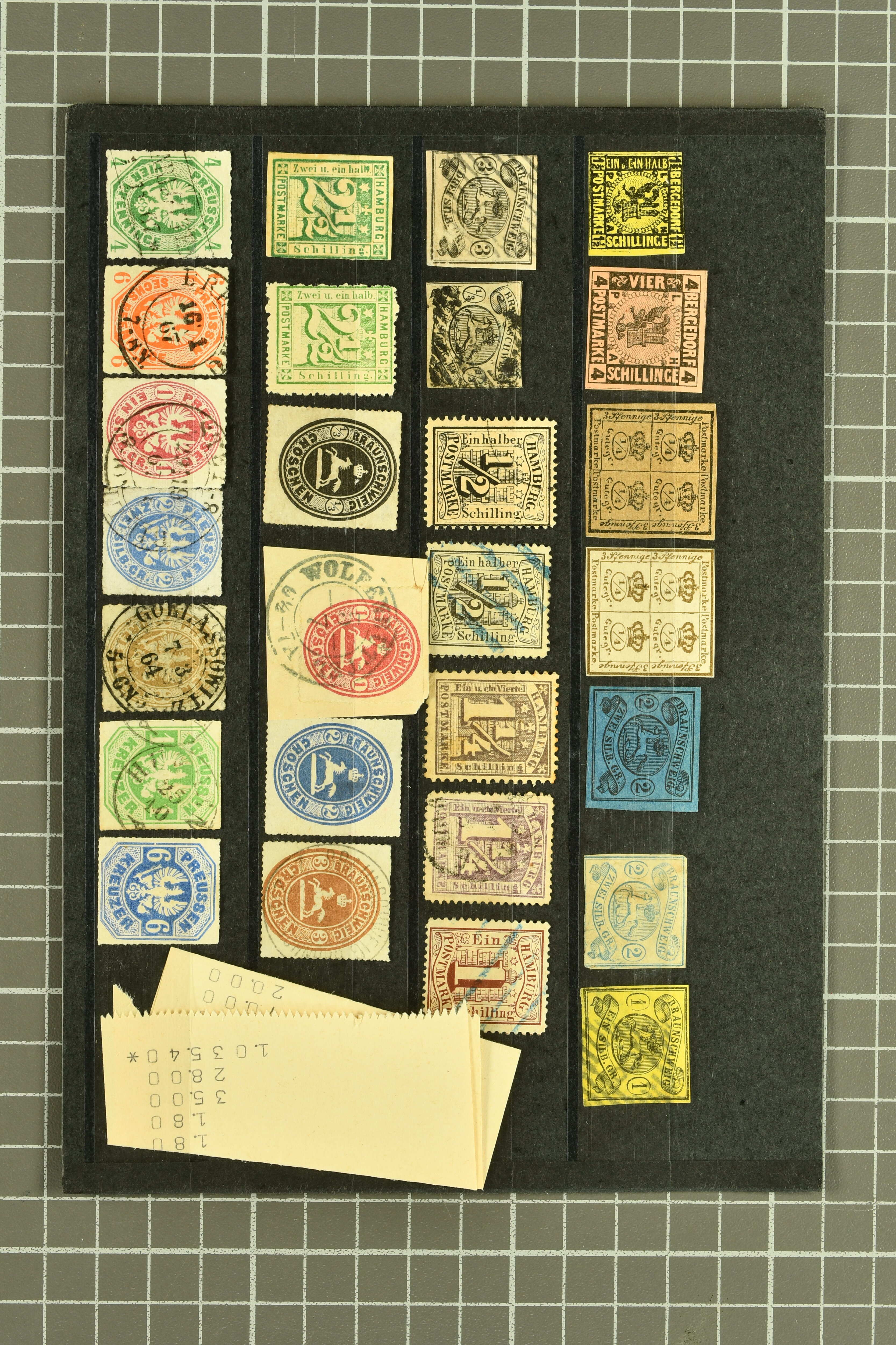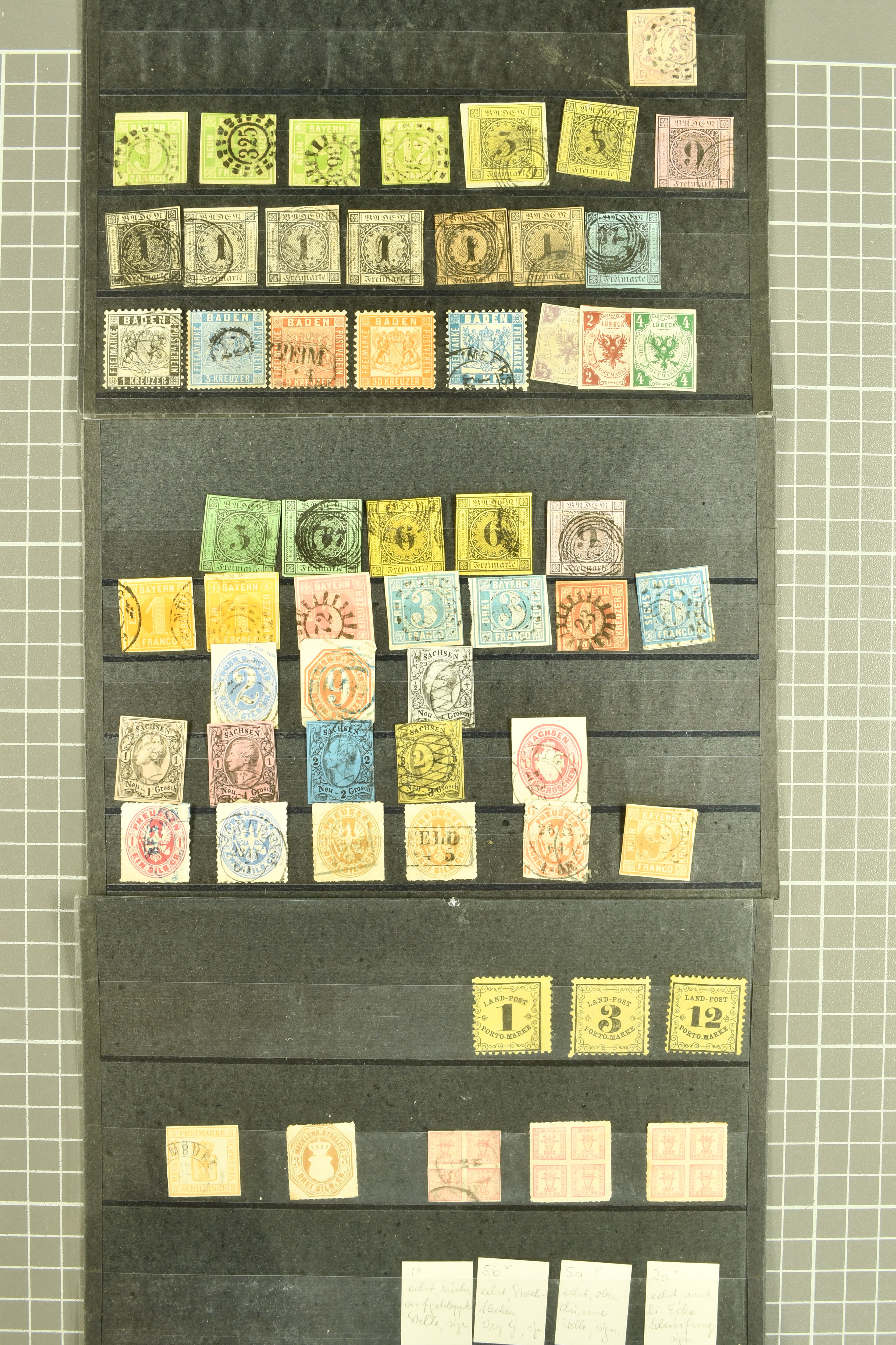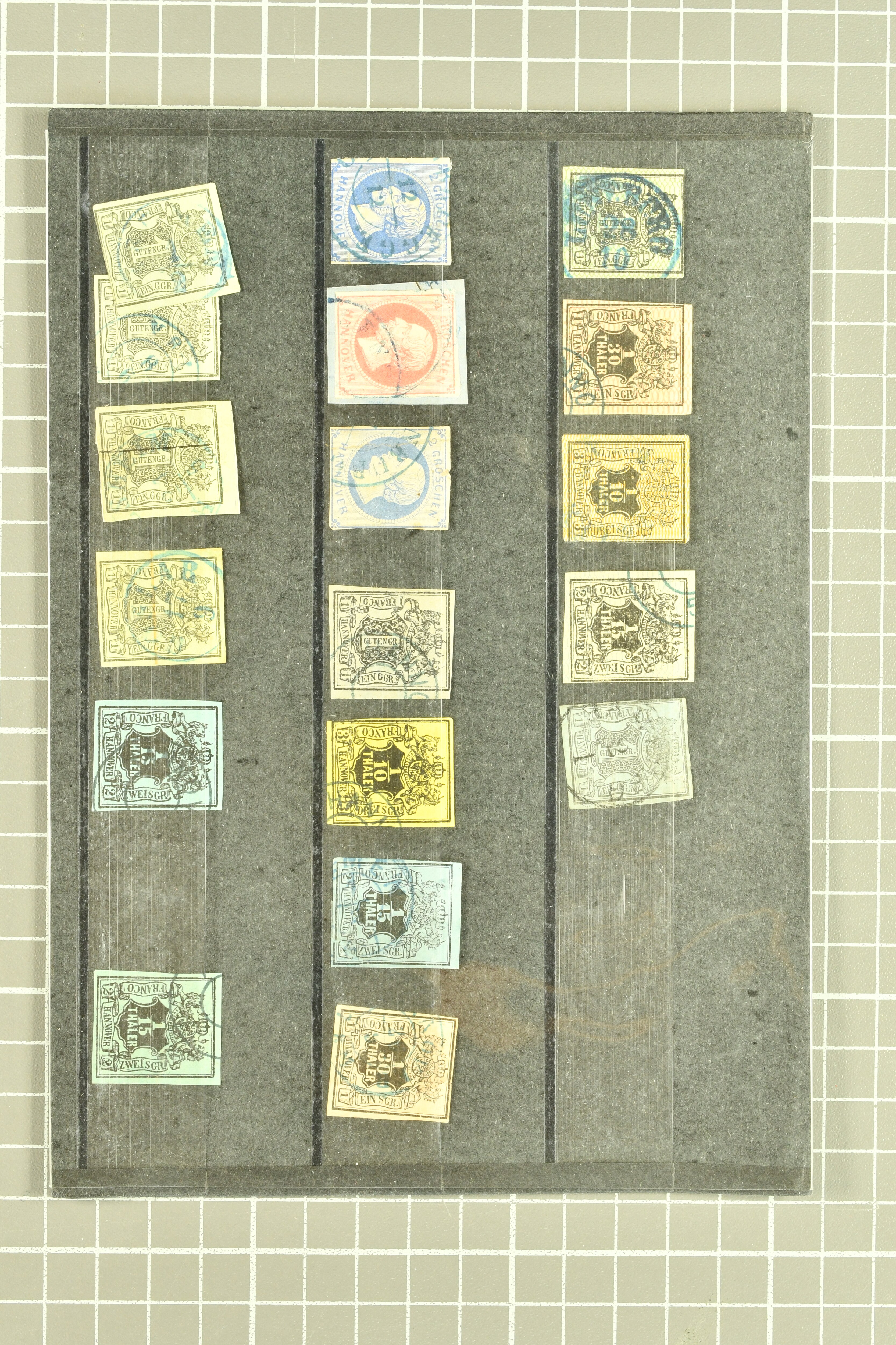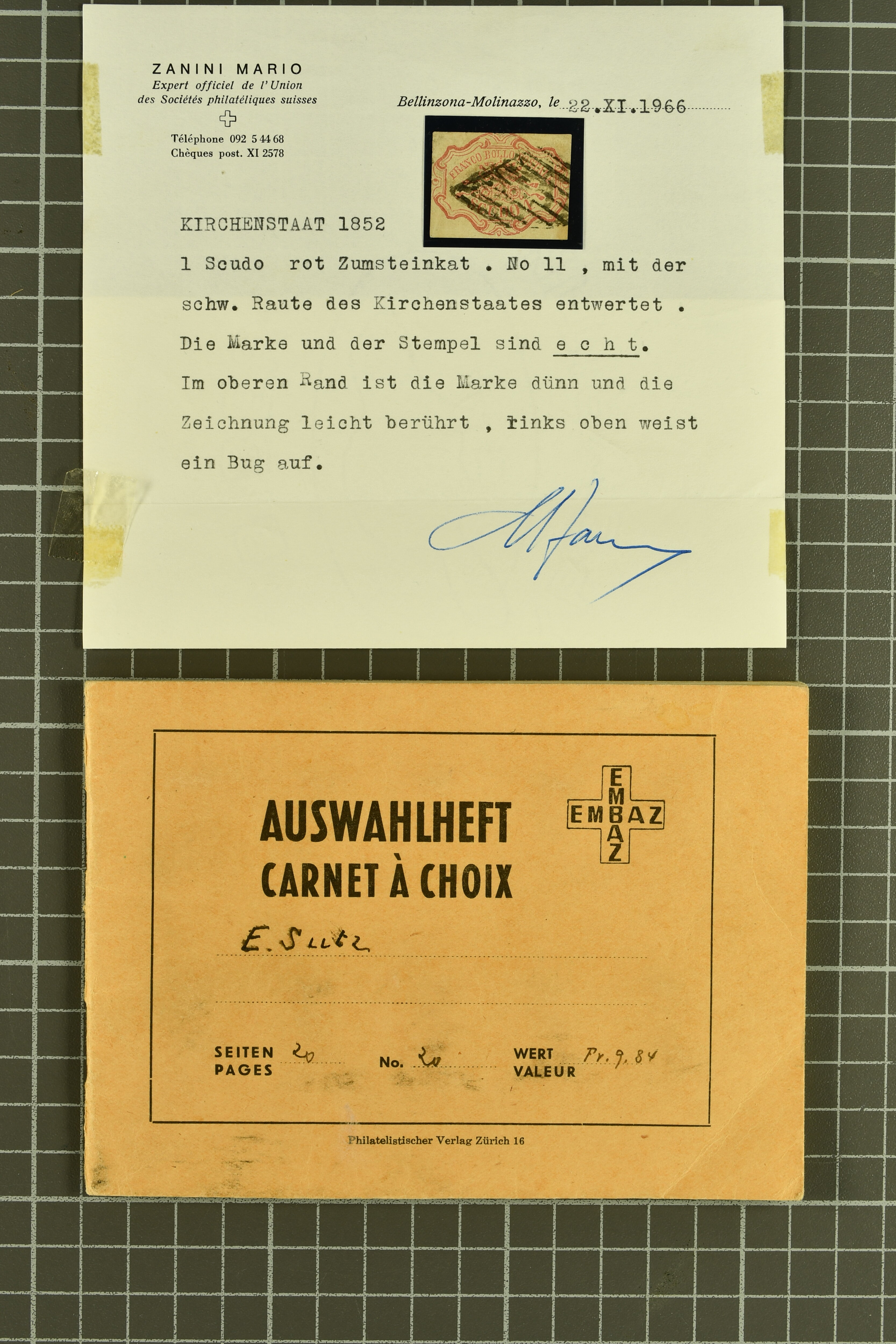 1435 image1850/1950 (ca.): Mixed lot of various European Areas including Papal States 1 scudo 'rosso carminio' (Mi. 11) cancelled by black grille obliterator (cert. Zanini 1966), a selection of German States (150 items) including Baden 1 Kr. black on yellow-brown (2, Mi. 1b), Bavaria, Bergedorf 4 S. black on dull orange-brown (Mi. 5) unmounted og., Braunschweig 2 Sgr. black on blue (Mi. 7a) unused without gum, Hamburg, Hannover, Lübeck, Mecklenburg-Schwerin, Mecklenburg-Strelitz, Saxony, Schleswig-Holstein and Württemberg, a pretty complete collection of Bohemia and Moravia including 1939 landscapes and portraits (Mi. 1-19) both used and unused with unmounted og. and a quite detailed collection of Hungary (1871/1947) incl. 1871 Lithographed 2 Nkr. yellow and 5 Nkr. red in an old album. Condition varies (Image 1) (Image 2) (Image 3) (Image 4) (Image 5) (Image 6) (Image 7) (Image 8) (Image 9) (Image 10) (Image 11) (Image 12) (Image 13) (Image 14) (Image 15) (Image 16) (Image 17) (Image 18) (Image 19) (Image 20) (Image 21) (Image 22) (Image 23) (Image 24) (Image 25) (Image 26) (Image 27) (Image 28) (Image 29) (Image 30) (Image 31) (Image 32) (Image 33) (Image 34) (Image 35)