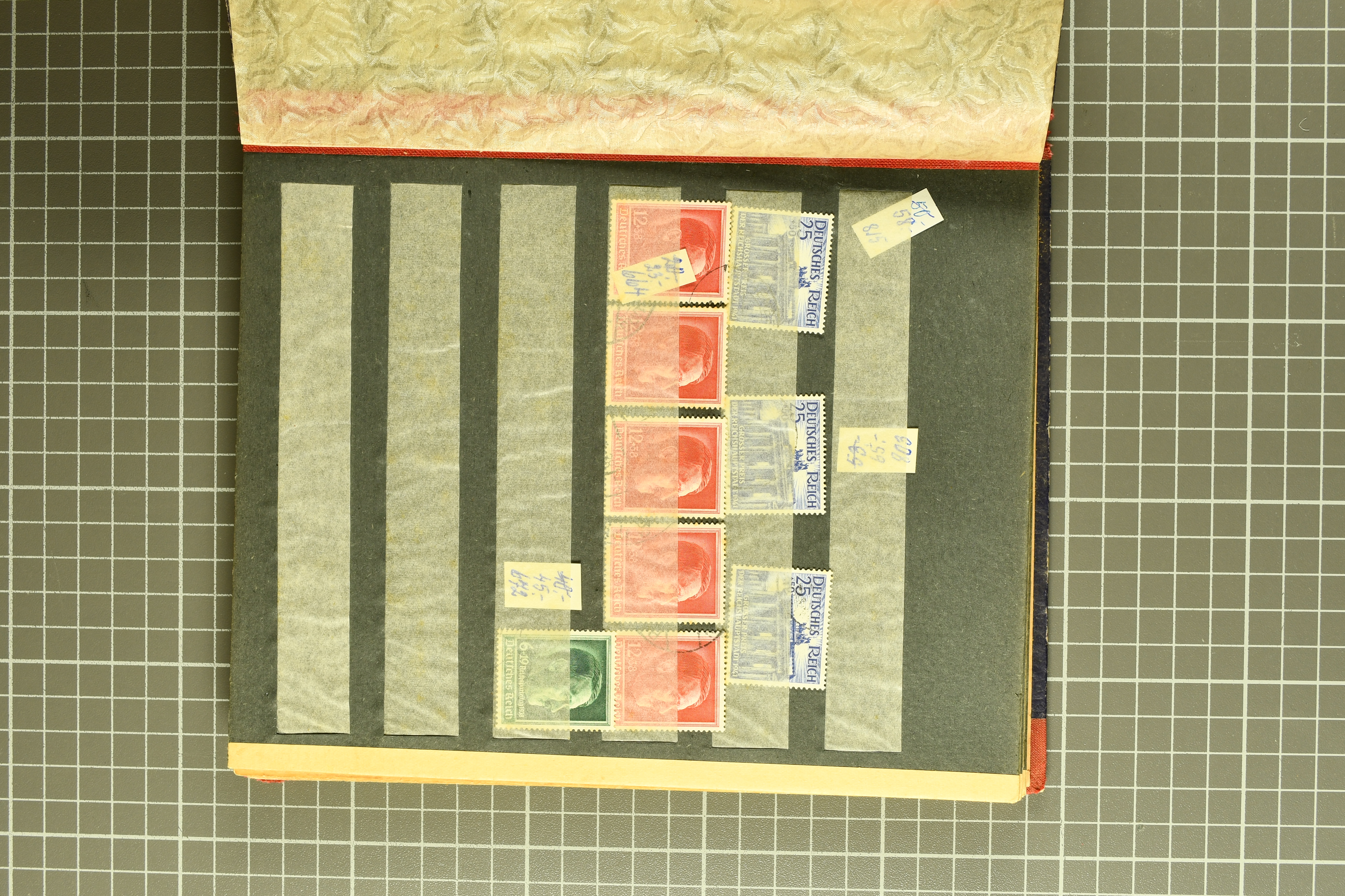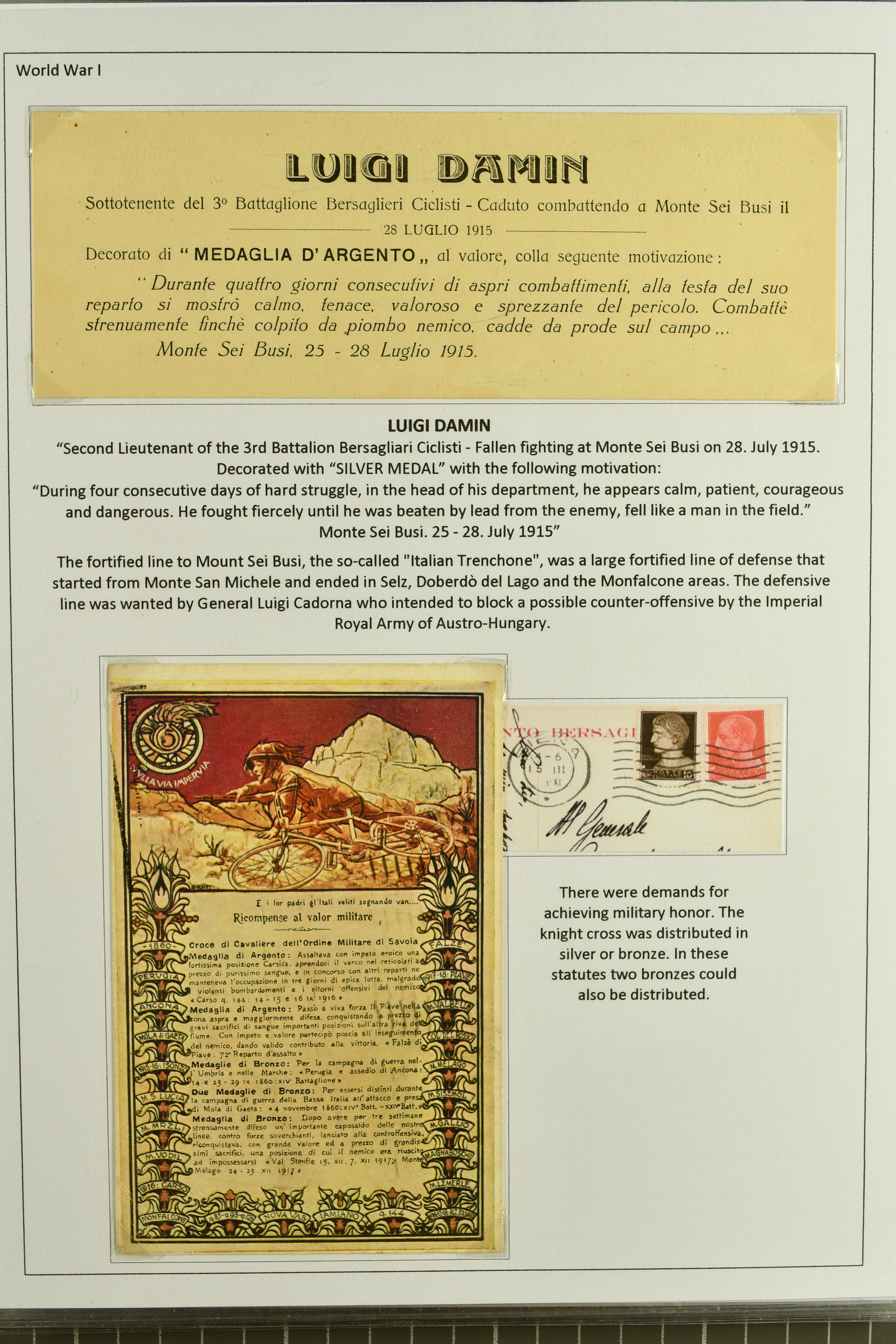 1439 1900/1950ca.: Interesting accumulation of approx. 1'000 picture postcards in total, including ca. 130 from Alsace-Lorraine, among them ‘Hansi’ cards, landscapes, towns and traditional costumes etc. War-related subjects WWI & WWII ca. 330, included some excellent propaganda cards of the Third Reich as well as anti-Third Reich cards, noted: maximum cards franked with ‘Wehrmacht’ series stamps (!), cards depicting Rommel, Hitler, etc. Group photographs of WWI soldiers ca. 50 items. Further material comprises kitsch subjects (Love and Christmas) ca. 130. One album with advertising postcards, four boxes containing ca. 350 cards with a strong focus on France and Germany, and an album of labels, letters etc