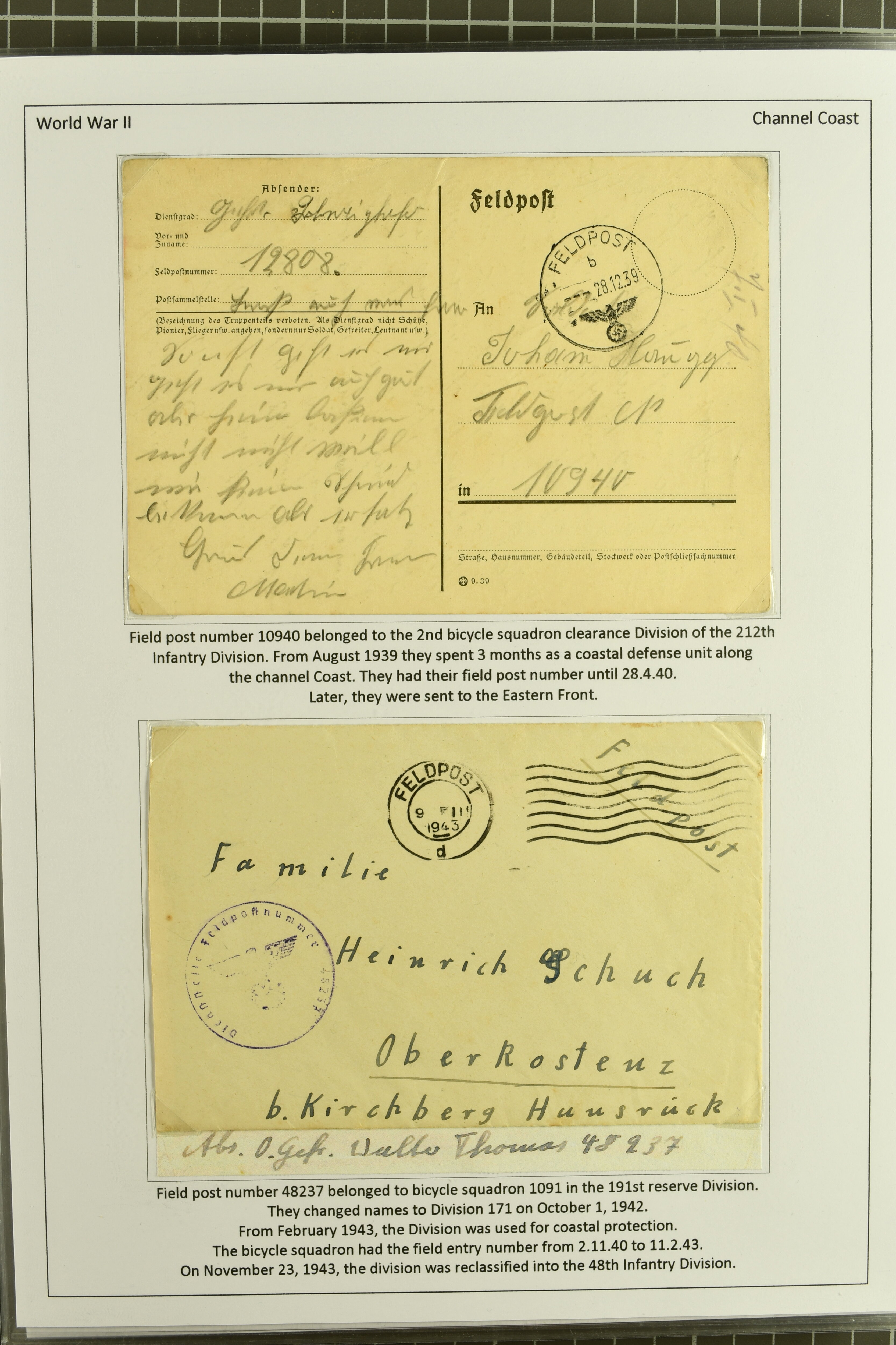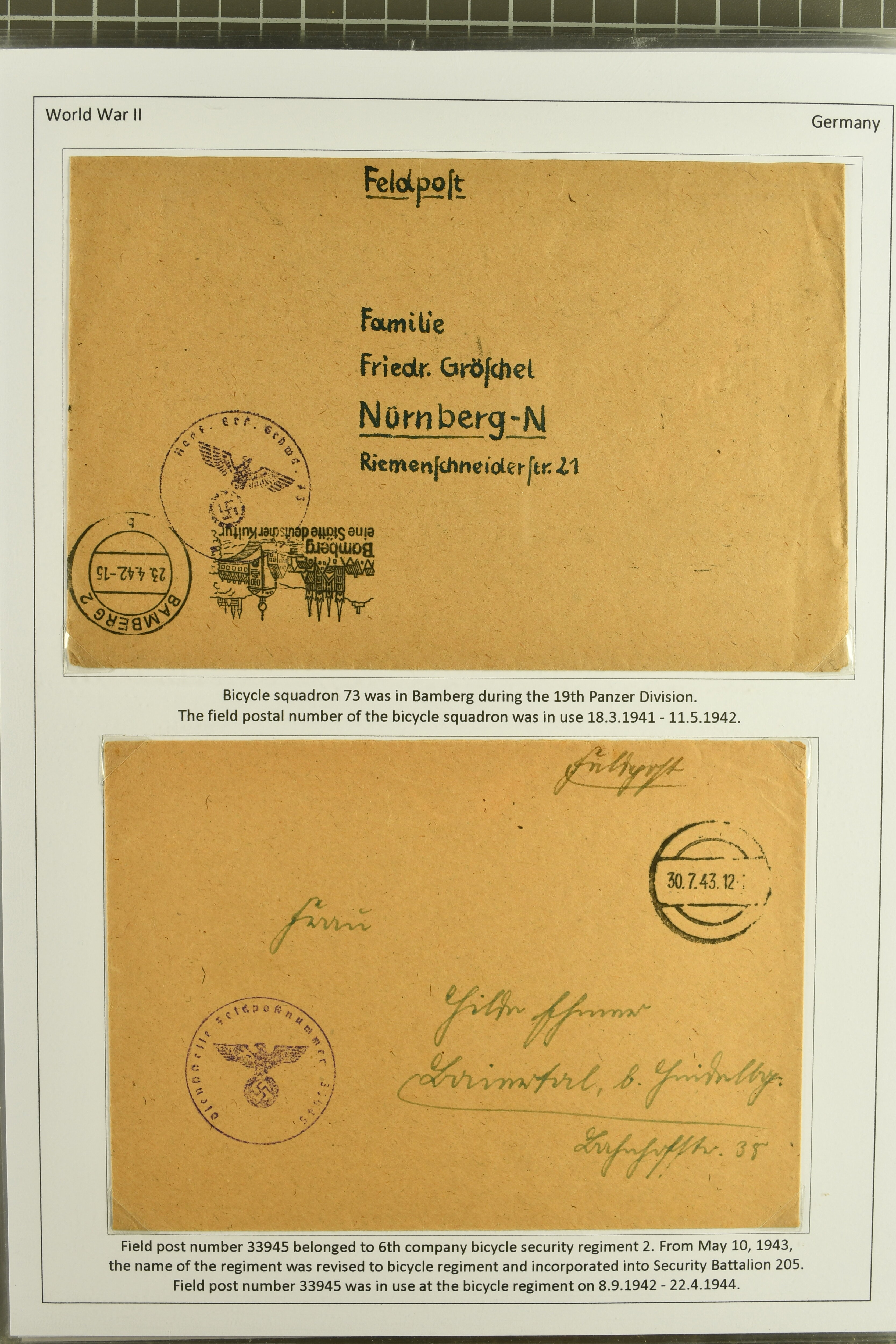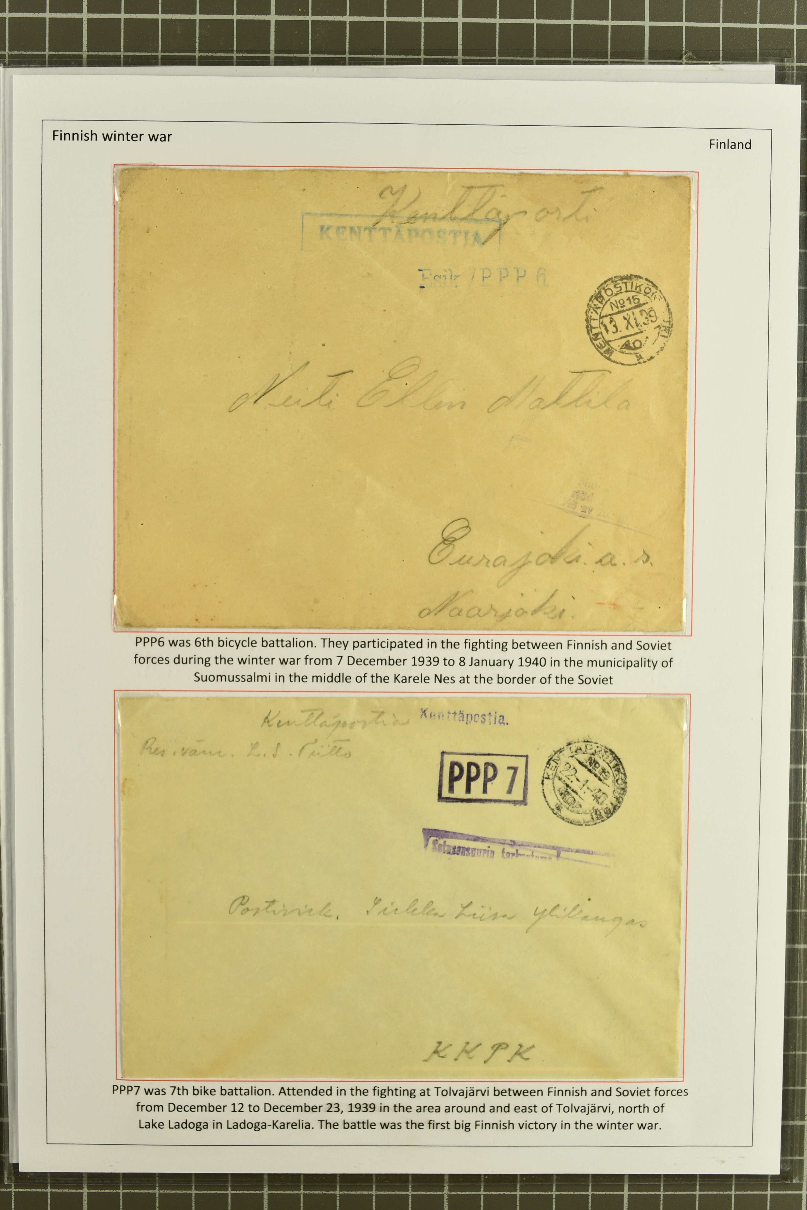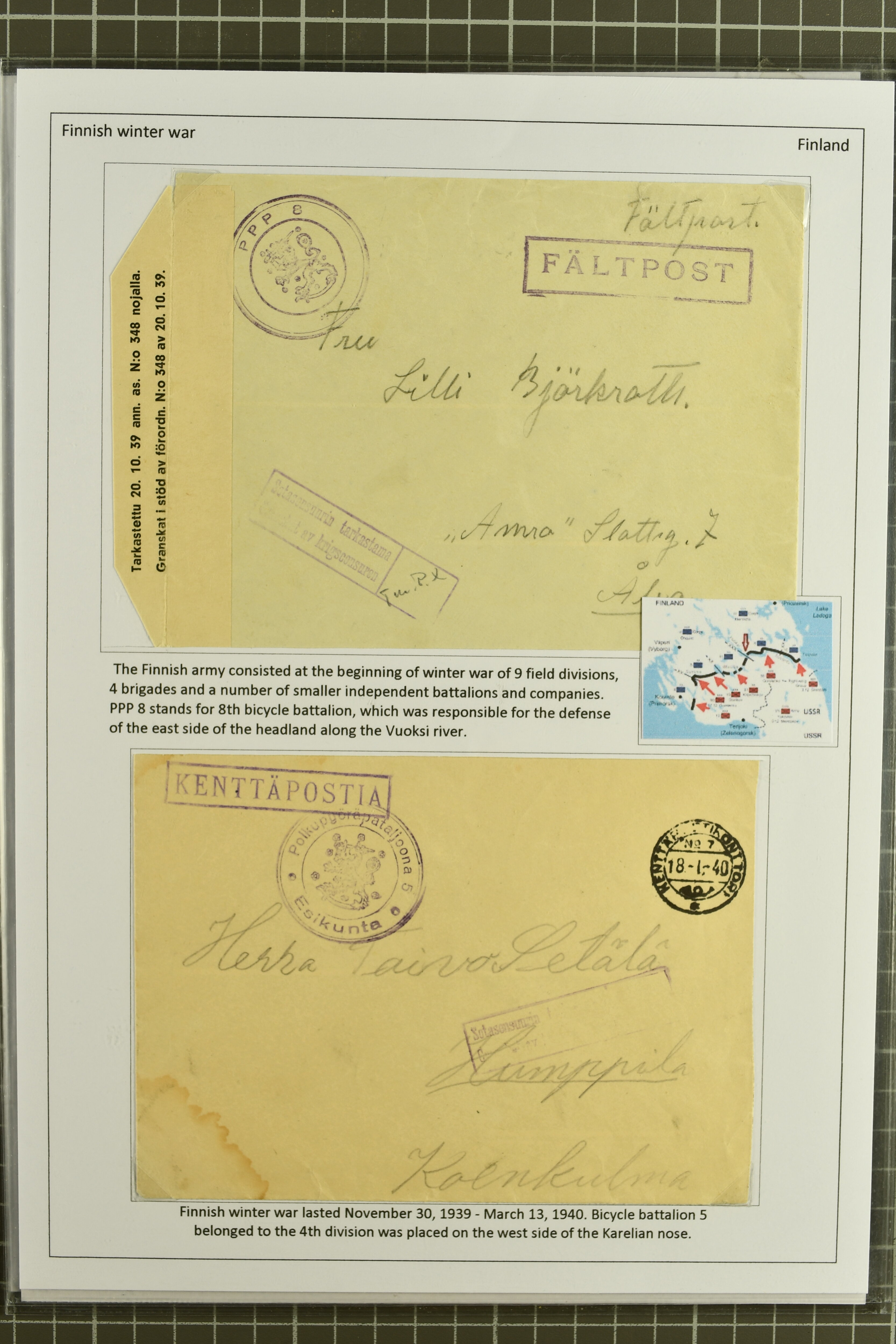 1448 cover image1939/45: Collection 50 covers / postcards with Fieldpost handstamps of cyclist military units during World War II including primarily material from German units with items sent from Norway, the Western Front and Channel Coast, Denmark, North Africa, Crete, Eastern Front, also units from Italy and Belgium. The lot includes also four covers from the Soviet-Finnish Winter War and two Finland covers from the war against the Soviet Union as part of the German occupation of Russia. A rarely seen topic well presented on leaves (Image 1) (Image 2) (Image 3) (Image 4) (Image 5) (Image 6) (Image 7) (Image 8) (Image 9) (Image 10) (Image 11)